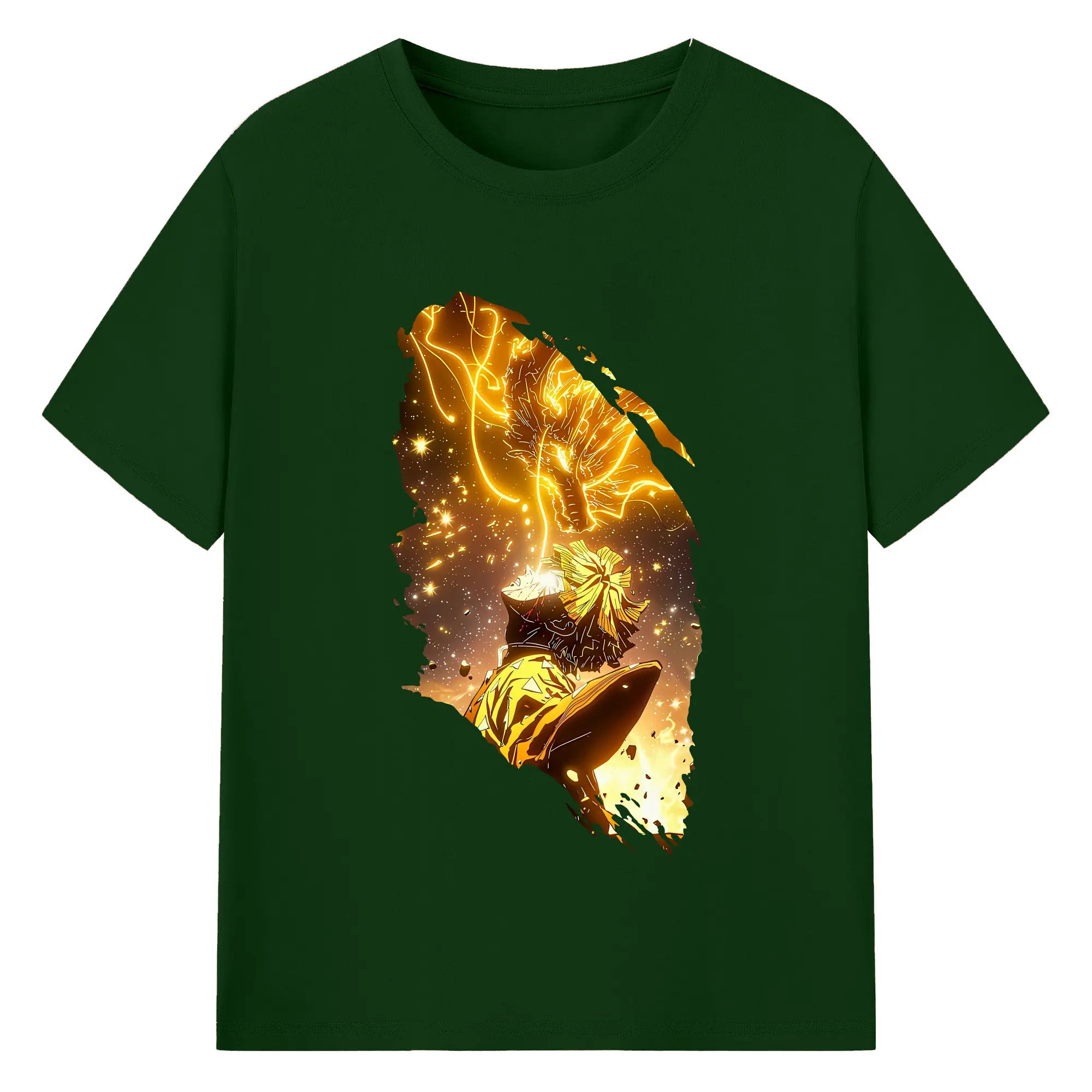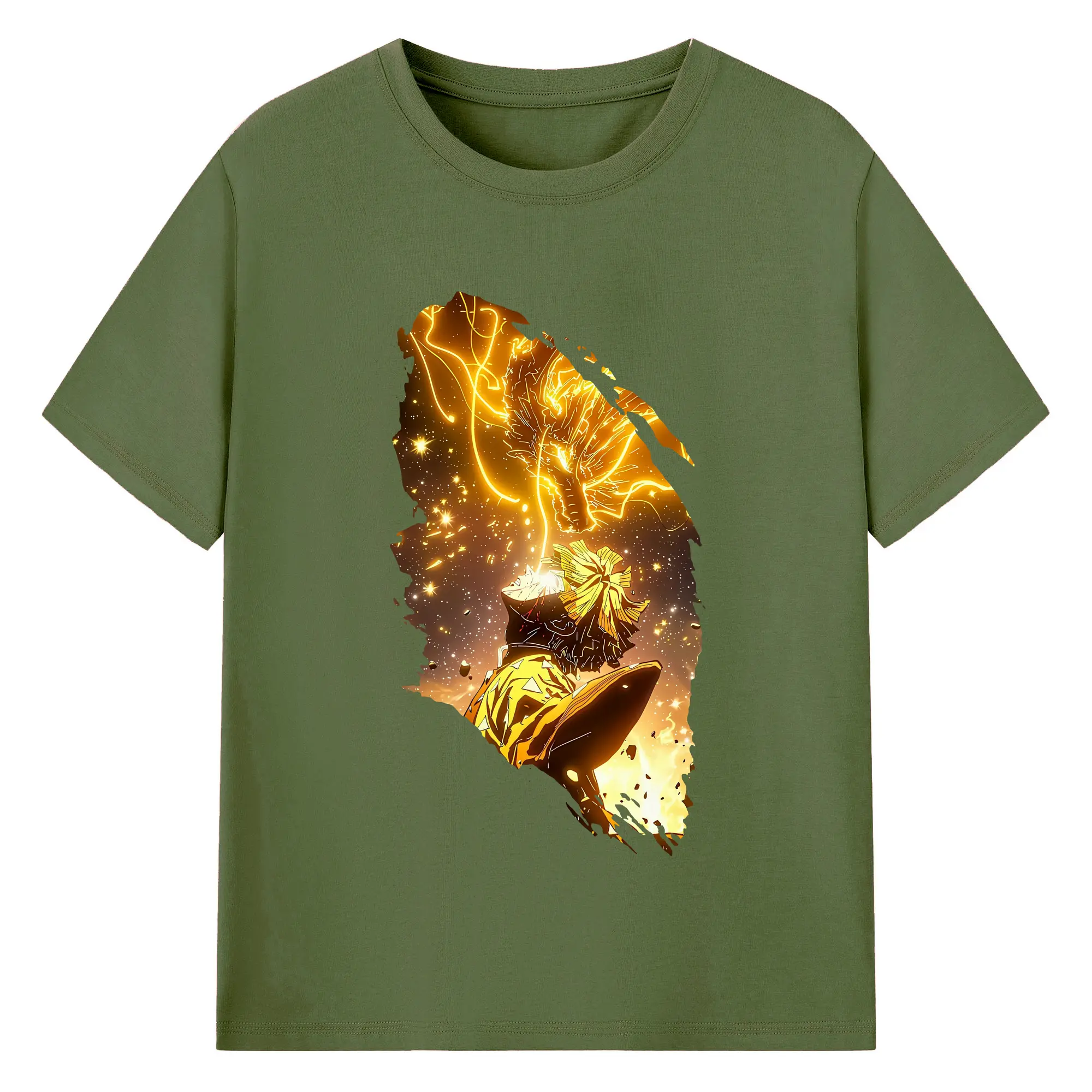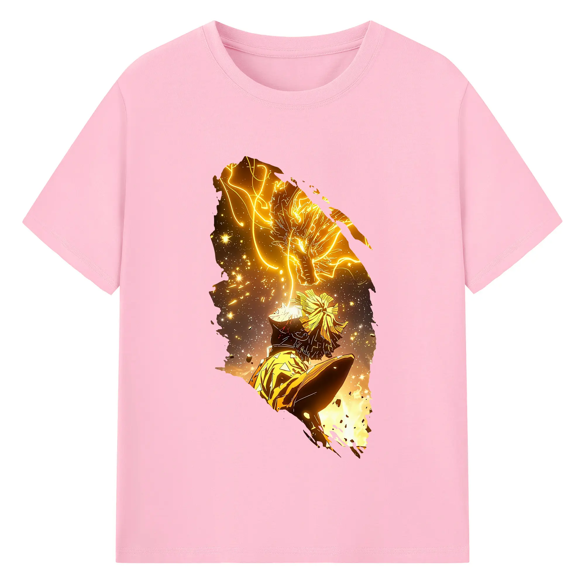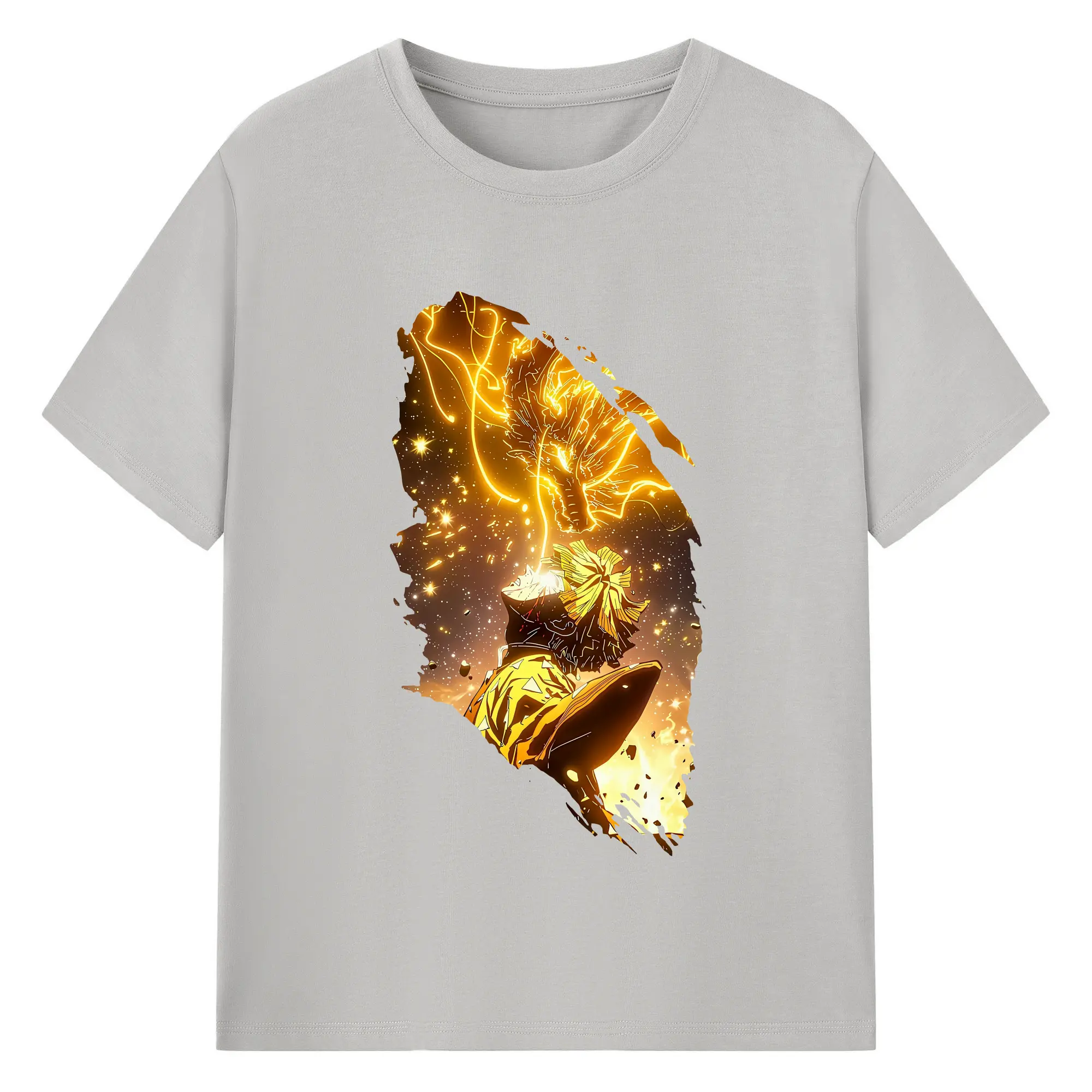 鬼滅の刃 グッズ,我妻 善逸 - 綿100% 半袖Tシャツ ・ バックプリント ・ 快適 通気性 ・ 日常使い 散歩 スポーツ用