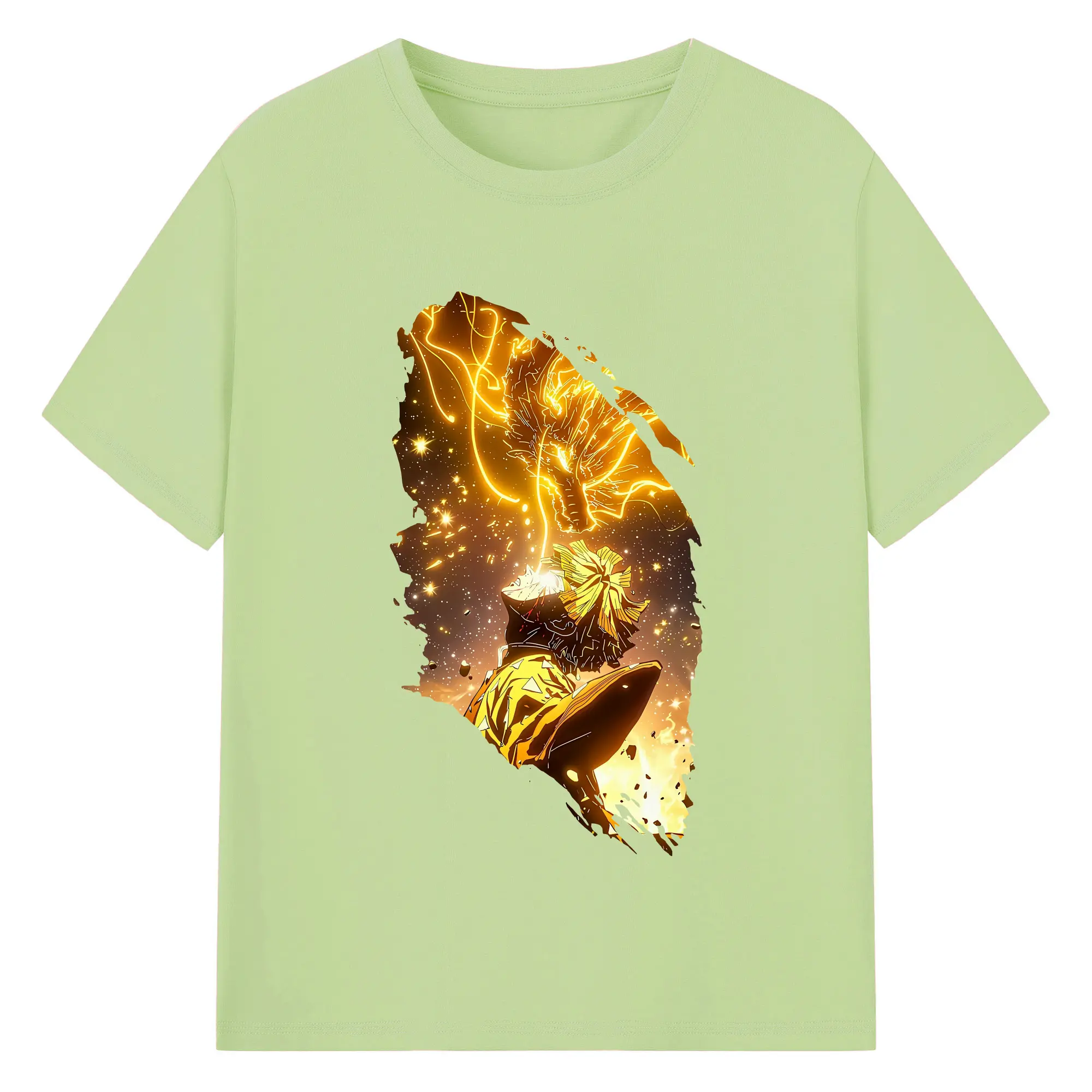 鬼滅の刃 グッズ,我妻 善逸 - 綿100% キッズTシャツ ・ フロントプリント ・ 快適 通気性 ・ スポーツ カジュアル 散歩用