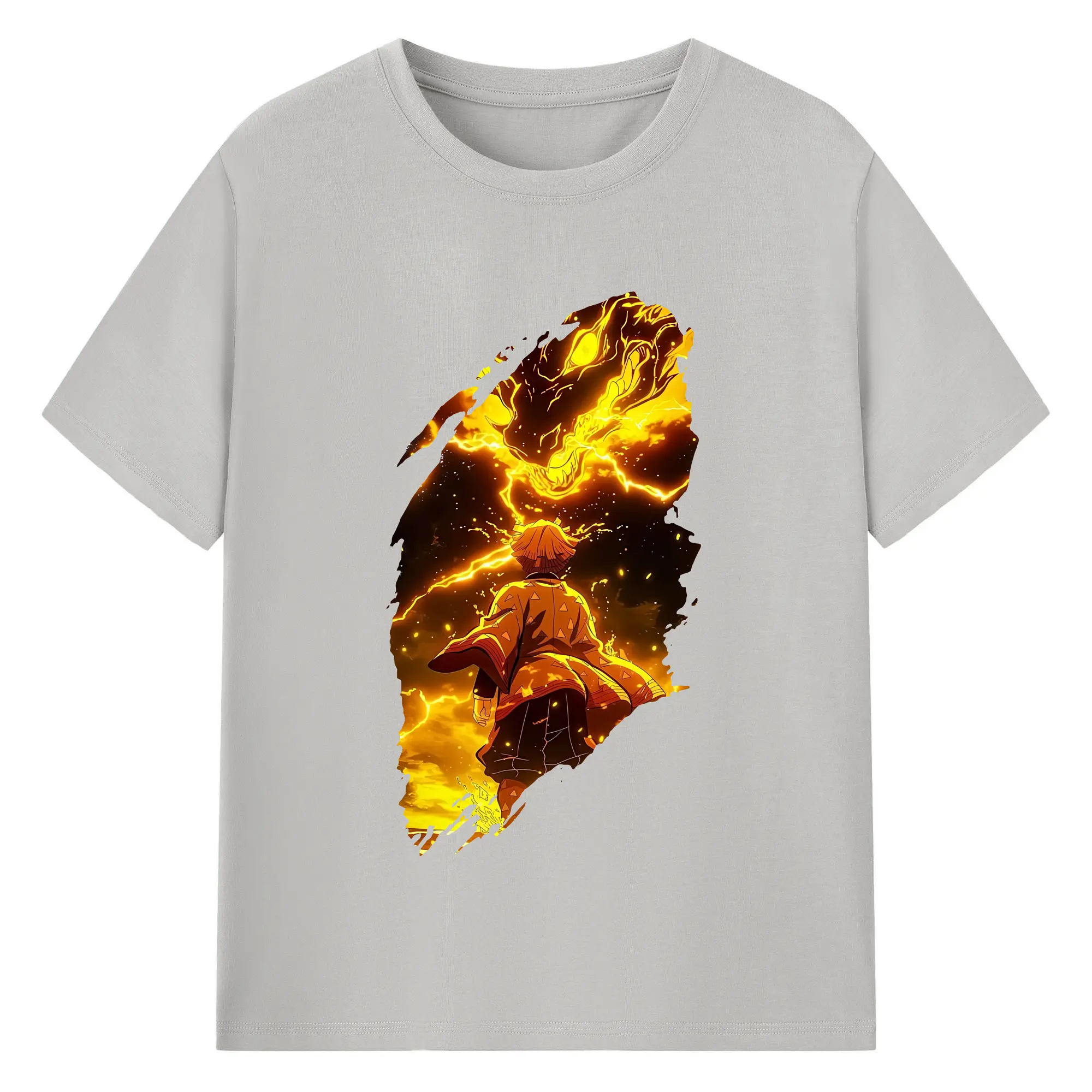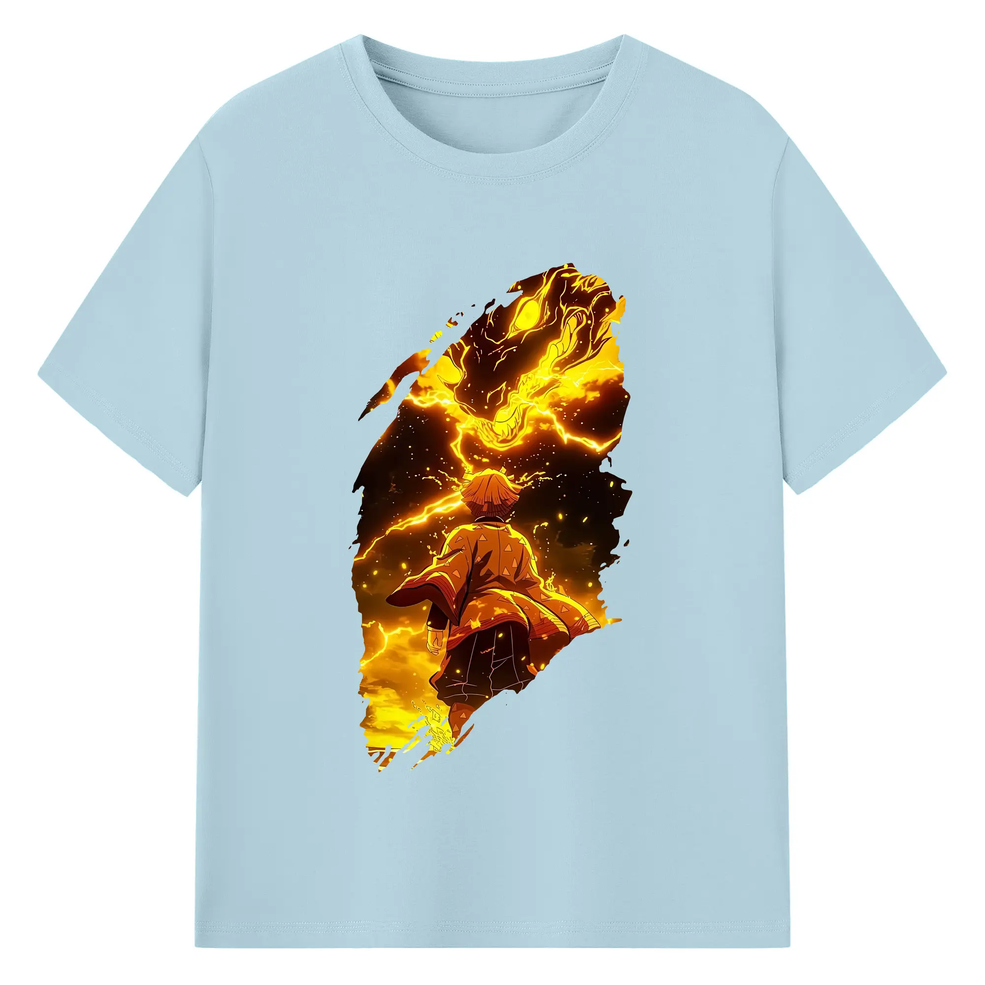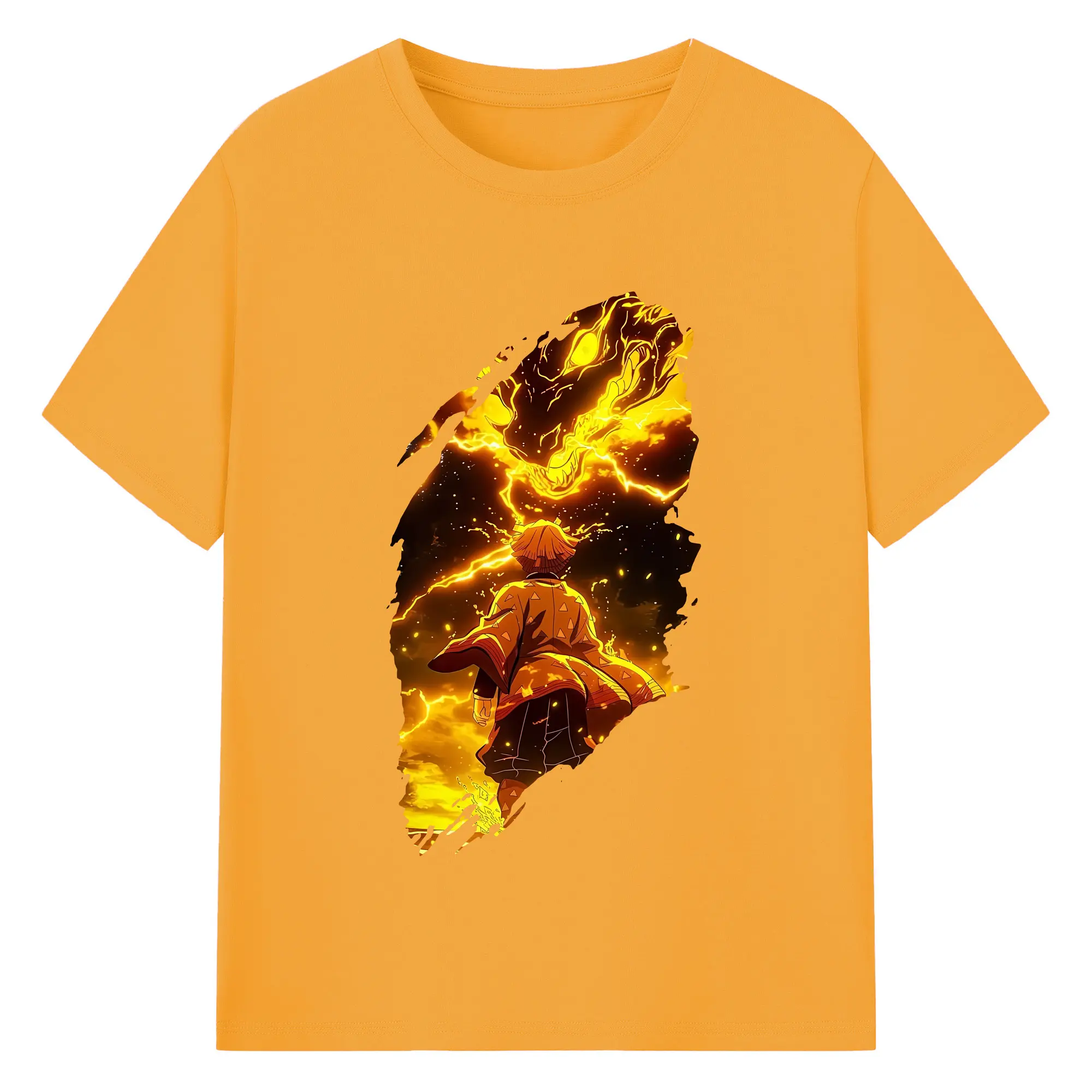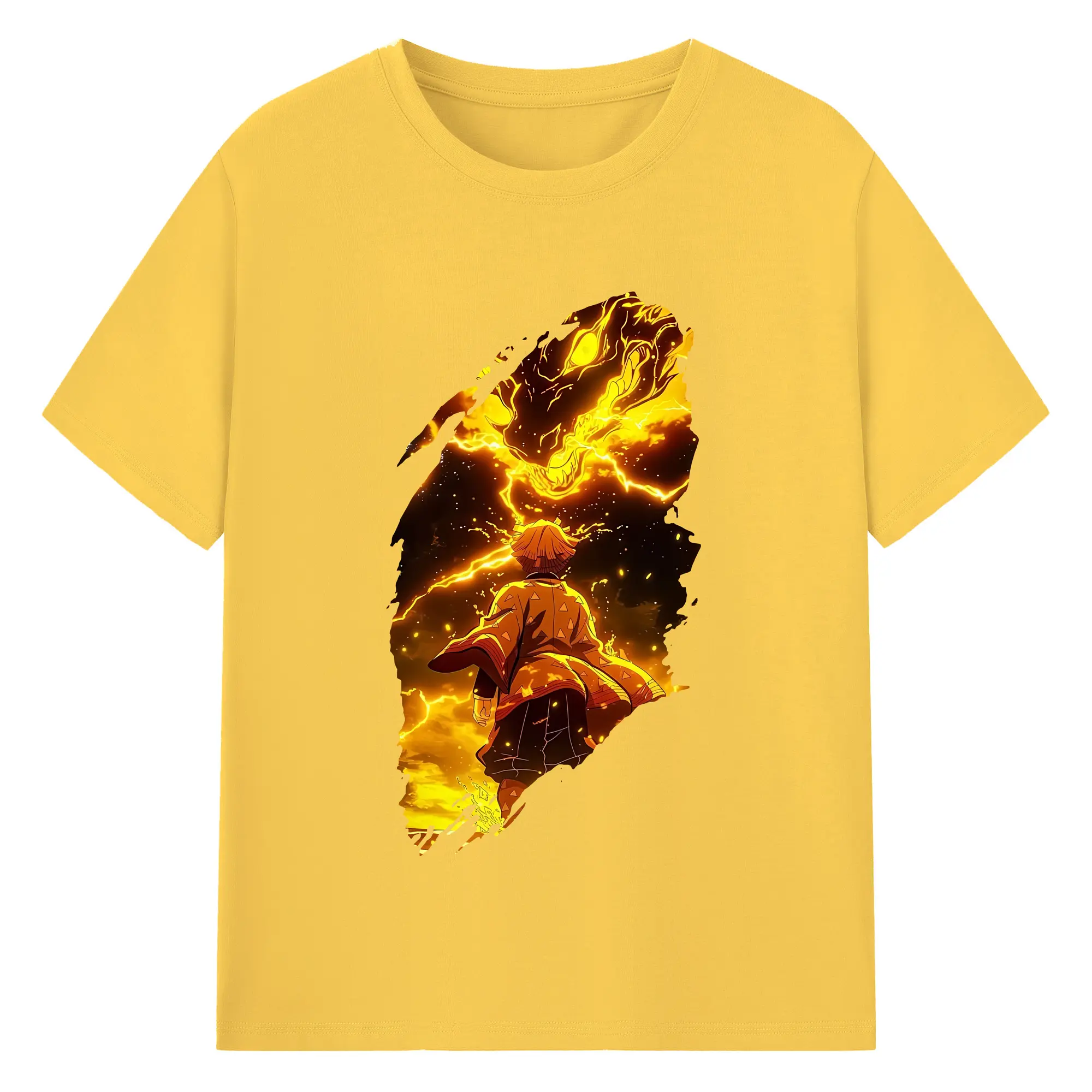 鬼滅の刃 グッズ,我妻 善逸 - 綿100% 半袖Tシャツ ・ バックプリント ・ 快適 通気性 ・ 日常使い 散歩 スポーツ用