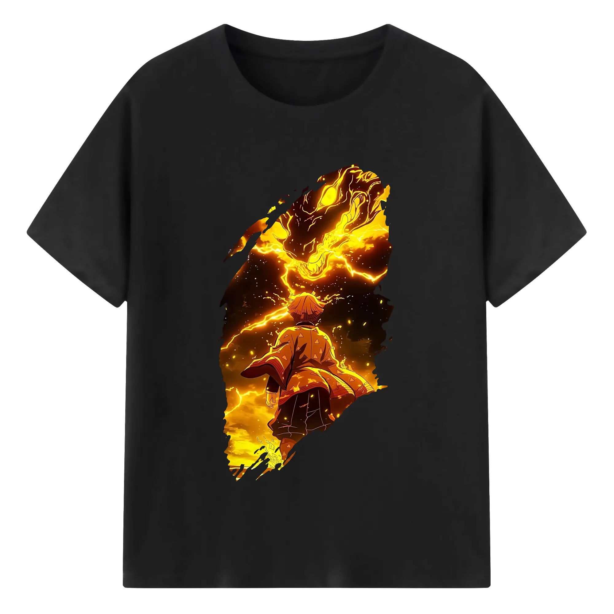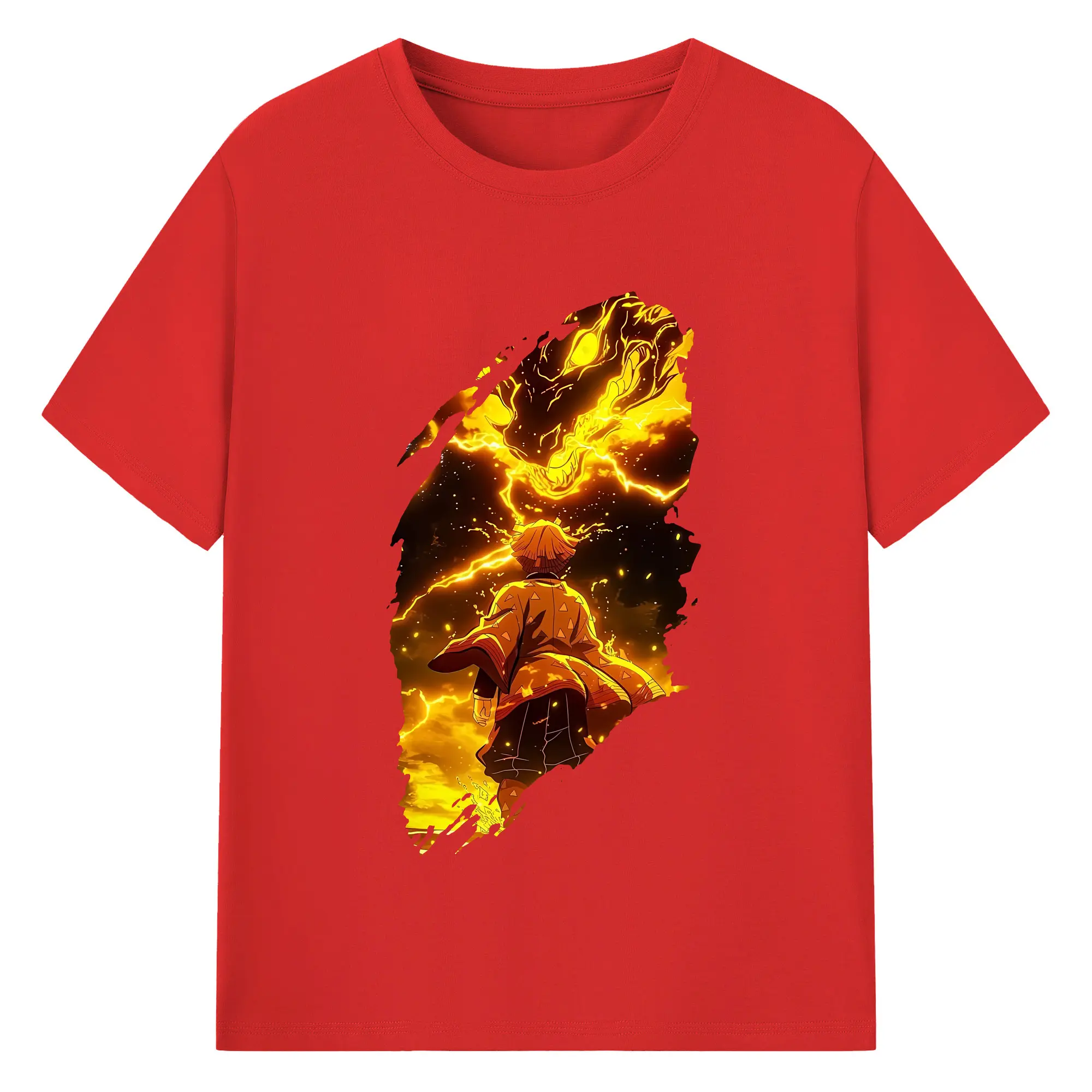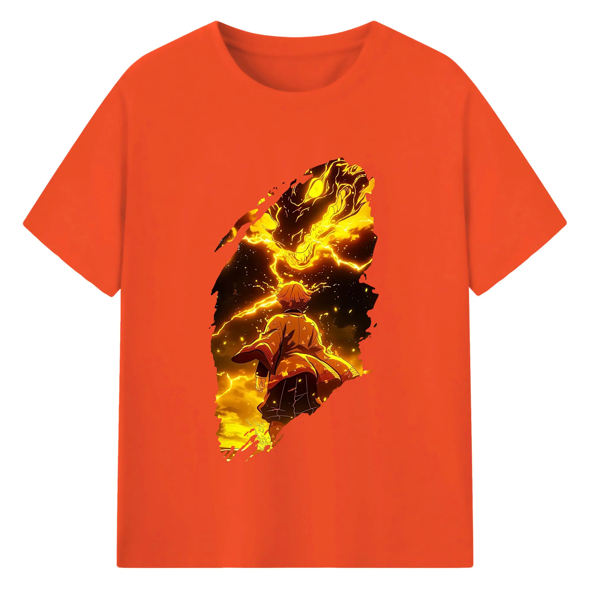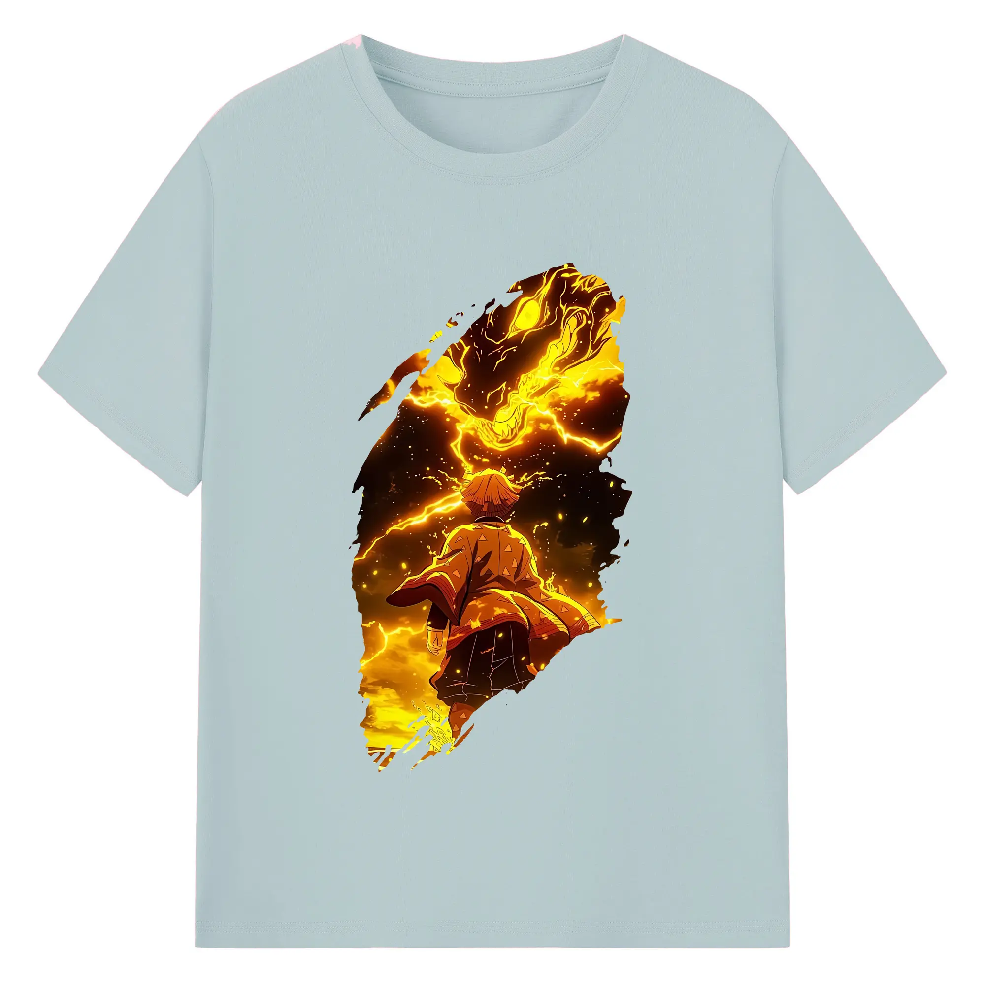 鬼滅の刃 グッズ,我妻 善逸 - 綿100% 半袖Tシャツ ・ バックプリント ・ 快適 通気性 ・ 日常使い 散歩 スポーツ用
