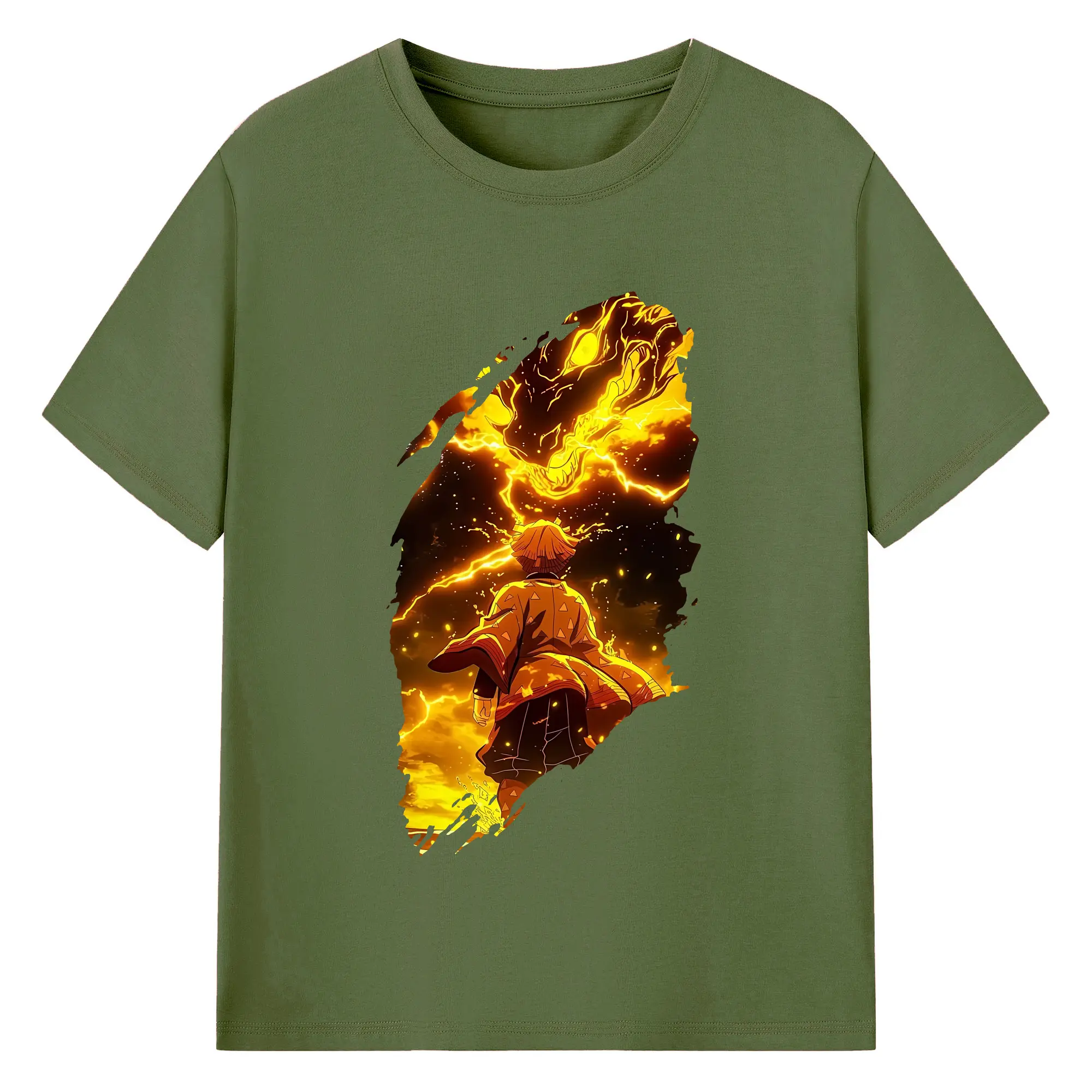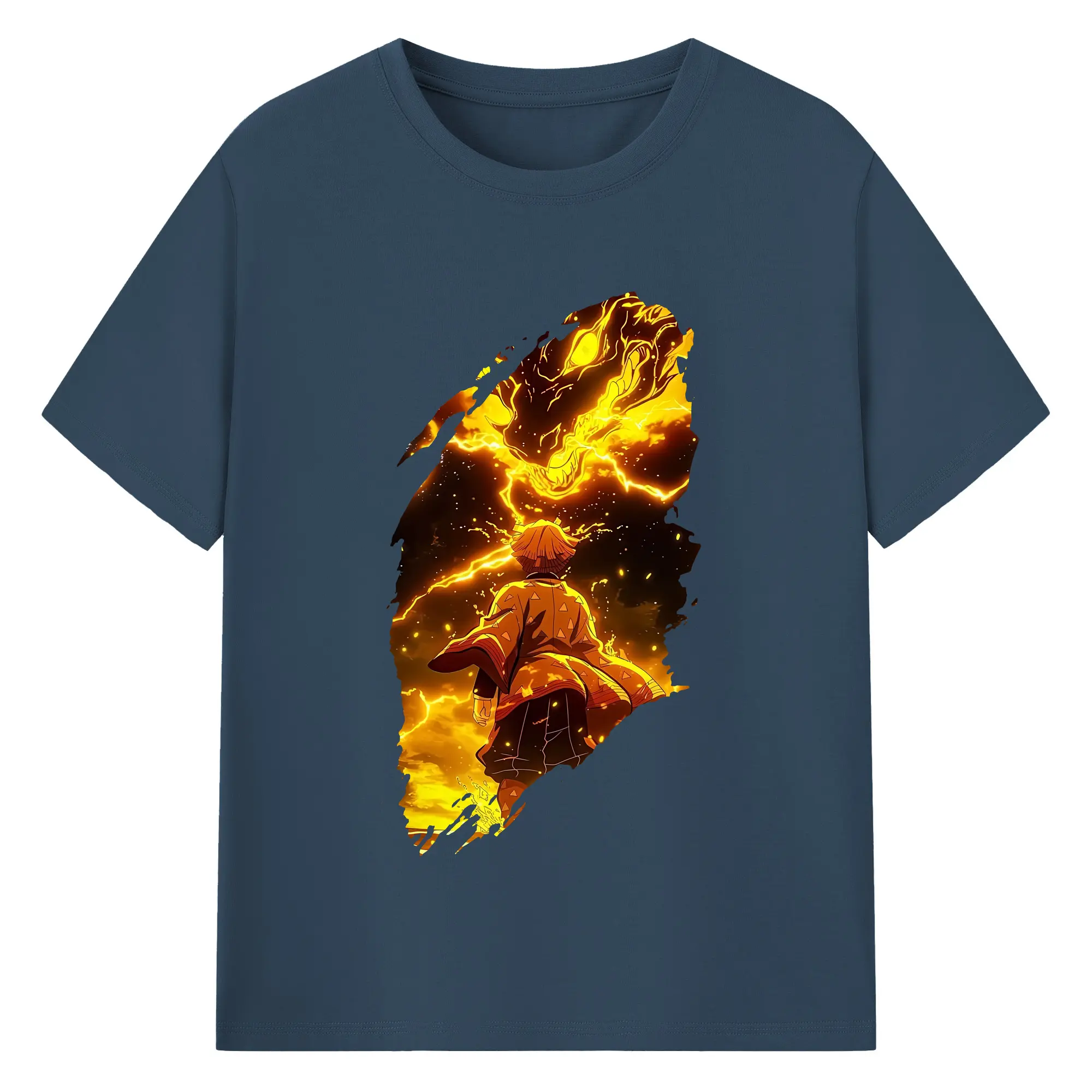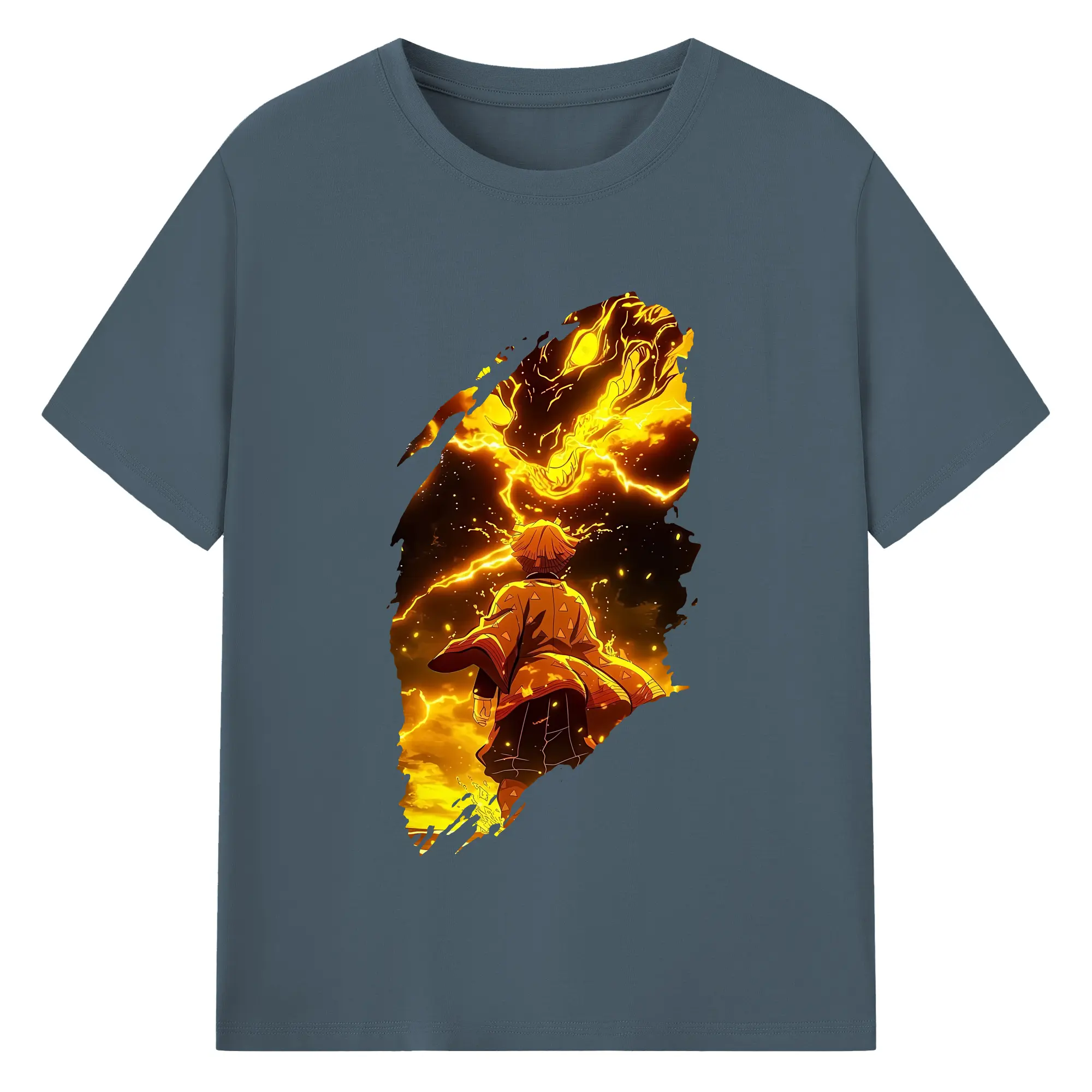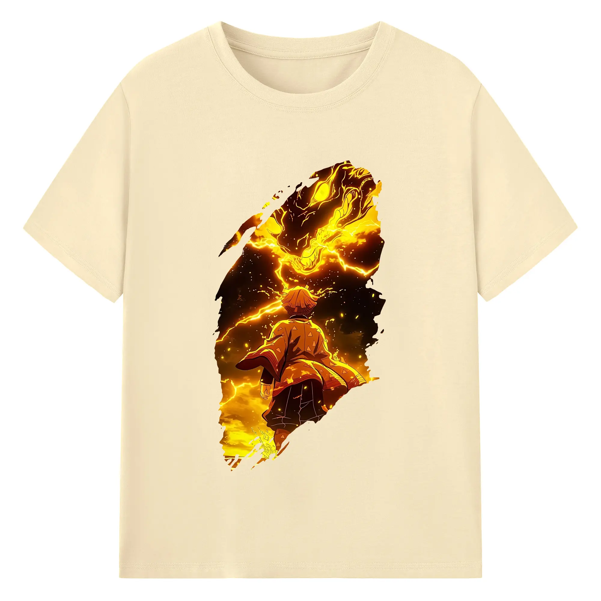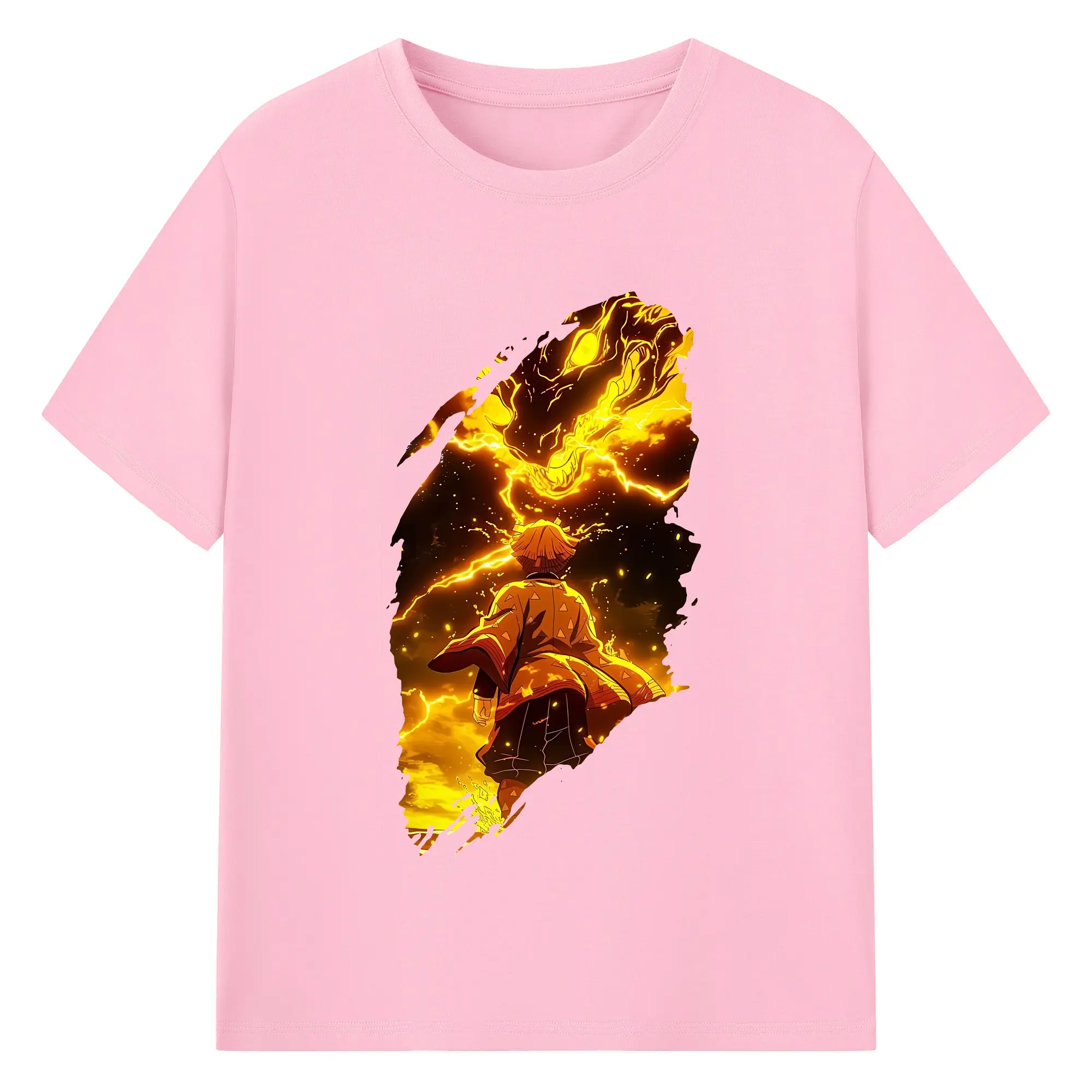 鬼滅の刃 グッズ,我妻 善逸 - 綿100% 半袖Tシャツ ・ バックプリント ・ 快適 通気性 ・ 日常使い 散歩 スポーツ用