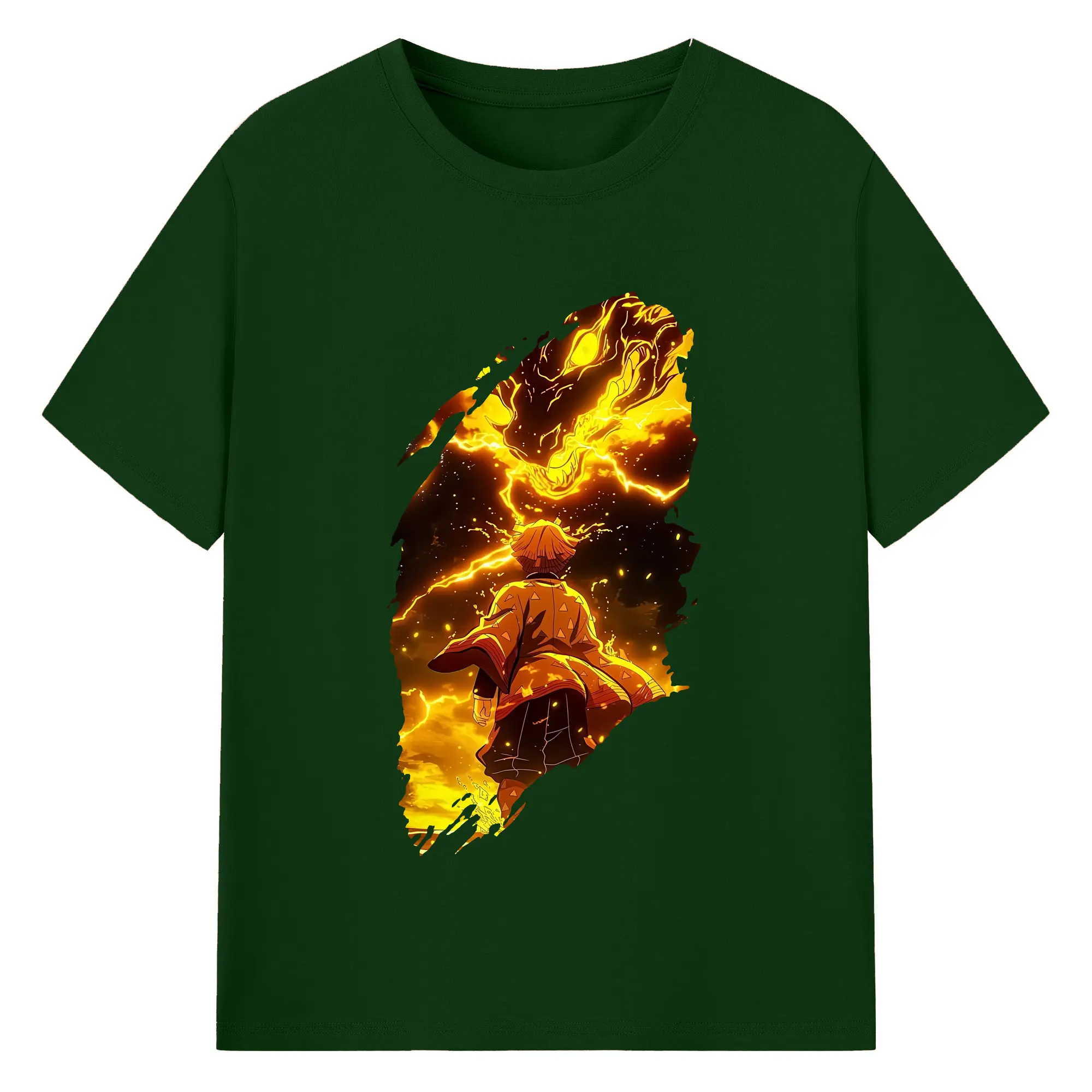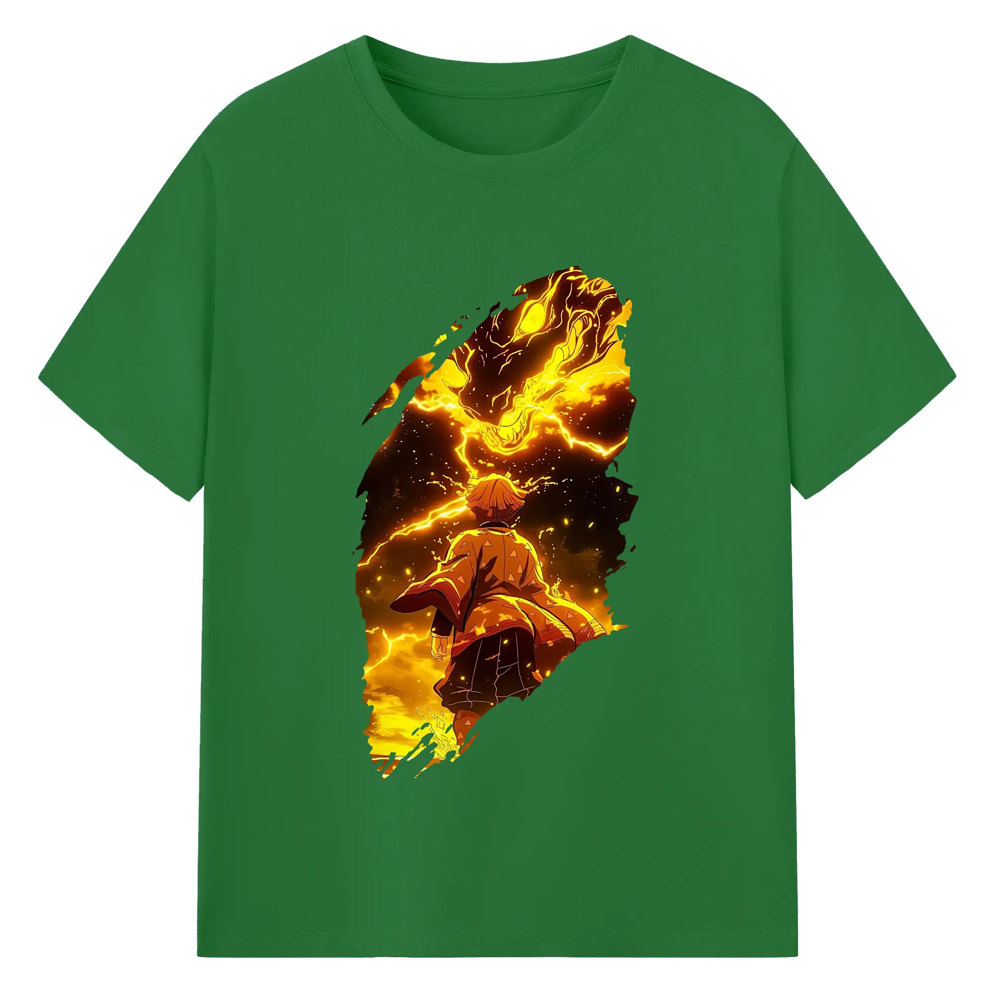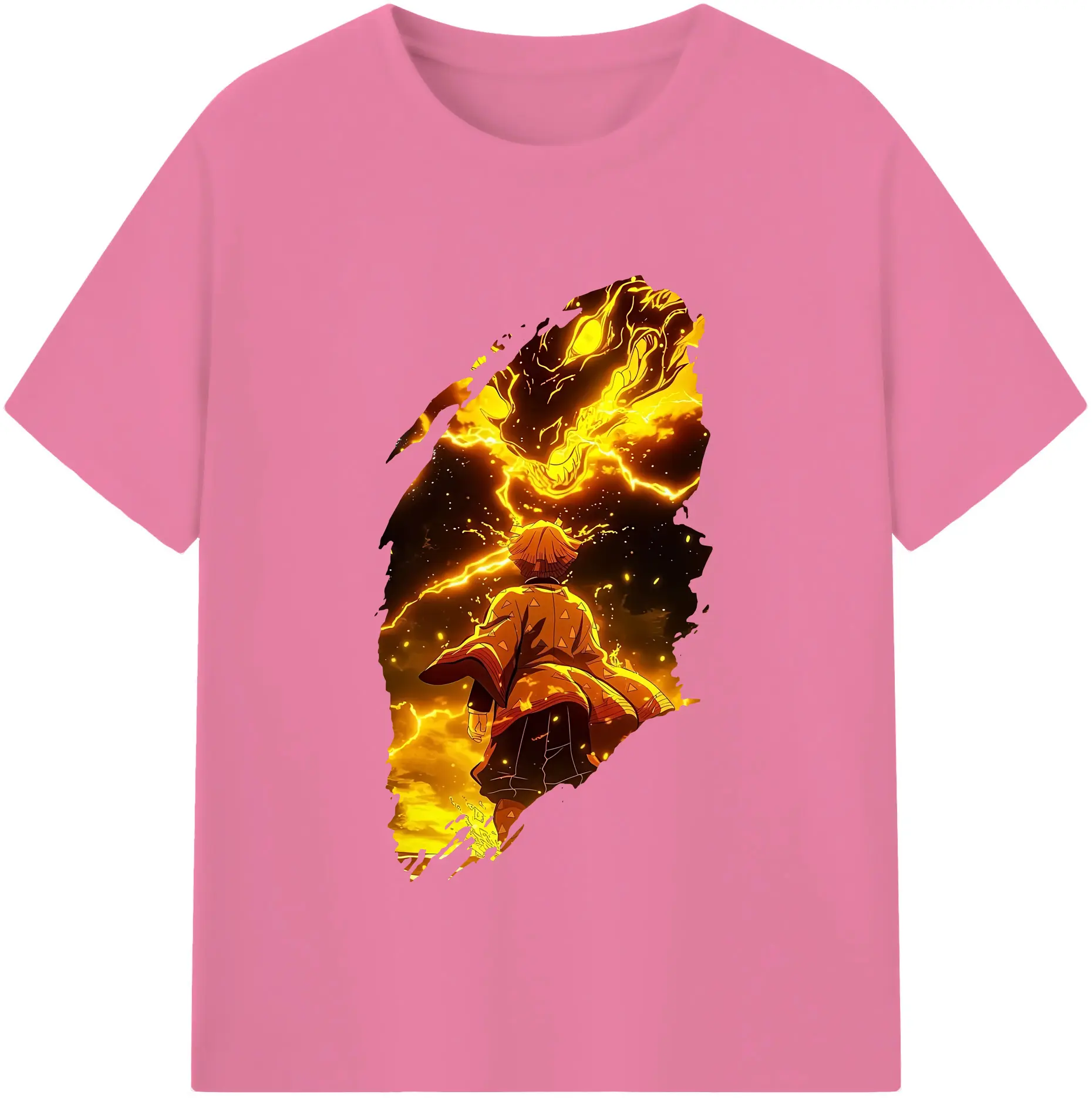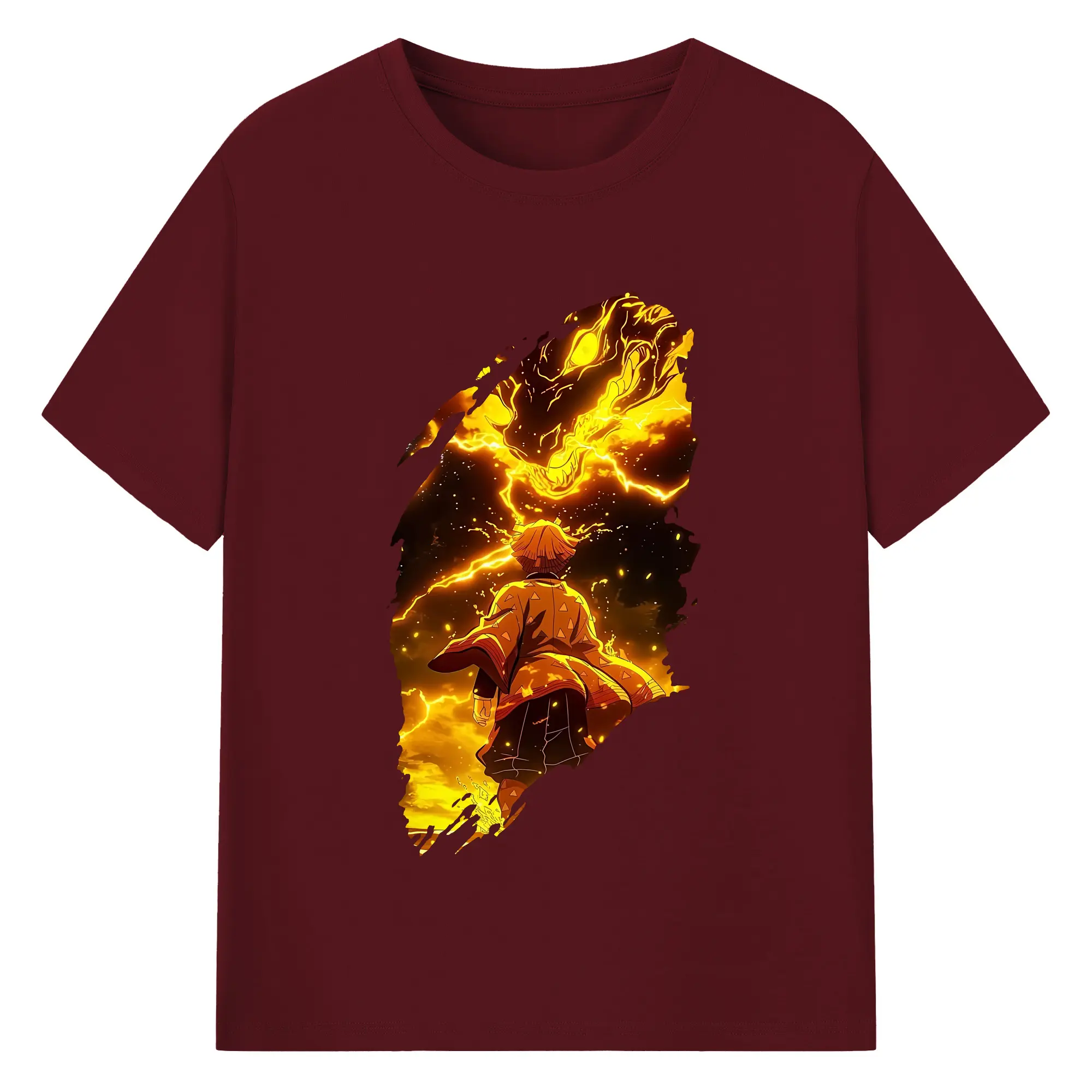 鬼滅の刃 グッズ,我妻 善逸 - 綿100% 半袖Tシャツ ・ バックプリント ・ 快適 通気性 ・ 日常使い 散歩 スポーツ用