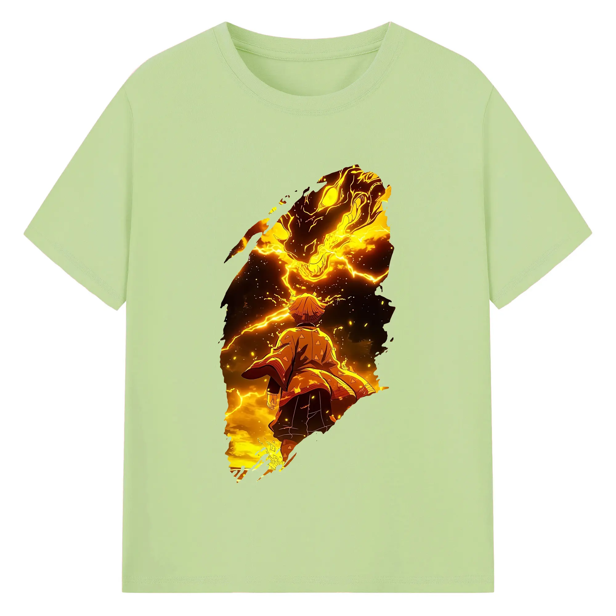 鬼滅の刃 グッズ,我妻 善逸 - 綿100% キッズTシャツ ・ フロントプリント ・ 快適 通気性 ・ スポーツ カジュアル 散歩用