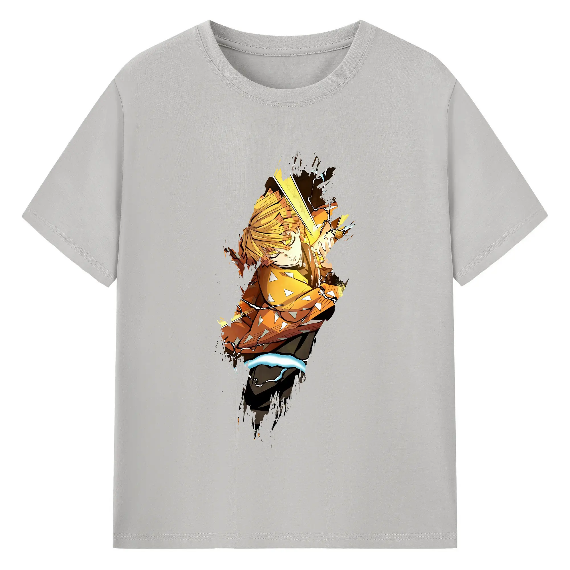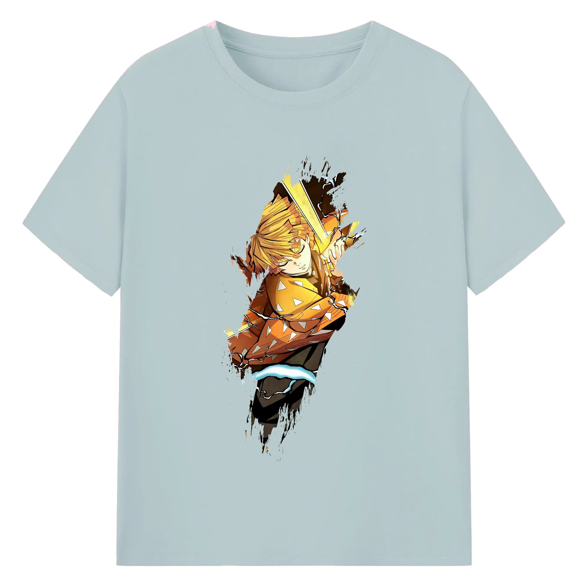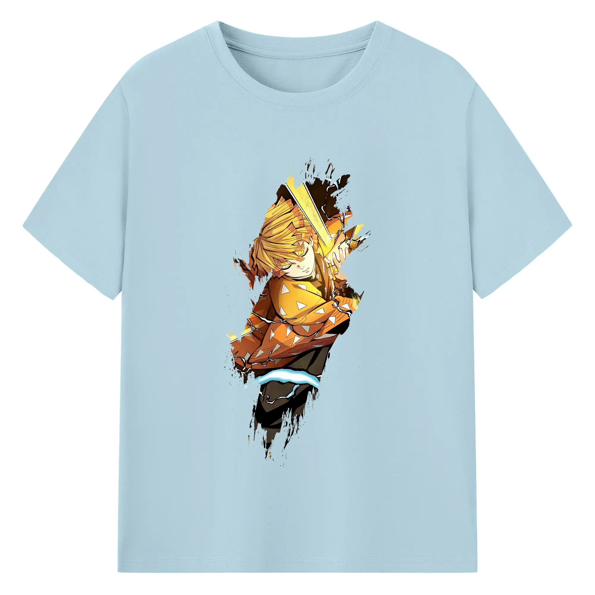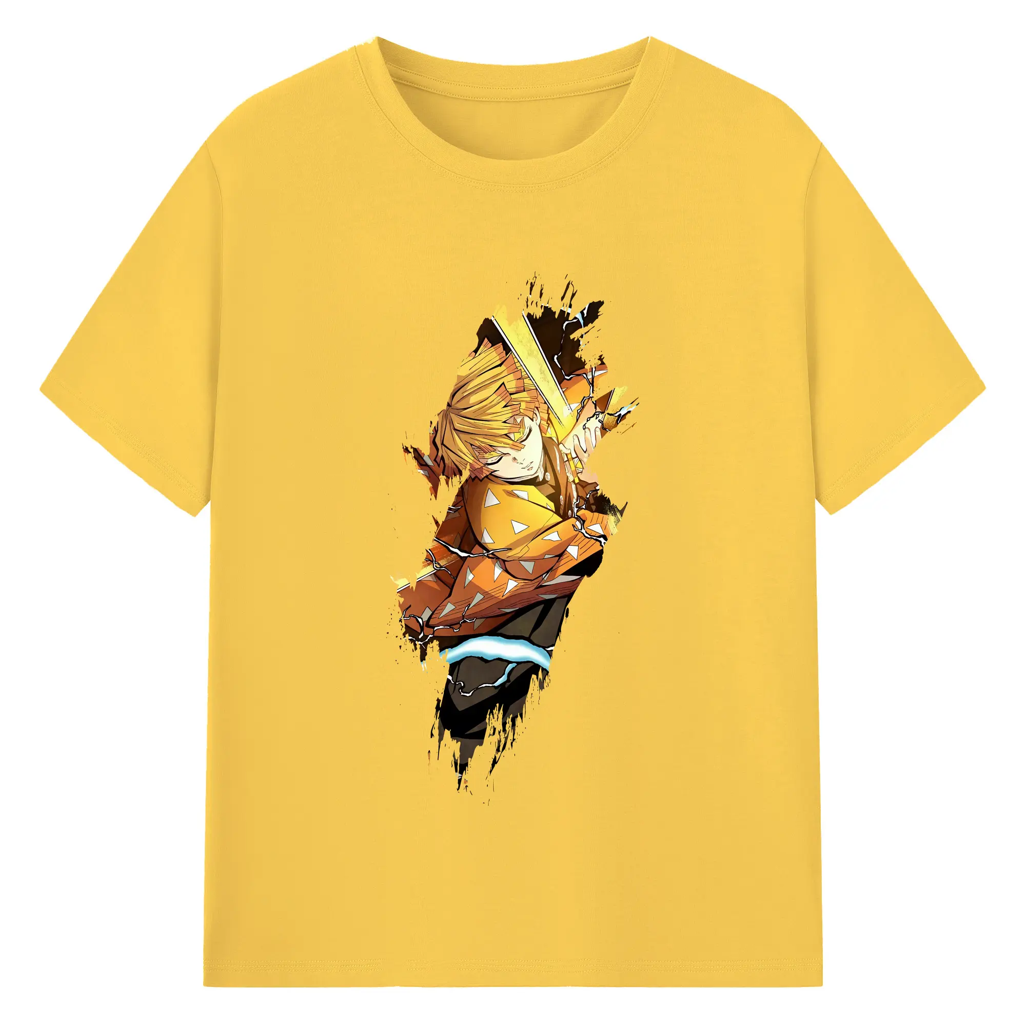 鬼滅の刃 グッズ,我妻 善逸 - 綿100% 半袖Tシャツ ・ バックプリント ・ 快適 通気性 ・ 日常使い 散歩 スポーツ用