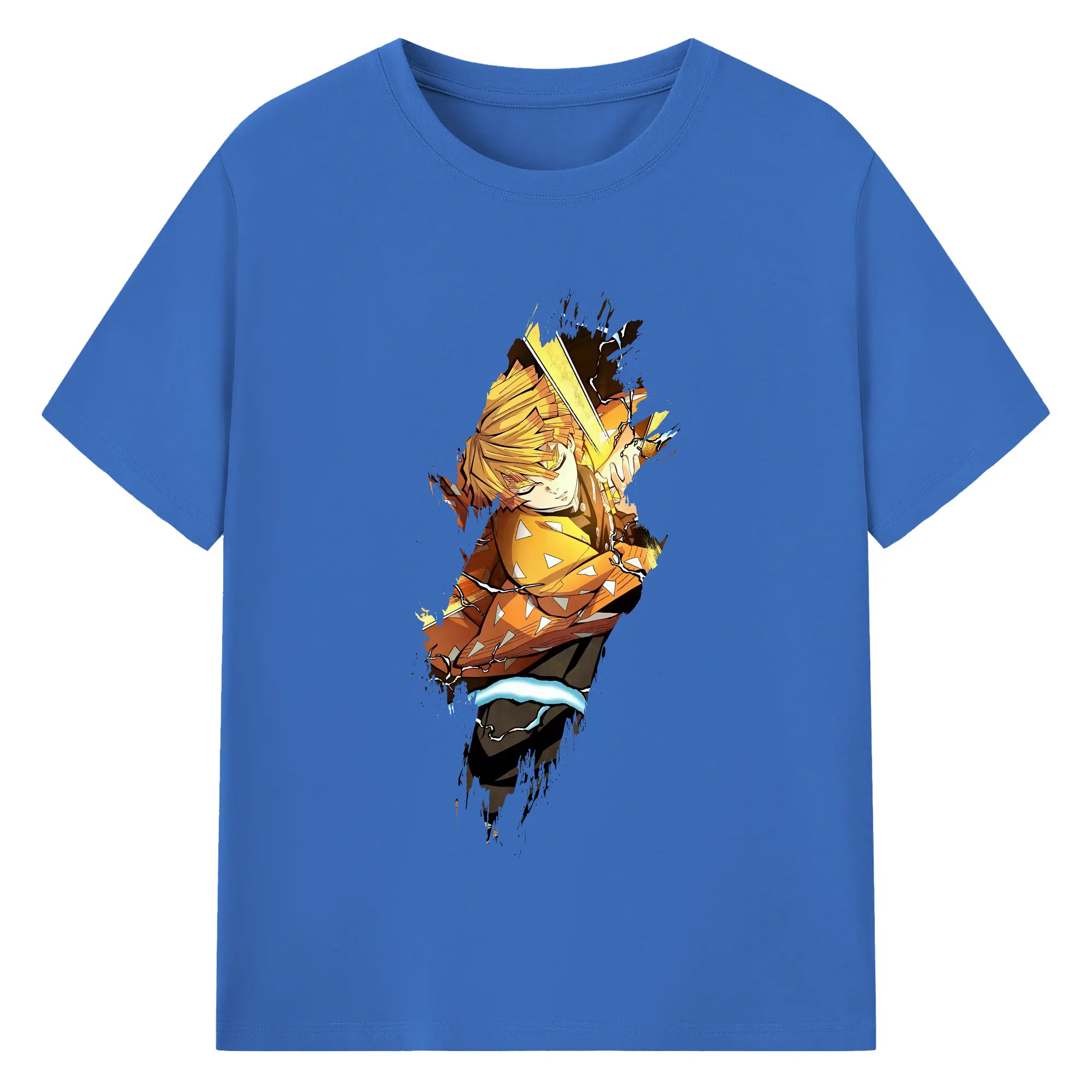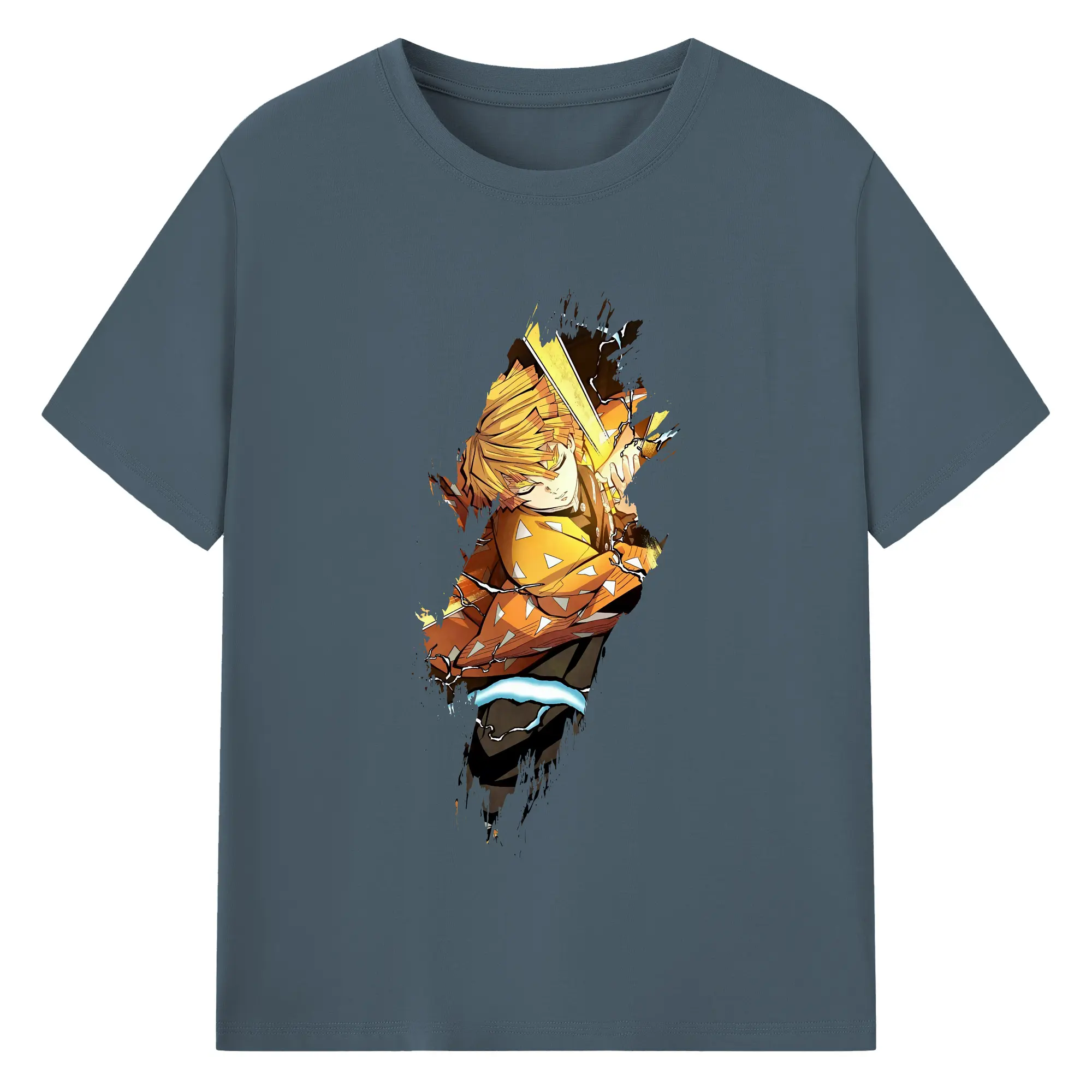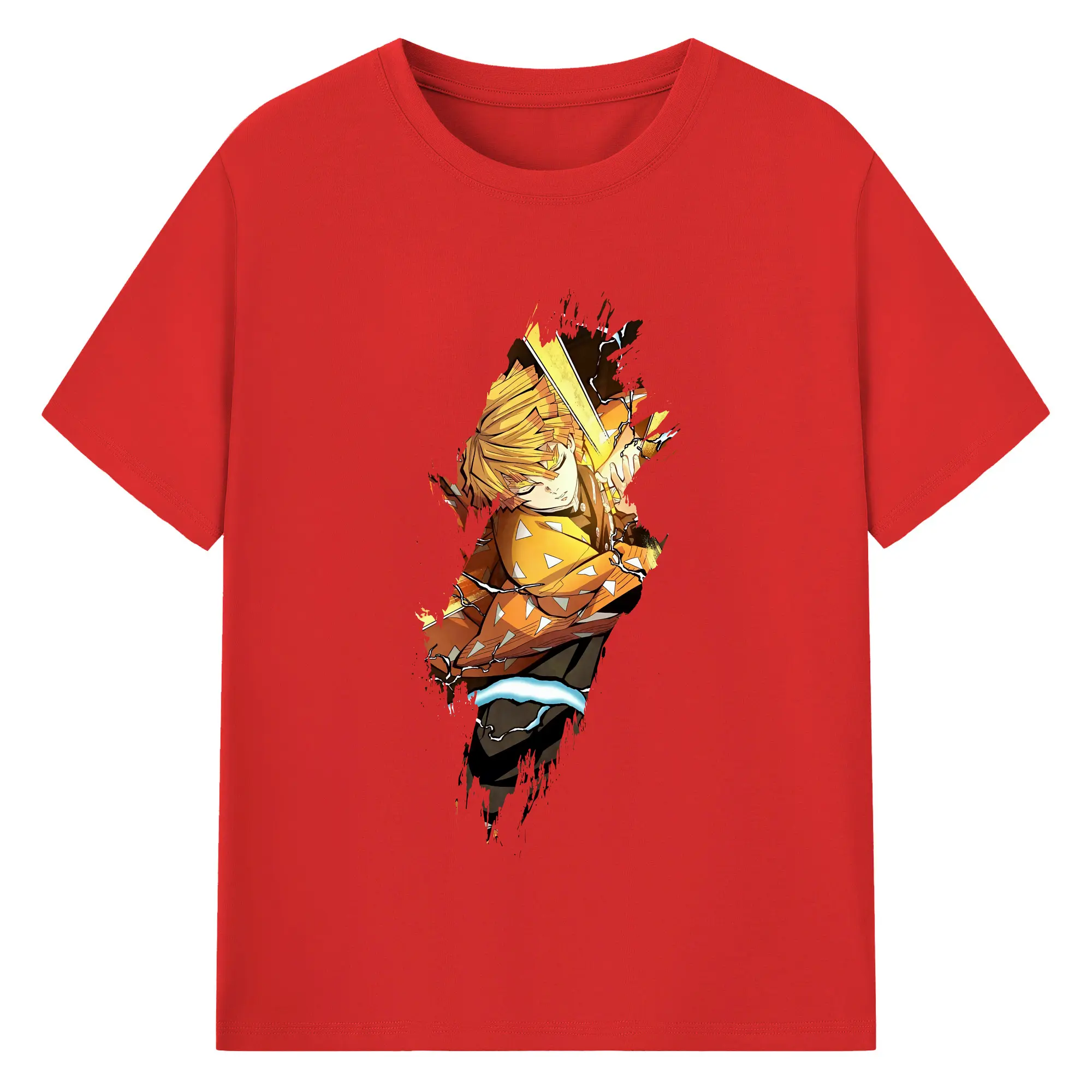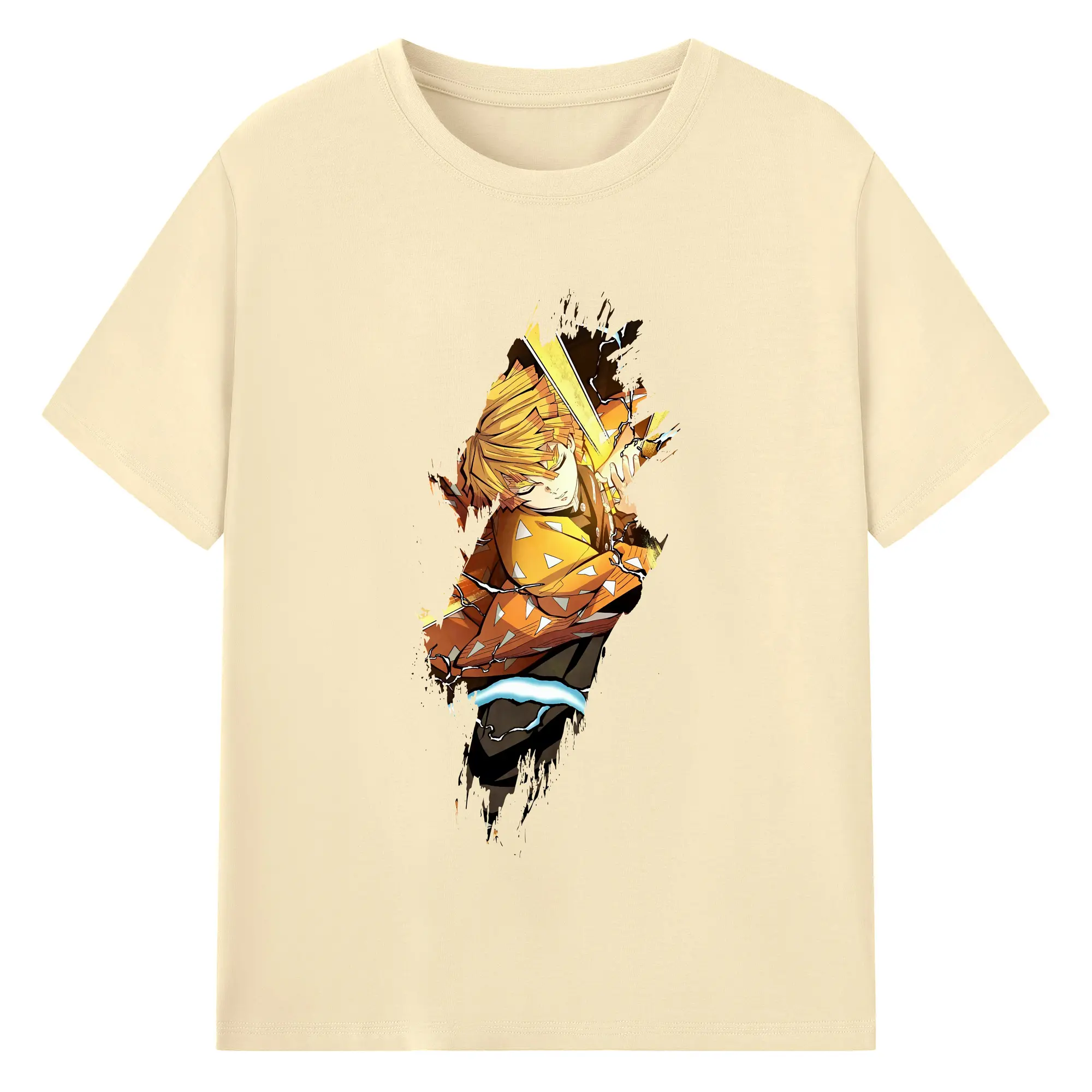 鬼滅の刃 グッズ,我妻 善逸 - 綿100% 半袖Tシャツ ・ バックプリント ・ 快適 通気性 ・ 日常使い 散歩 スポーツ用