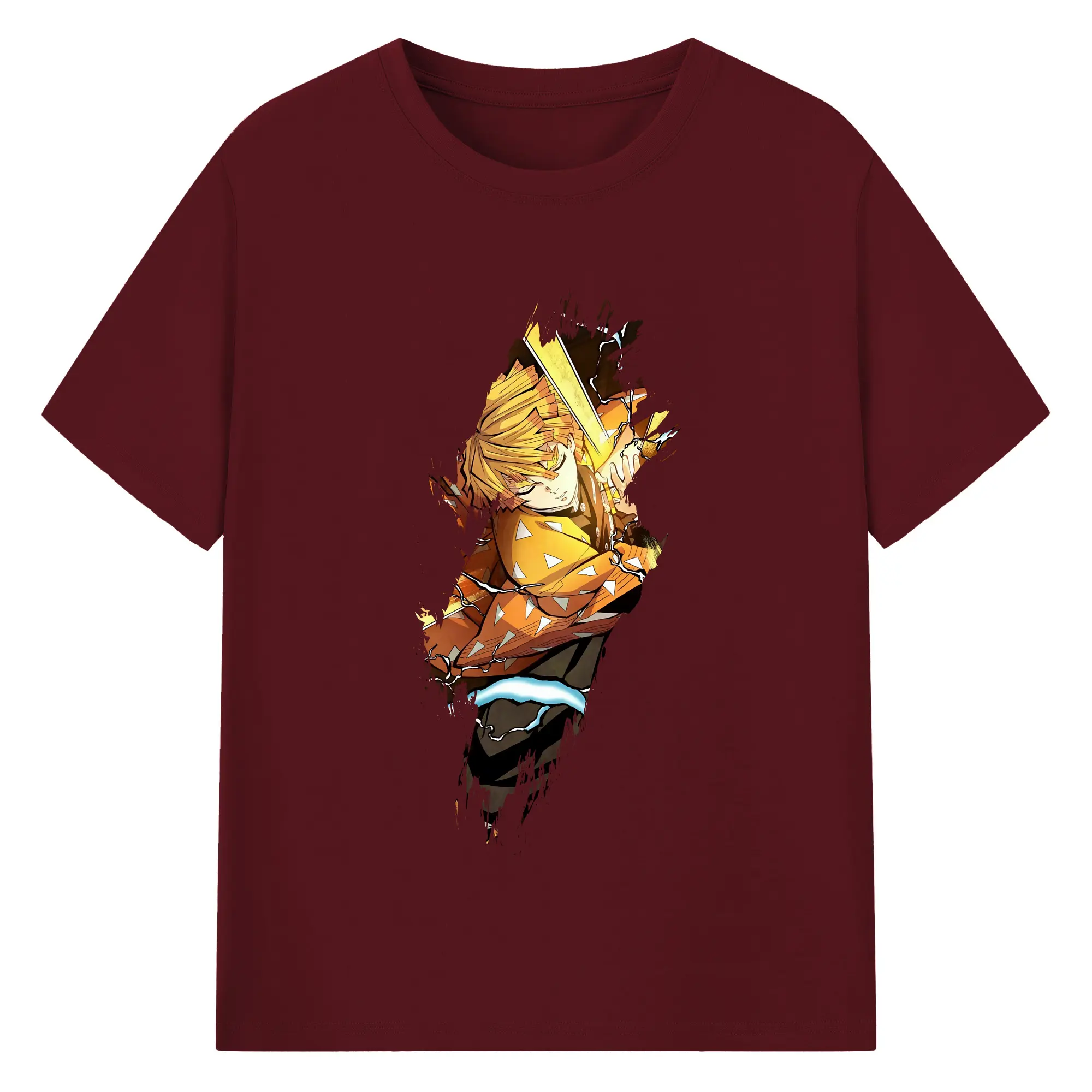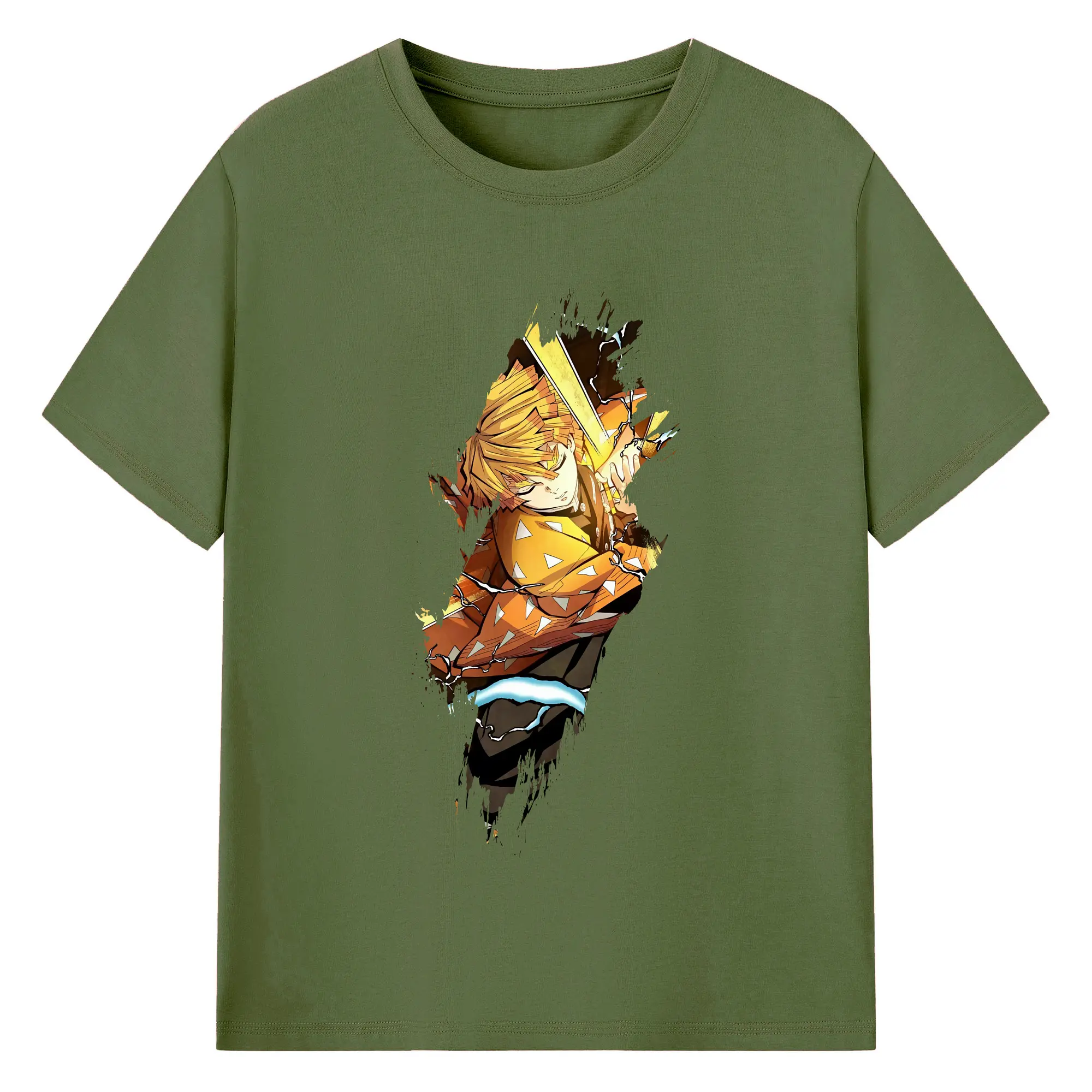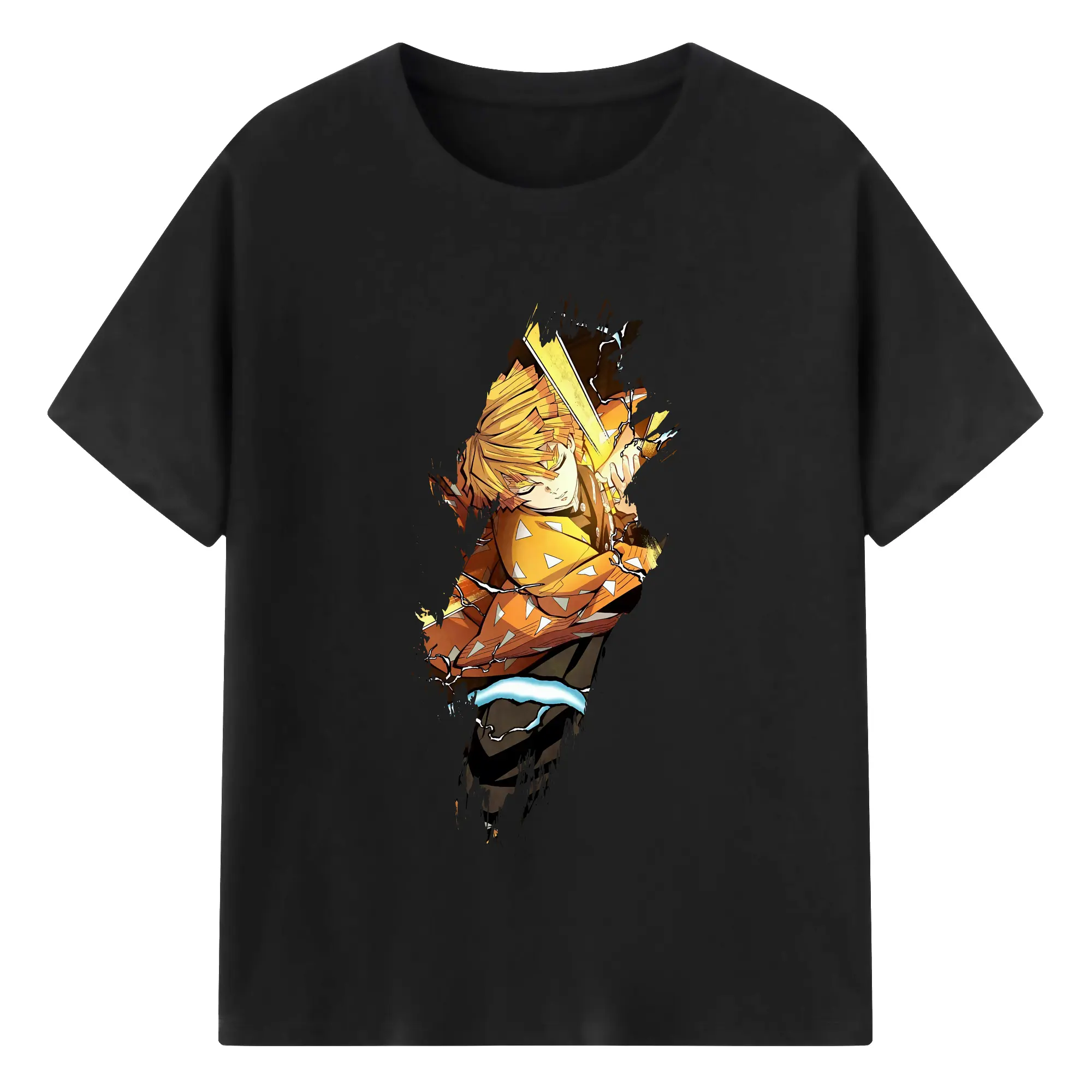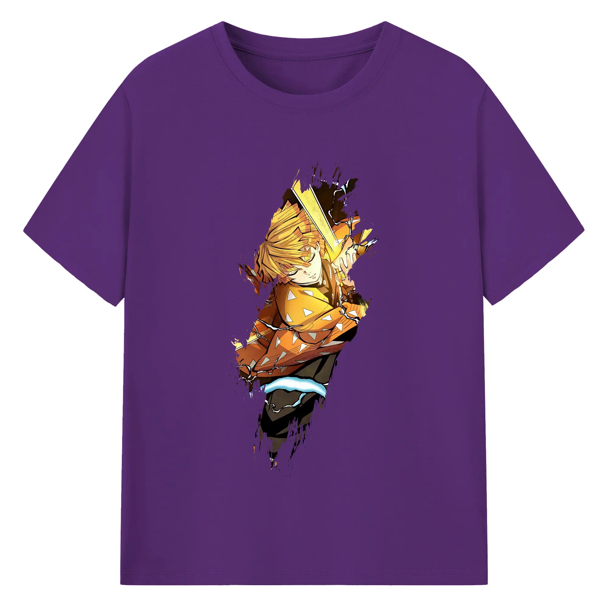 鬼滅の刃 グッズ,我妻 善逸 - 綿100% 半袖Tシャツ ・ バックプリント ・ 快適 通気性 ・ 日常使い 散歩 スポーツ用