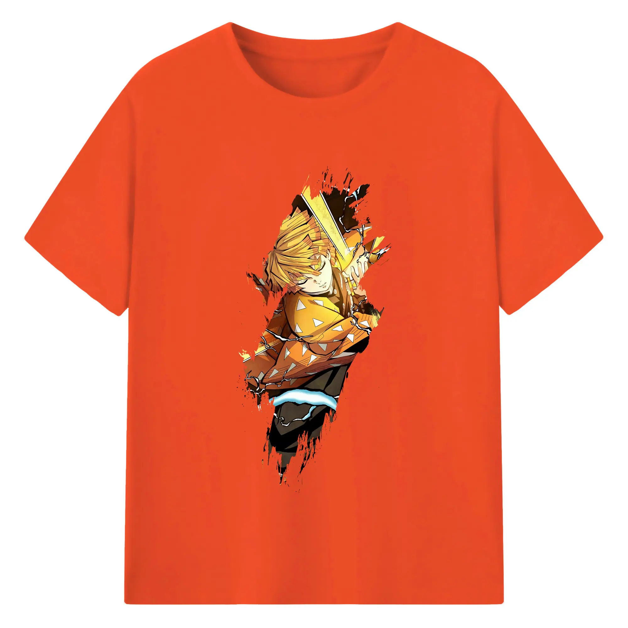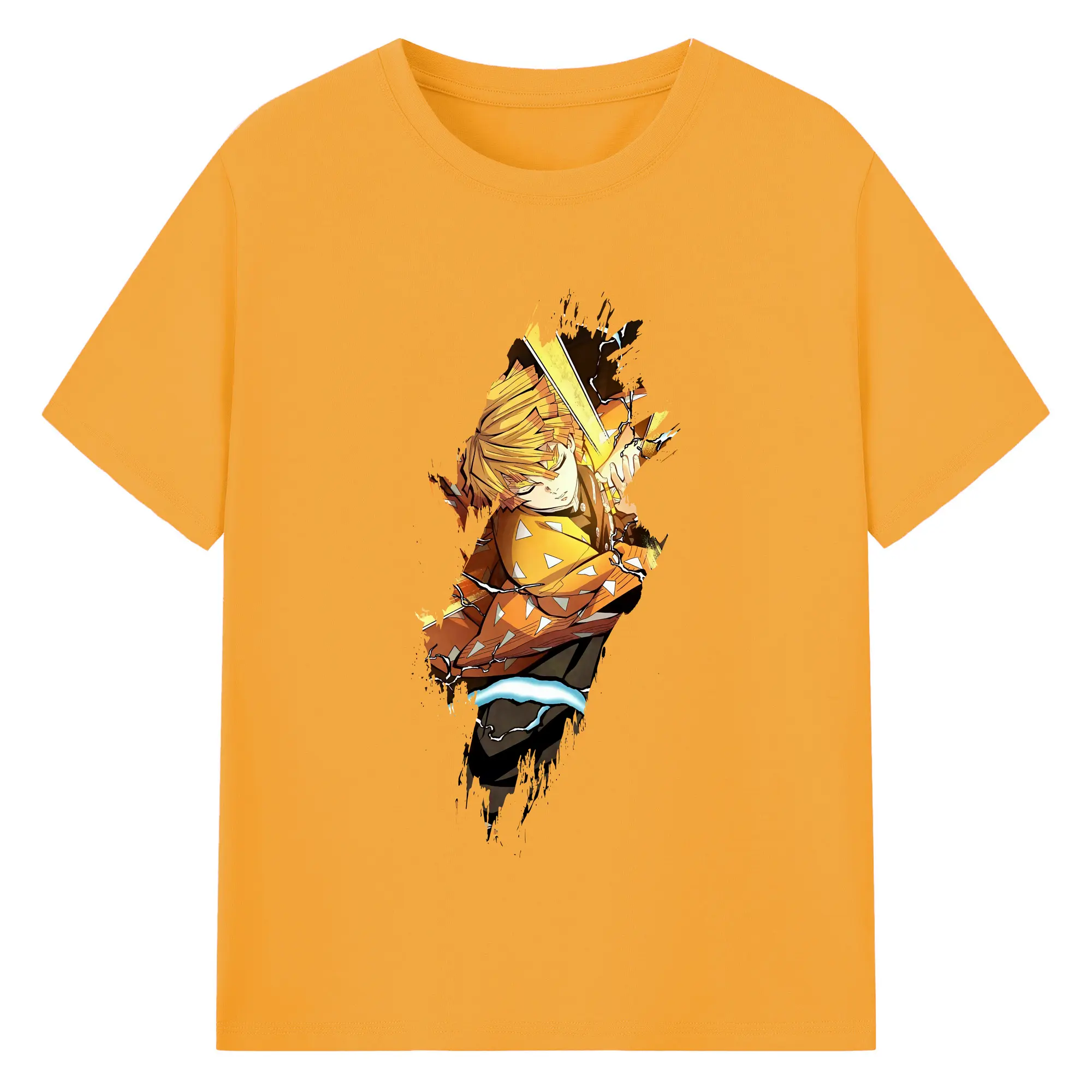 鬼滅の刃 グッズ,我妻 善逸 - 綿100% キッズTシャツ ・ フロントプリント ・ 快適 通気性 ・ スポーツ カジュアル 散歩用