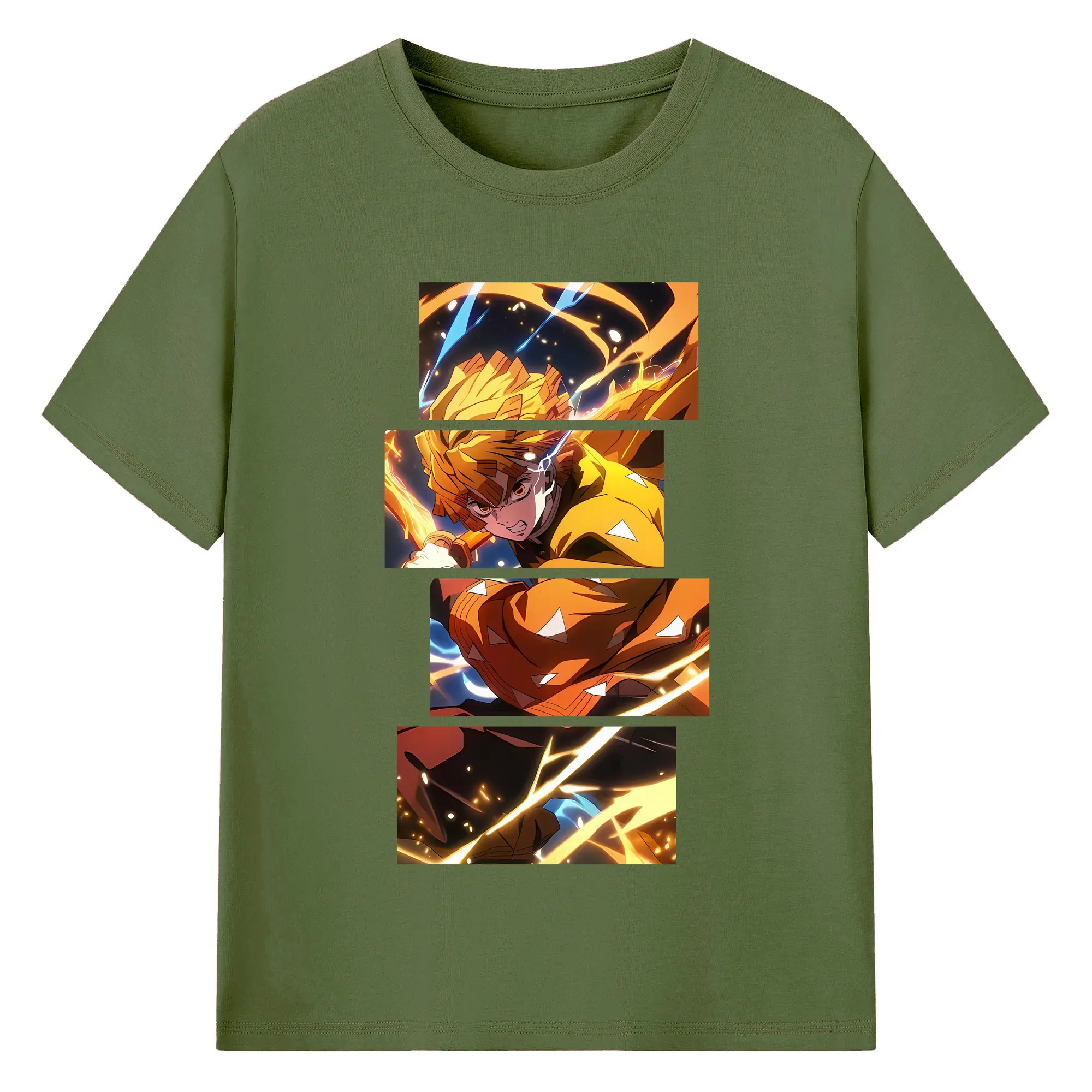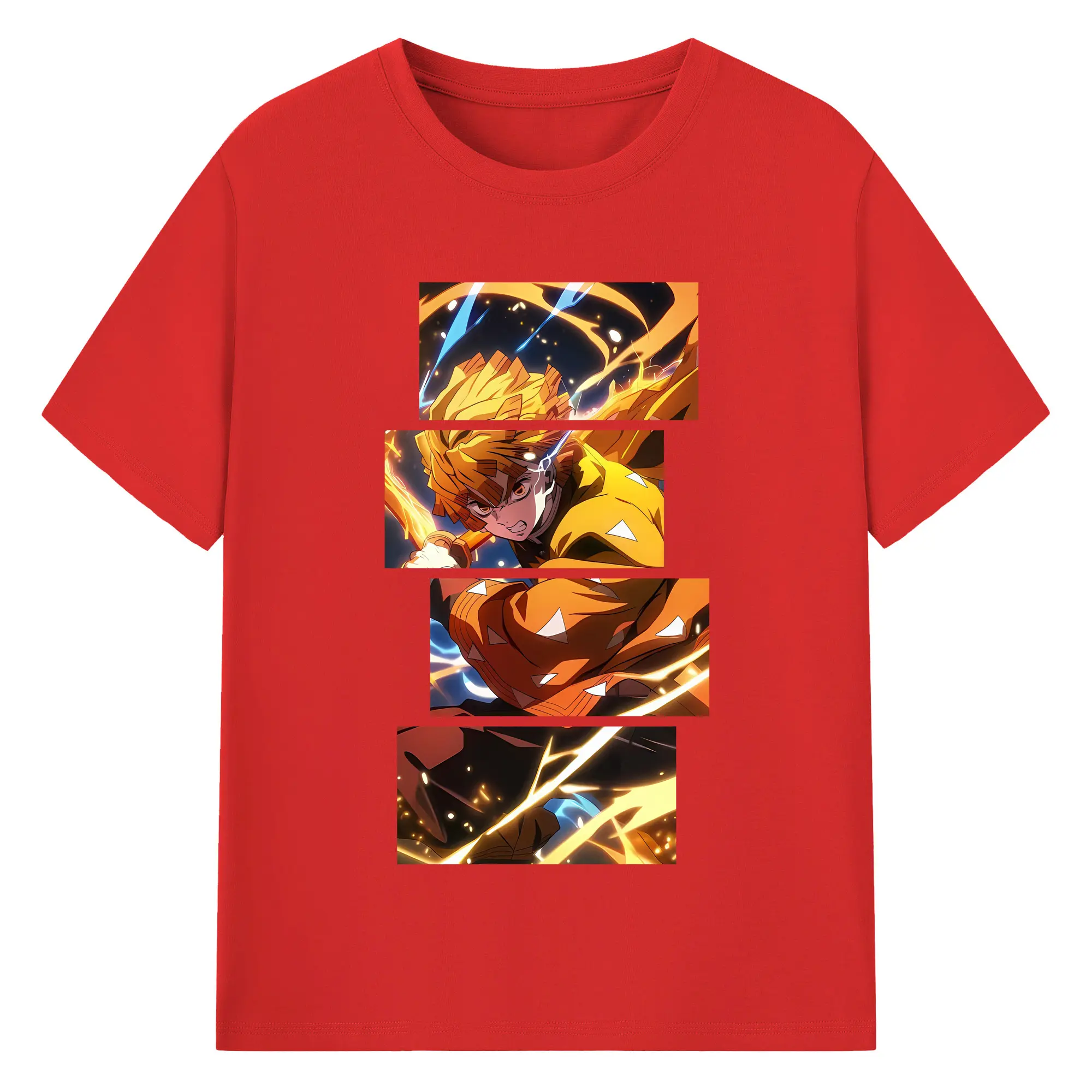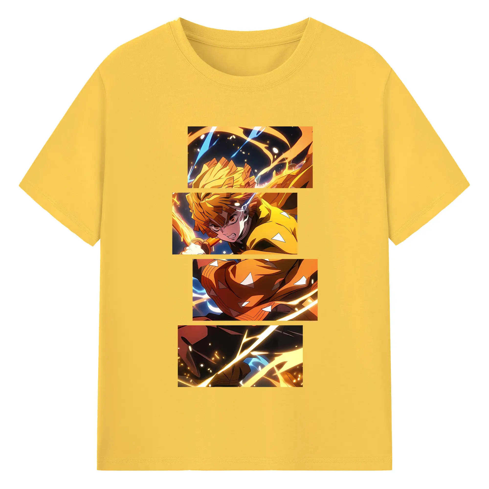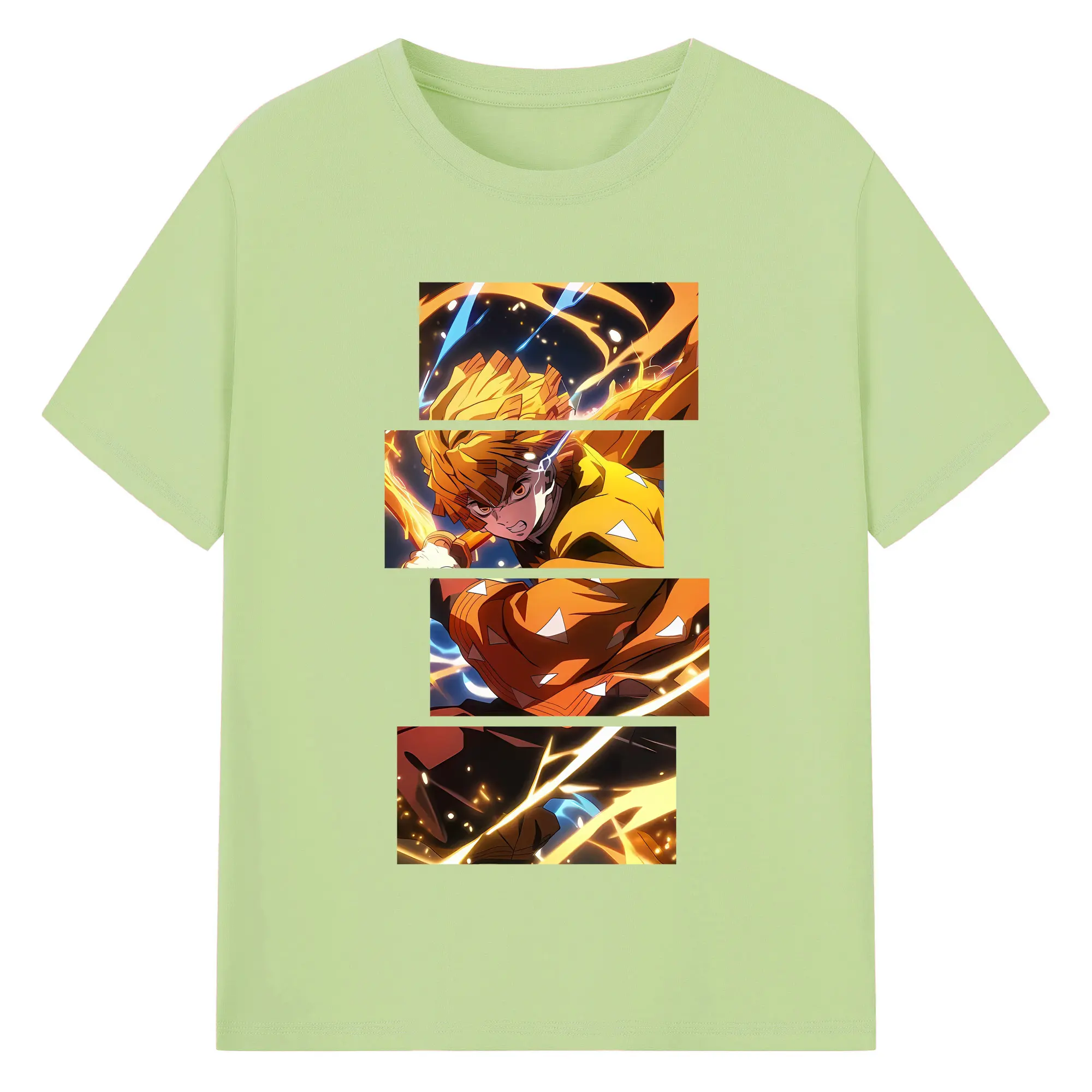 鬼滅の刃 グッズ,我妻 善逸 - 綿100% 半袖Tシャツ ・ バックプリント ・ 快適 通気性 ・ 日常使い 散歩 スポーツ用