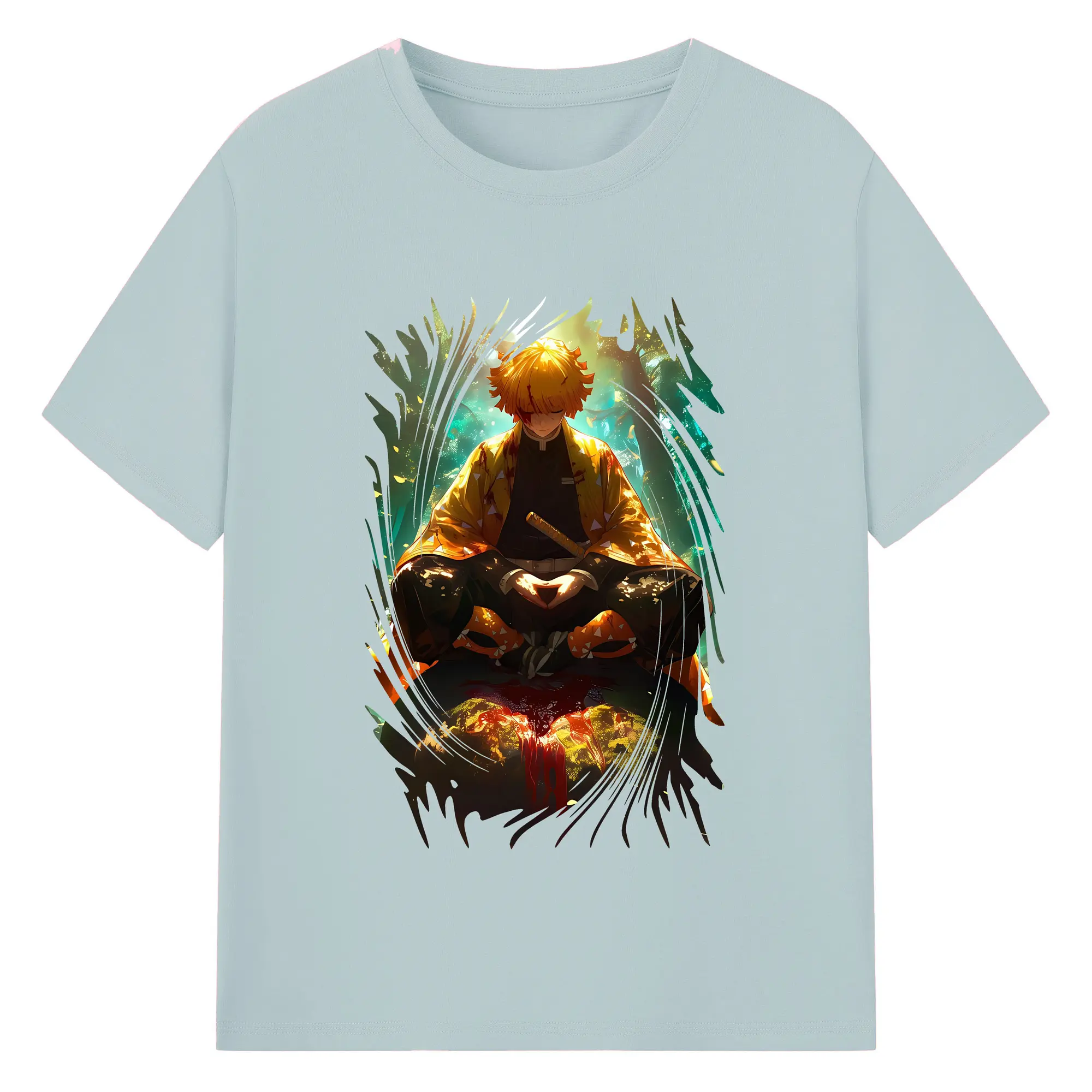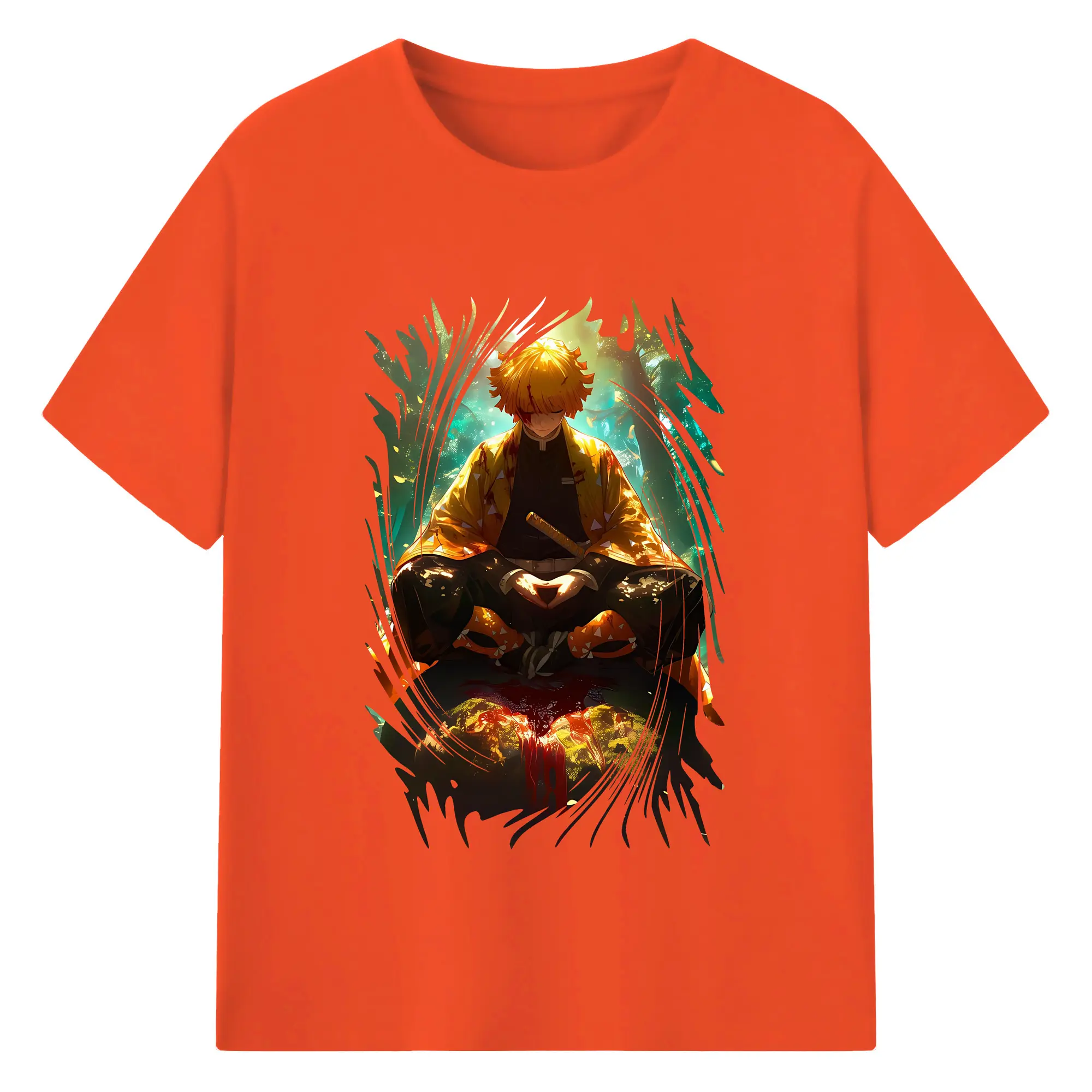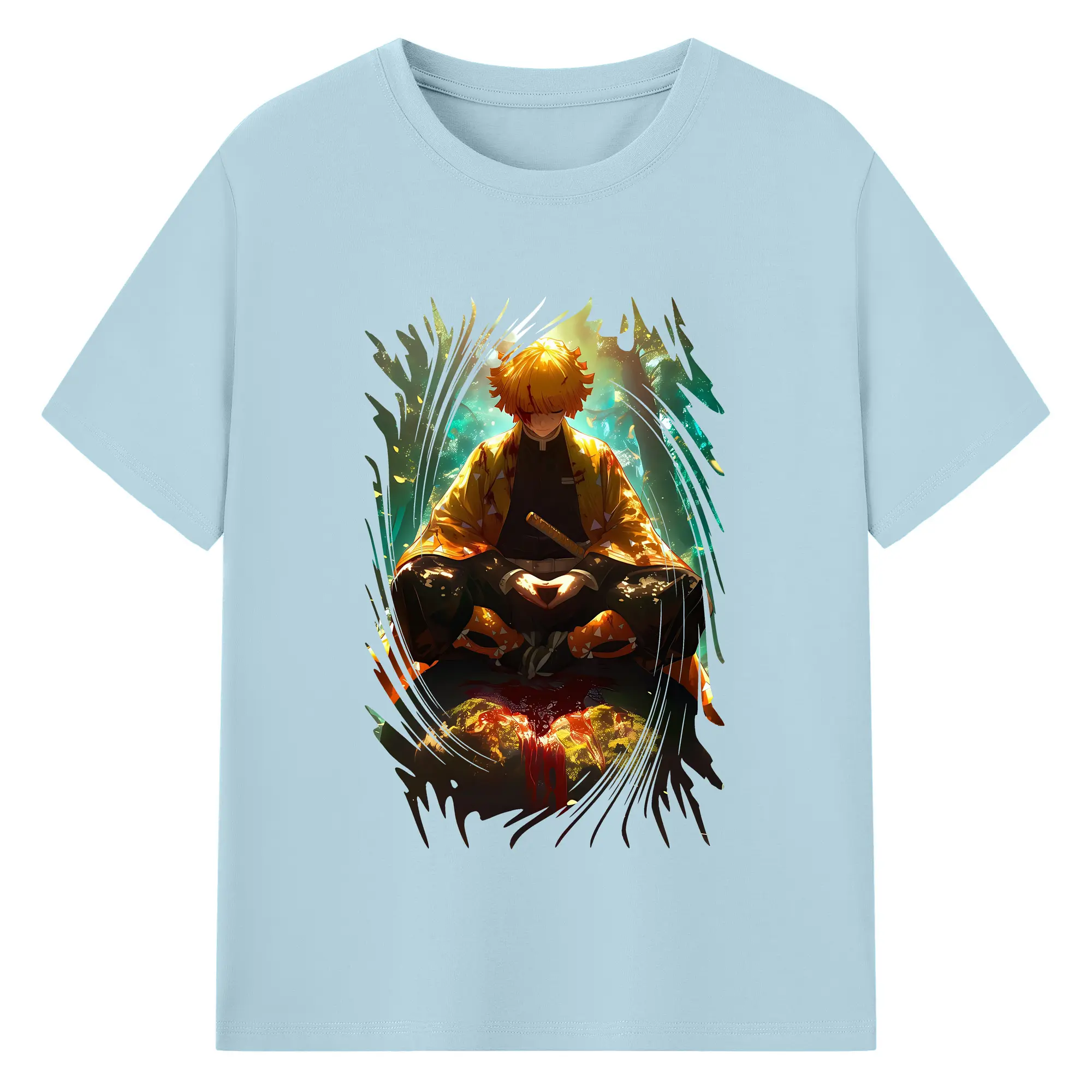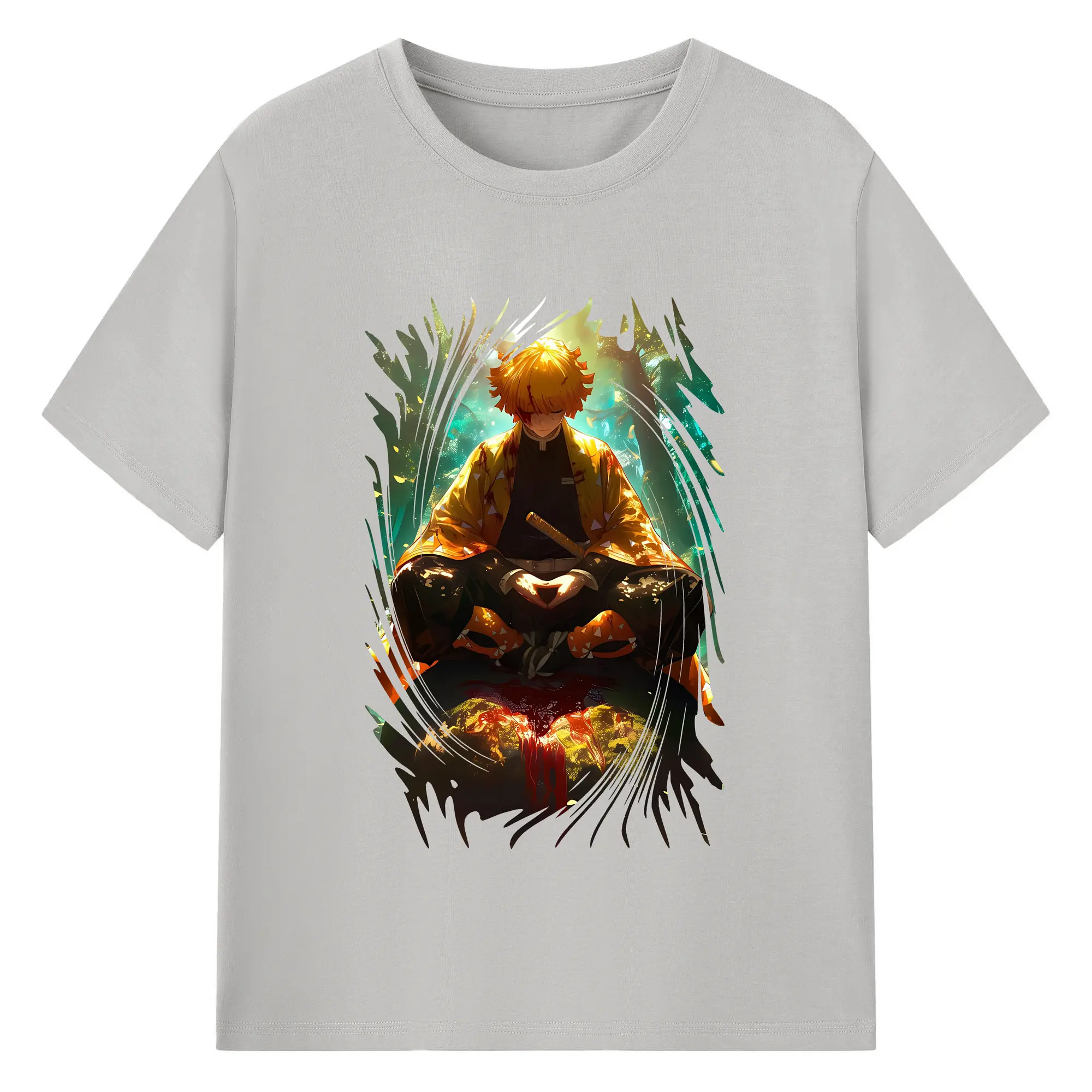 鬼滅の刃 グッズ,我妻 善逸 - 綿100% 半袖Tシャツ ・ バックプリント ・ 快適 通気性 ・ 日常使い 散歩 スポーツ用