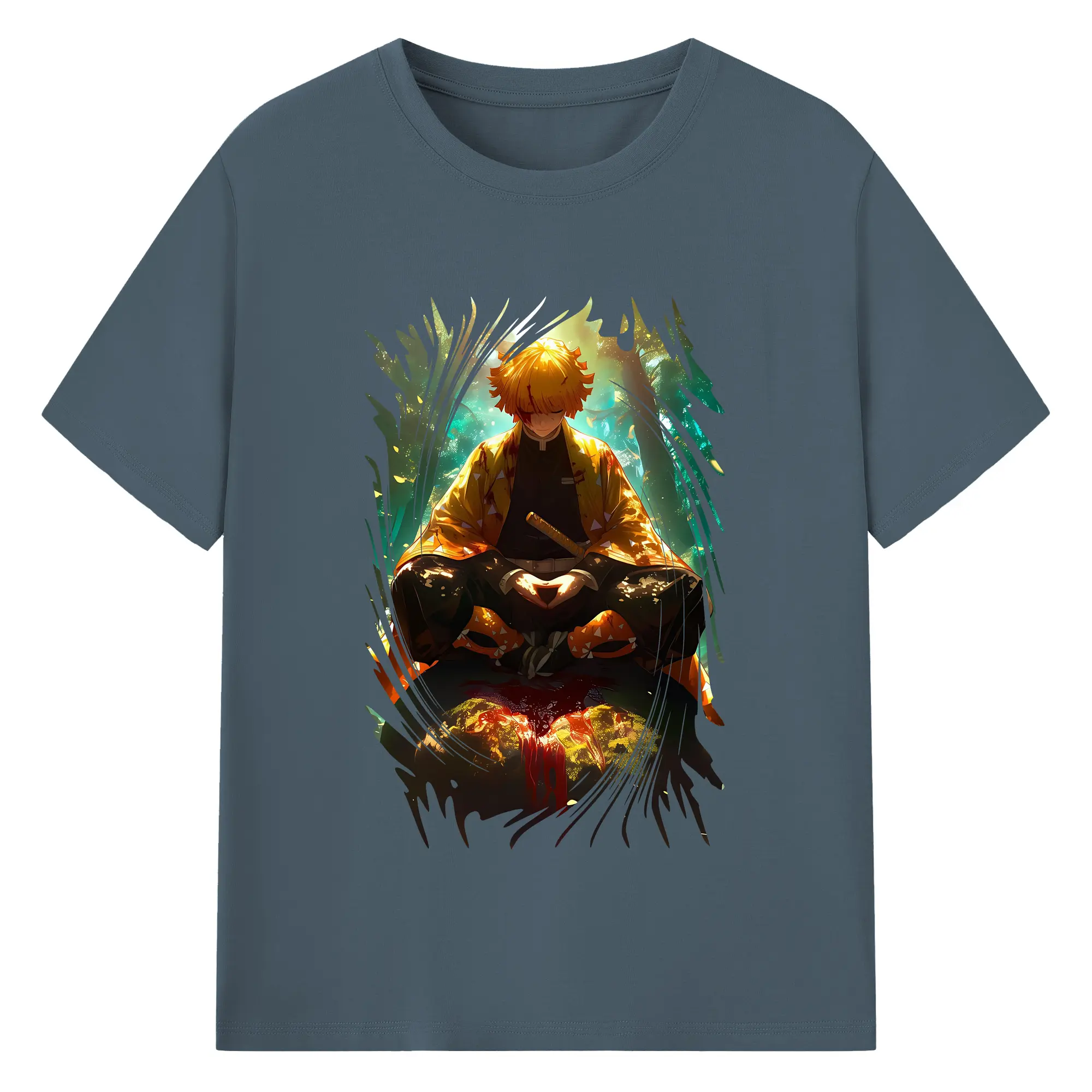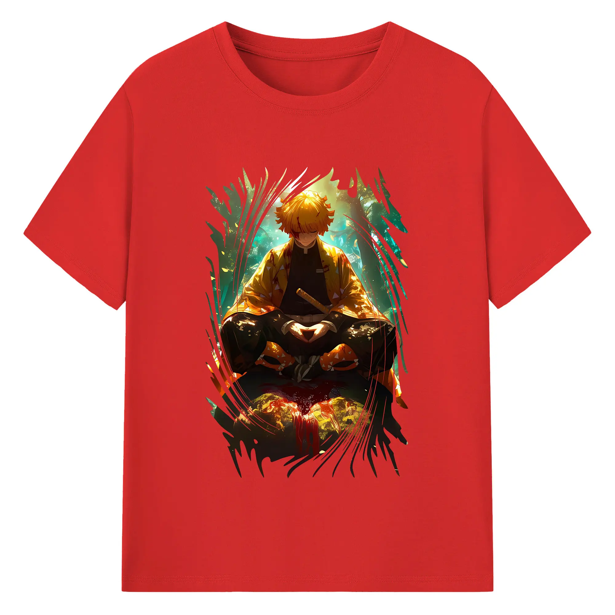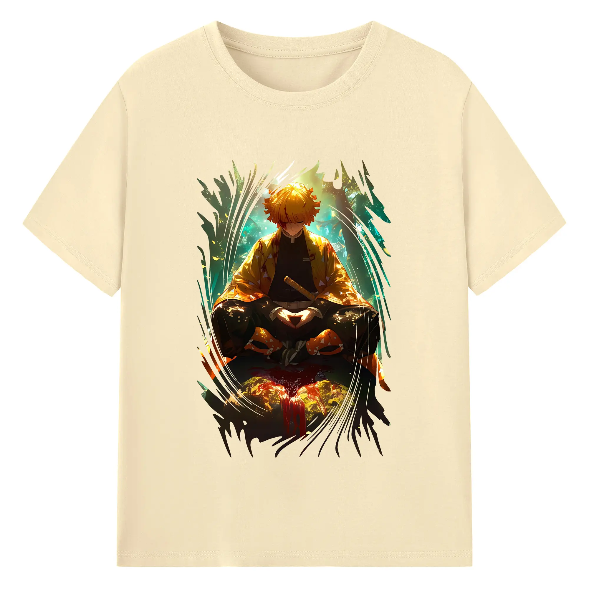 鬼滅の刃 グッズ,我妻 善逸 - 綿100% 半袖Tシャツ ・ バックプリント ・ 快適 通気性 ・ 日常使い 散歩 スポーツ用