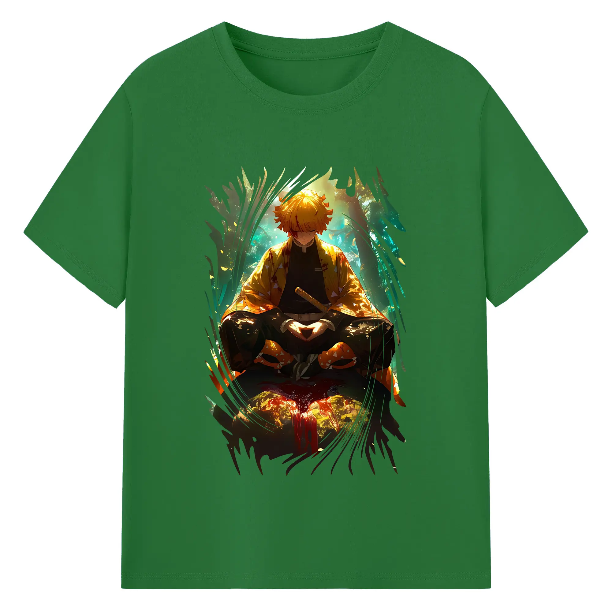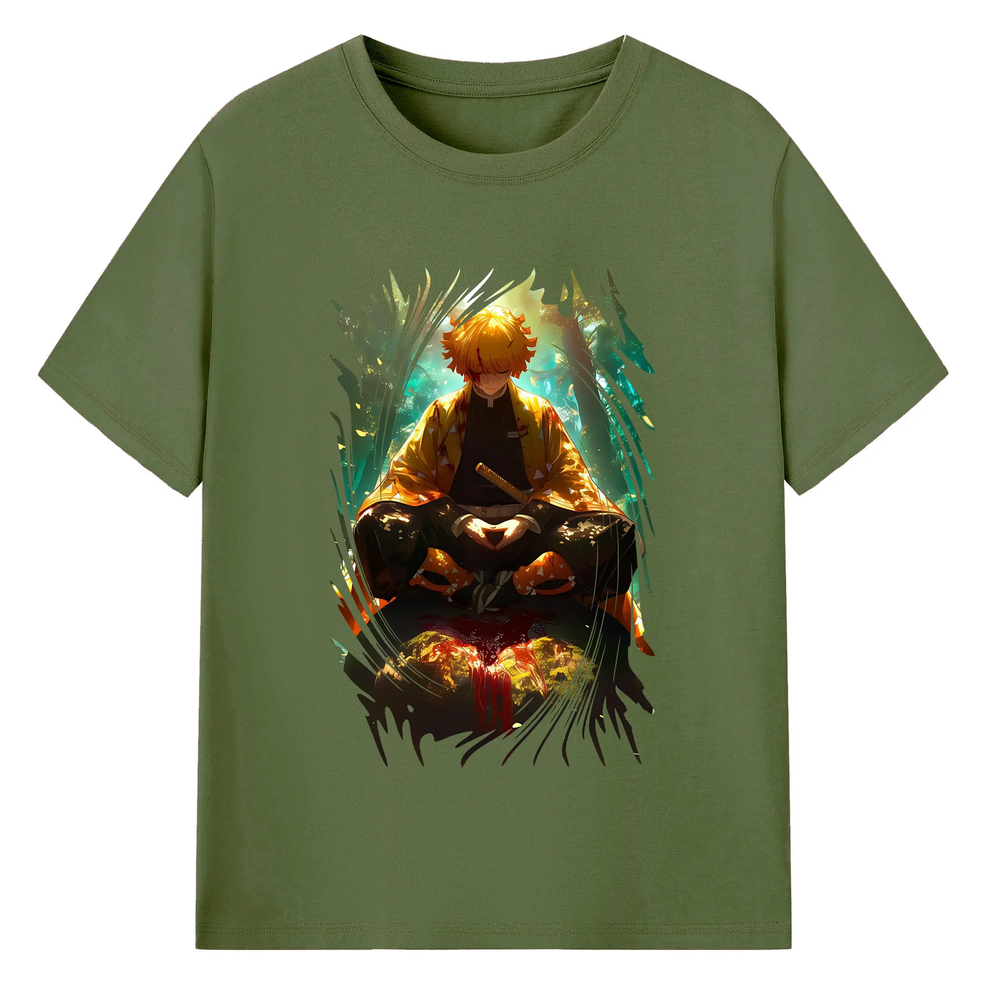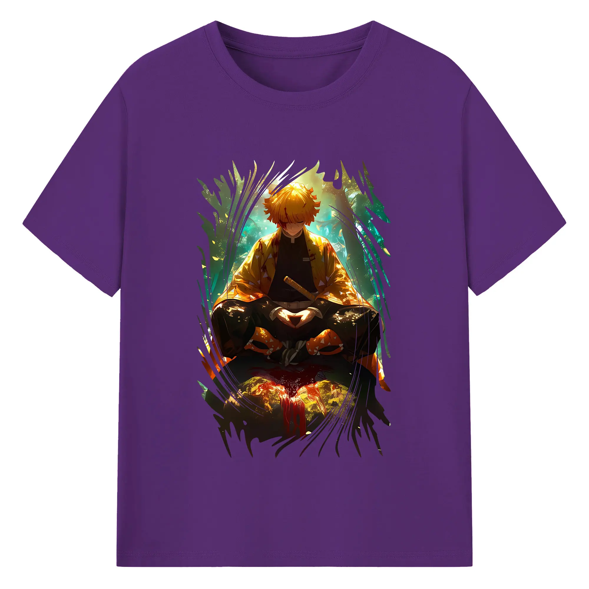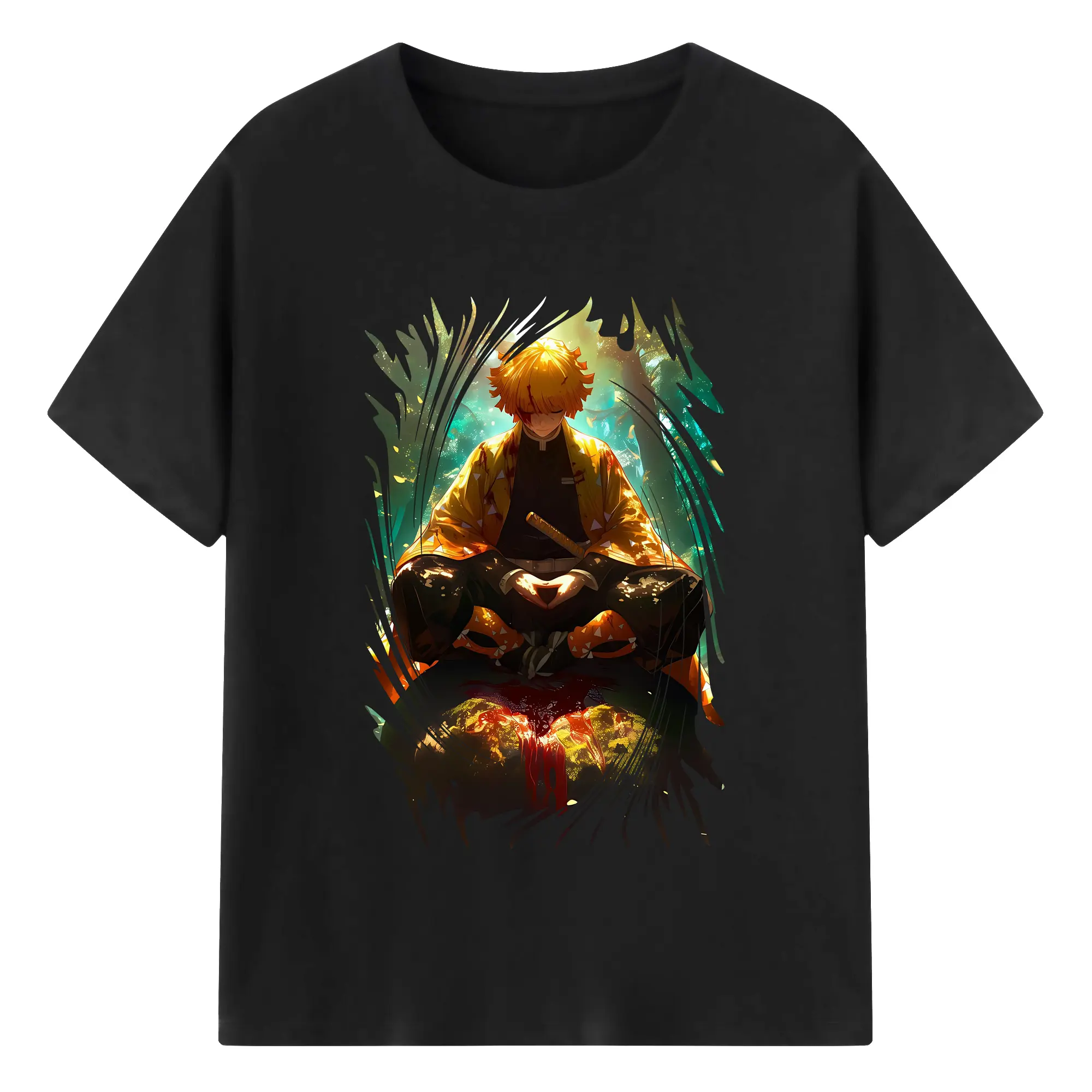 鬼滅の刃 グッズ,我妻 善逸 - 綿100% 半袖Tシャツ ・ バックプリント ・ 快適 通気性 ・ 日常使い 散歩 スポーツ用