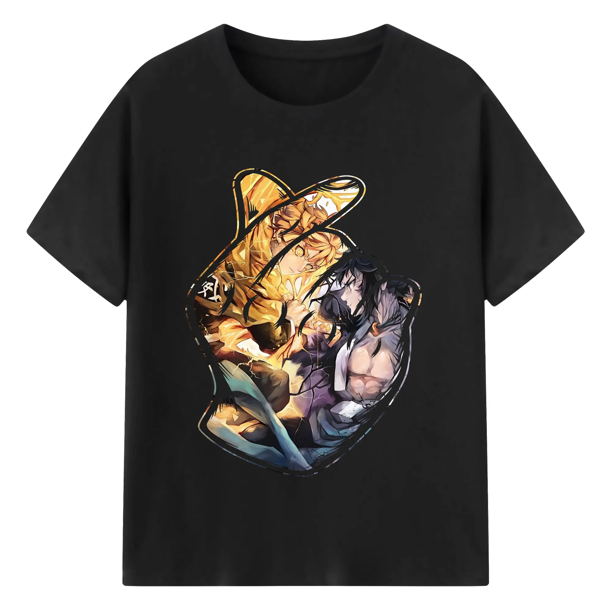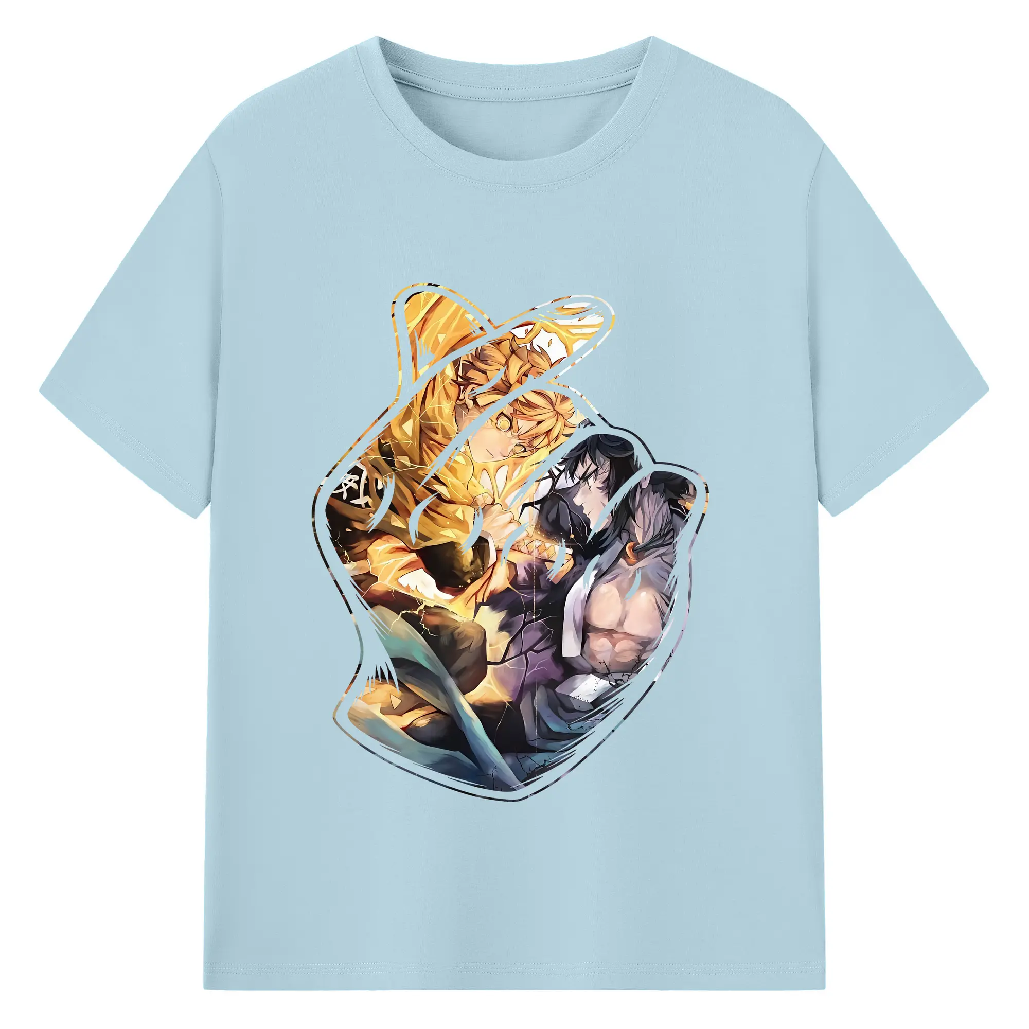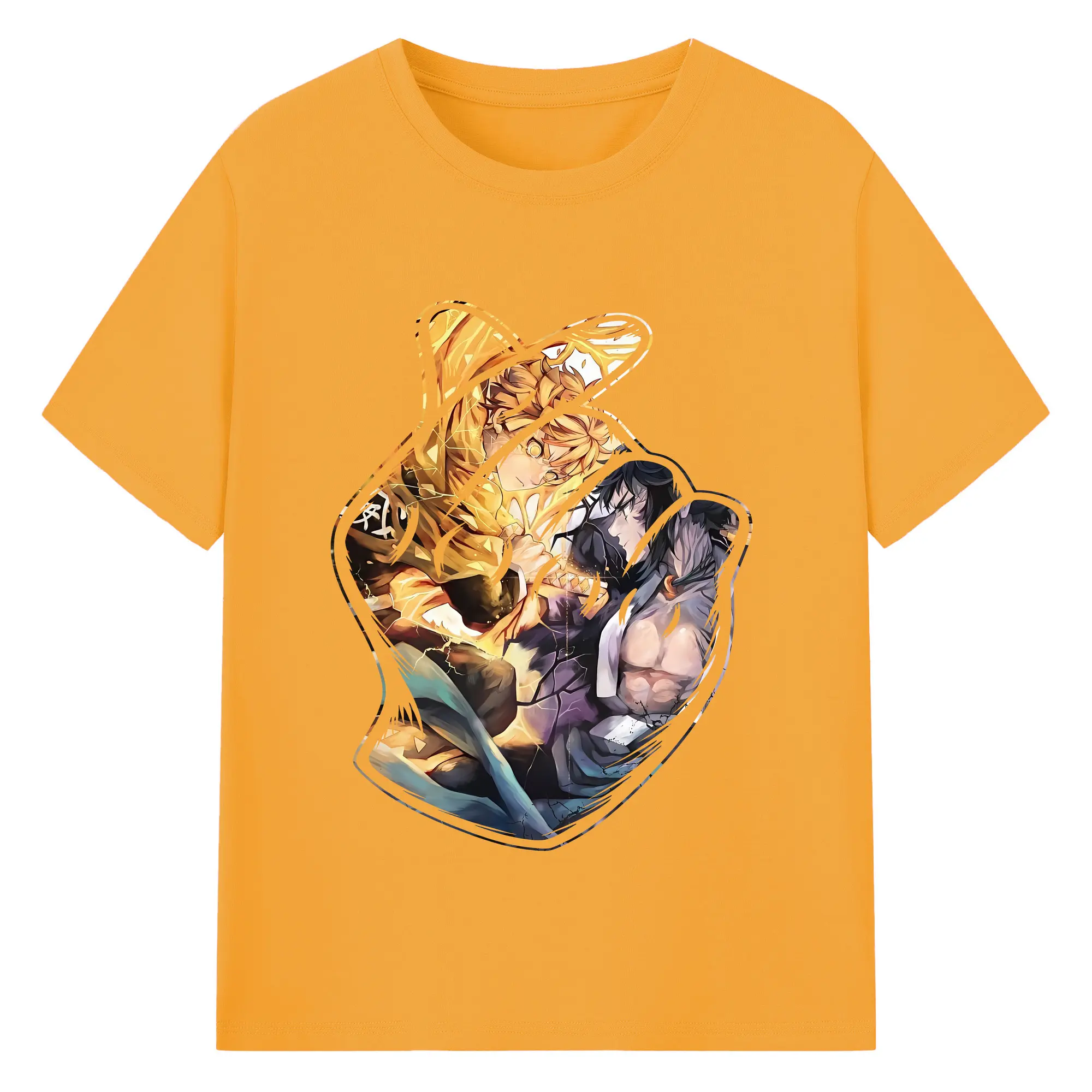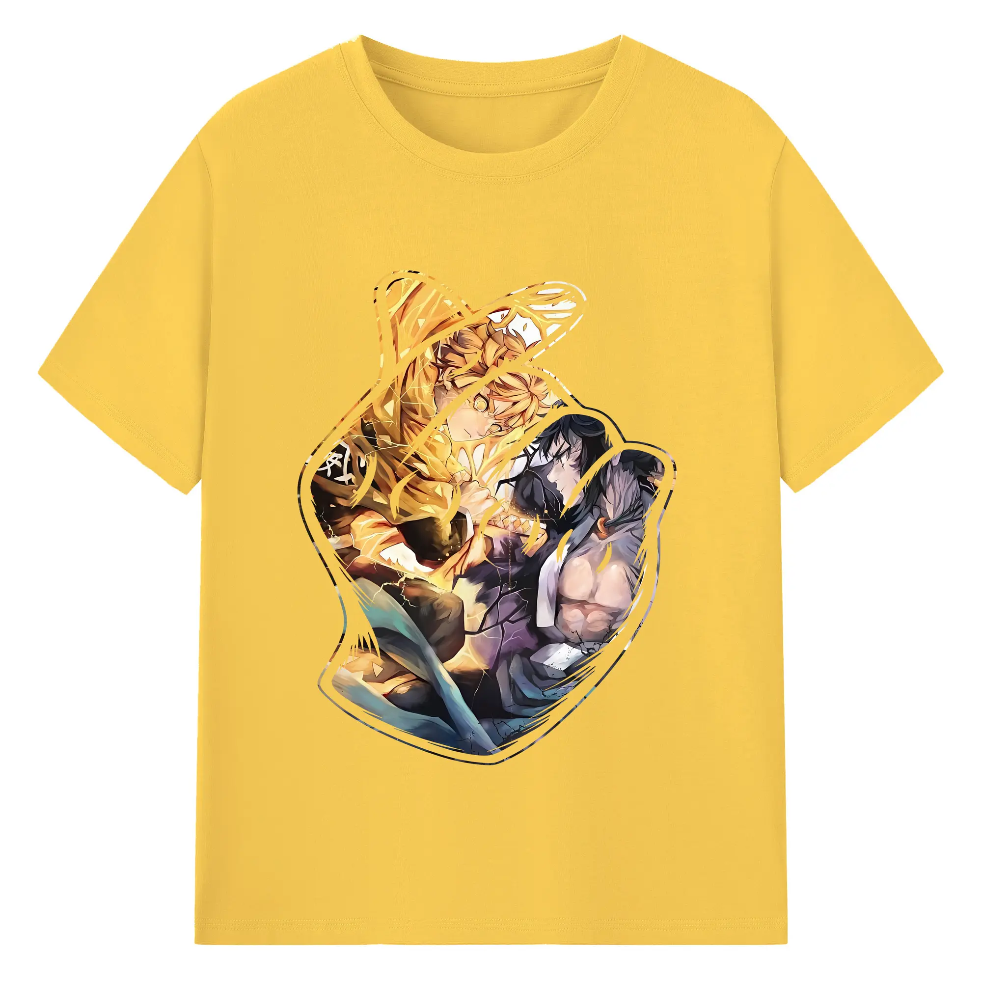鬼滅の刃 グッズ,我妻 善逸 - 綿100% 半袖Tシャツ ・ バックプリント ・ 快適 通気性 ・ 日常使い 散歩 スポーツ用