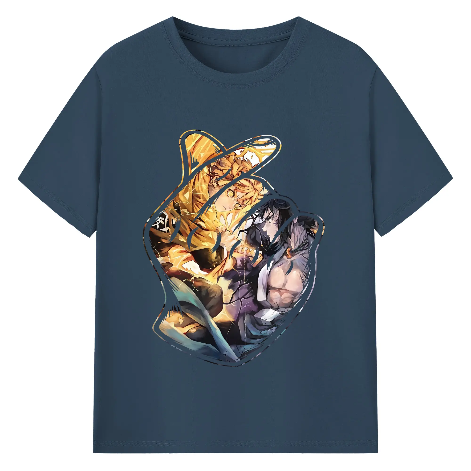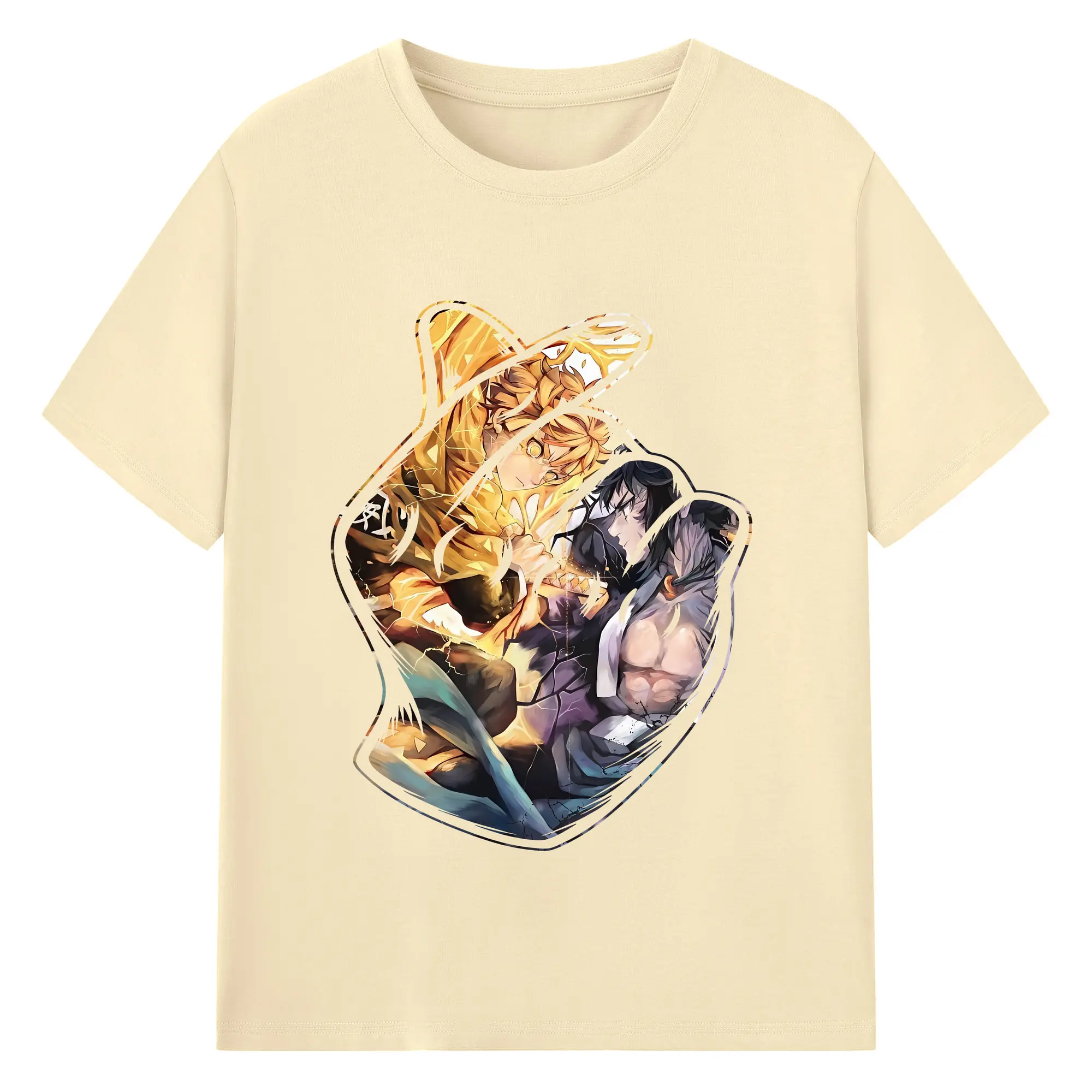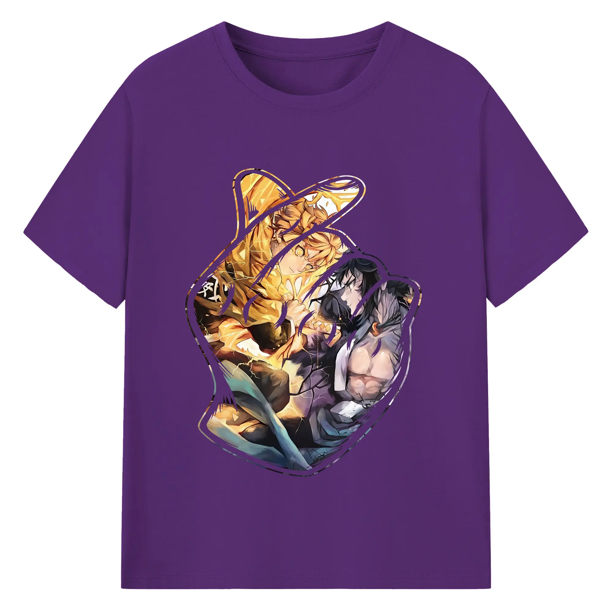鬼滅の刃 グッズ,我妻 善逸 - 綿100% 半袖Tシャツ ・ バックプリント ・ 快適 通気性 ・ 日常使い 散歩 スポーツ用