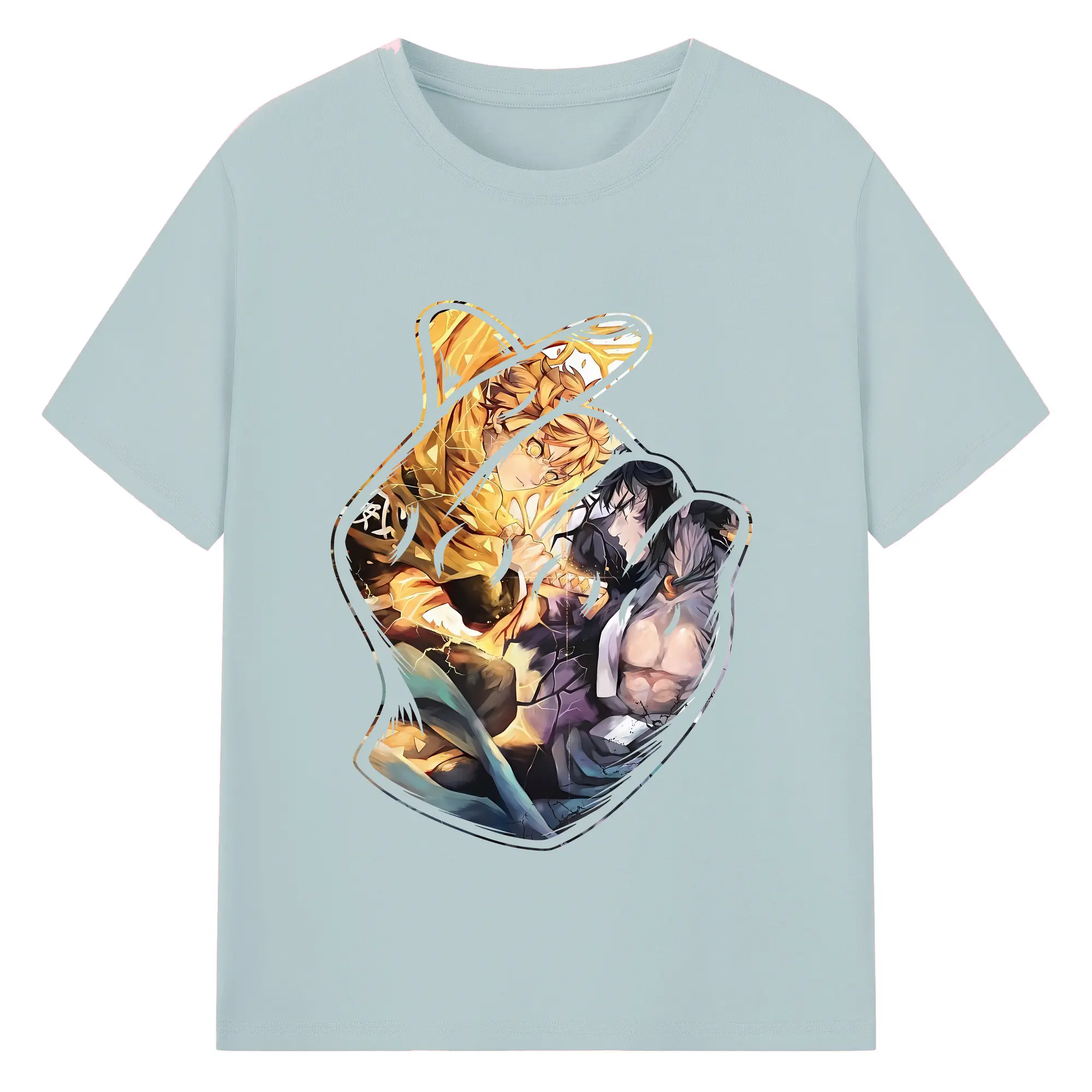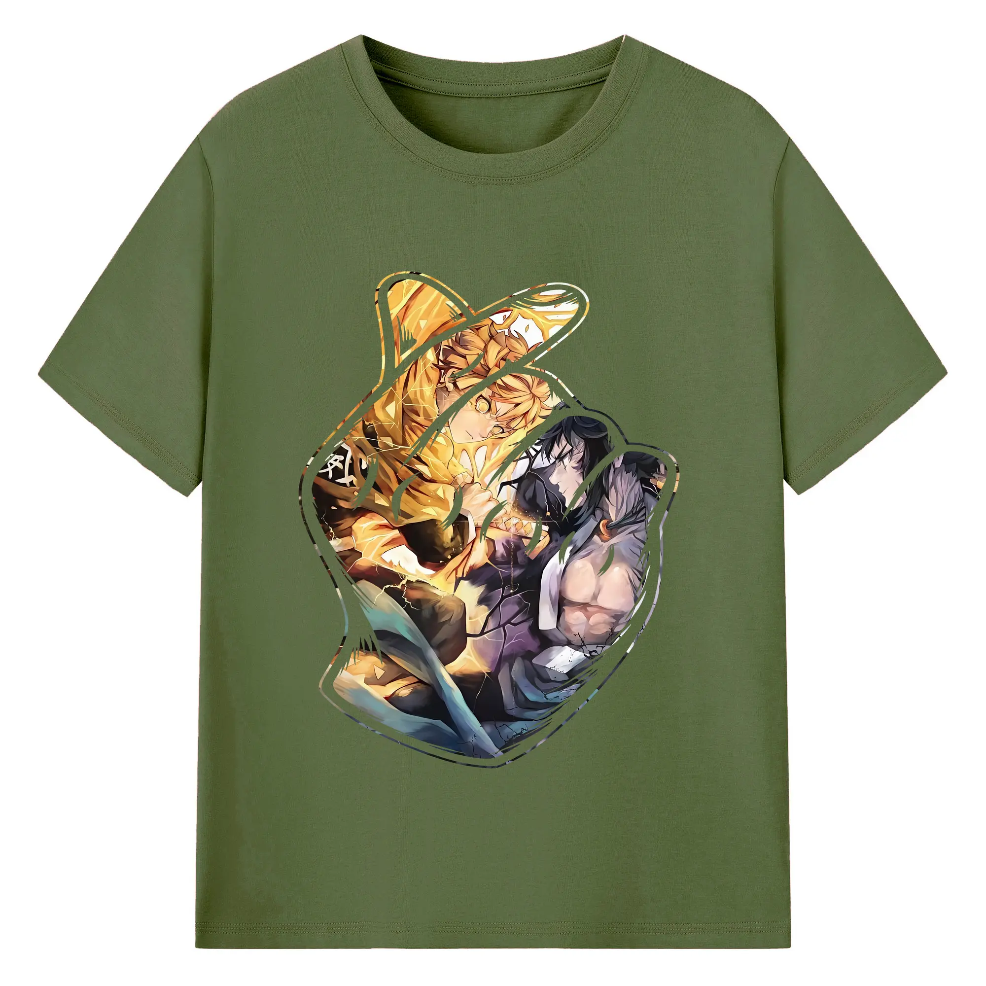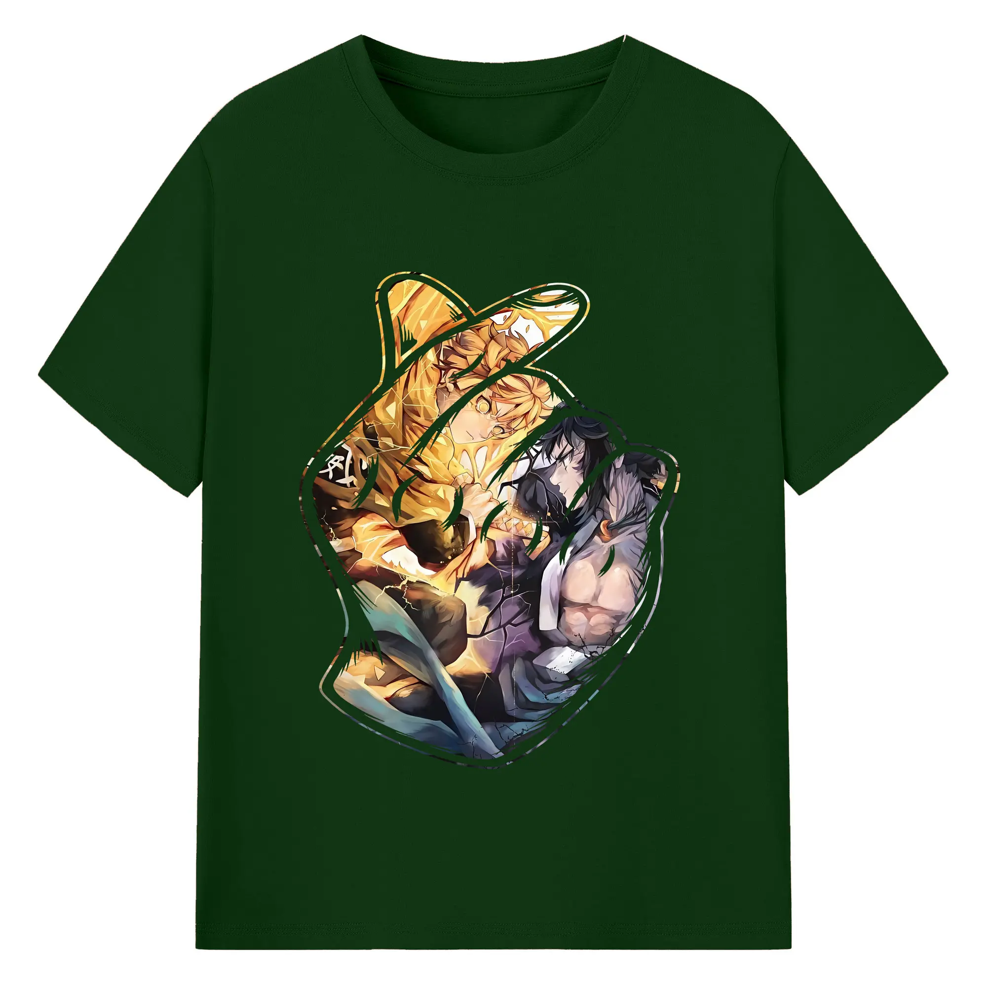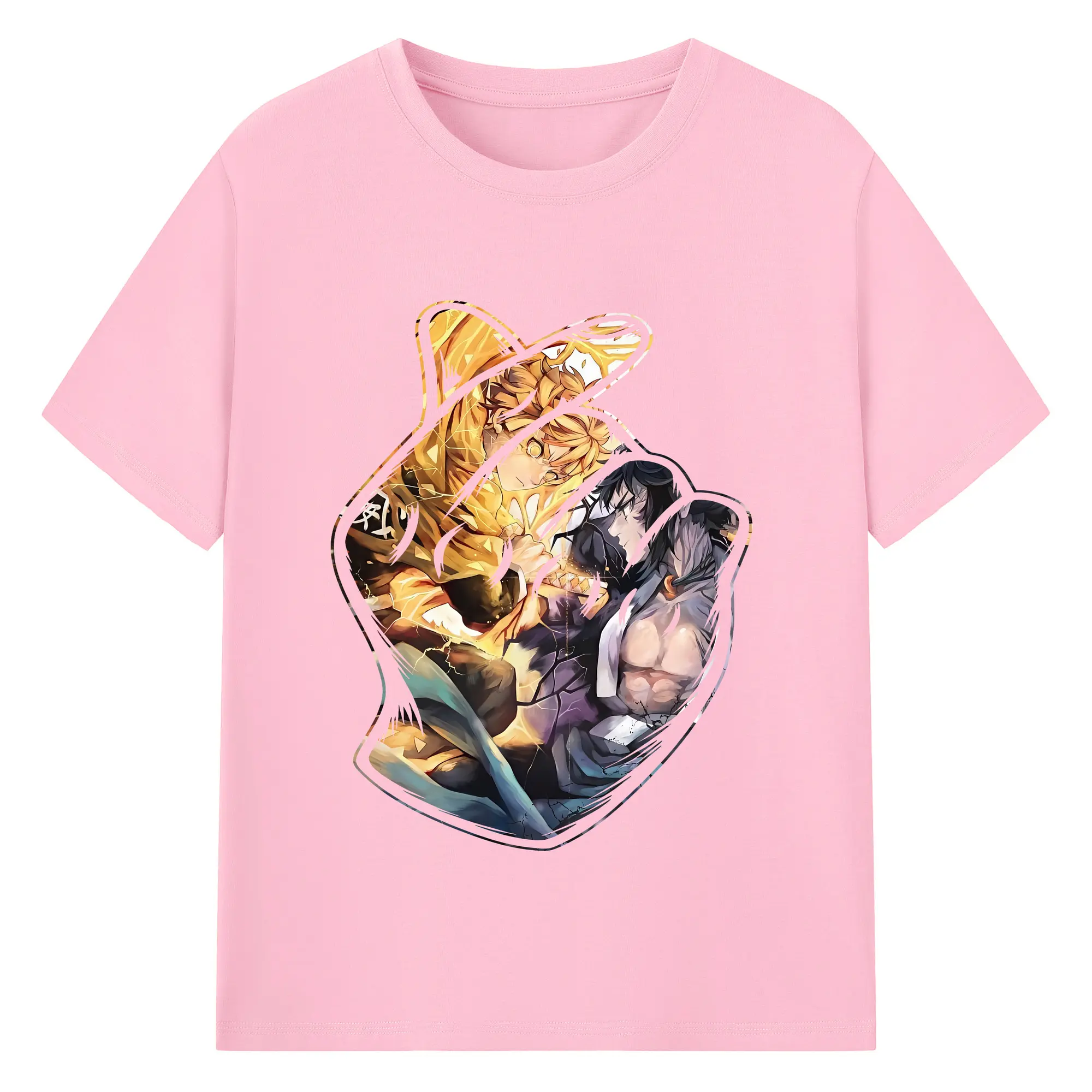 鬼滅の刃 グッズ,我妻 善逸 - 綿100% 半袖Tシャツ ・ バックプリント ・ 快適 通気性 ・ 日常使い 散歩 スポーツ用