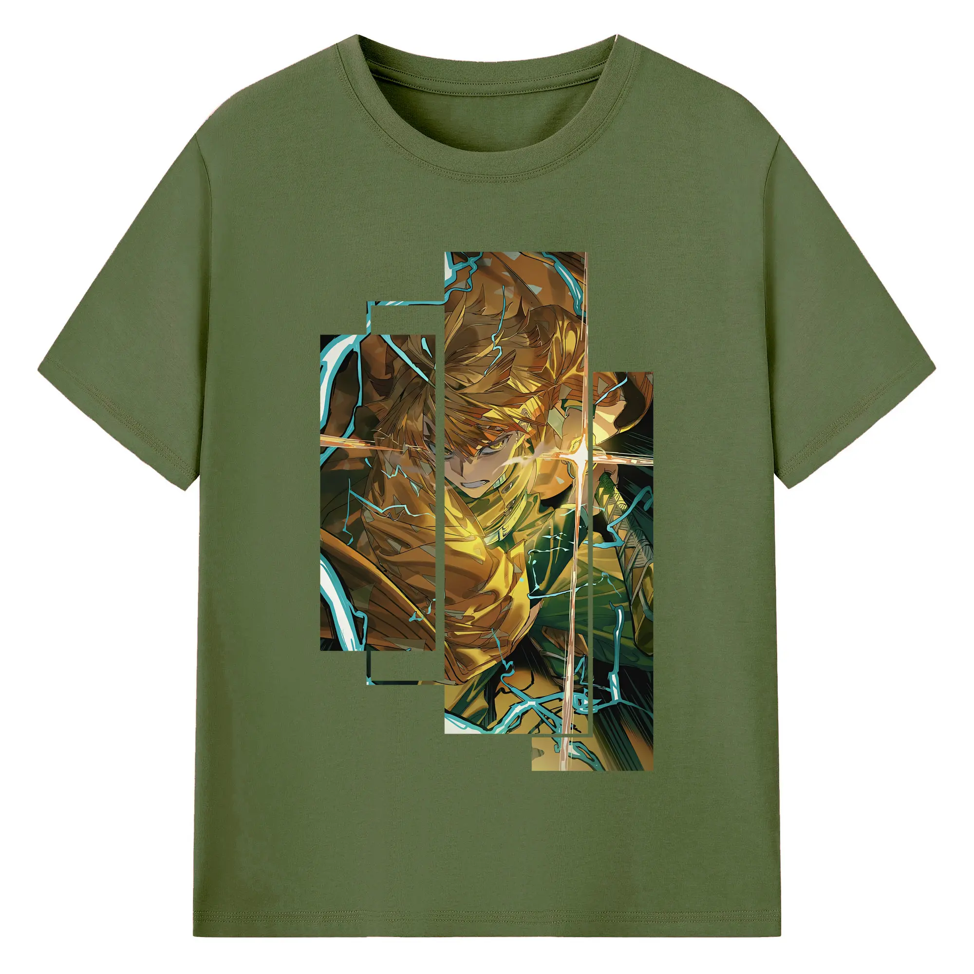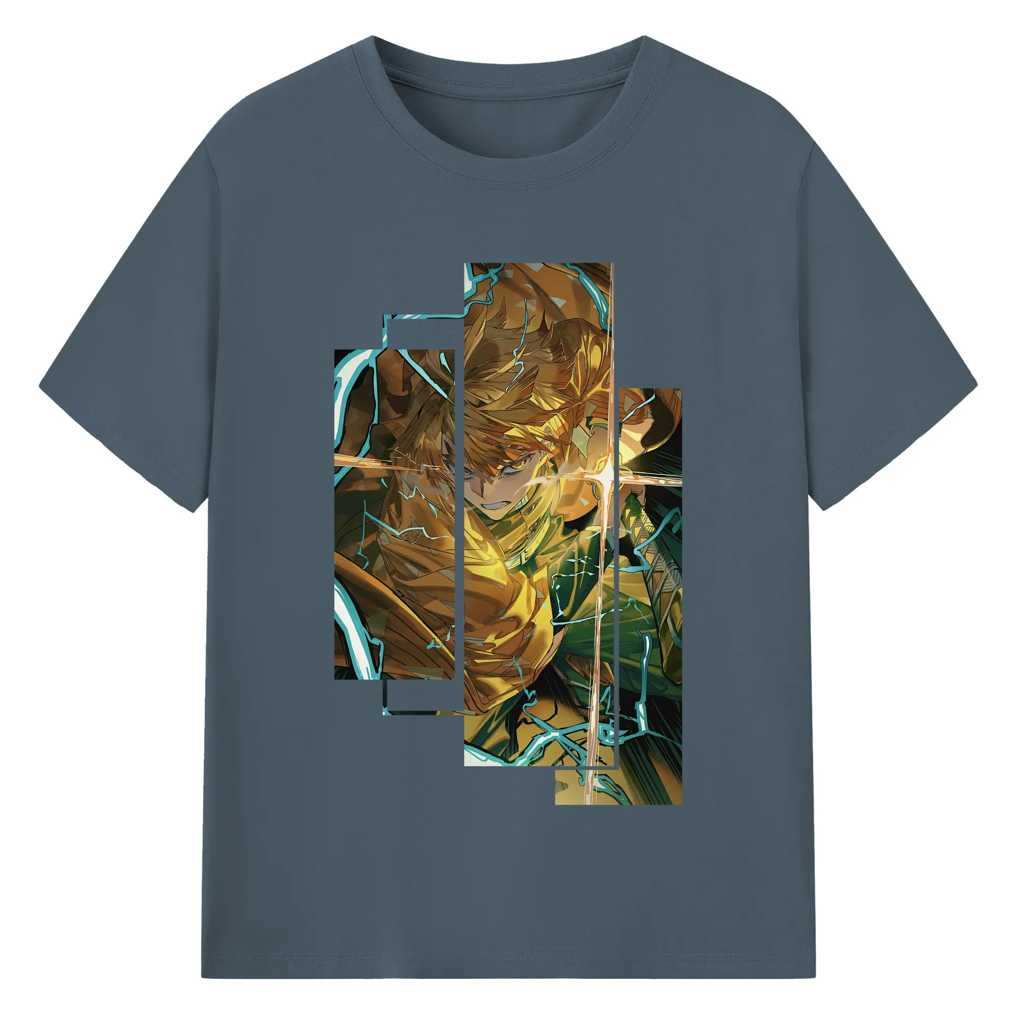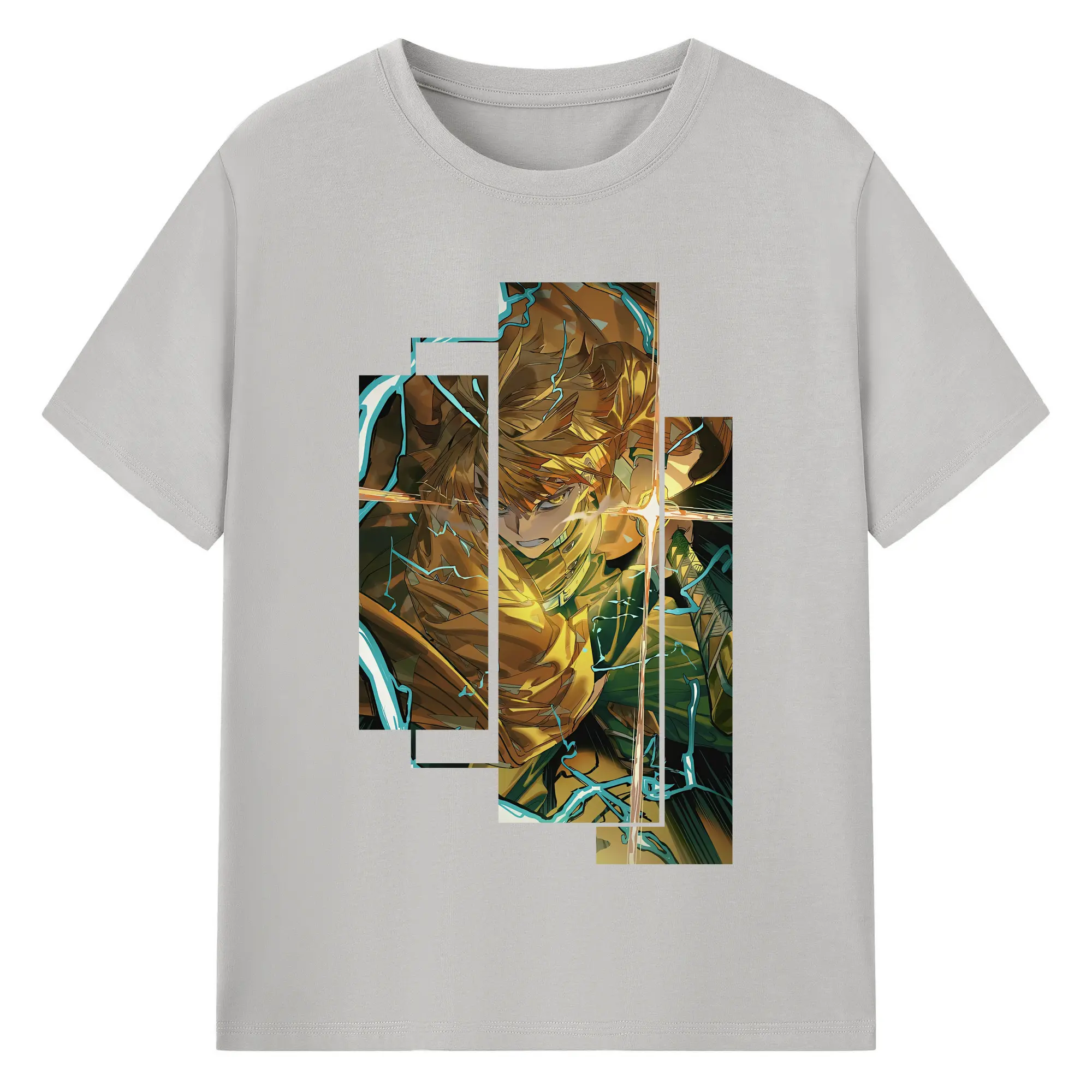 鬼滅の刃 グッズ,我妻 善逸 - 綿100% 半袖Tシャツ ・ バックプリント ・ 快適 通気性 ・ 日常使い 散歩 スポーツ用