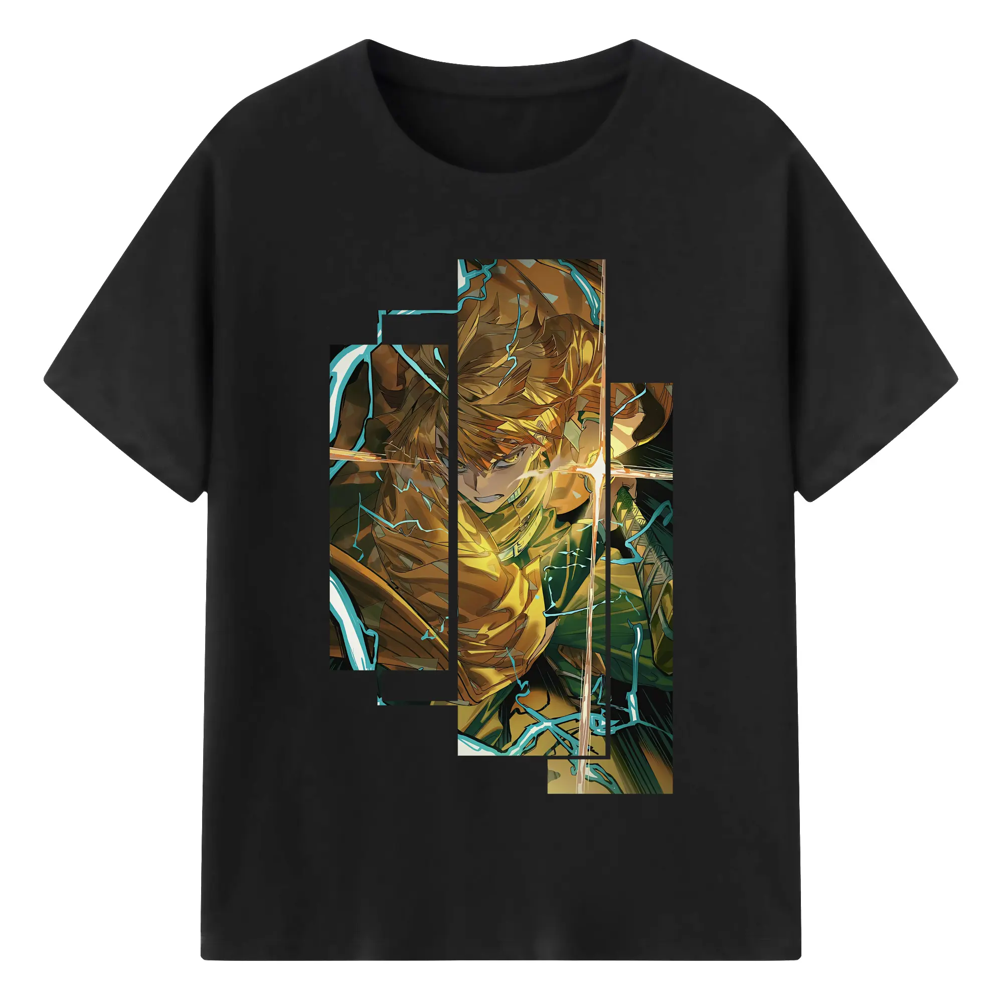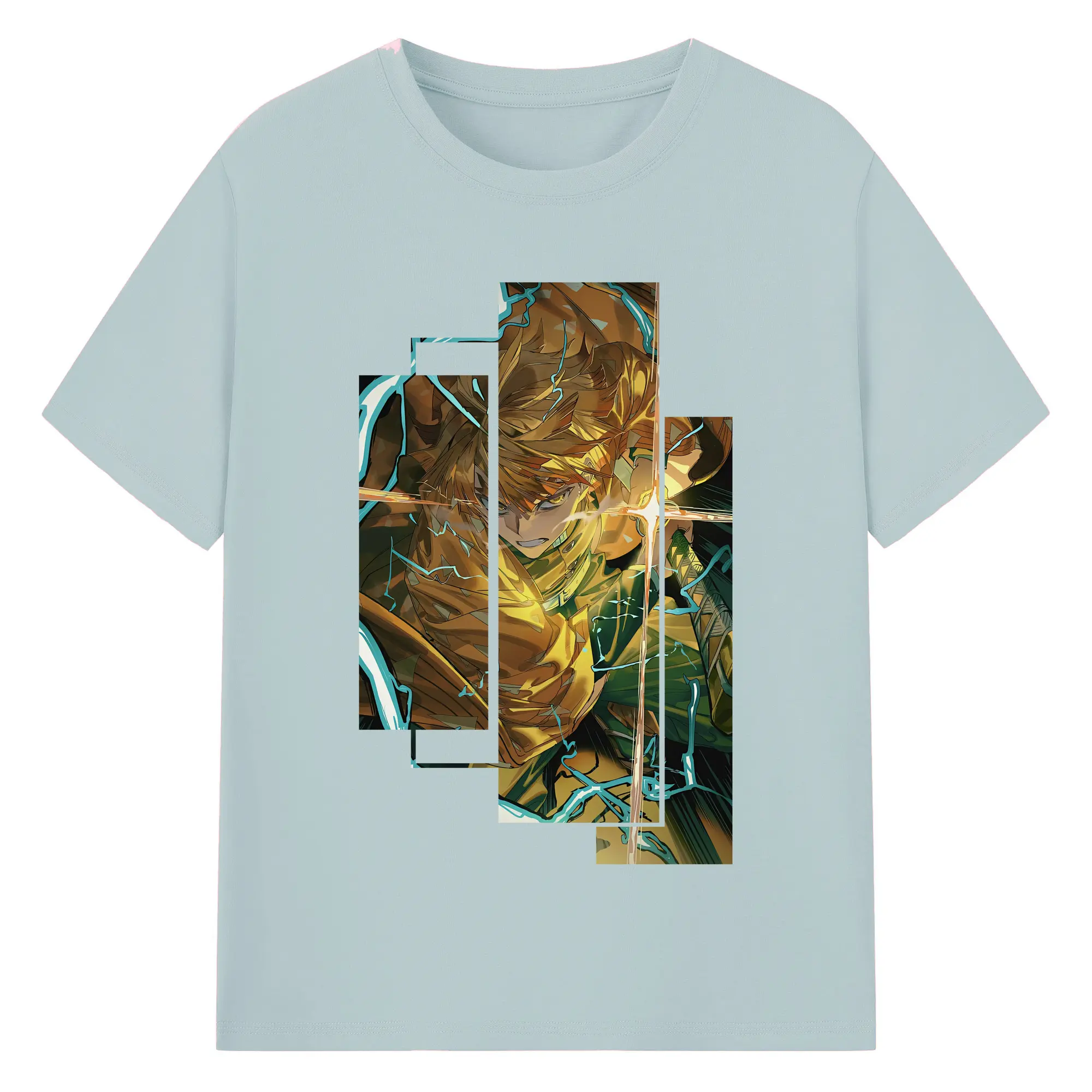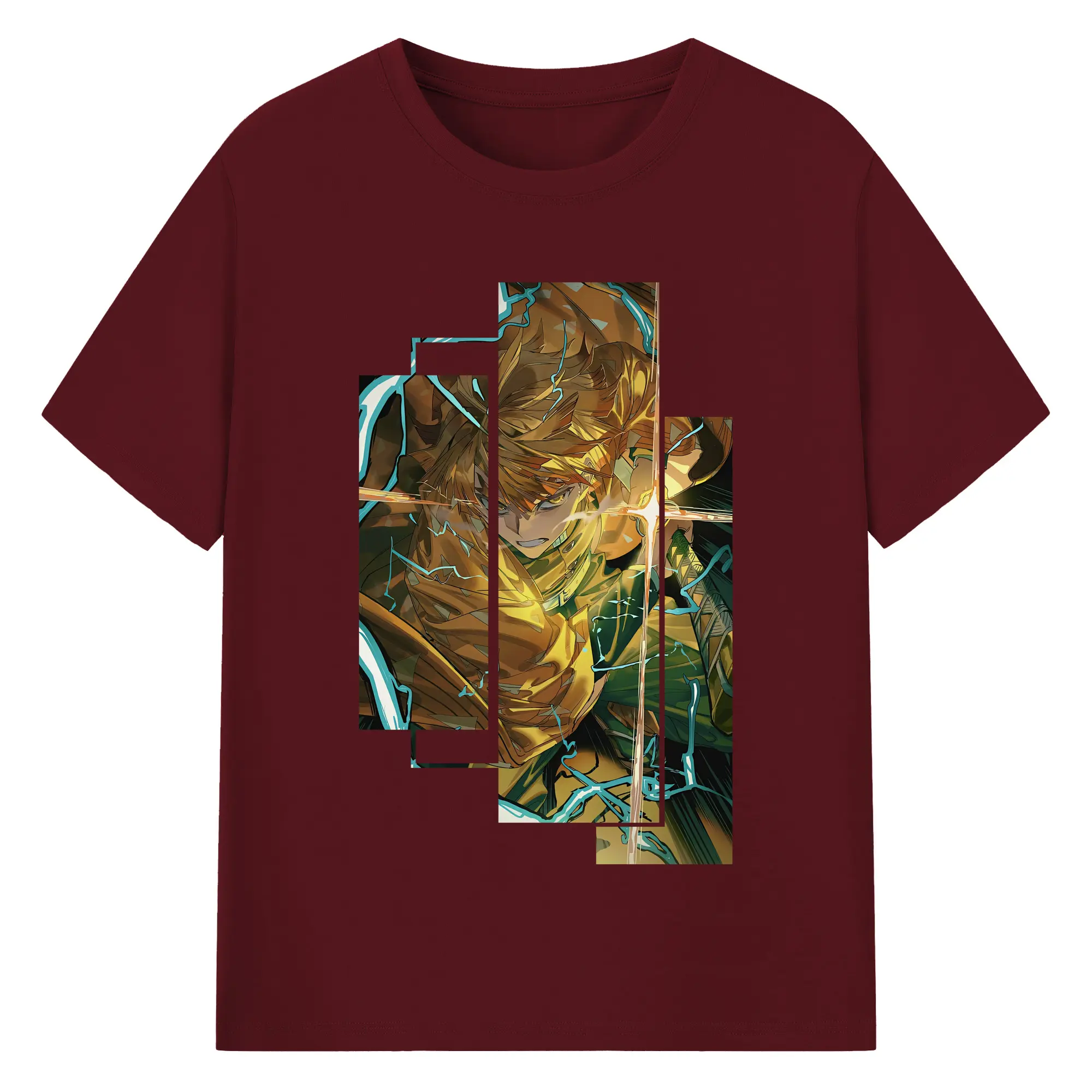 鬼滅の刃 グッズ,我妻 善逸 - 綿100% 半袖Tシャツ ・ バックプリント ・ 快適 通気性 ・ 日常使い 散歩 スポーツ用