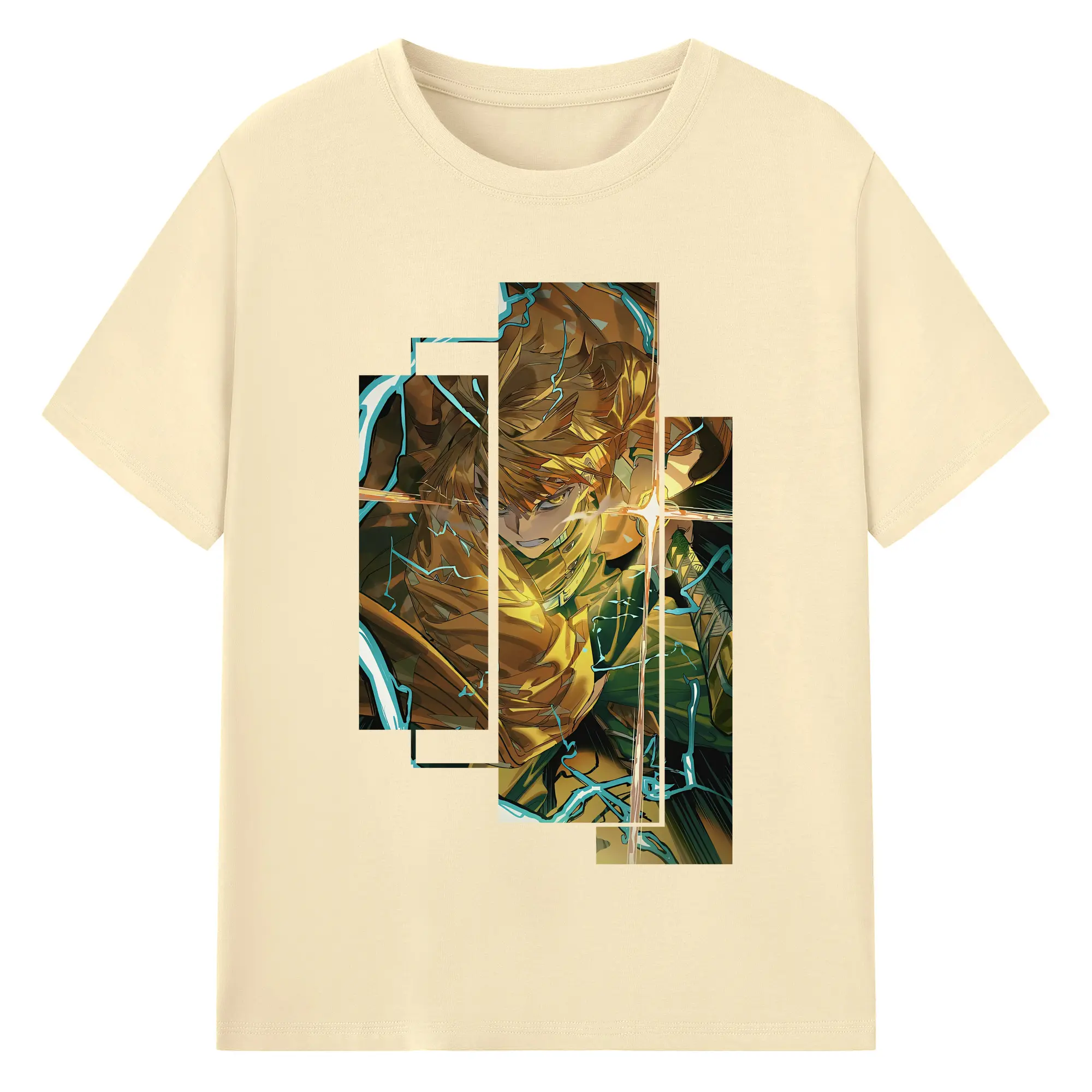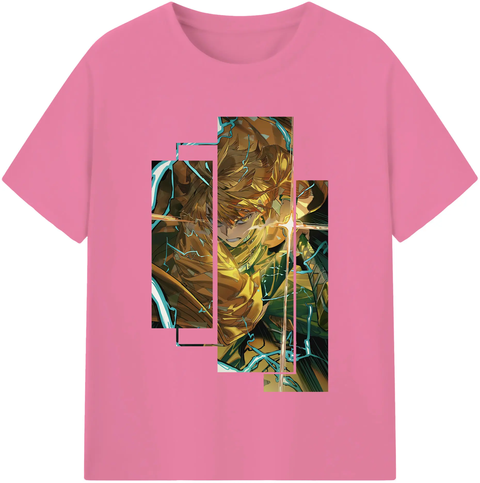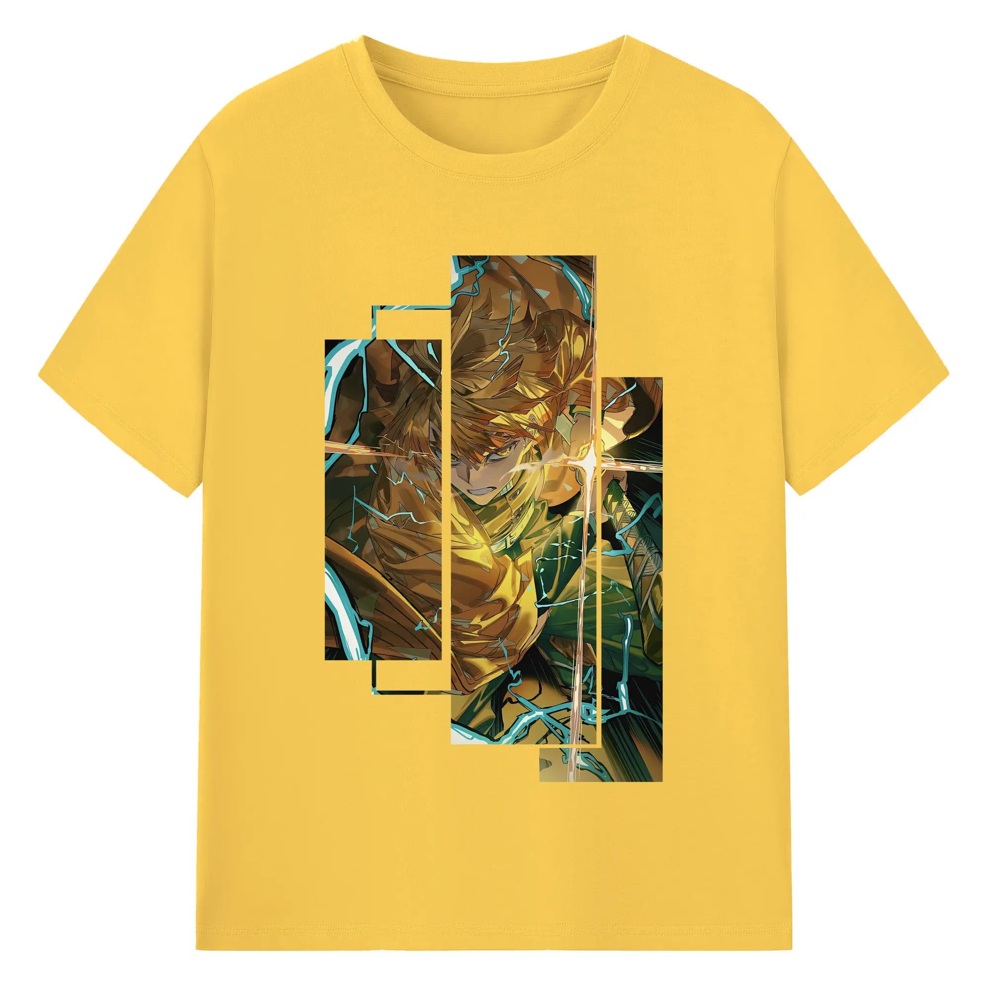 鬼滅の刃 グッズ,我妻 善逸 - 綿100% キッズTシャツ ・ フロントプリント ・ 快適 通気性 ・ スポーツ カジュアル 散歩用