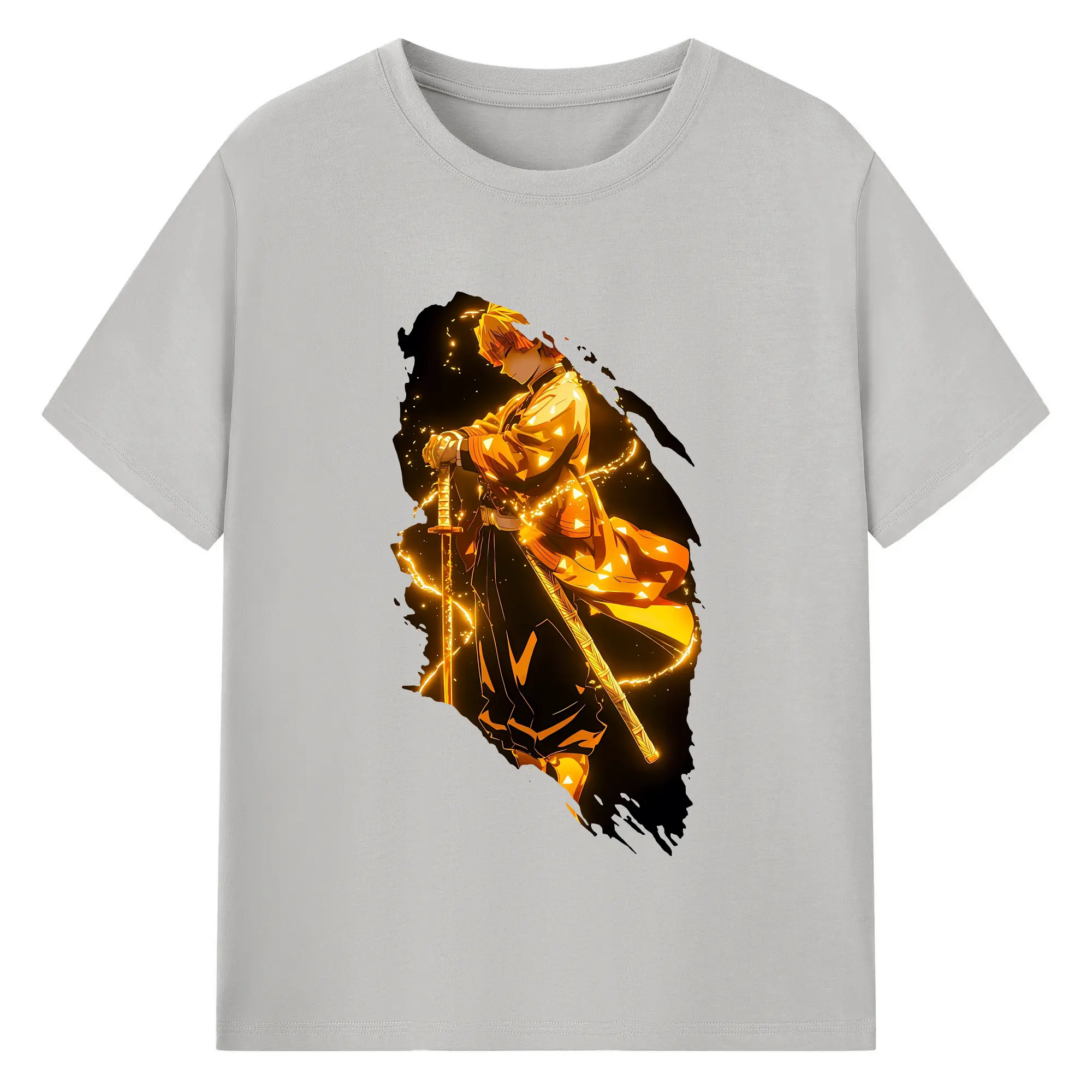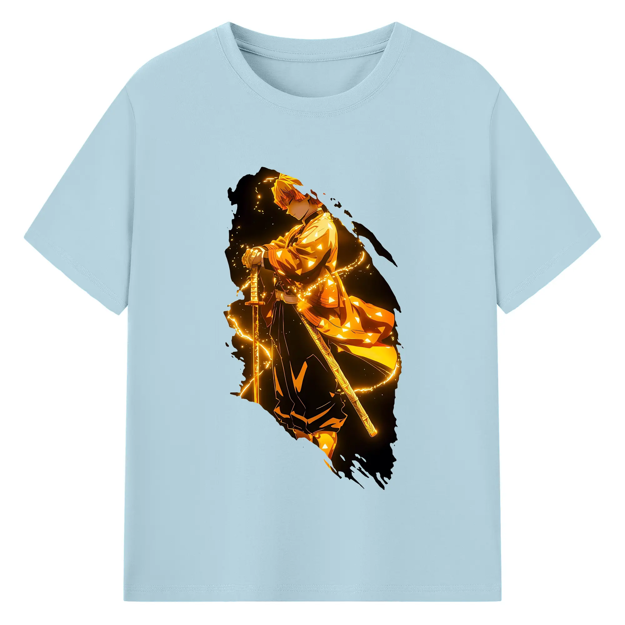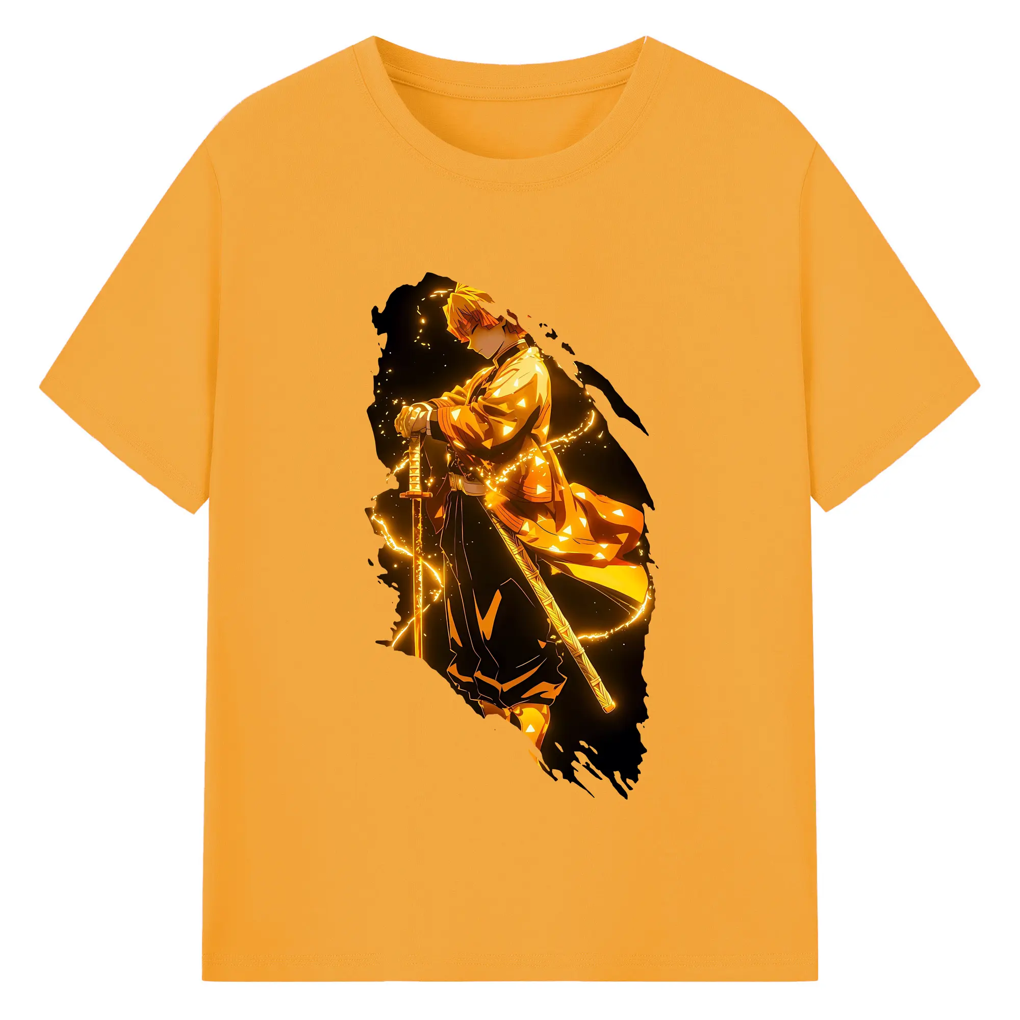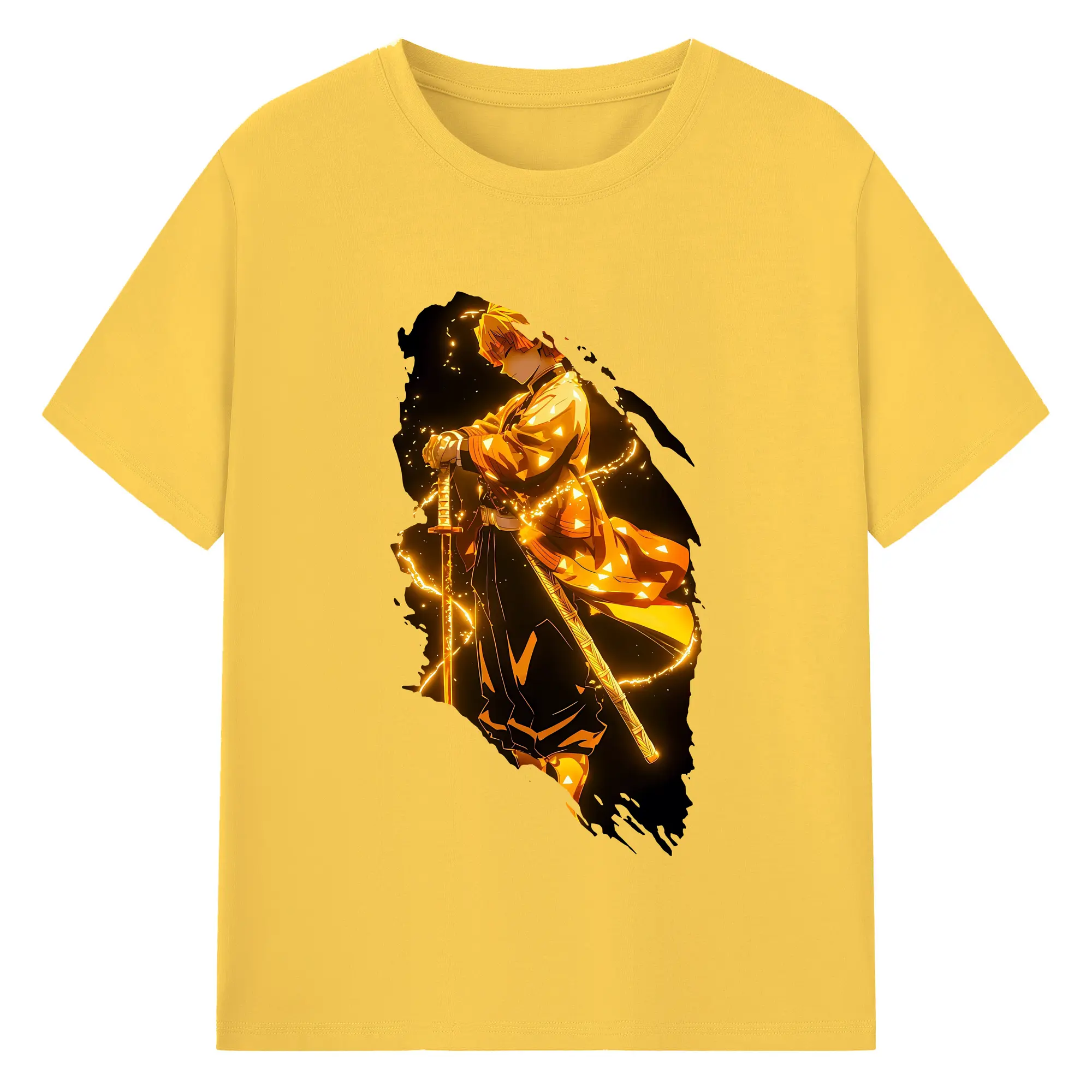 鬼滅の刃 グッズ,我妻 善逸 - 綿100% 半袖Tシャツ ・ バックプリント ・ 快適 通気性 ・ 日常使い 散歩 スポーツ用