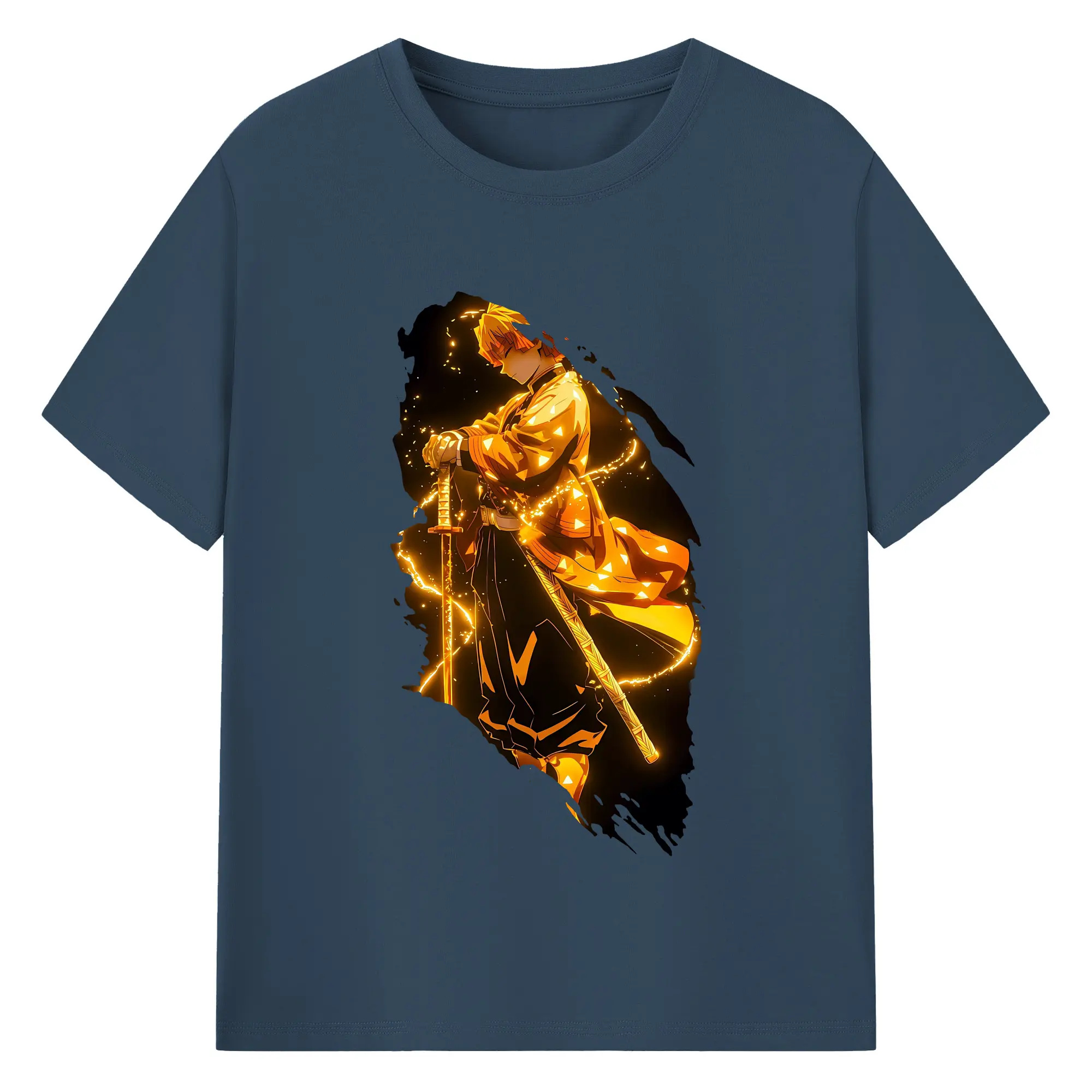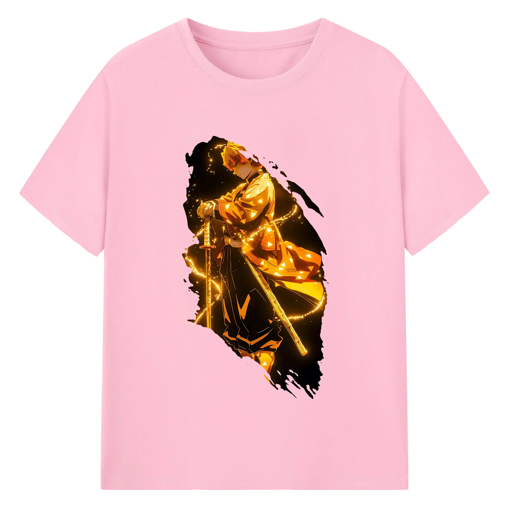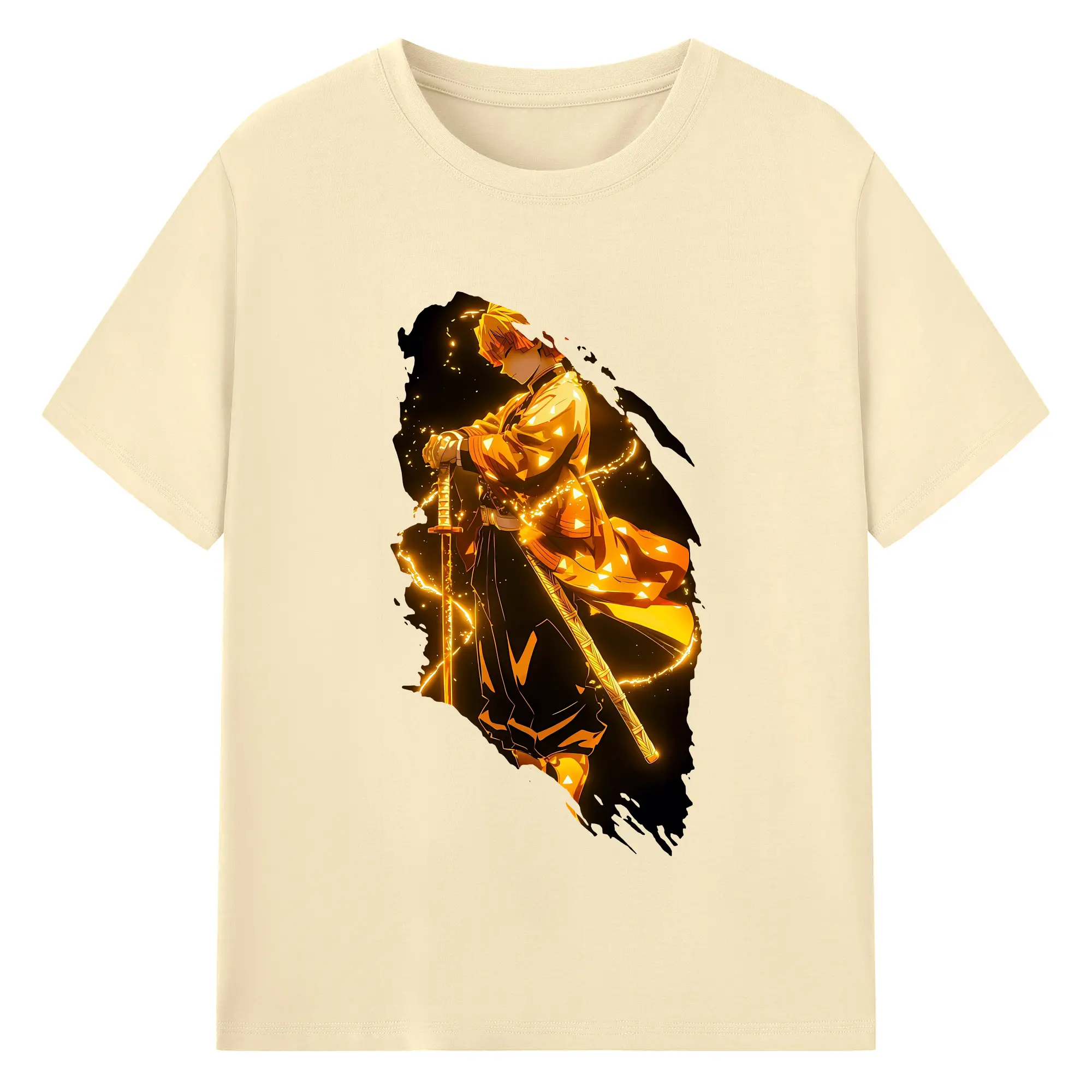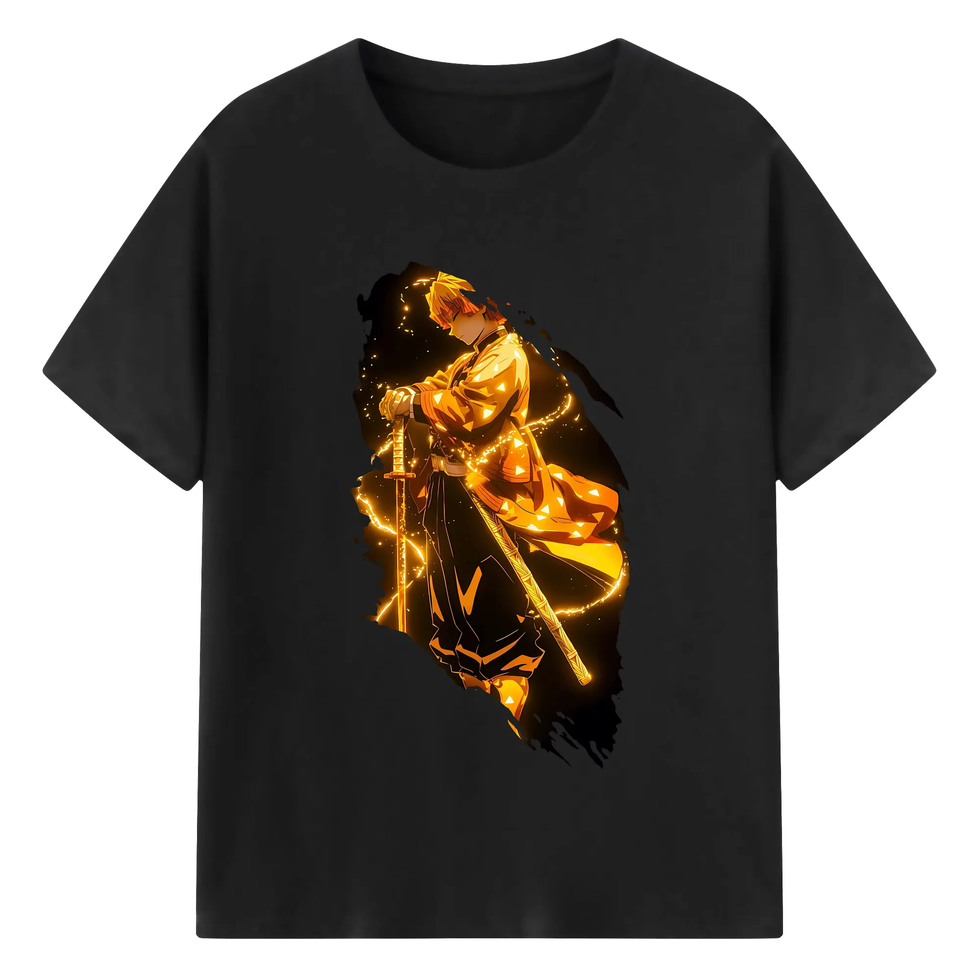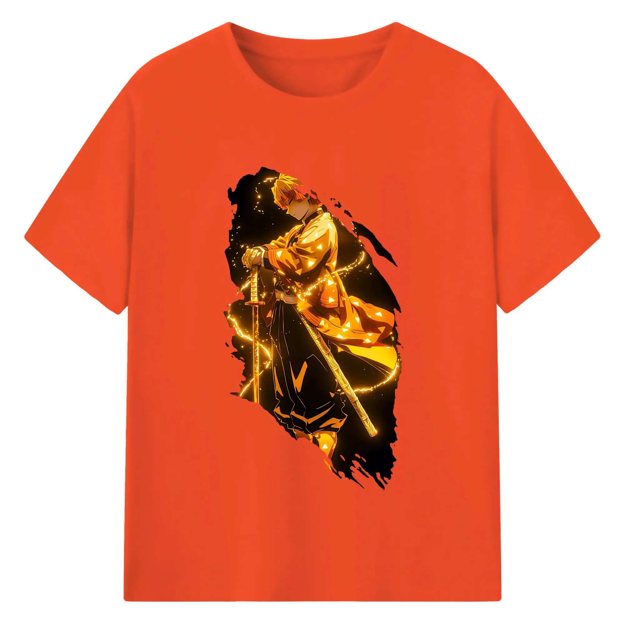 鬼滅の刃 グッズ,我妻 善逸 - 綿100% 半袖Tシャツ ・ バックプリント ・ 快適 通気性 ・ 日常使い 散歩 スポーツ用
