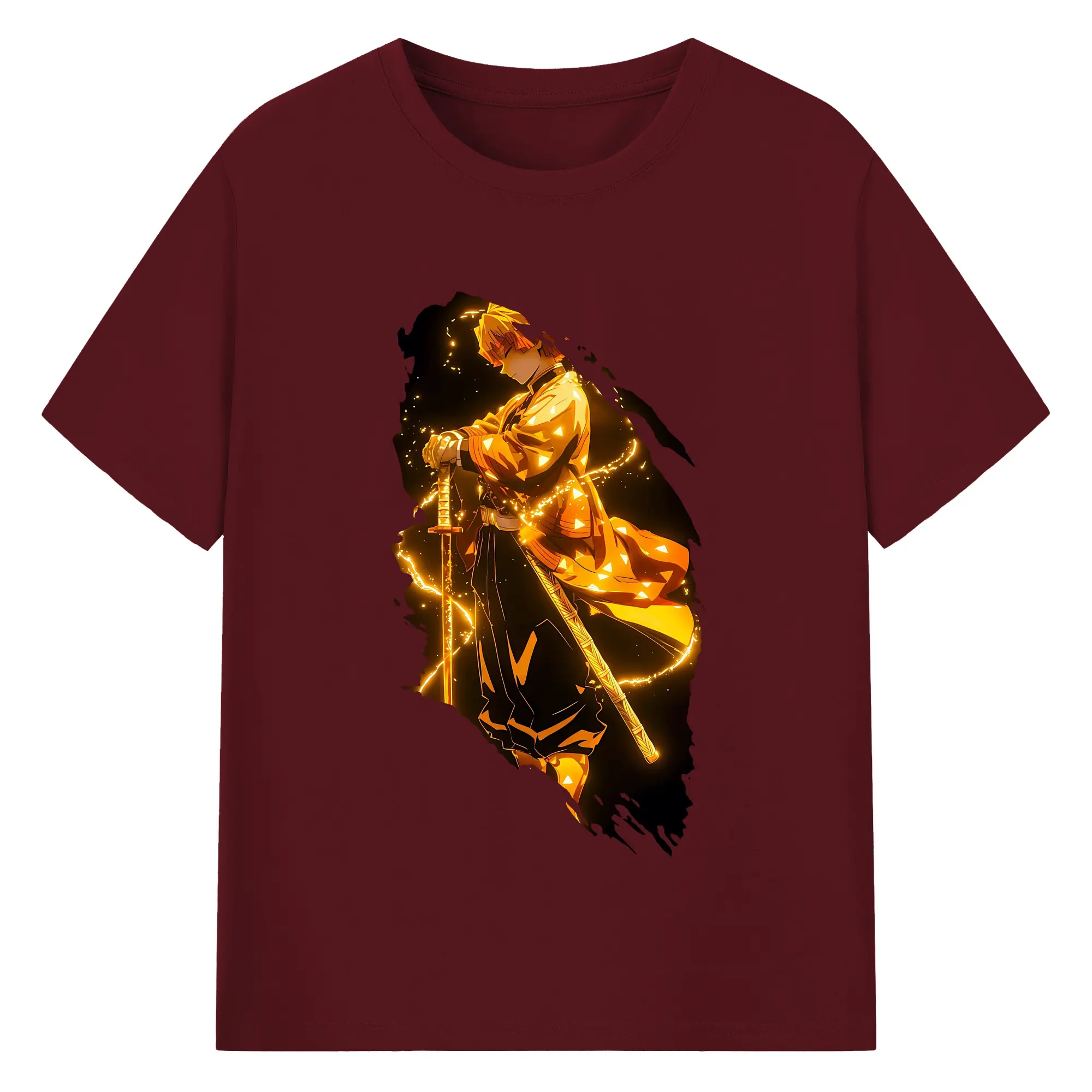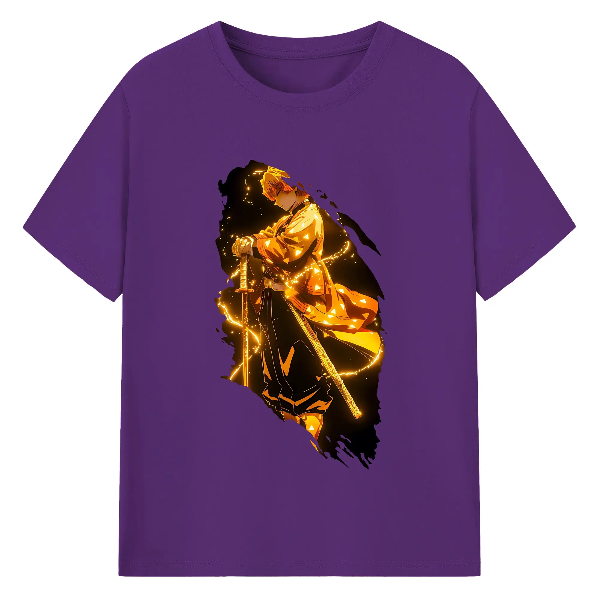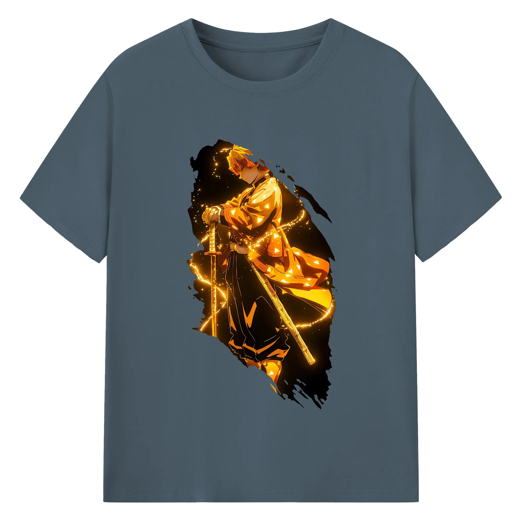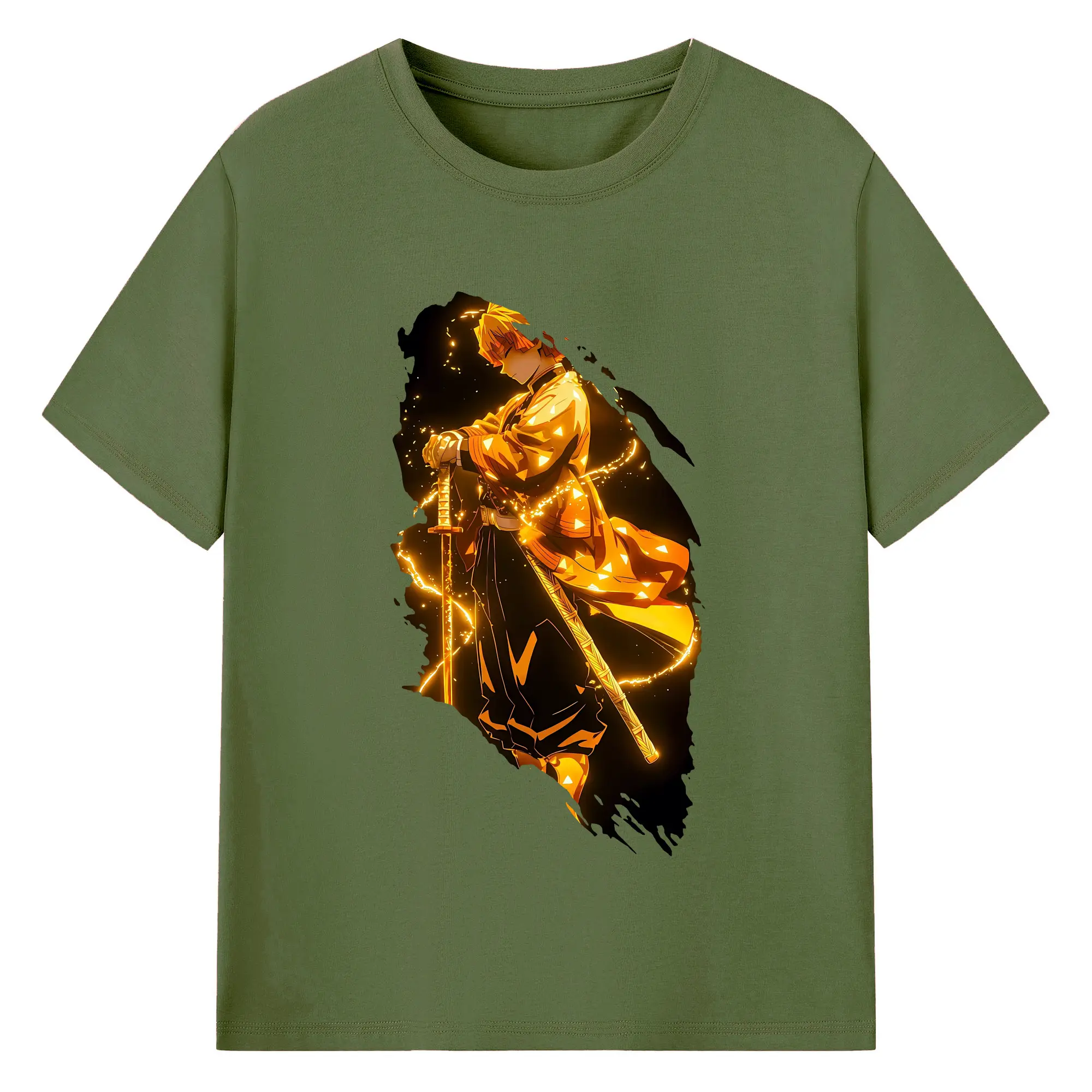 鬼滅の刃 グッズ,我妻 善逸 - 綿100% 半袖Tシャツ ・ バックプリント ・ 快適 通気性 ・ 日常使い 散歩 スポーツ用