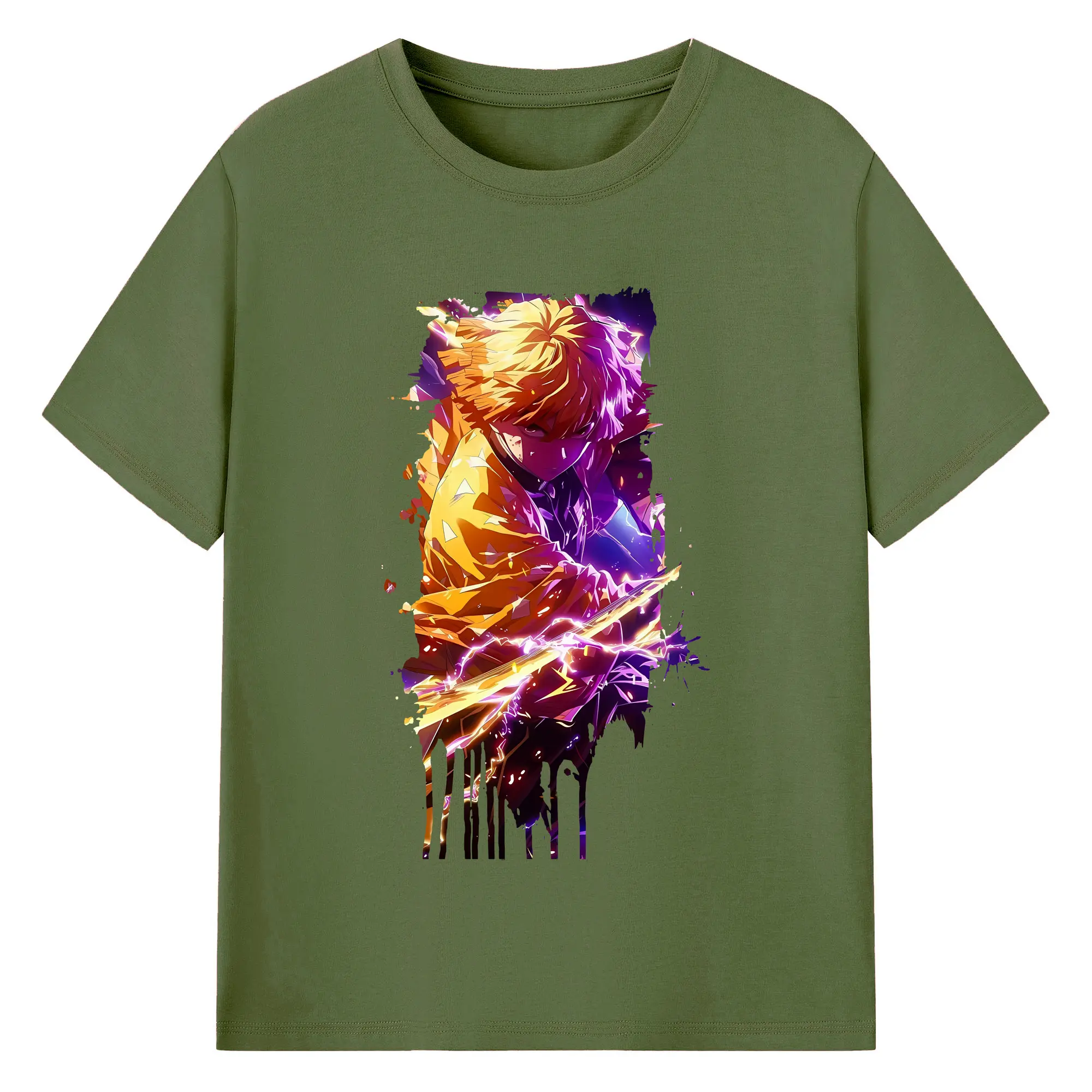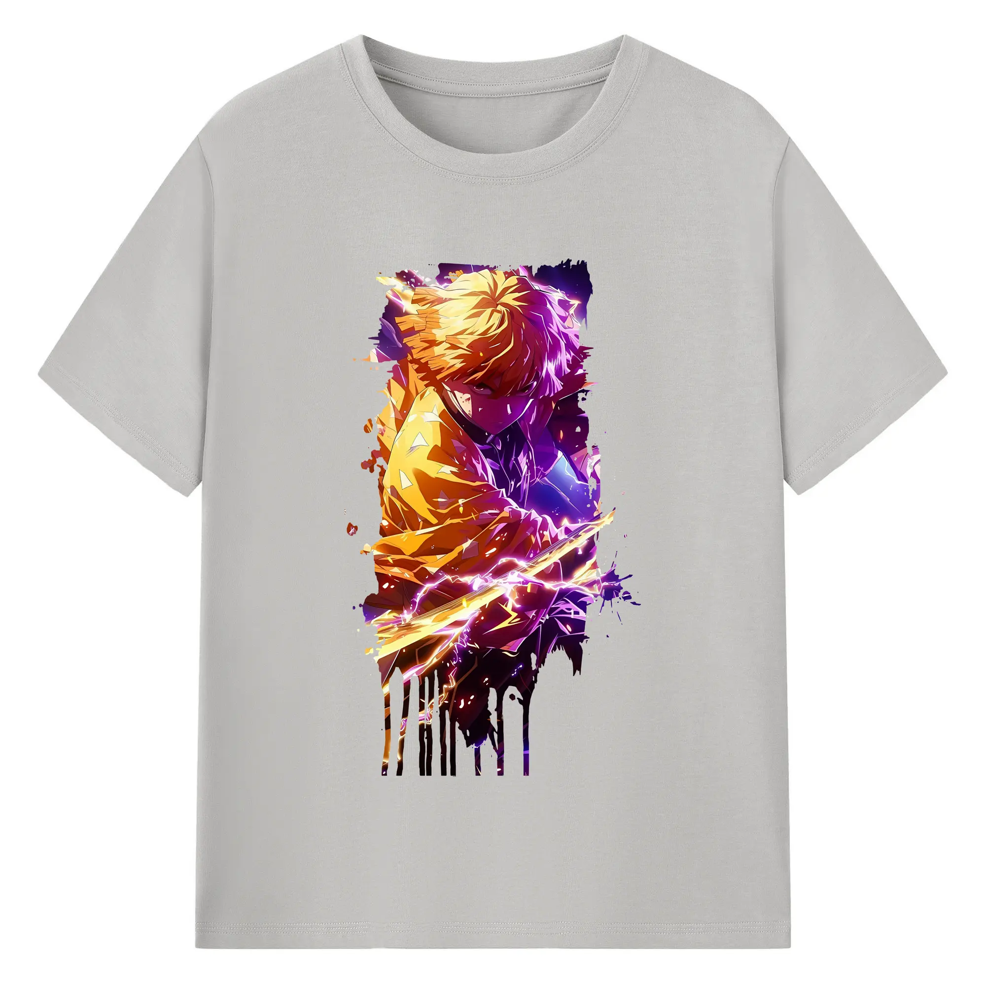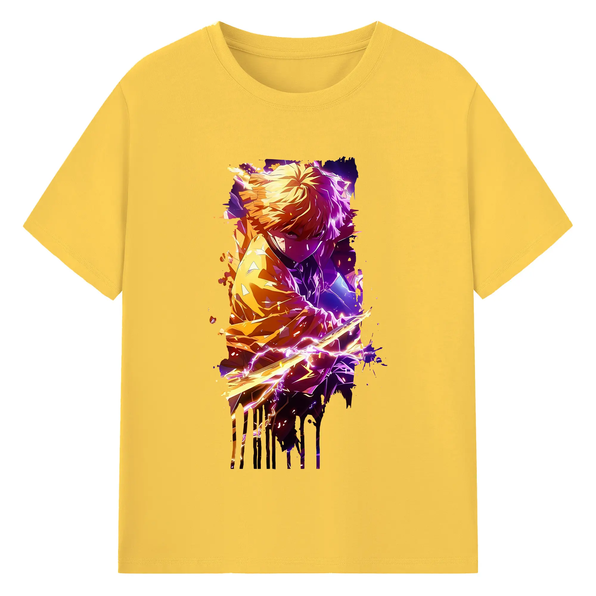 鬼滅の刃 グッズ,我妻 善逸 - 綿100% 半袖Tシャツ ・ バックプリント ・ 快適 通気性 ・ 日常使い 散歩 スポーツ用