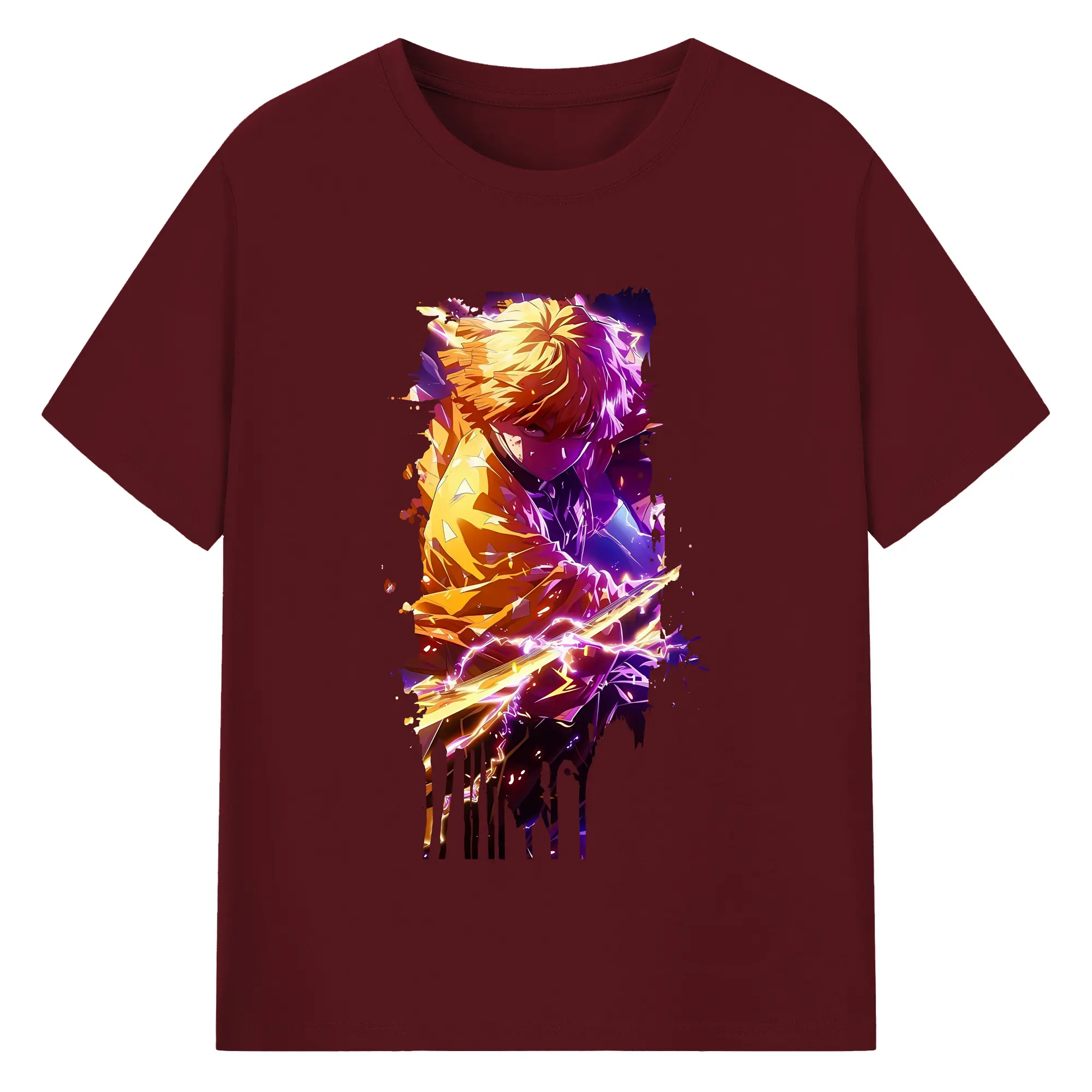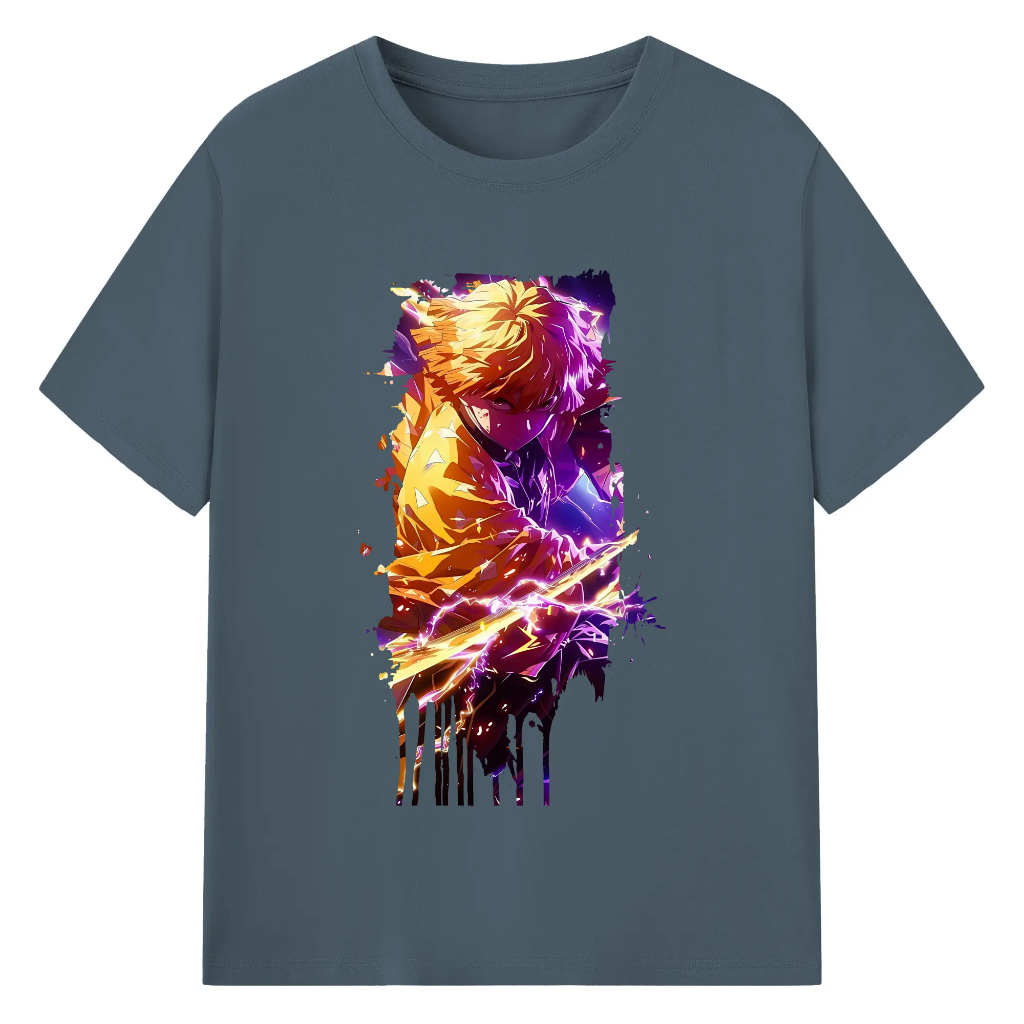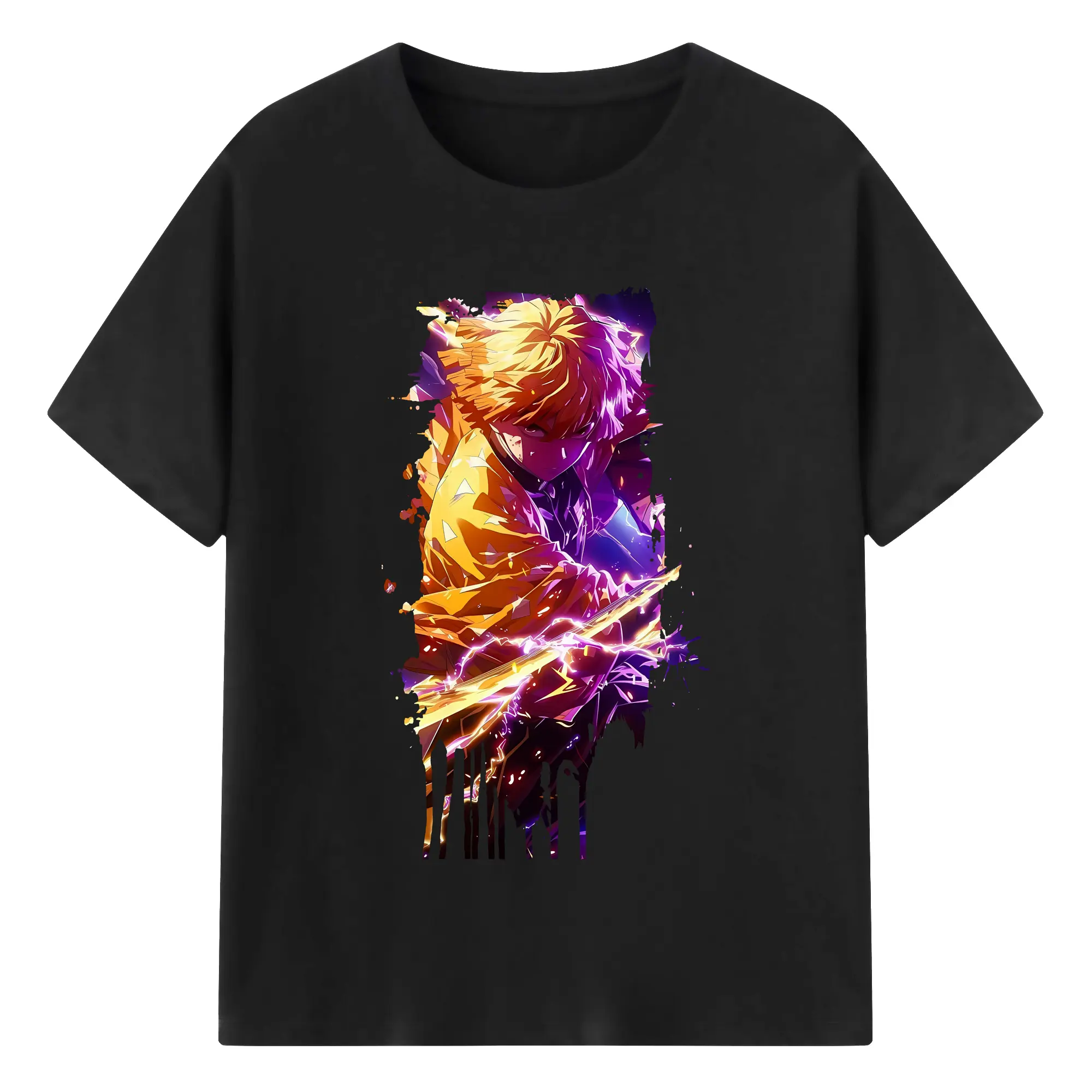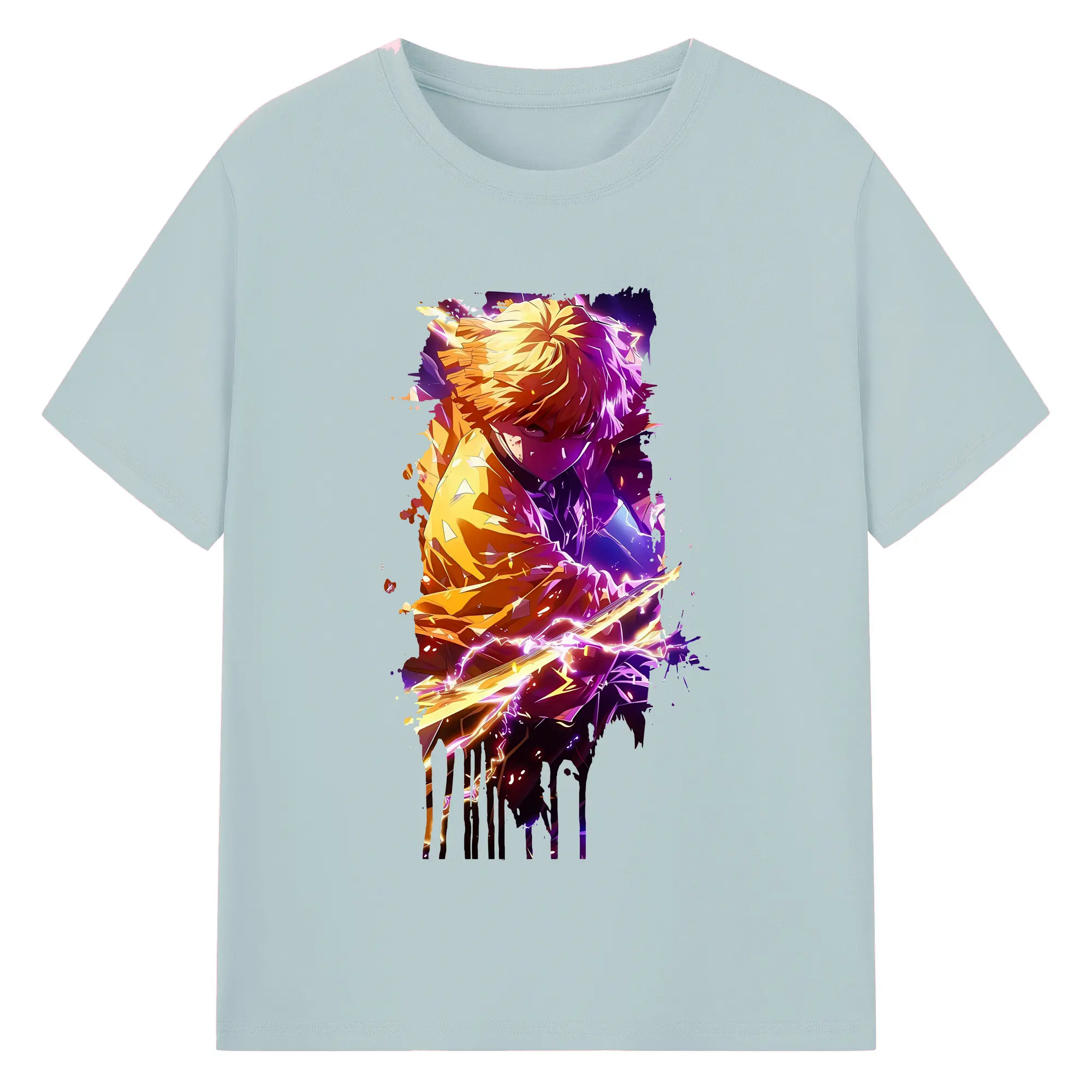 鬼滅の刃 グッズ,我妻 善逸 - 綿100% 半袖Tシャツ ・ バックプリント ・ 快適 通気性 ・ 日常使い 散歩 スポーツ用