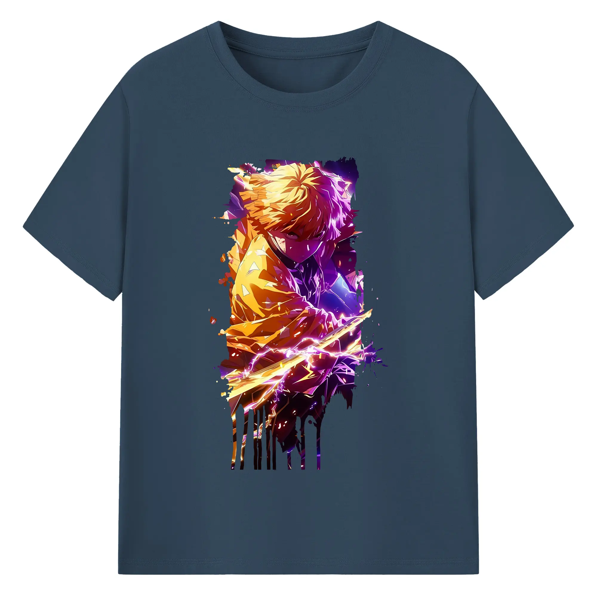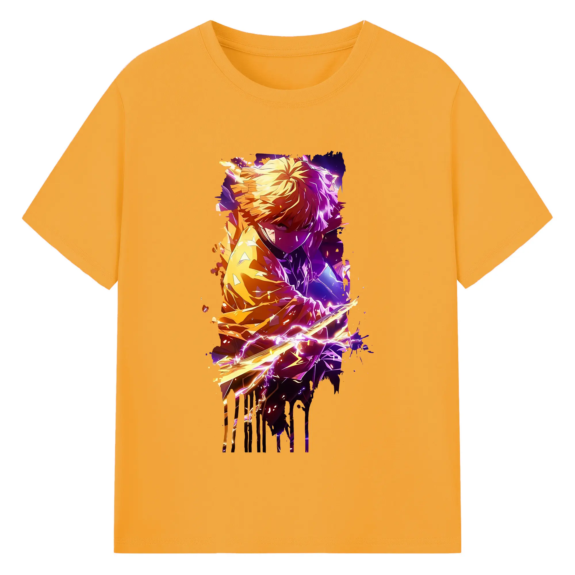 鬼滅の刃 グッズ,我妻 善逸 - 綿100% キッズTシャツ ・ フロントプリント ・ 快適 通気性 ・ スポーツ カジュアル 散歩用