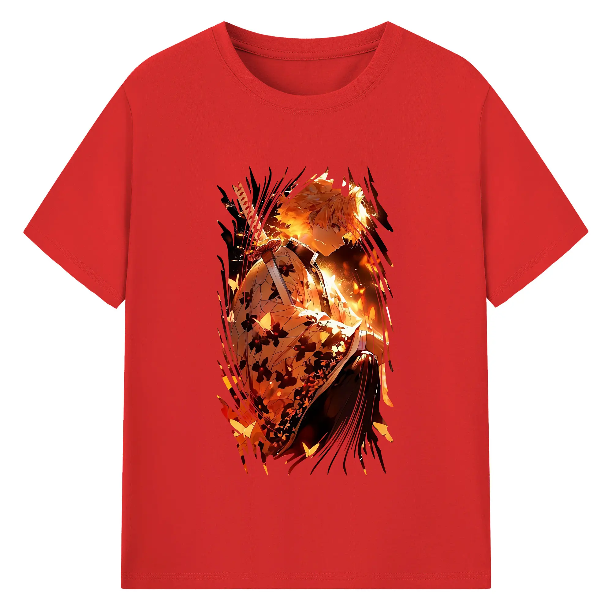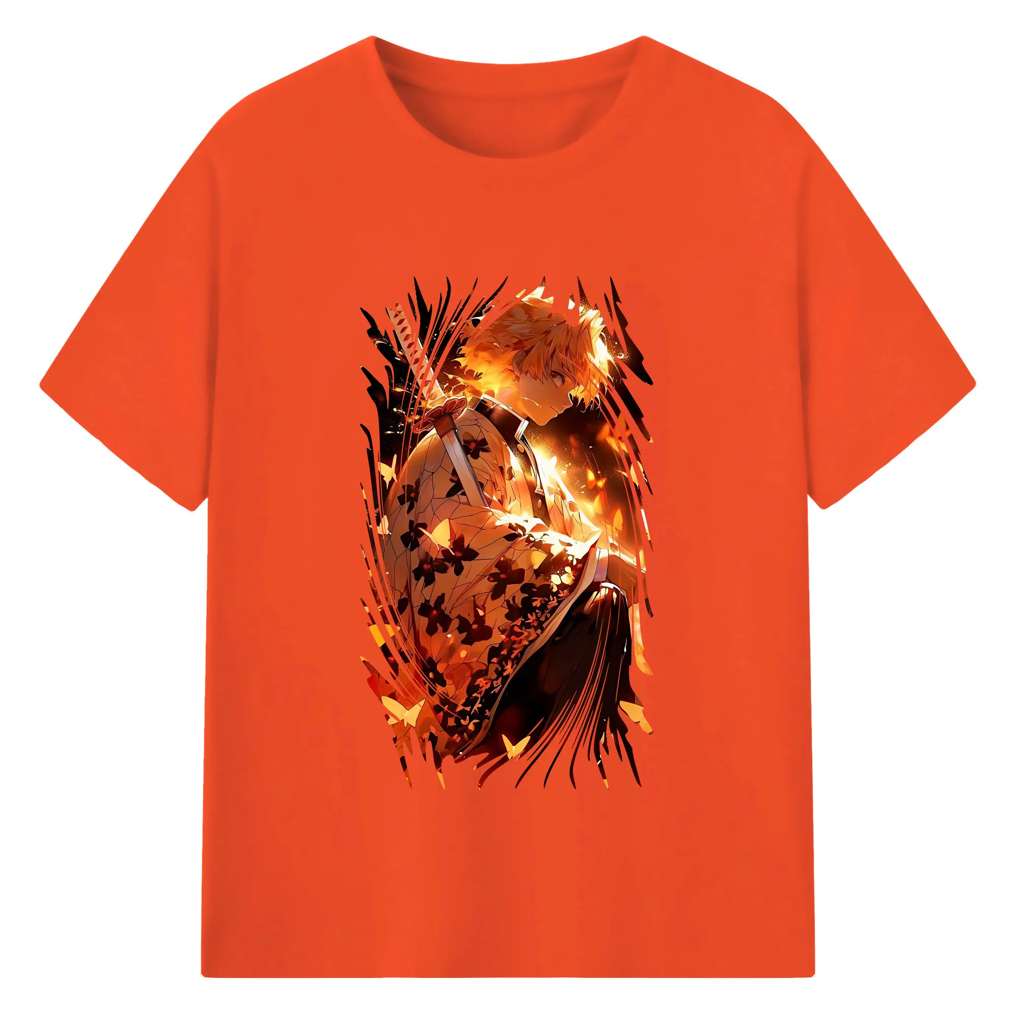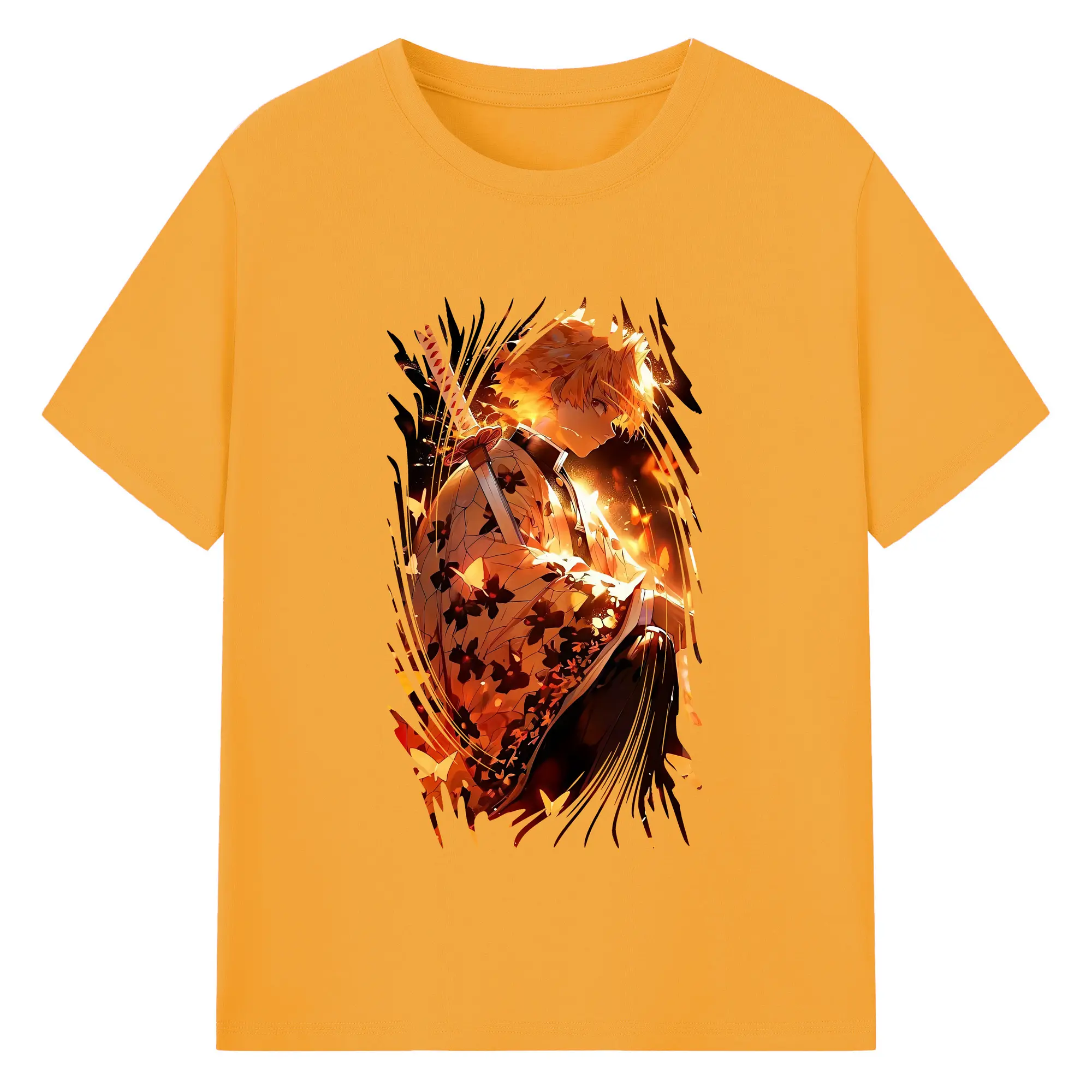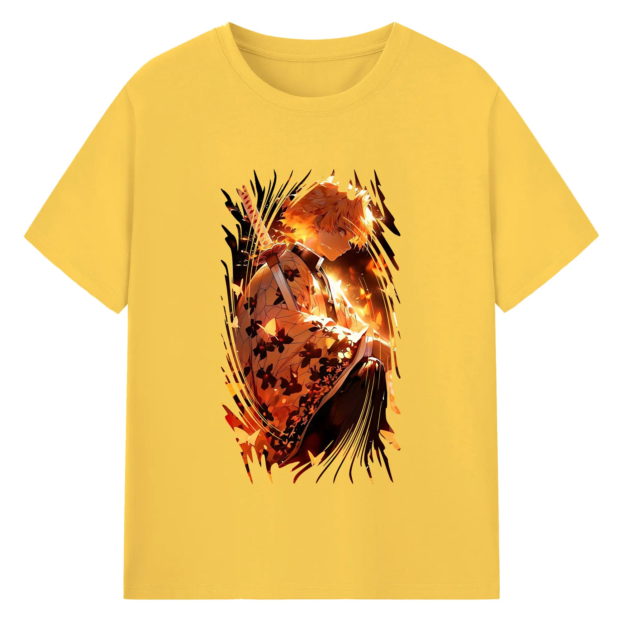 鬼滅の刃 グッズ,我妻 善逸 - 綿100% 半袖Tシャツ ・ バックプリント ・ 快適 通気性 ・ 日常使い 散歩 スポーツ用