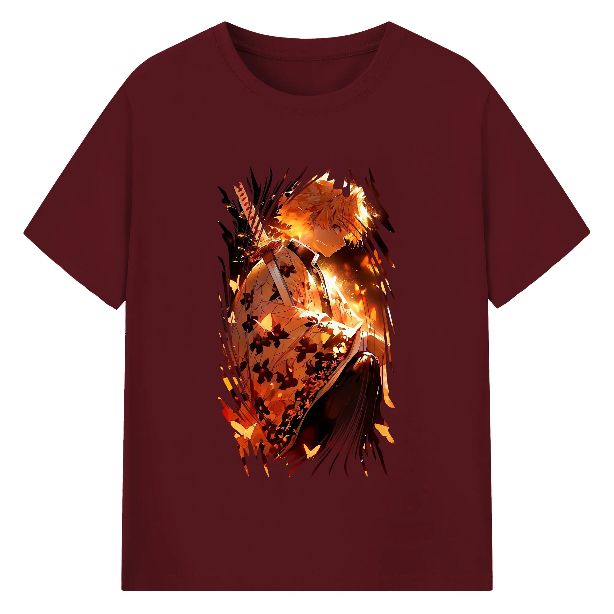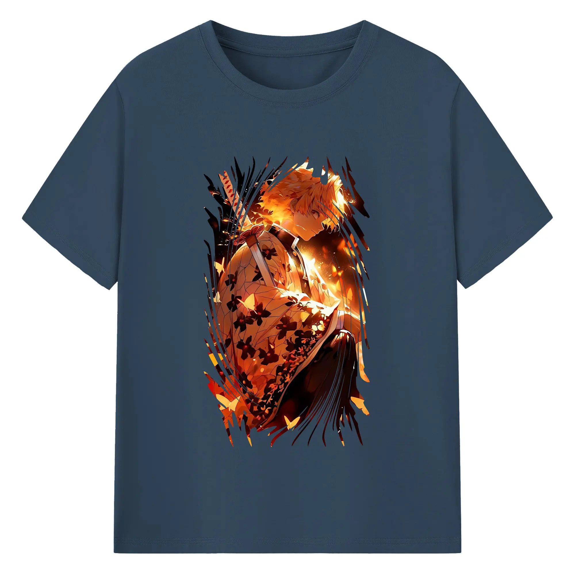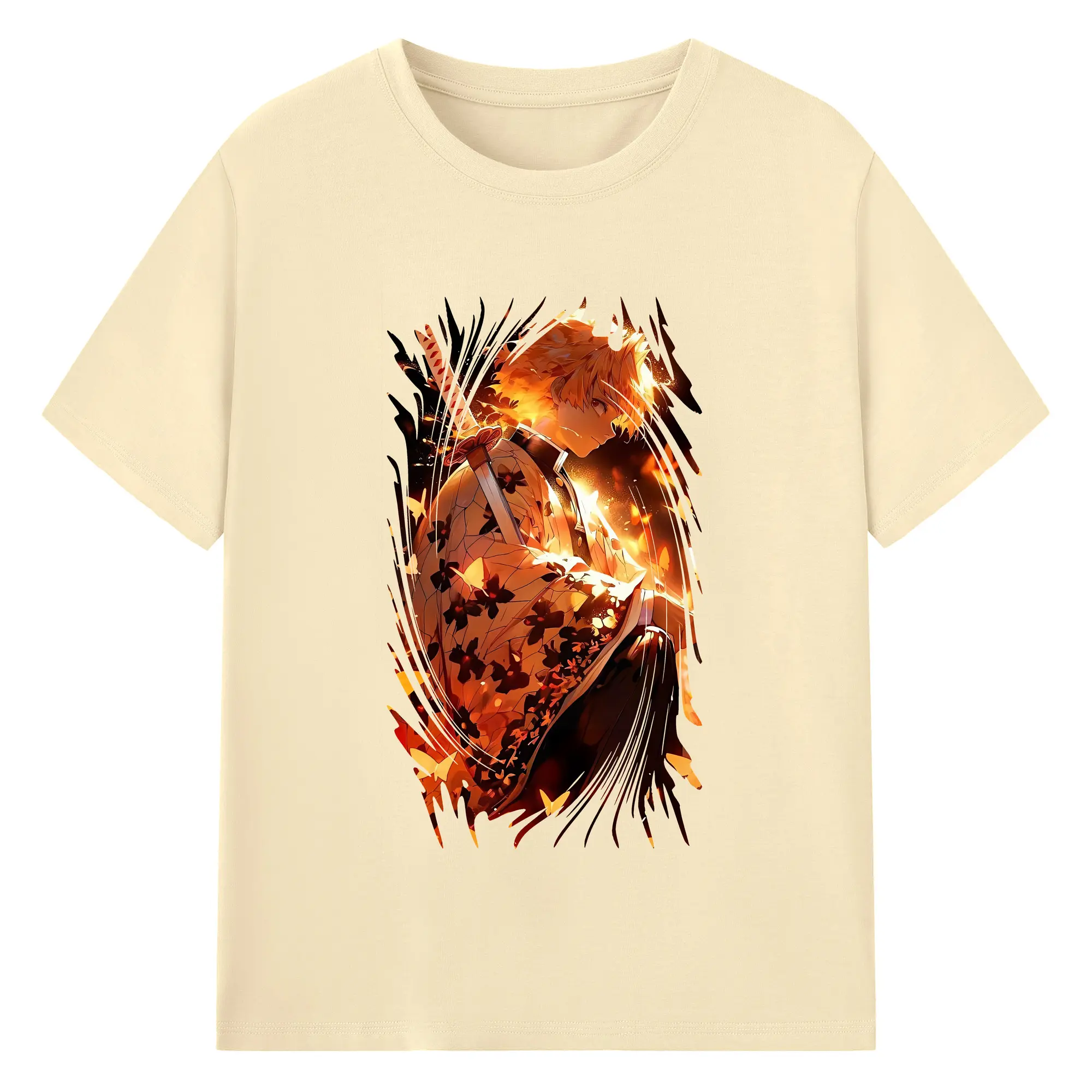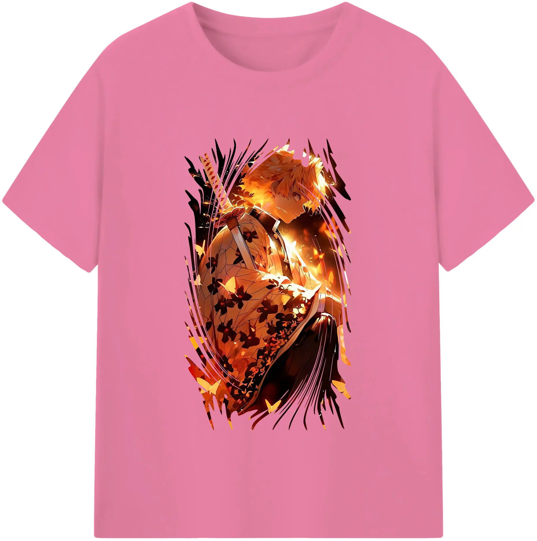 鬼滅の刃 グッズ,我妻 善逸 - 綿100% 半袖Tシャツ ・ バックプリント ・ 快適 通気性 ・ 日常使い 散歩 スポーツ用