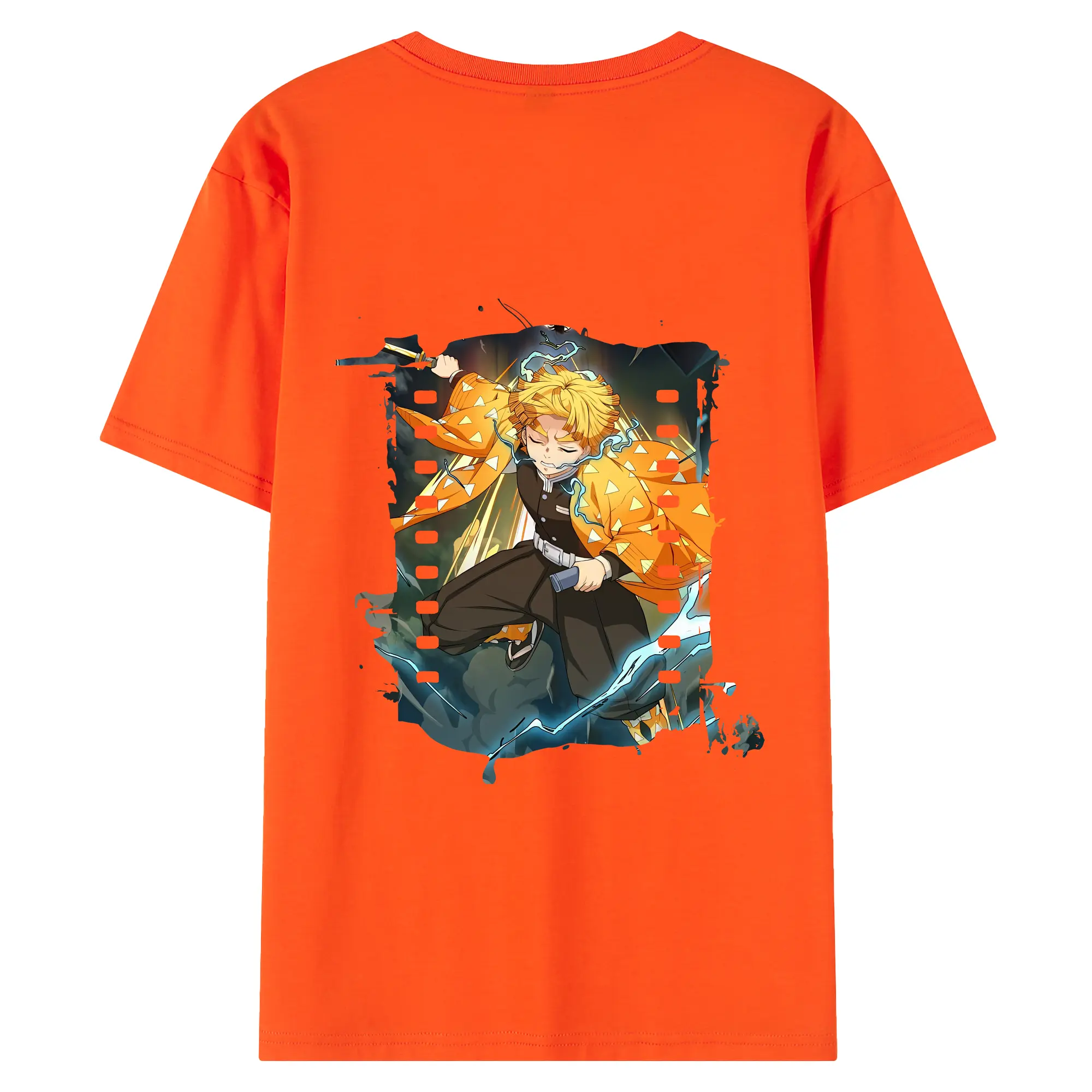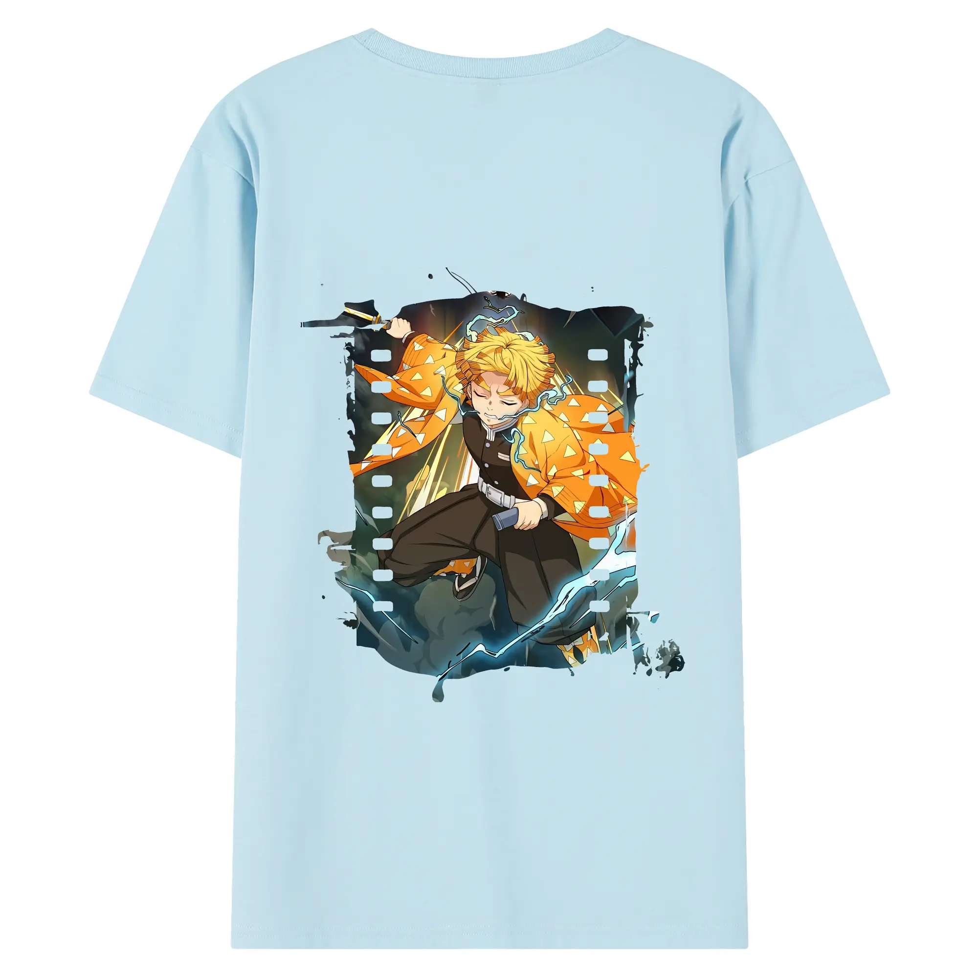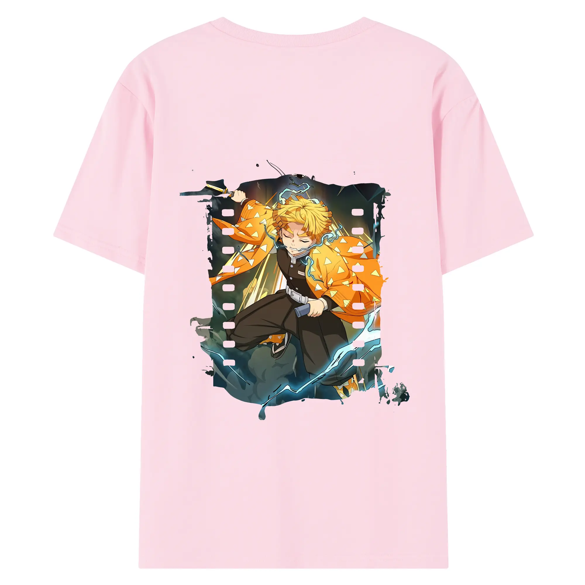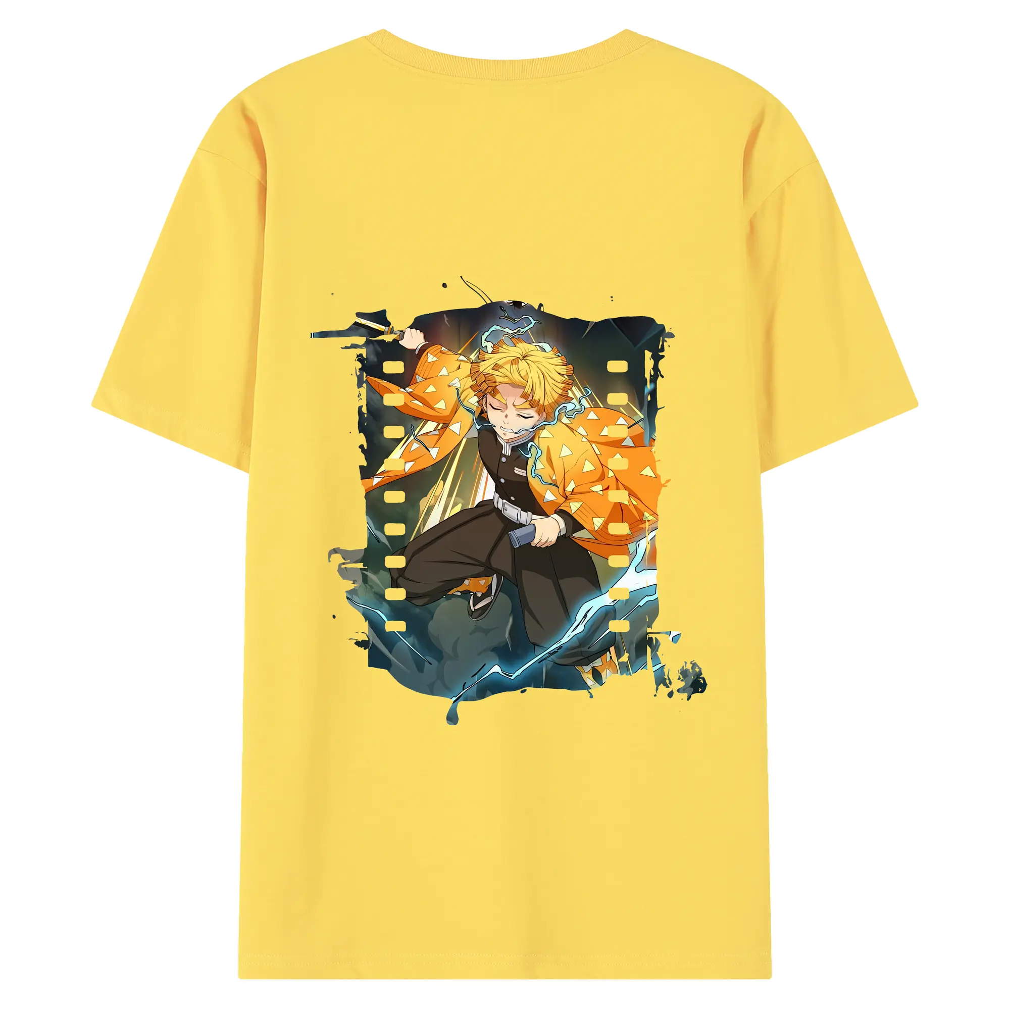 鬼滅の刃 グッズ,我妻 善逸 - 綿100% 半袖Tシャツ ・ フロントプリント ・ 快適 通気性 ・ 日常使い 散歩 スポーツ用