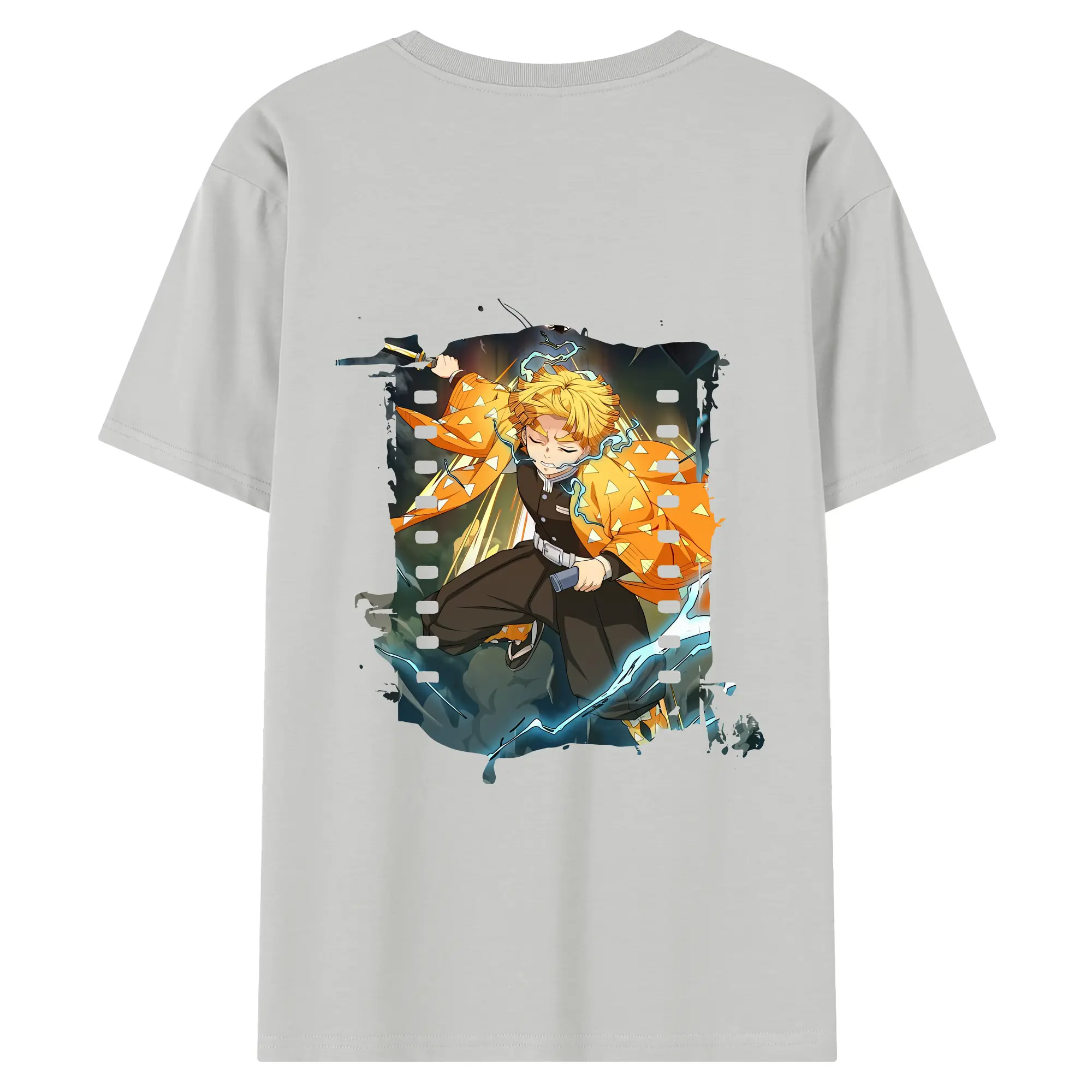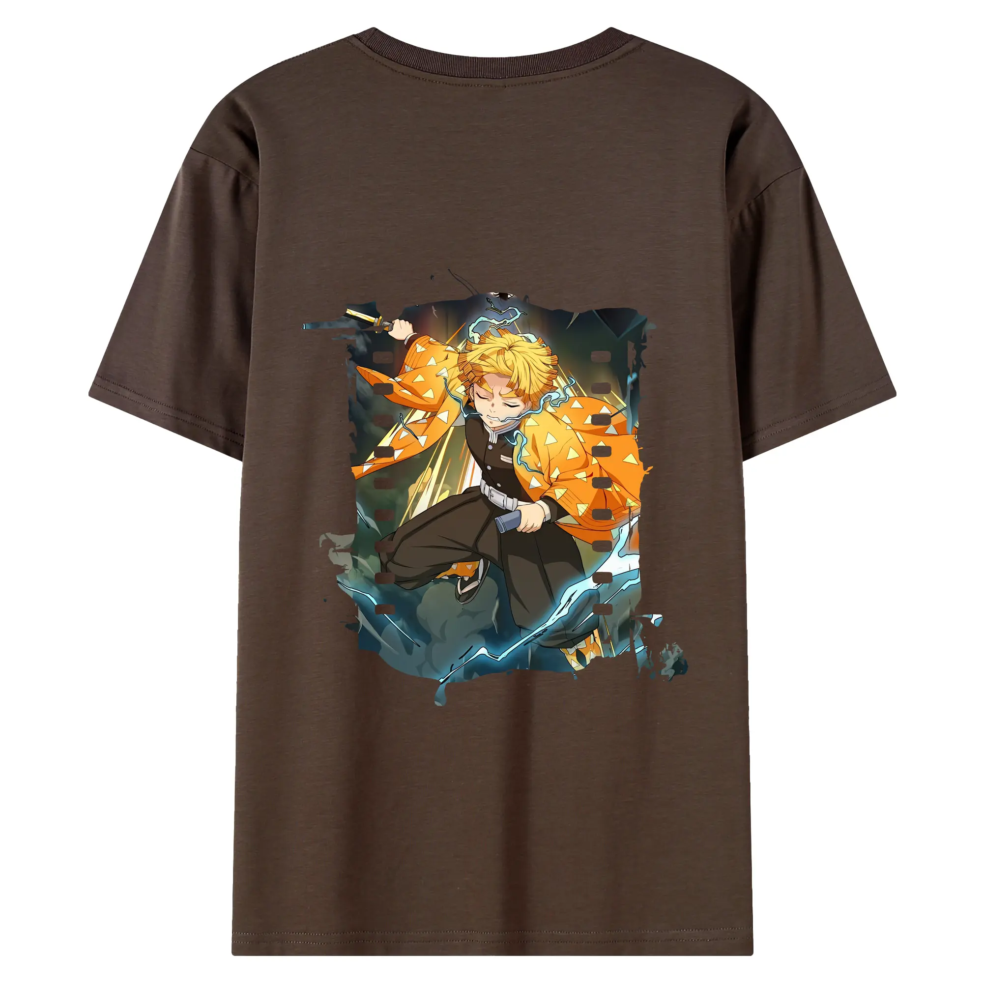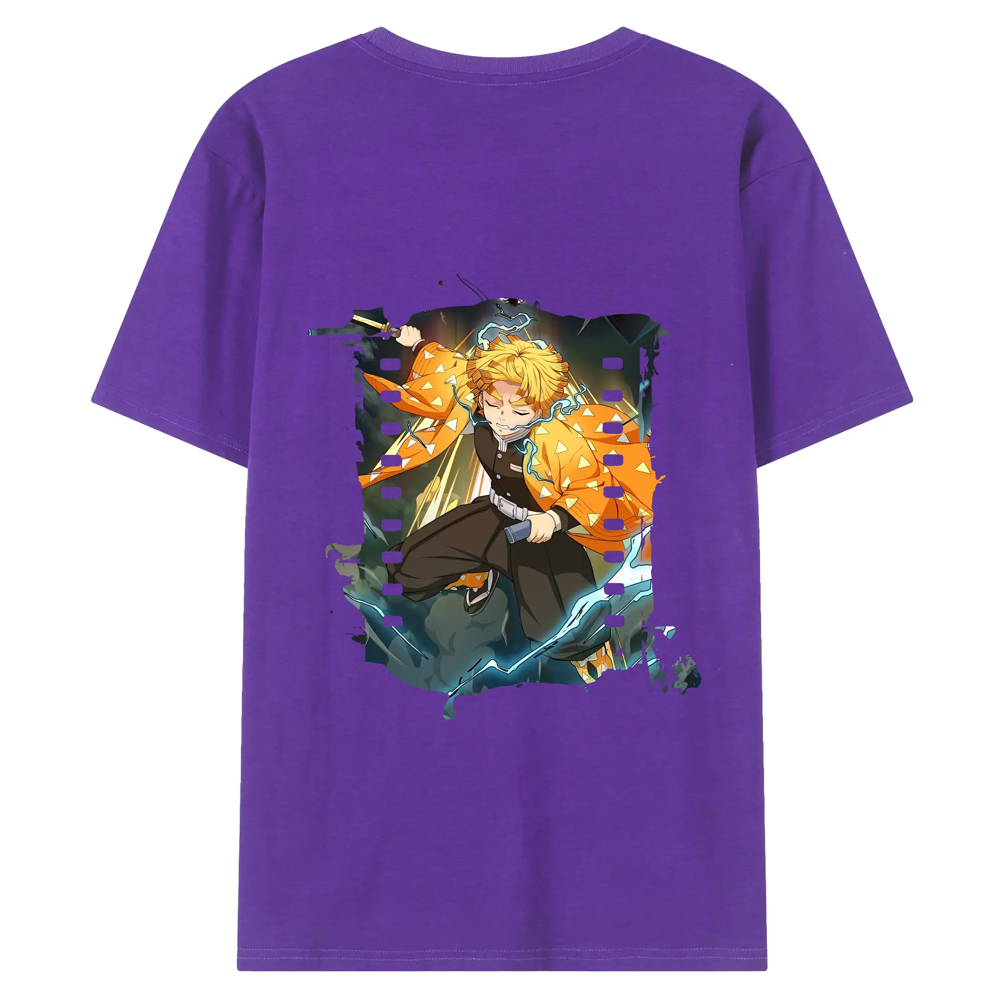 鬼滅の刃 グッズ,我妻 善逸 - 綿100% 半袖Tシャツ ・ フロントプリント ・ 快適 通気性 ・ 日常使い 散歩 スポーツ用