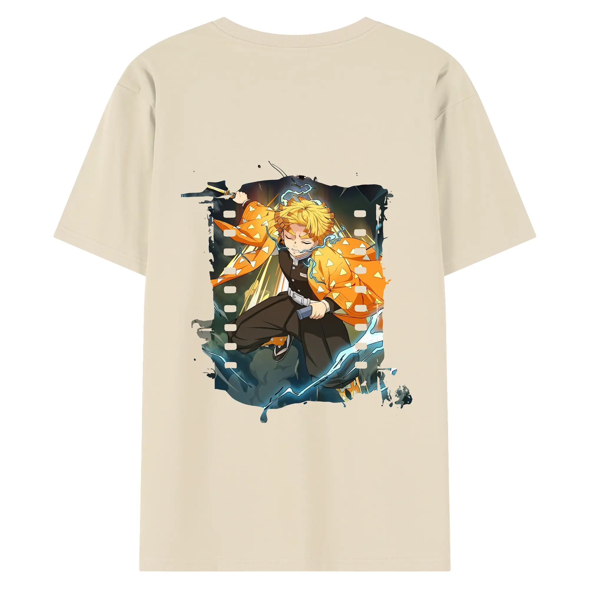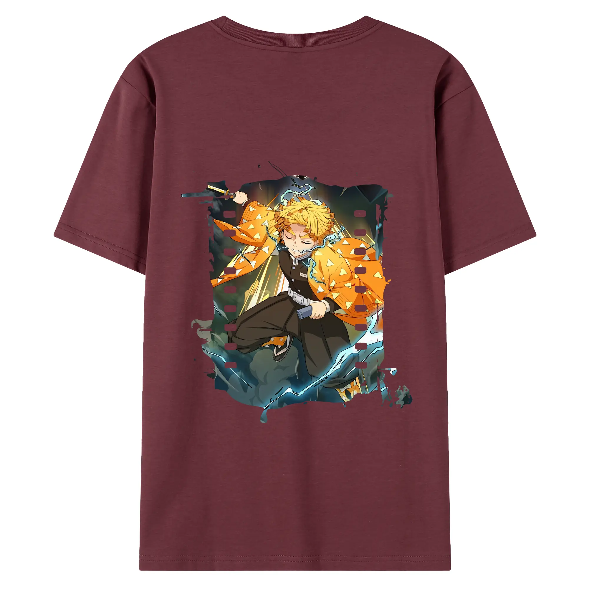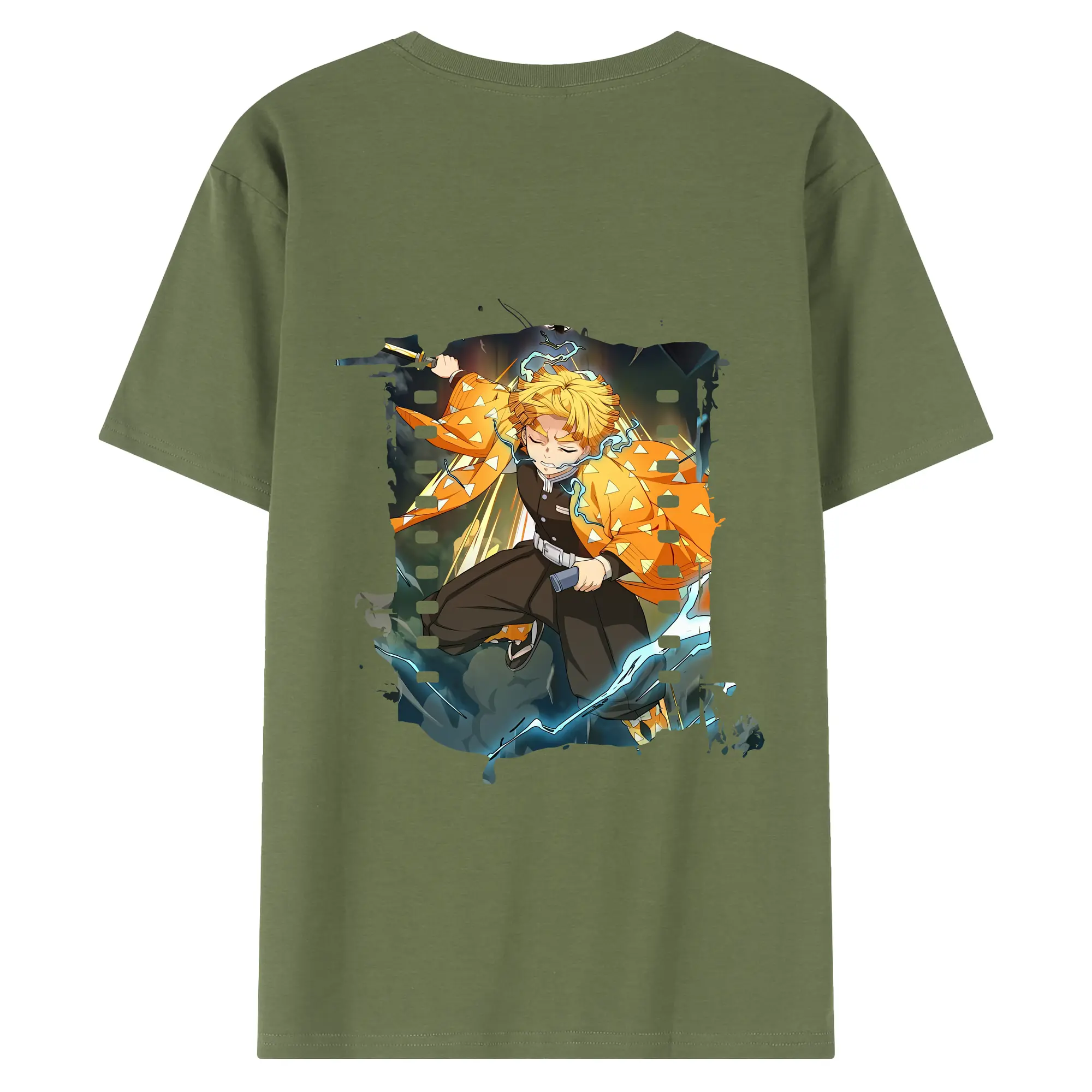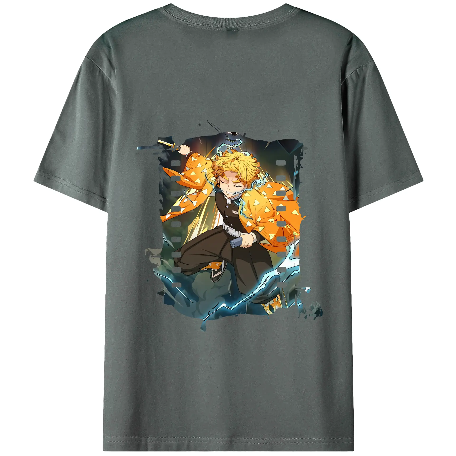 鬼滅の刃 グッズ,我妻 善逸 - 綿100% 半袖Tシャツ ・ フロントプリント ・ 快適 通気性 ・ 日常使い 散歩 スポーツ用