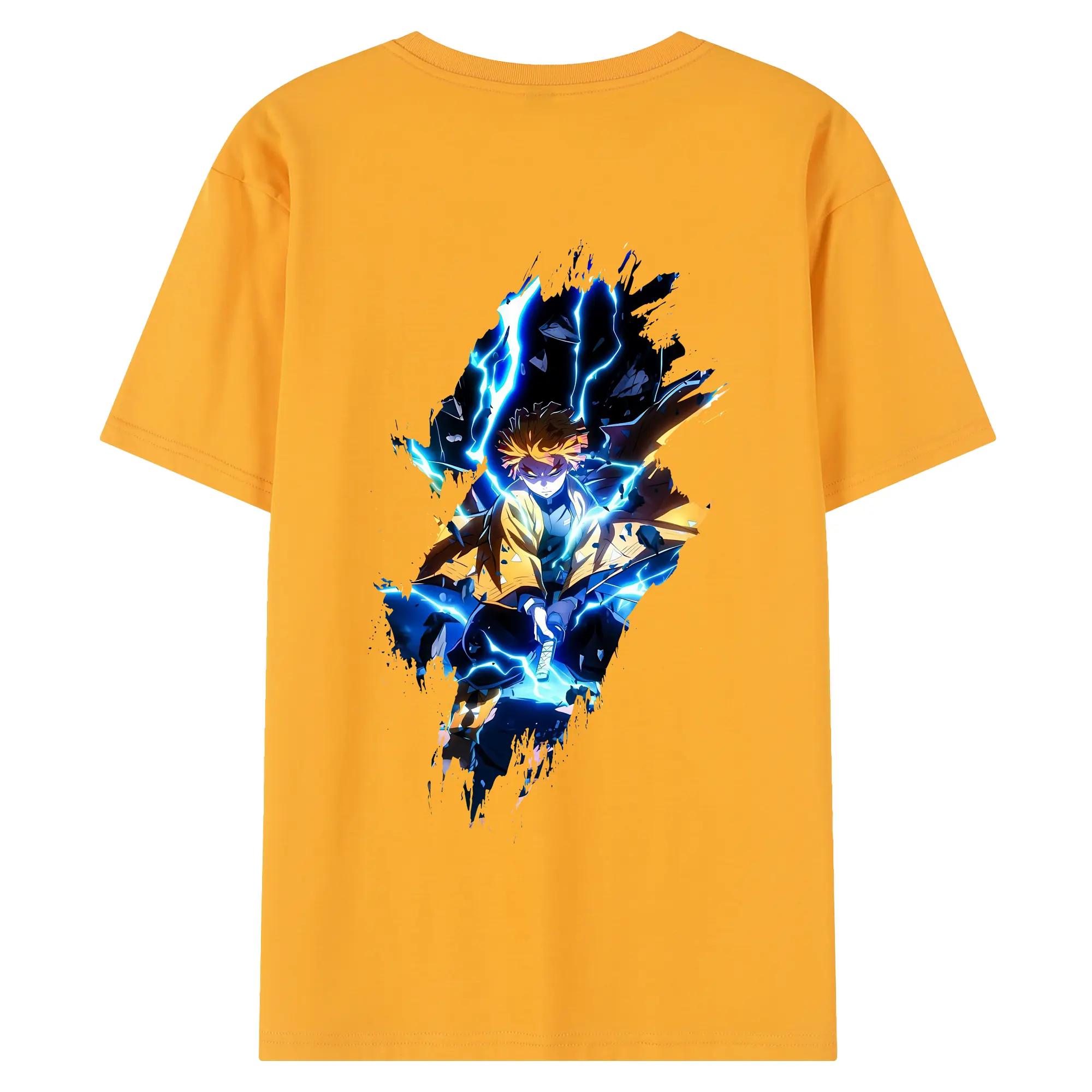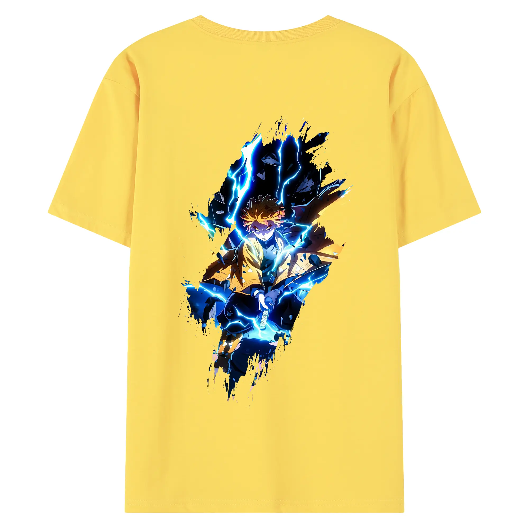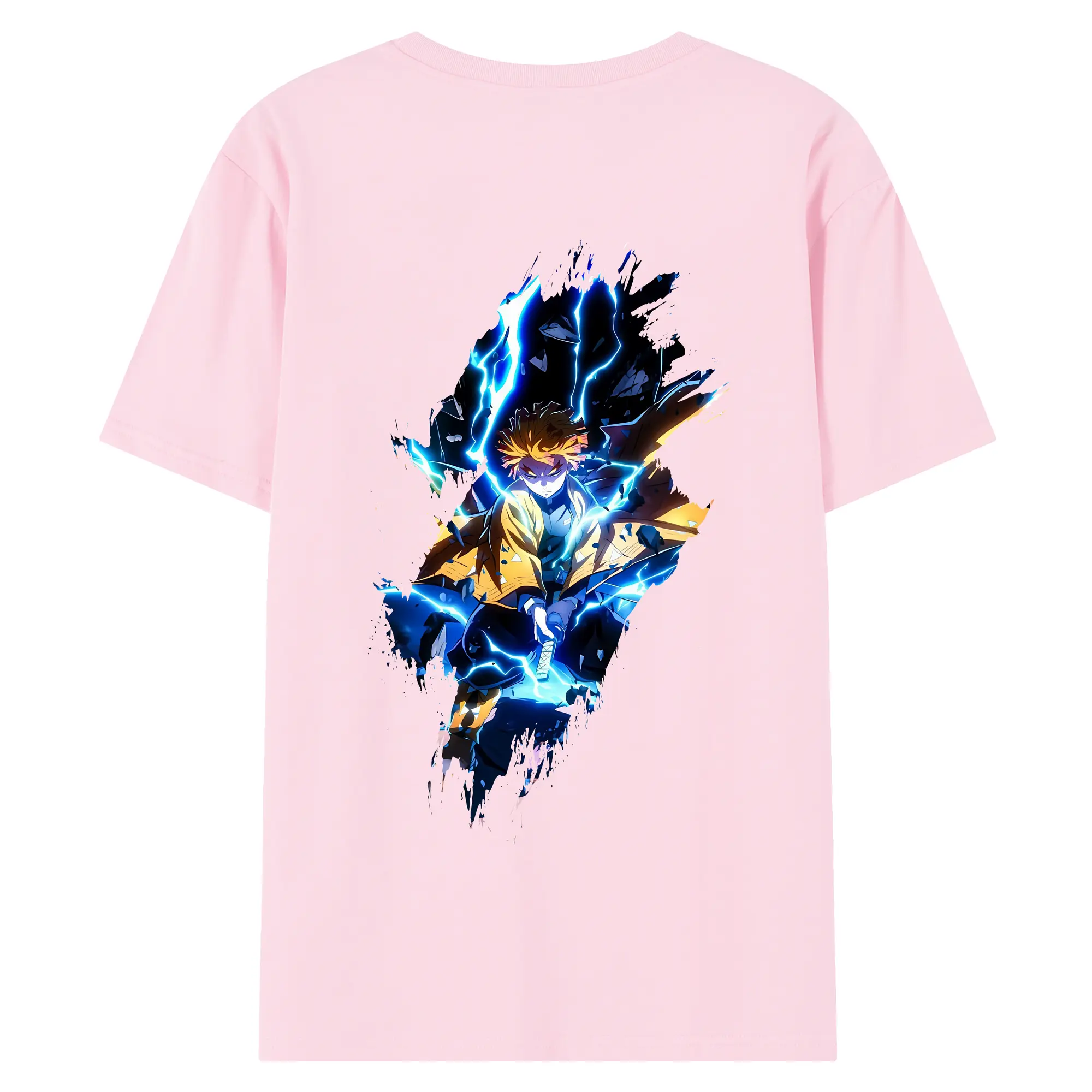 鬼滅の刃 グッズ,我妻 善逸 - 綿100% 半袖Tシャツ ・ フロントプリント ・ 快適 通気性 ・ 日常使い 散歩 スポーツ用