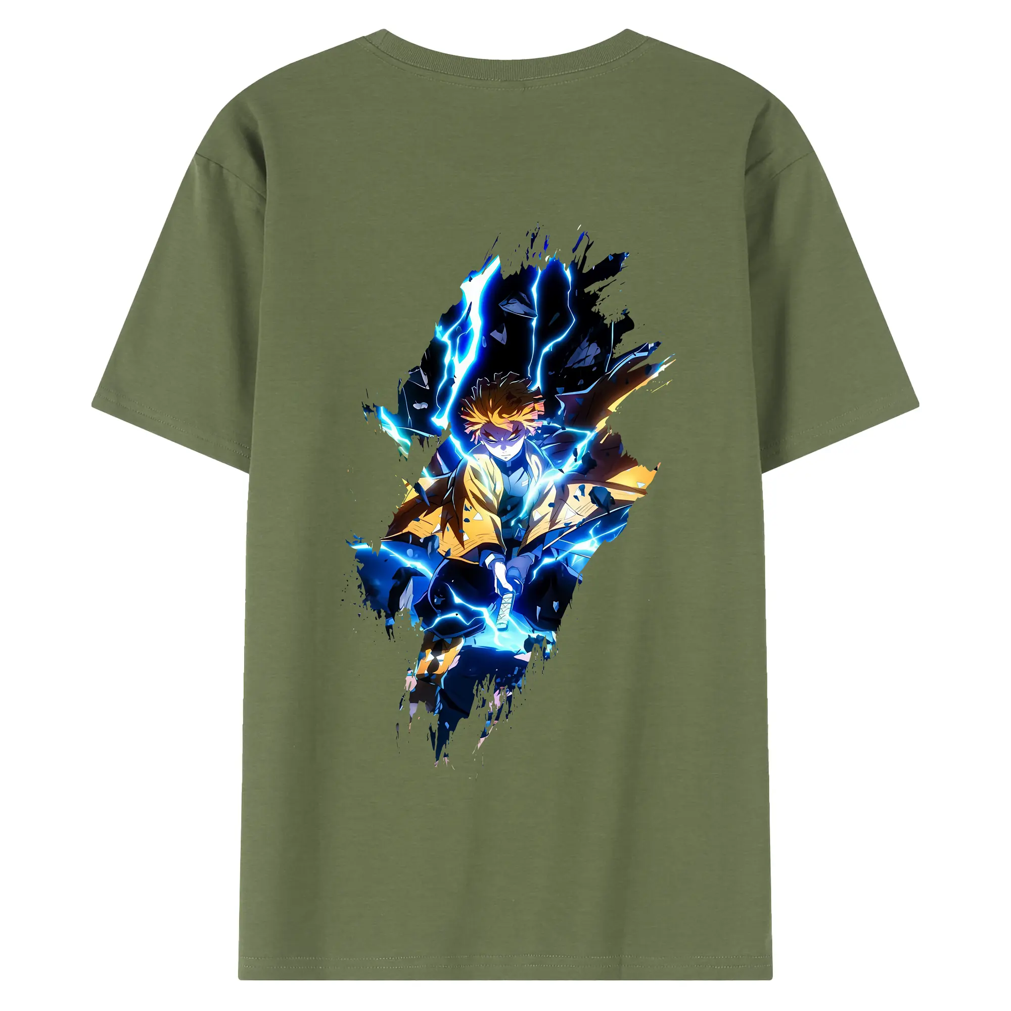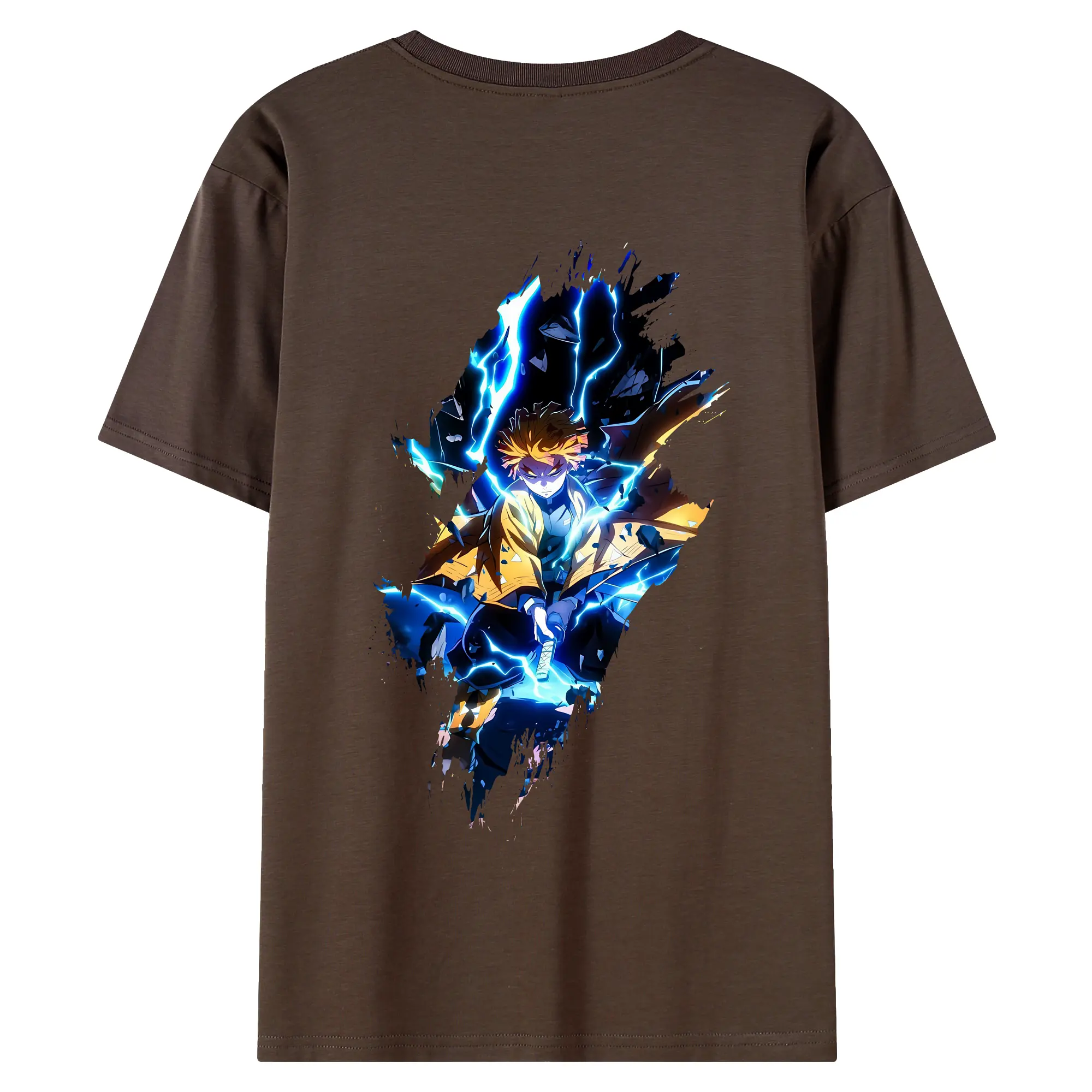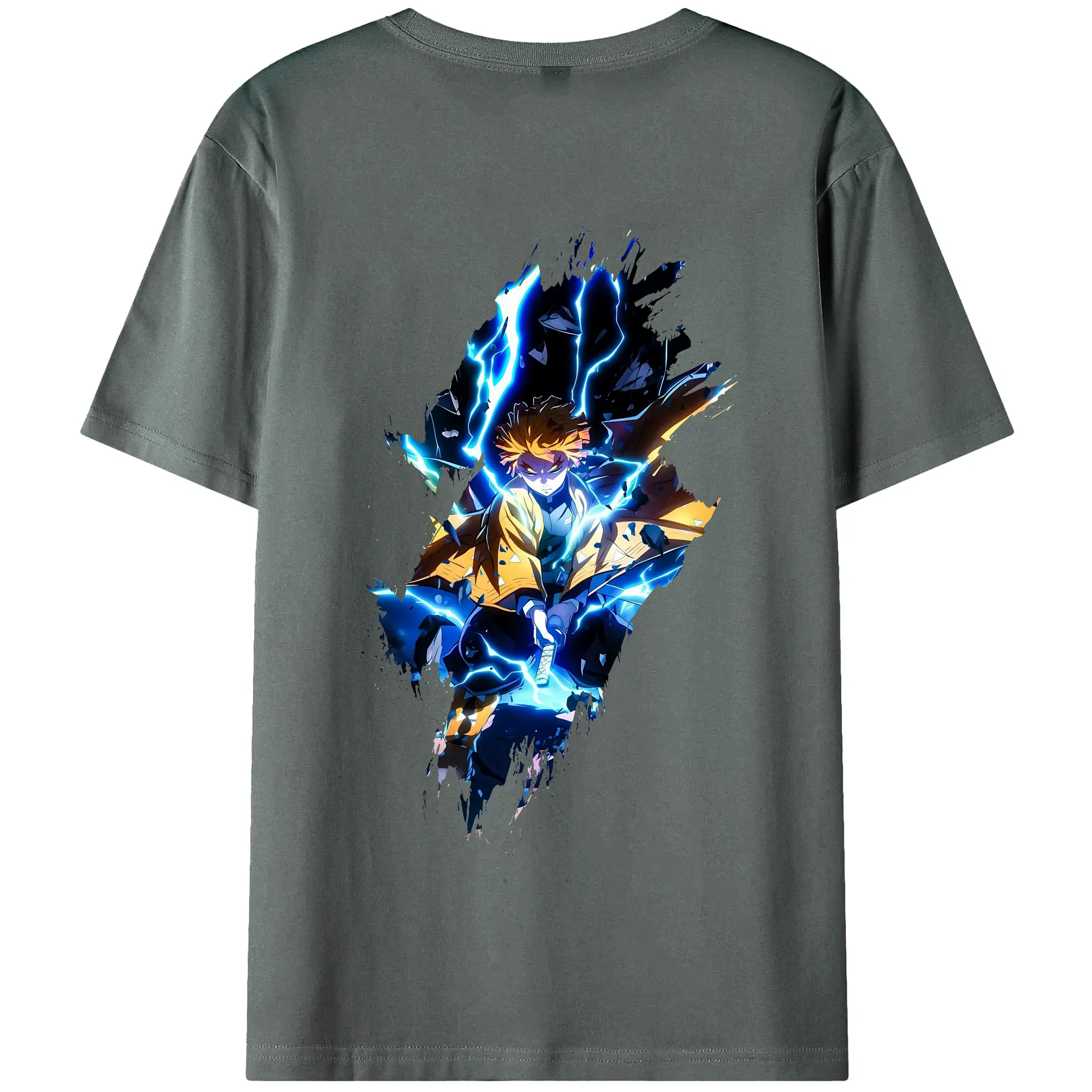 鬼滅の刃 グッズ,我妻 善逸 - 綿100% 半袖Tシャツ ・ フロントプリント ・ 快適 通気性 ・ 日常使い 散歩 スポーツ用