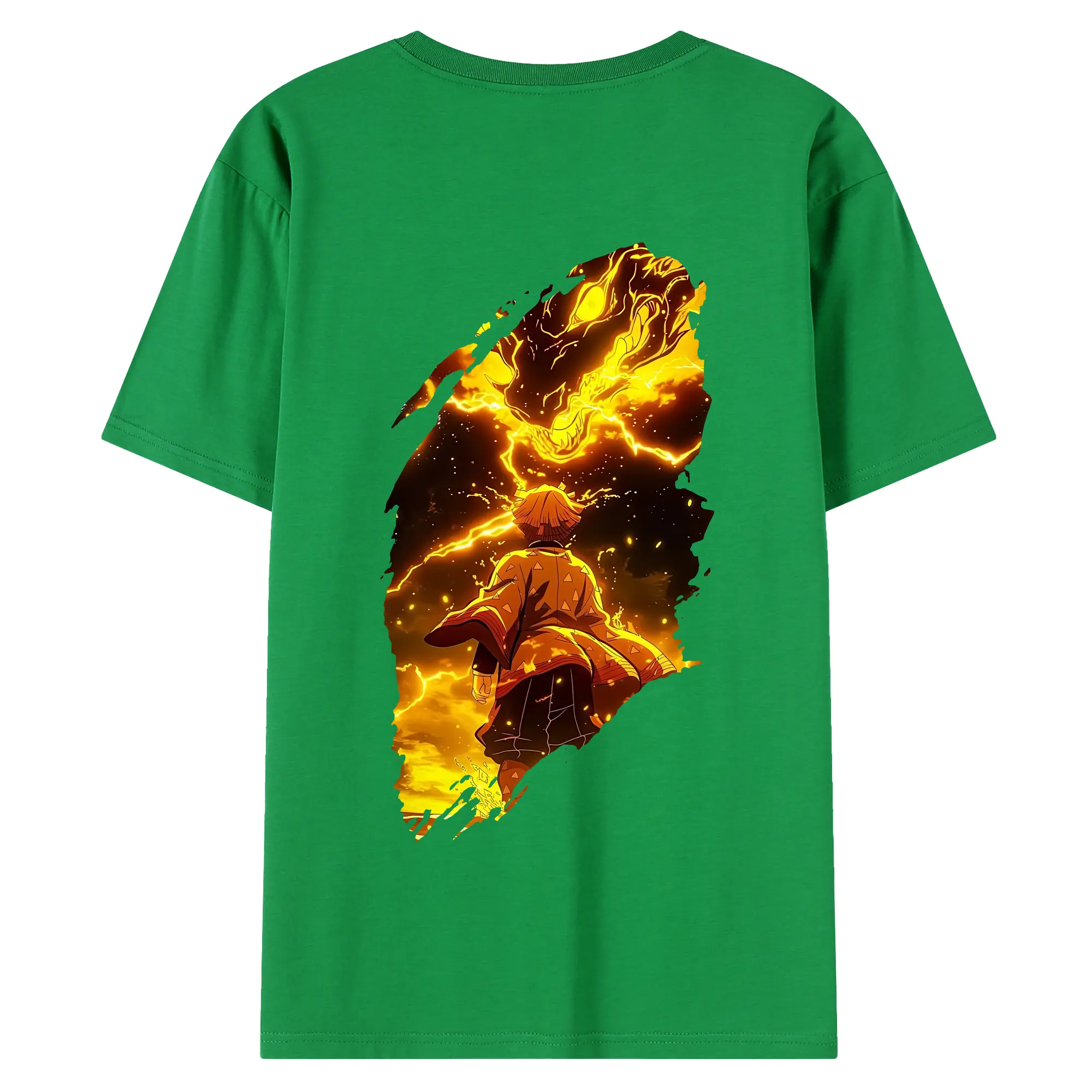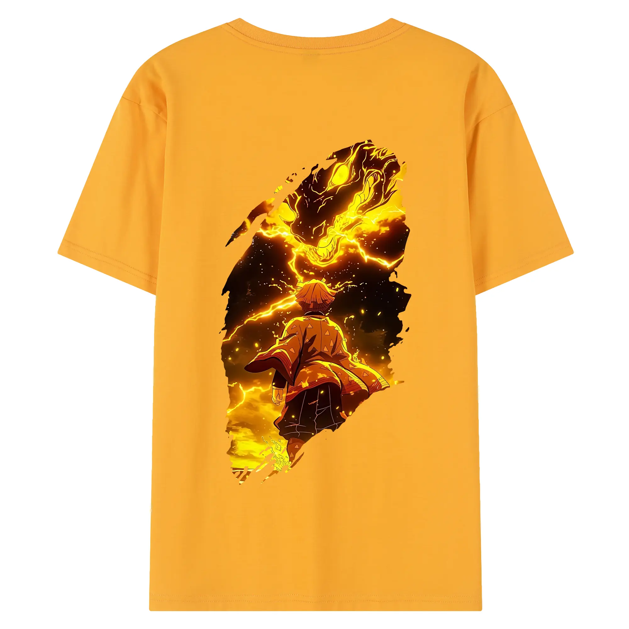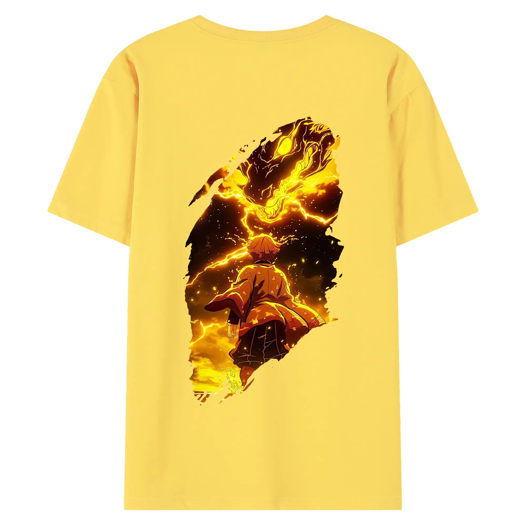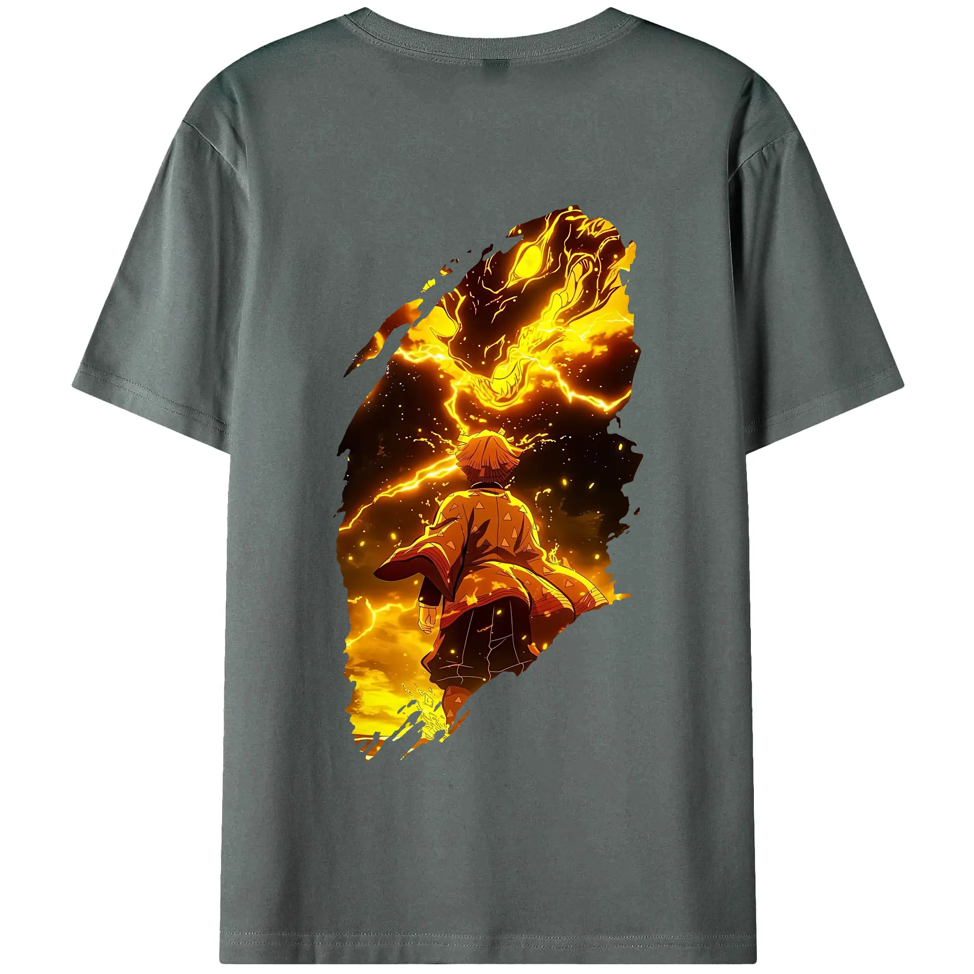 鬼滅の刃 グッズ,我妻 善逸 - 綿100% 半袖Tシャツ ・ フロントプリント ・ 快適 通気性 ・ 日常使い 散歩 スポーツ用