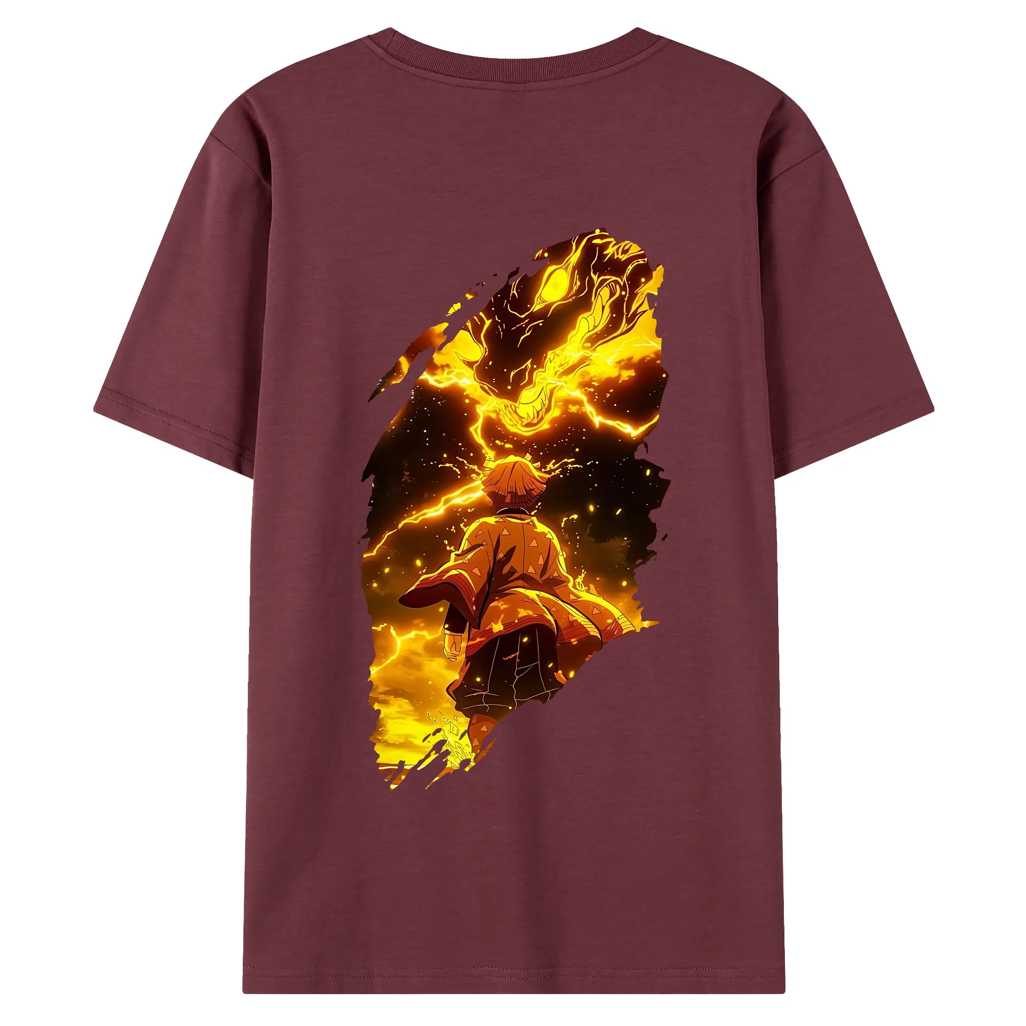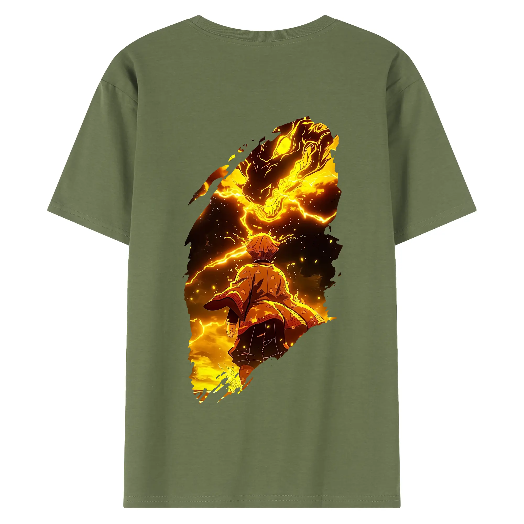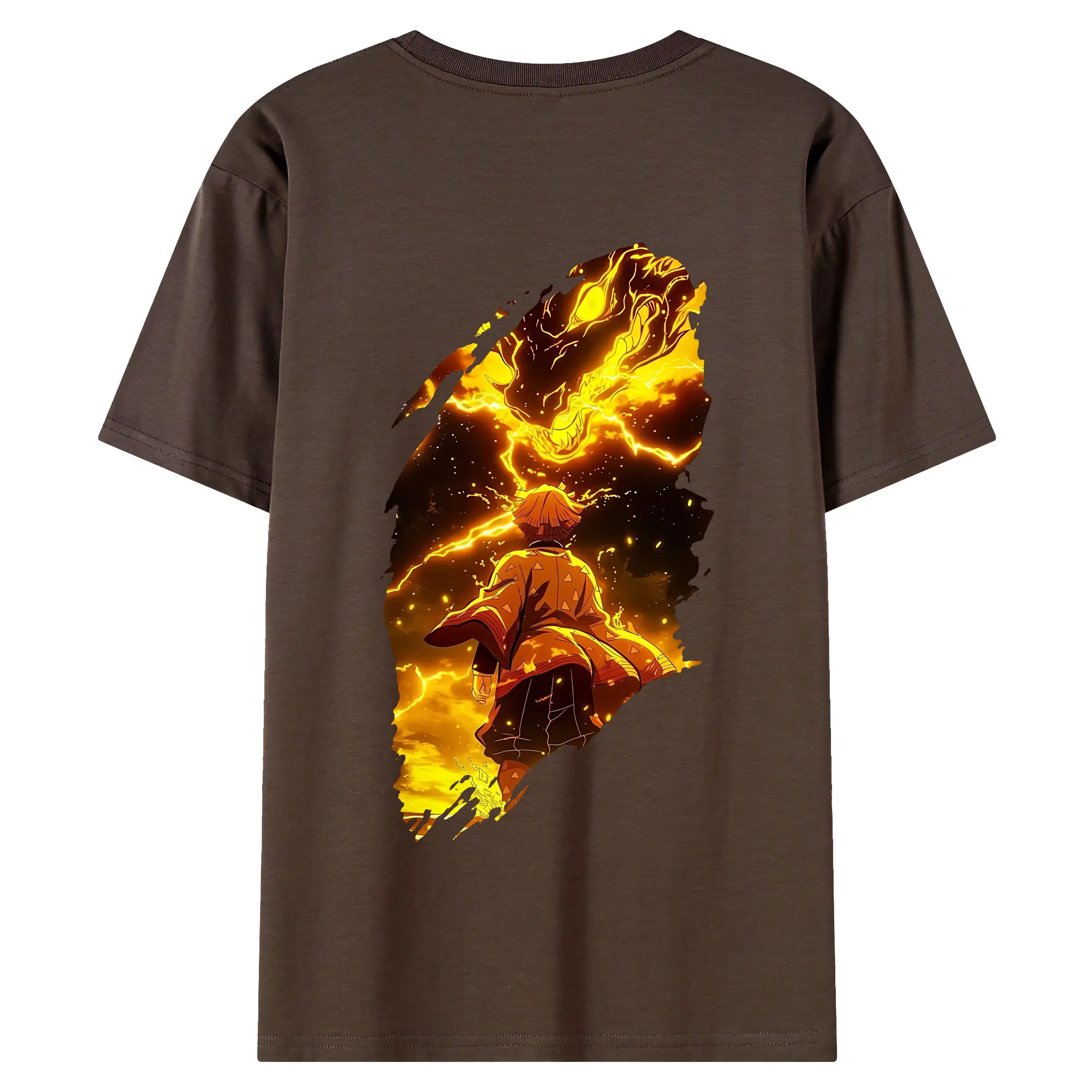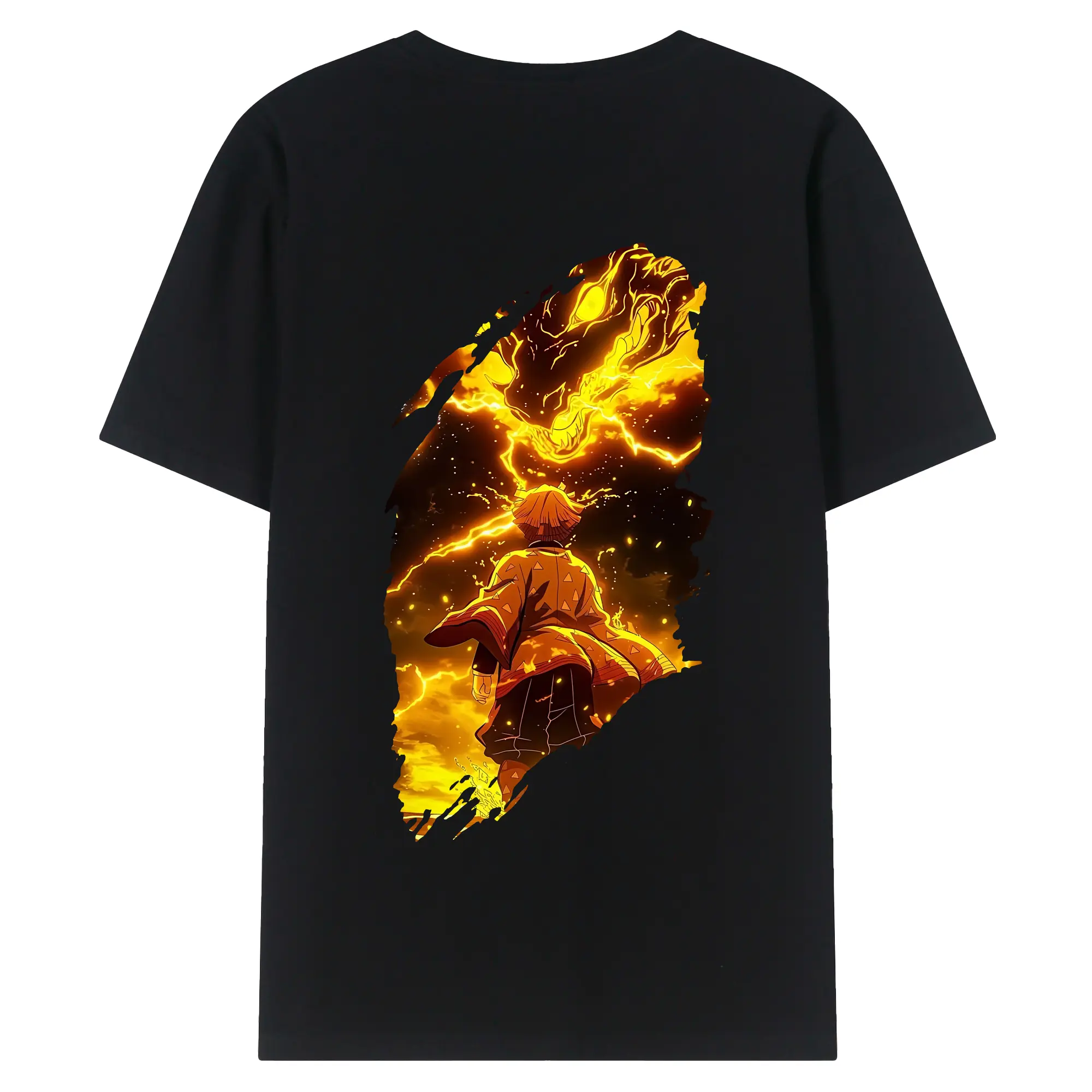 鬼滅の刃 グッズ,我妻 善逸 - 綿100% 半袖Tシャツ ・ フロントプリント ・ 快適 通気性 ・ 日常使い 散歩 スポーツ用