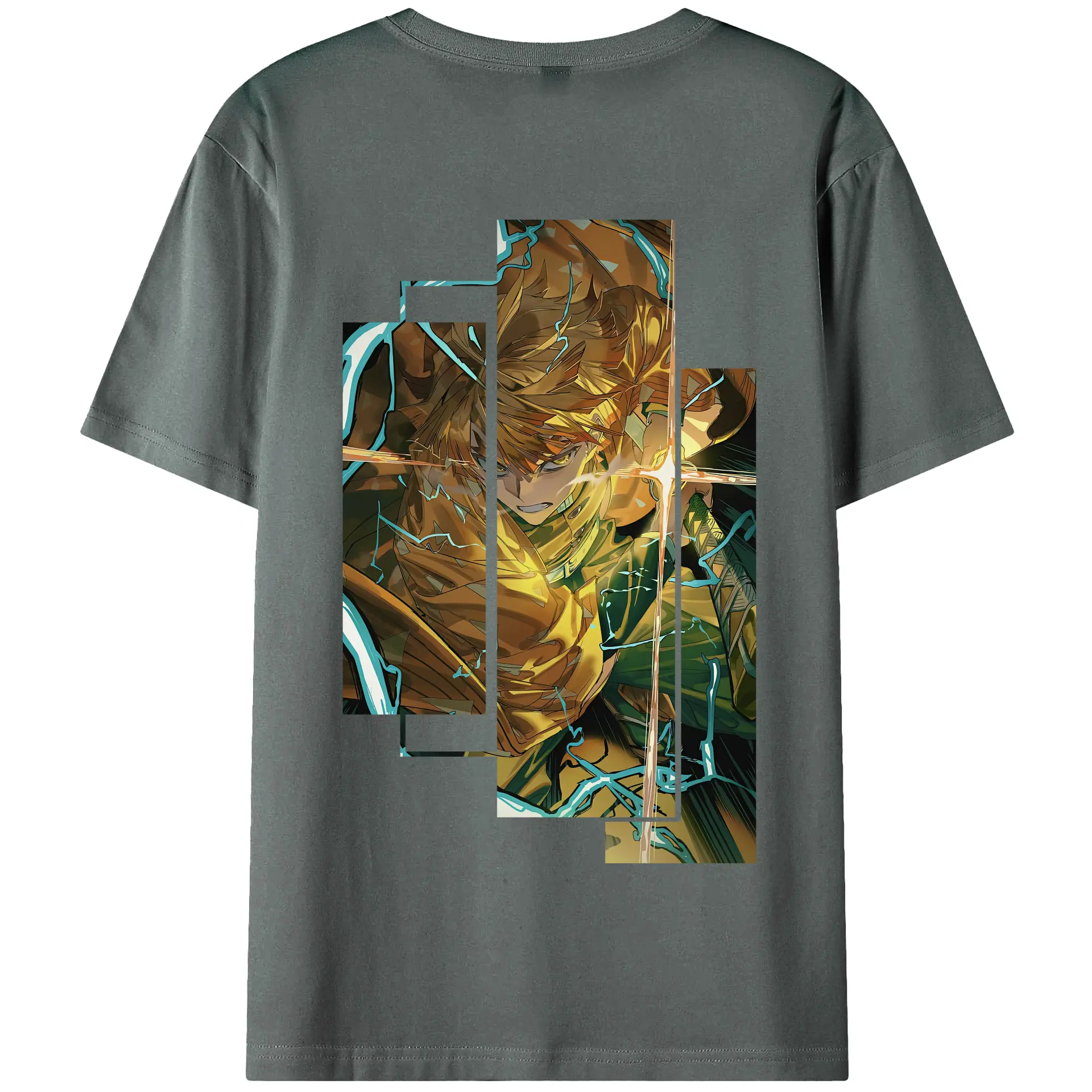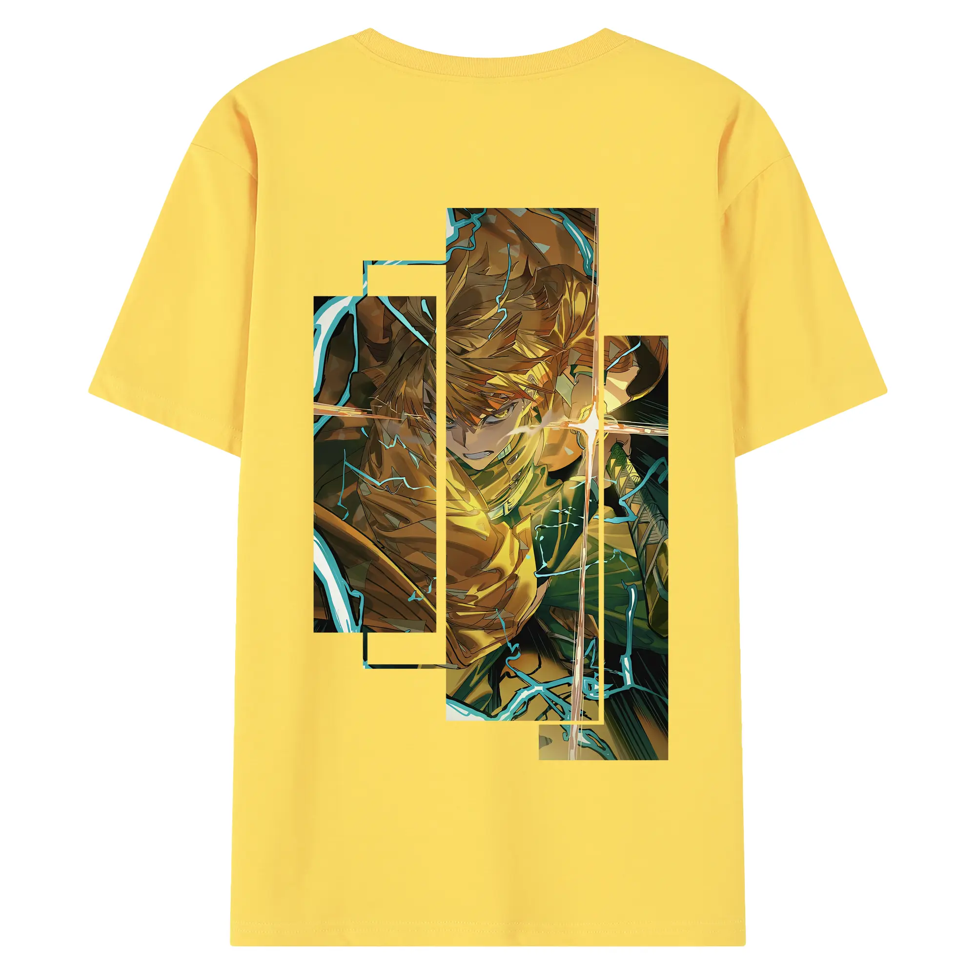 鬼滅の刃 グッズ,我妻 善逸 - 綿100% 半袖Tシャツ ・ フロントプリント ・ 快適 通気性 ・ 日常使い 散歩 スポーツ用