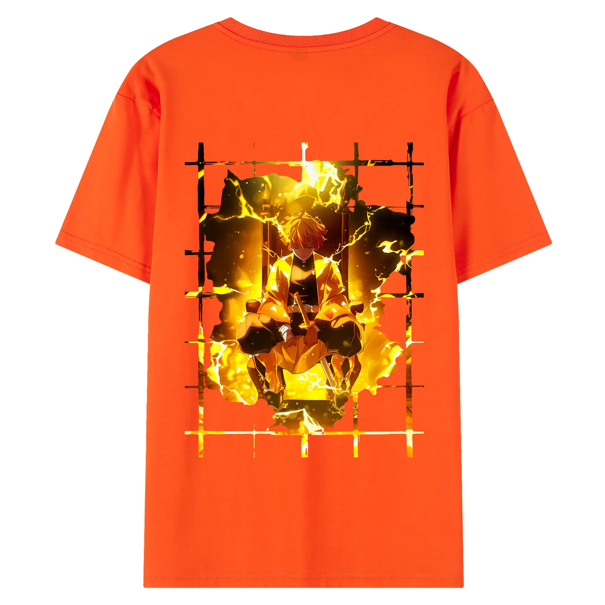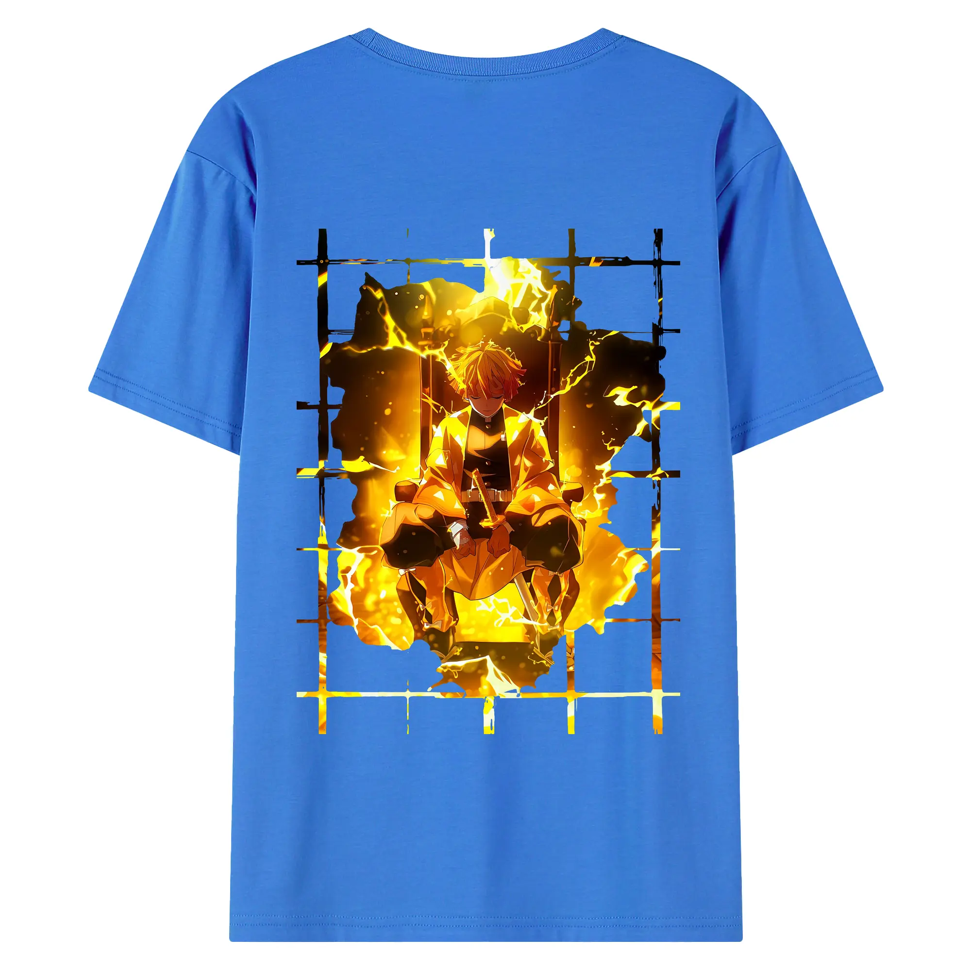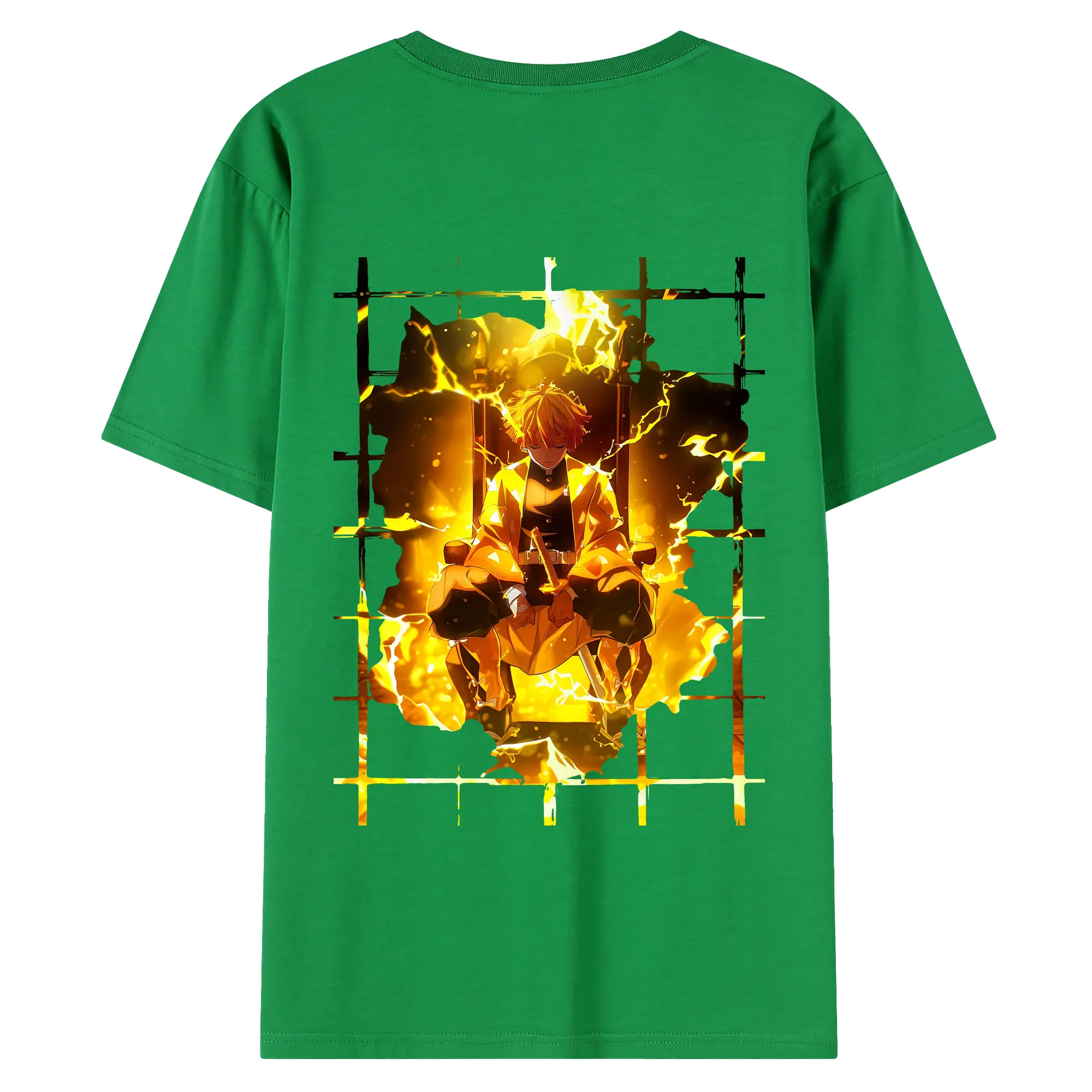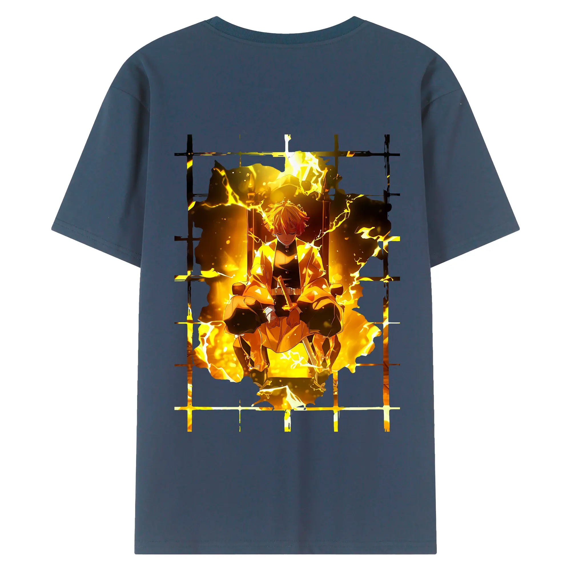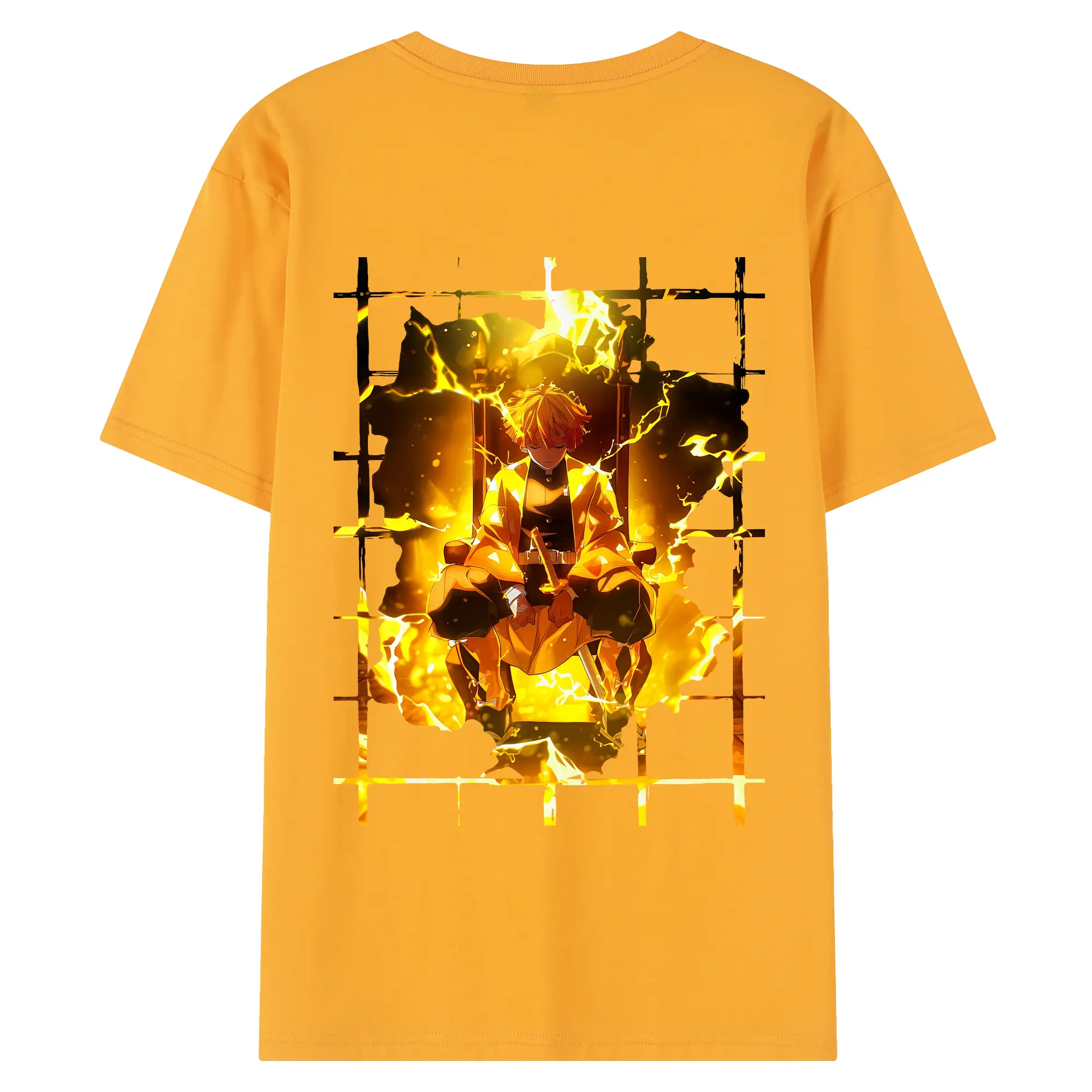 鬼滅の刃 グッズ,我妻 善逸 - 綿100% 半袖Tシャツ ・ フロントプリント ・ 快適 通気性 ・ 日常使い 散歩 スポーツ用