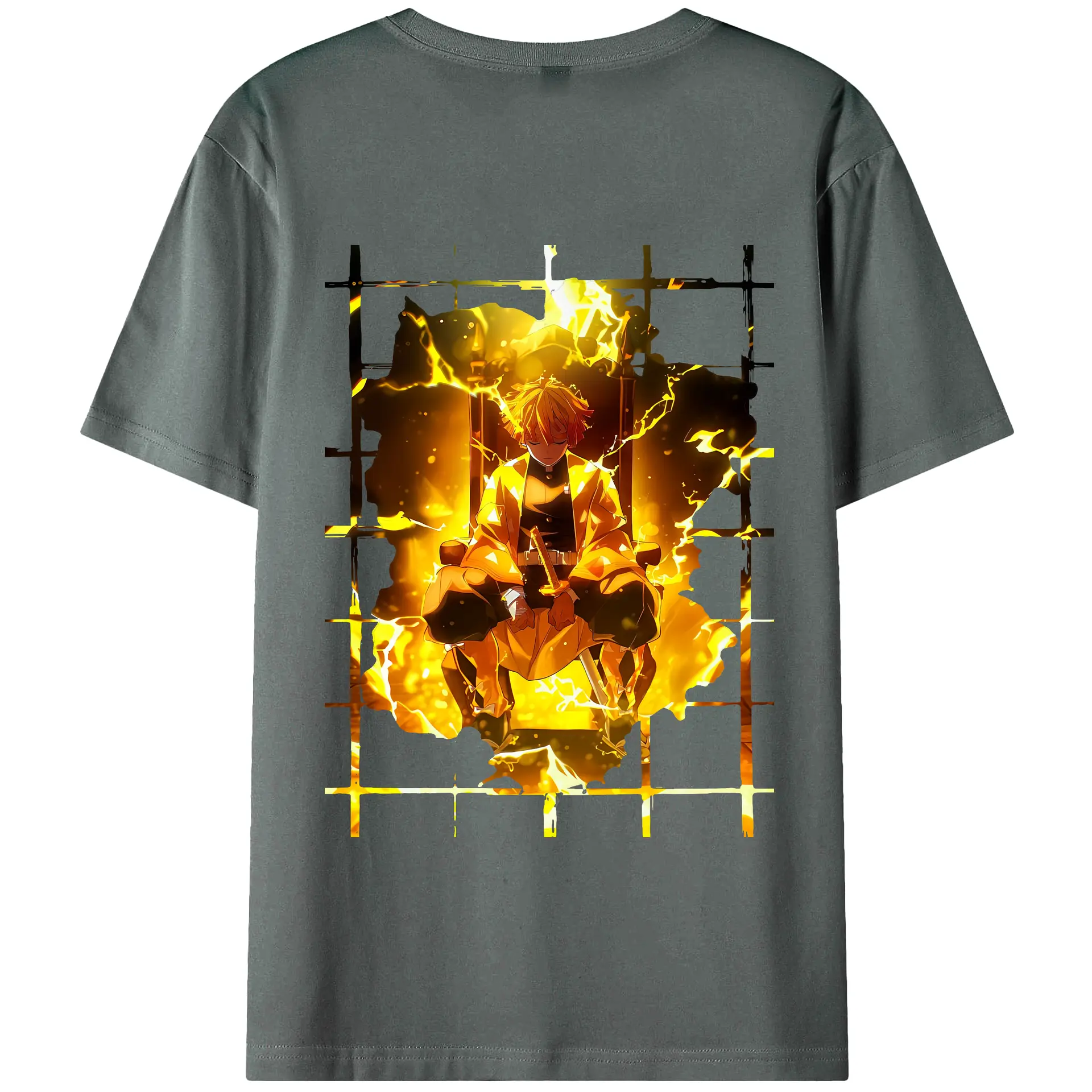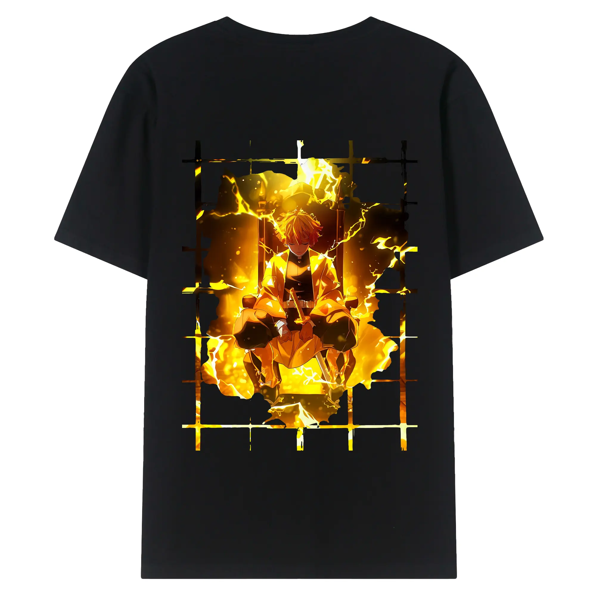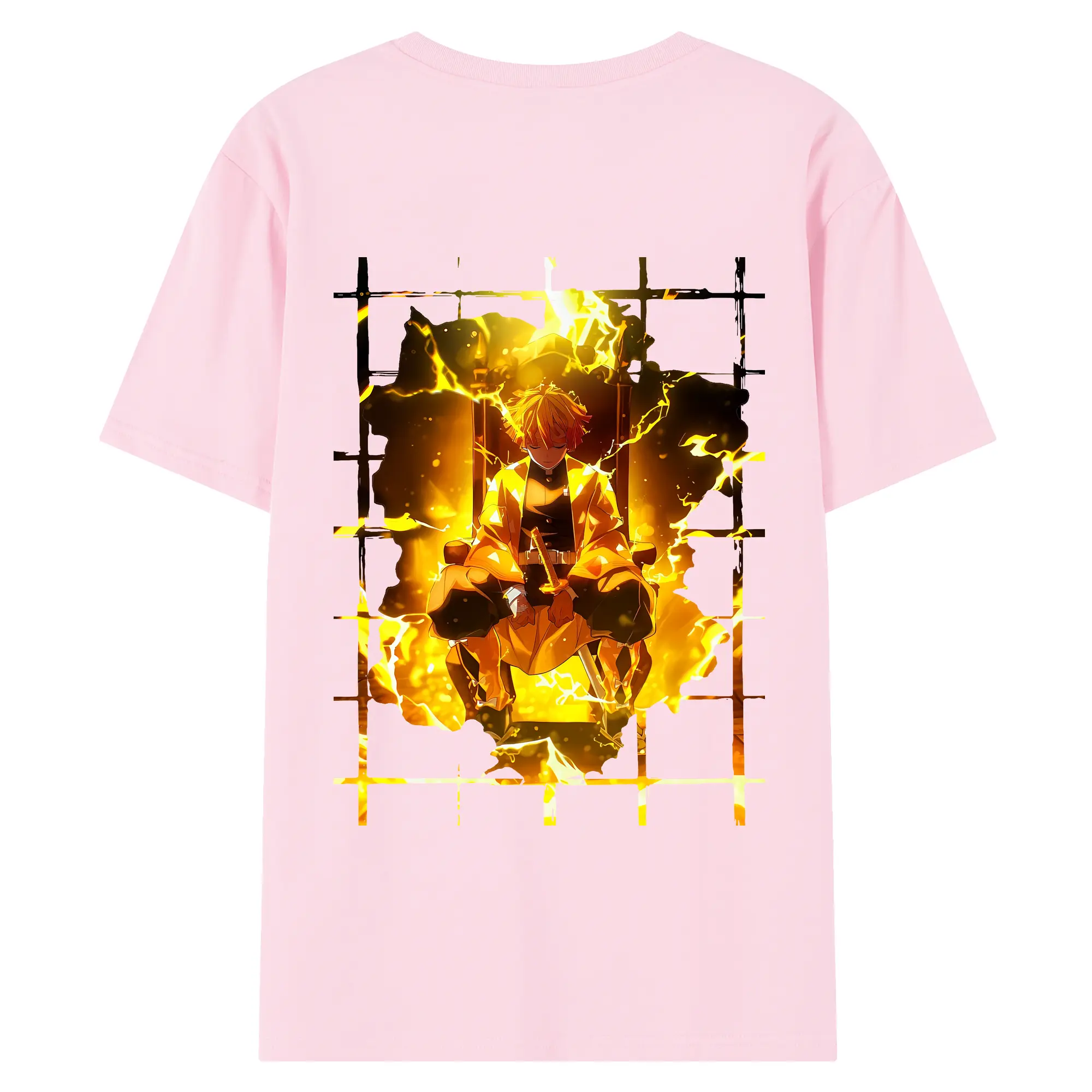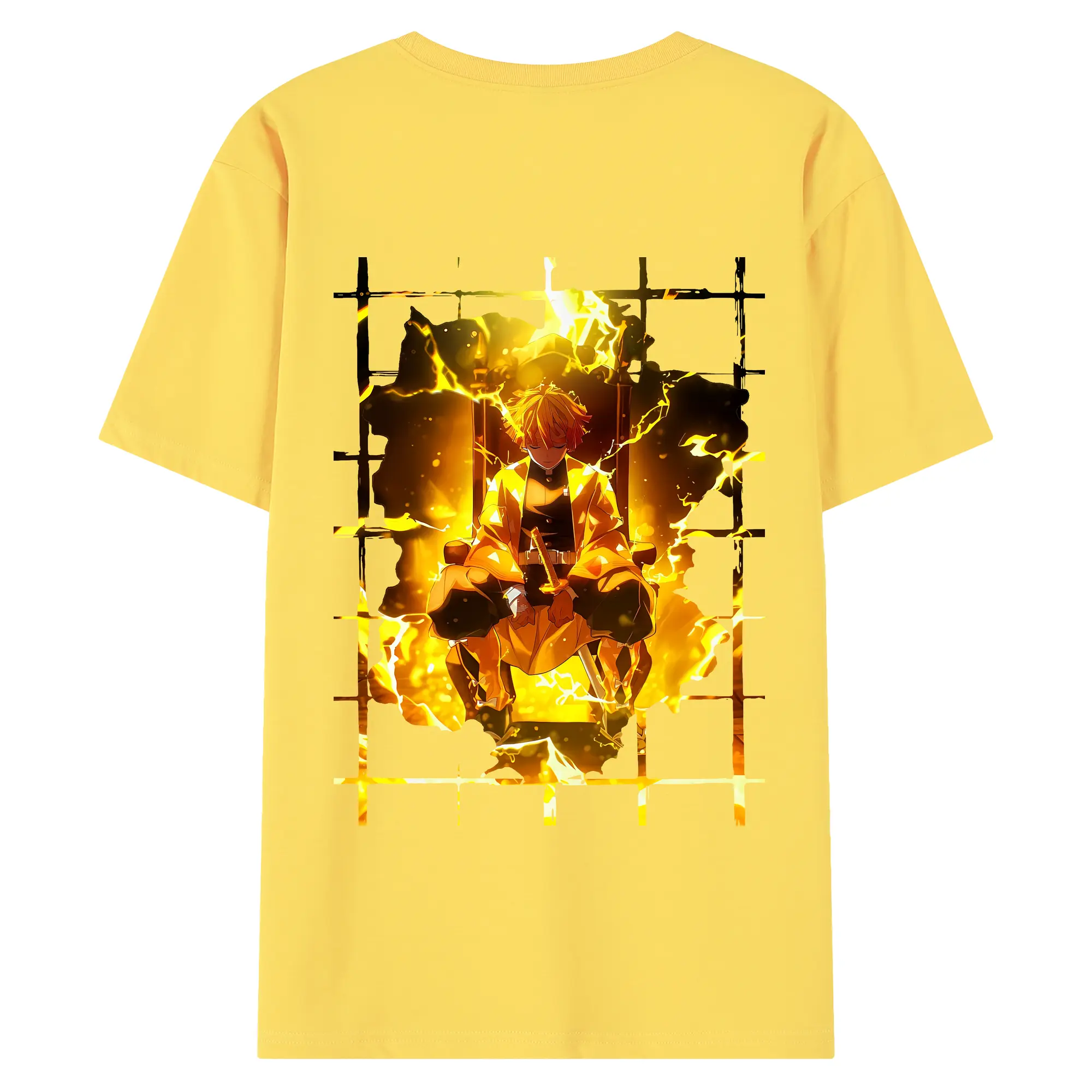 鬼滅の刃 グッズ,我妻 善逸 - 綿100% 半袖Tシャツ ・ フロントプリント ・ 快適 通気性 ・ 日常使い 散歩 スポーツ用