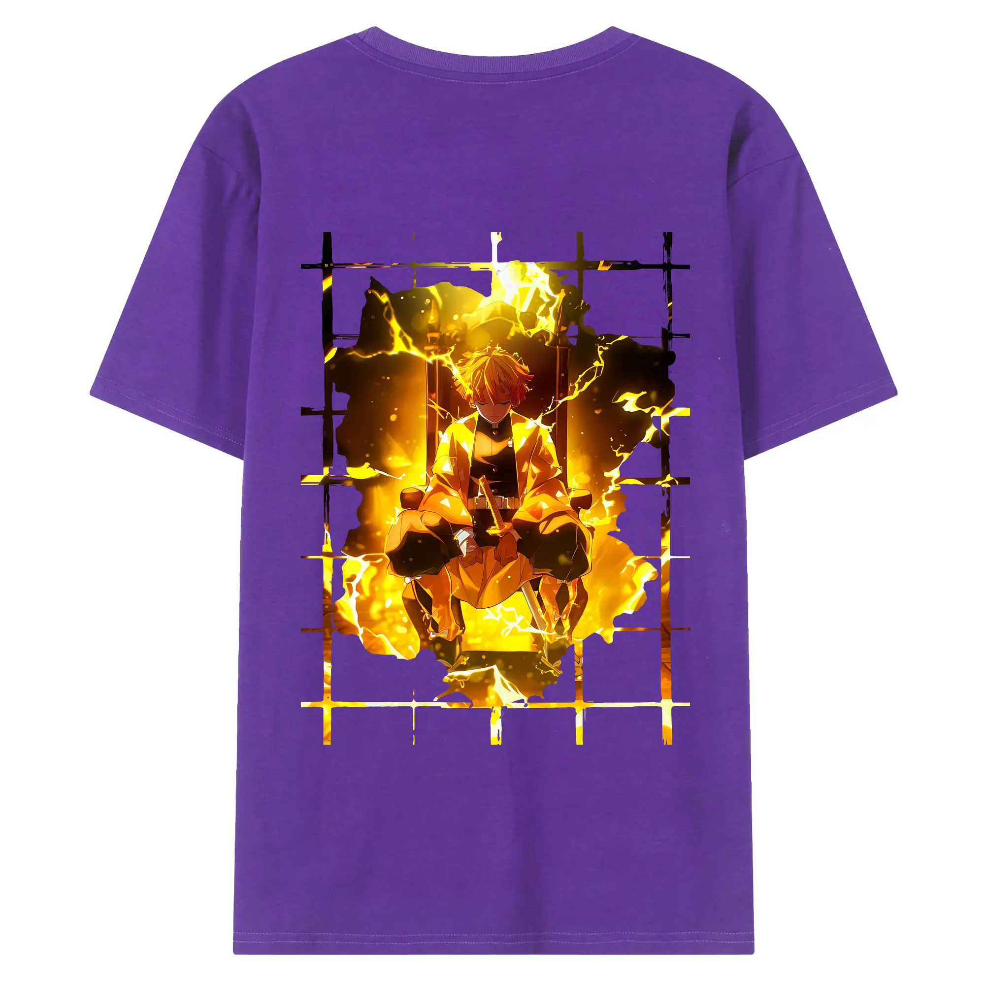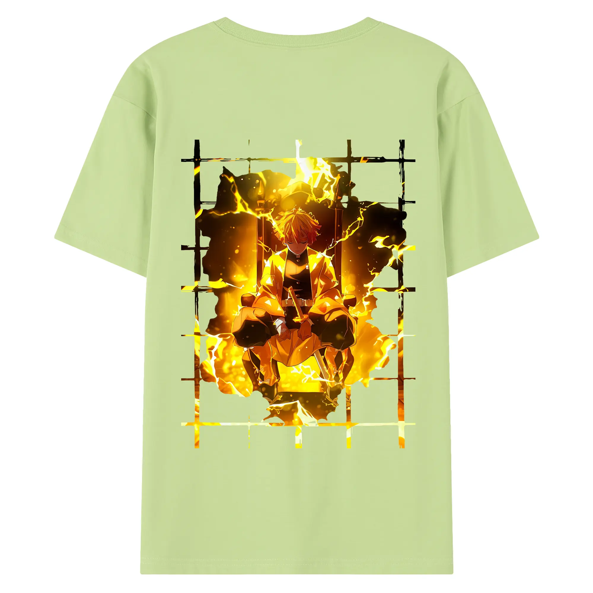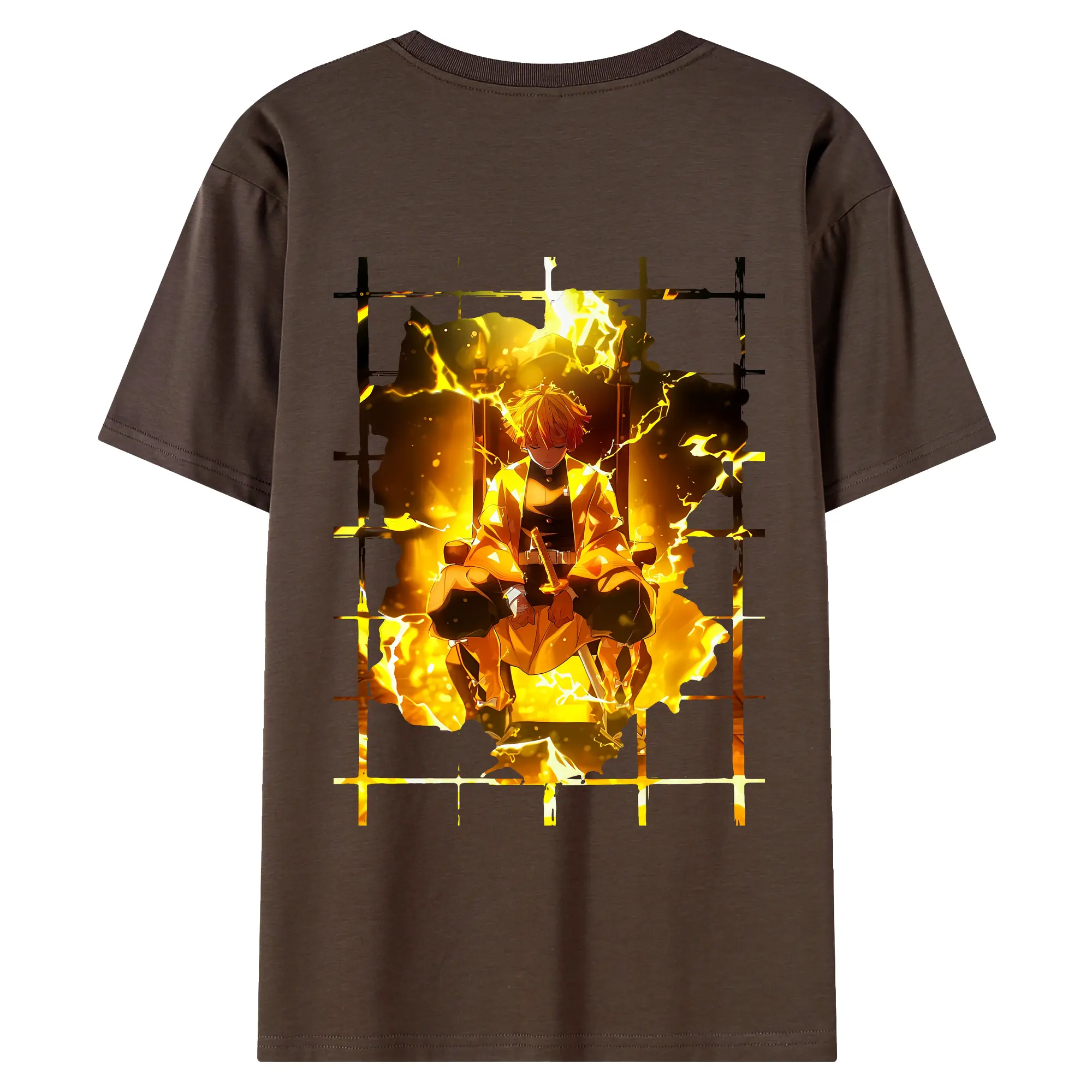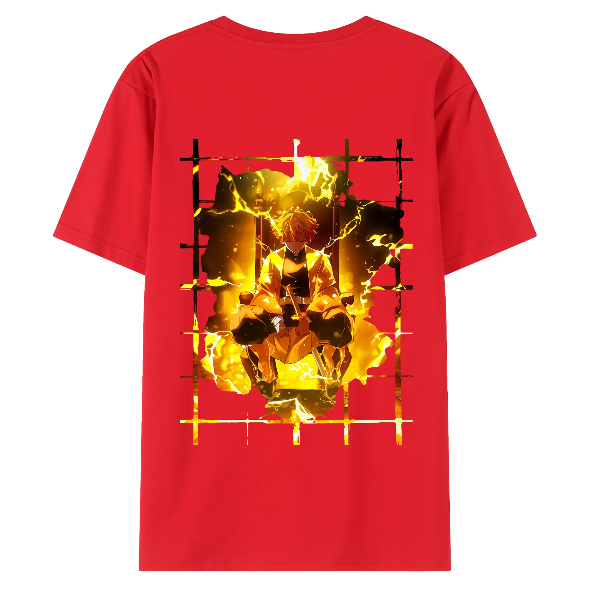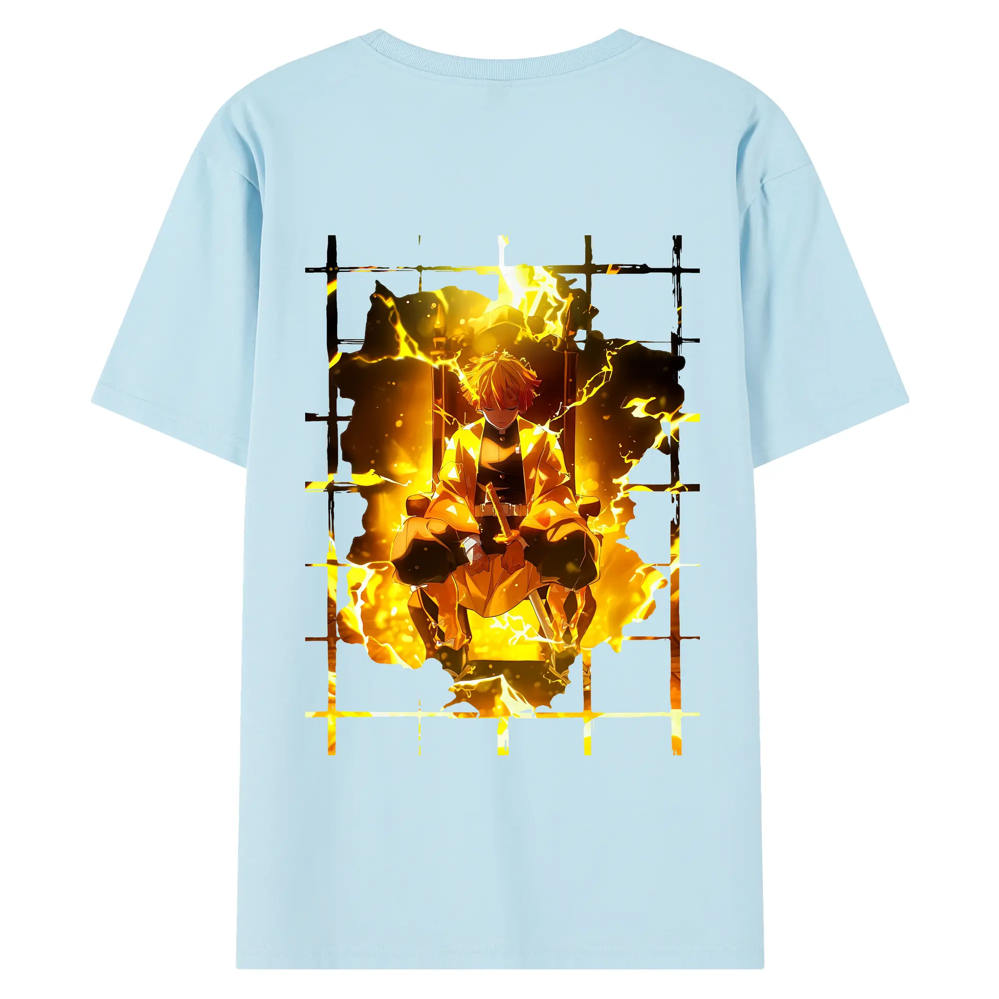 鬼滅の刃 グッズ,我妻 善逸 - 綿100% 半袖Tシャツ ・ フロントプリント ・ 快適 通気性 ・ 日常使い 散歩 スポーツ用