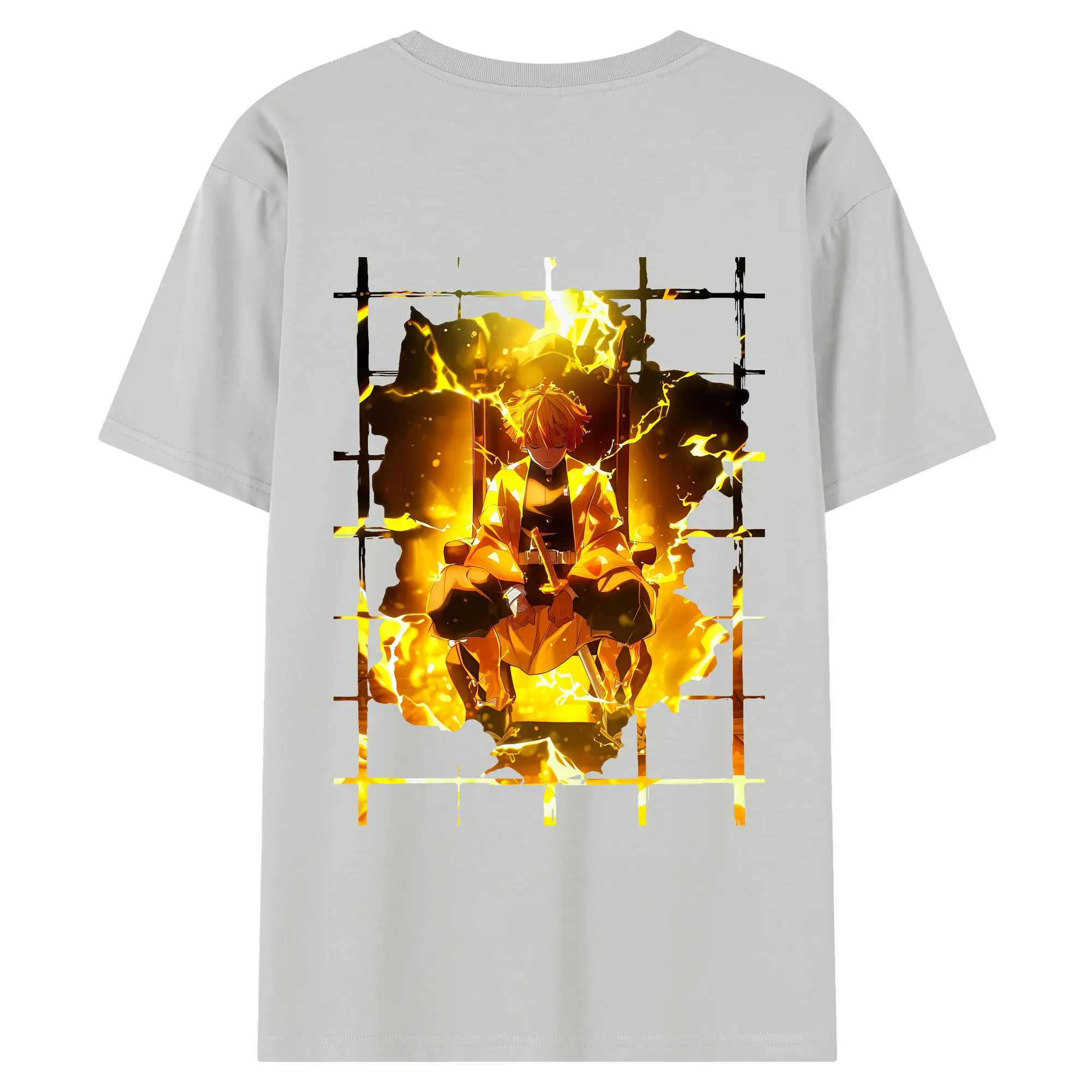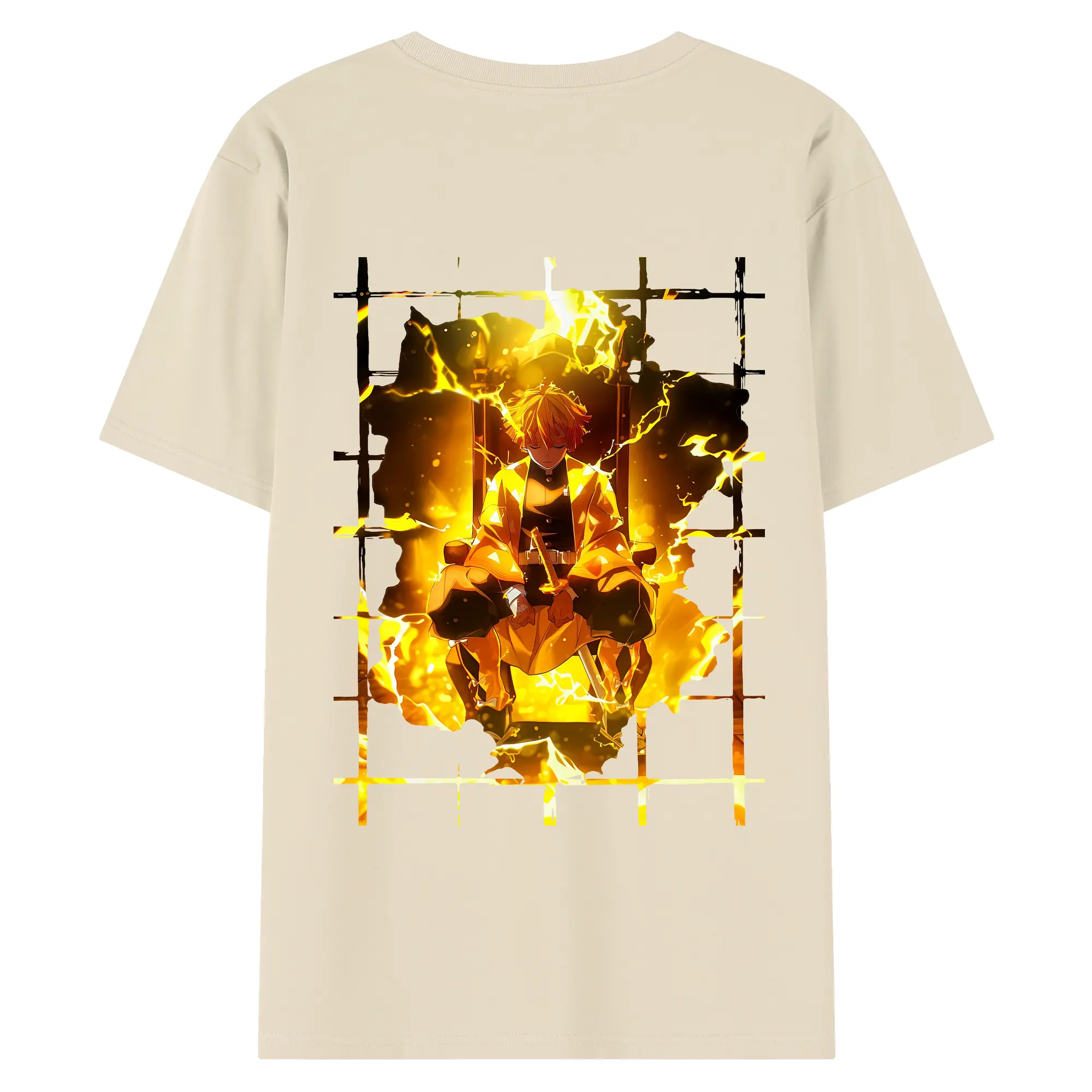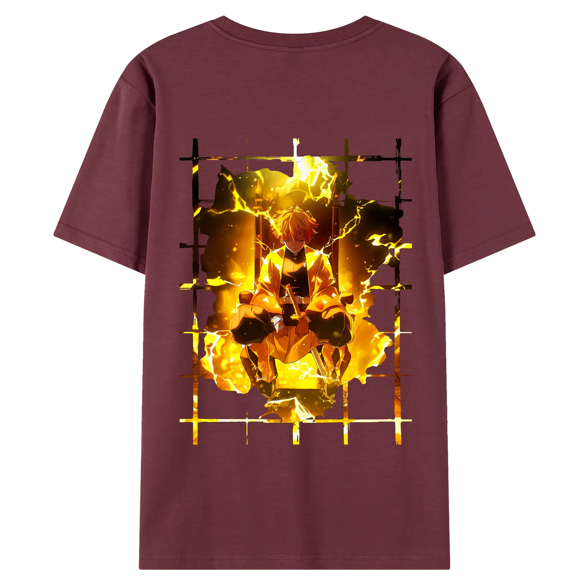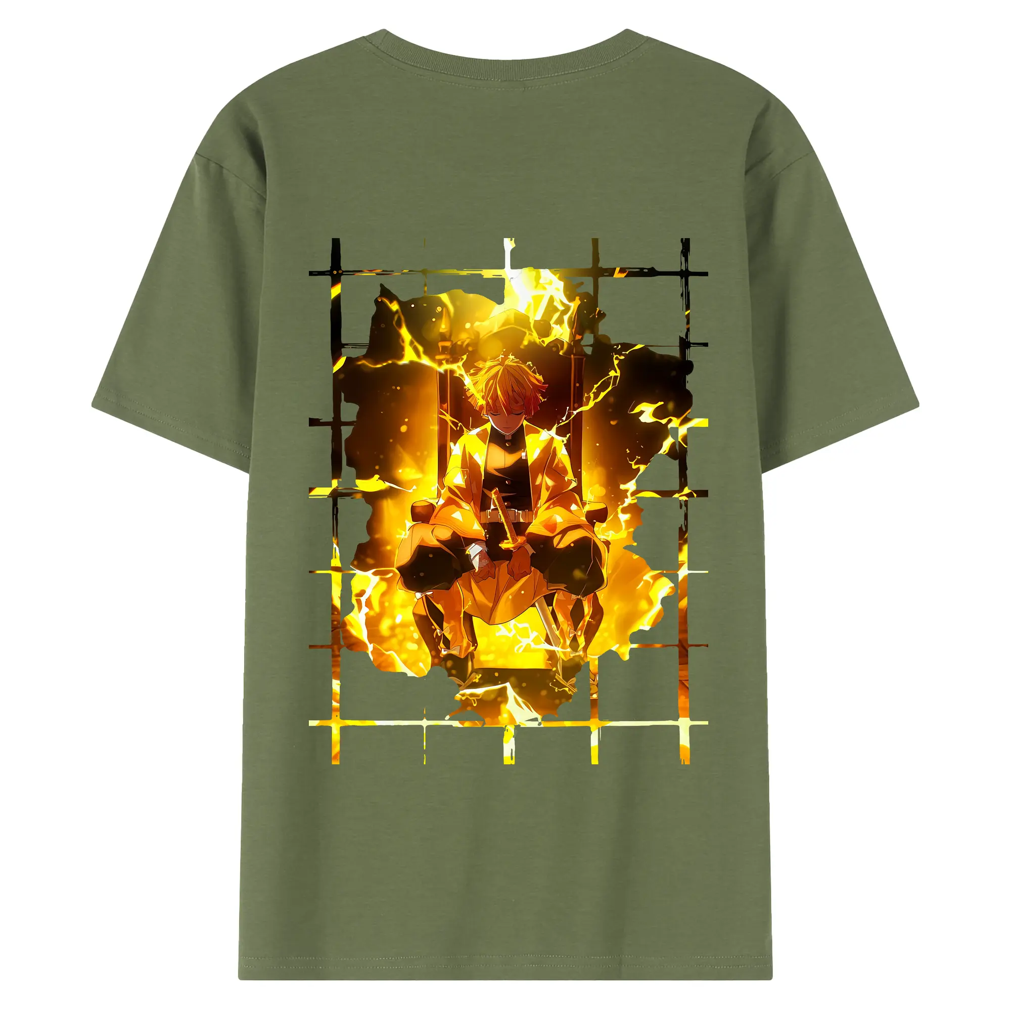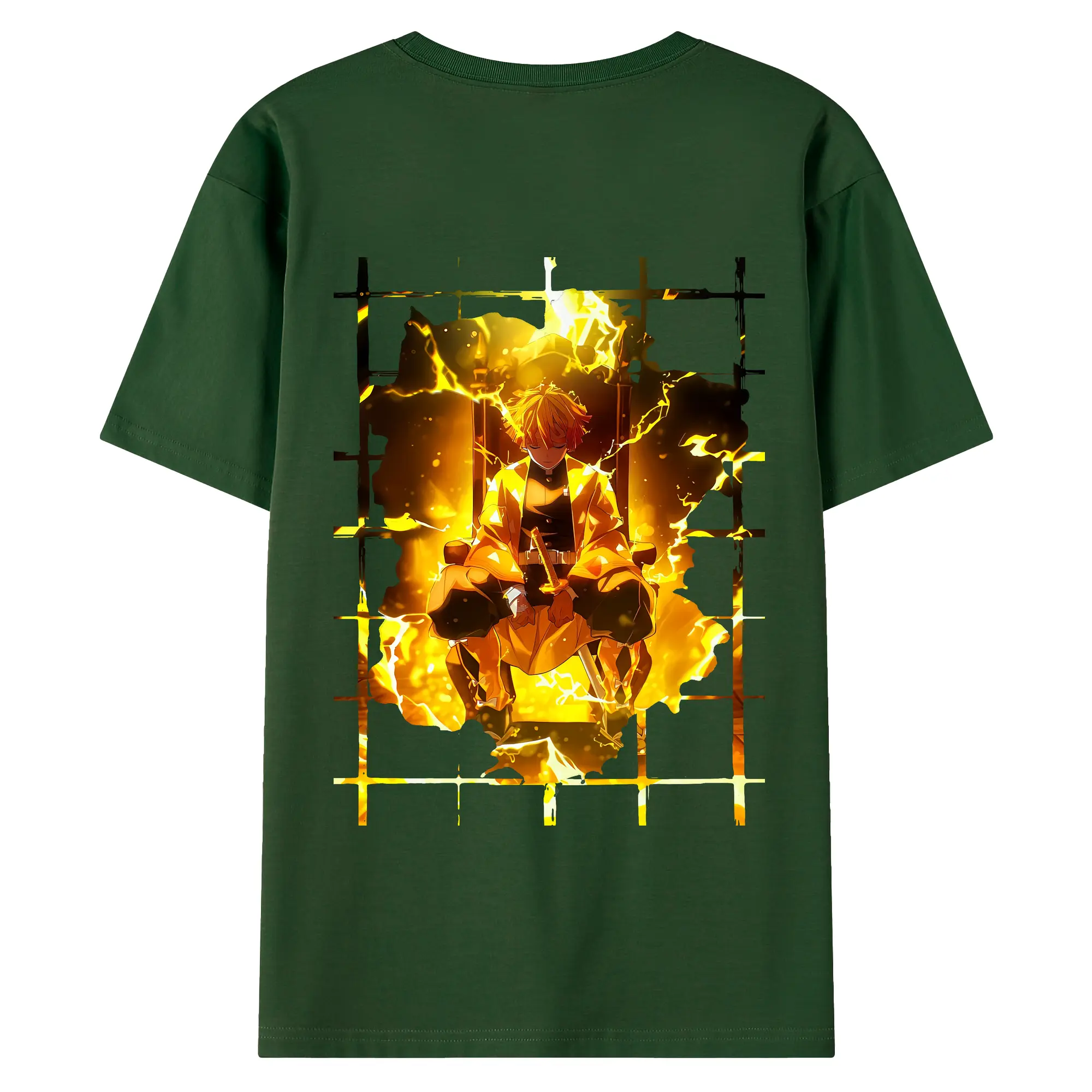 鬼滅の刃 グッズ,我妻 善逸 - 綿100% 半袖Tシャツ ・ フロントプリント ・ 快適 通気性 ・ 日常使い 散歩 スポーツ用