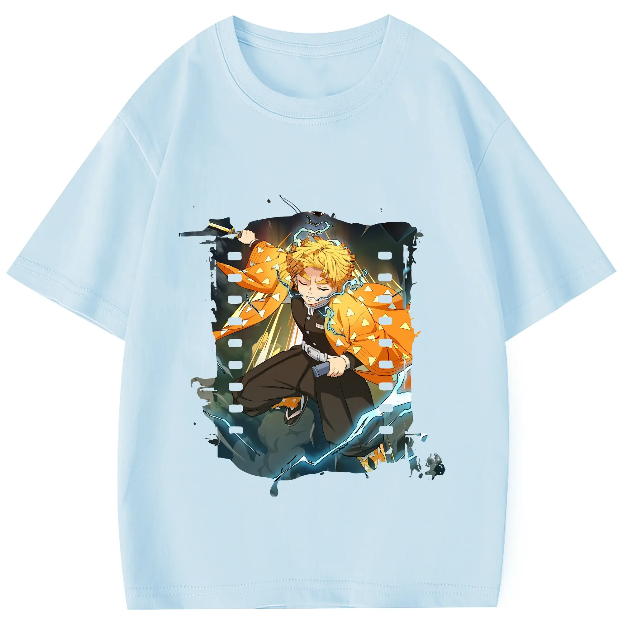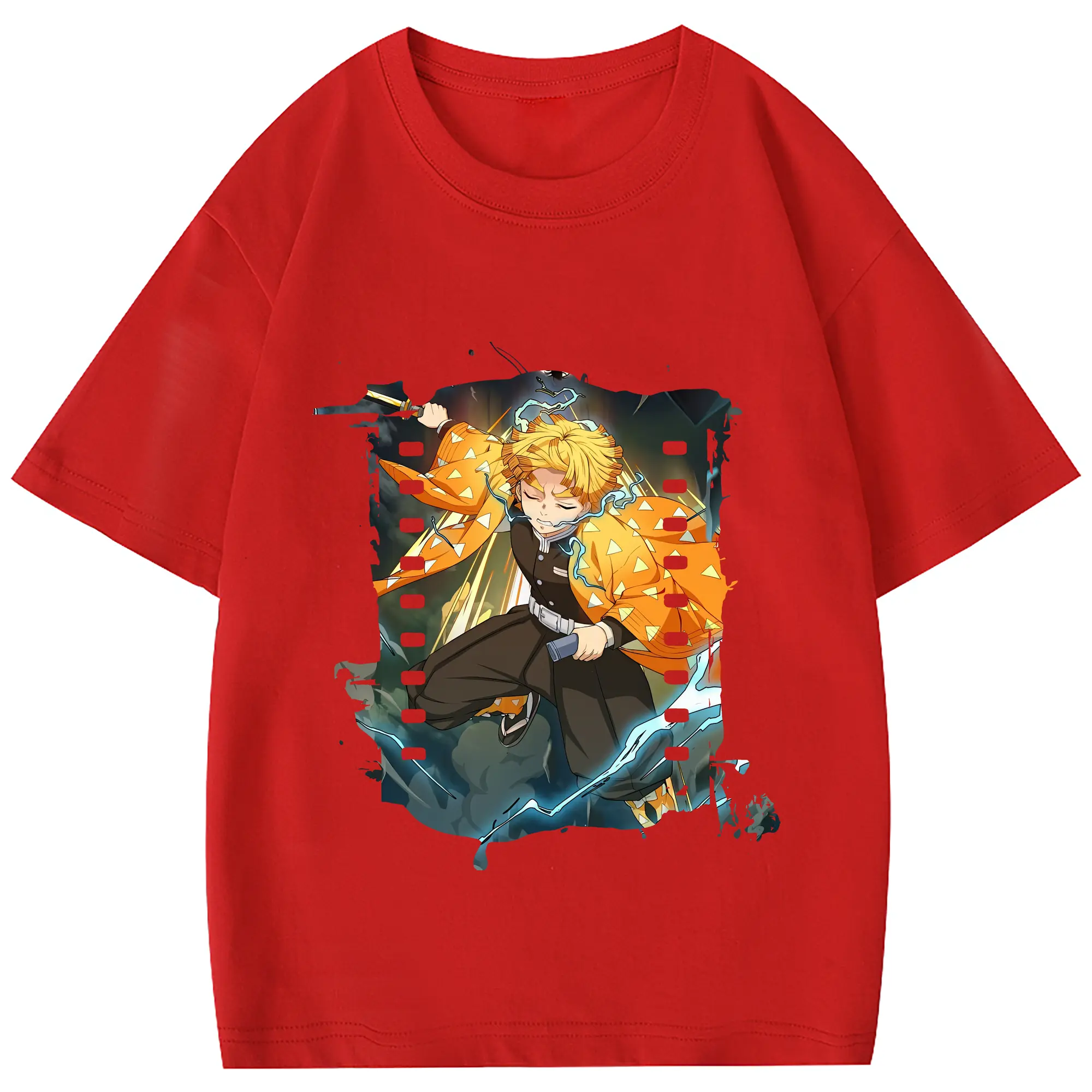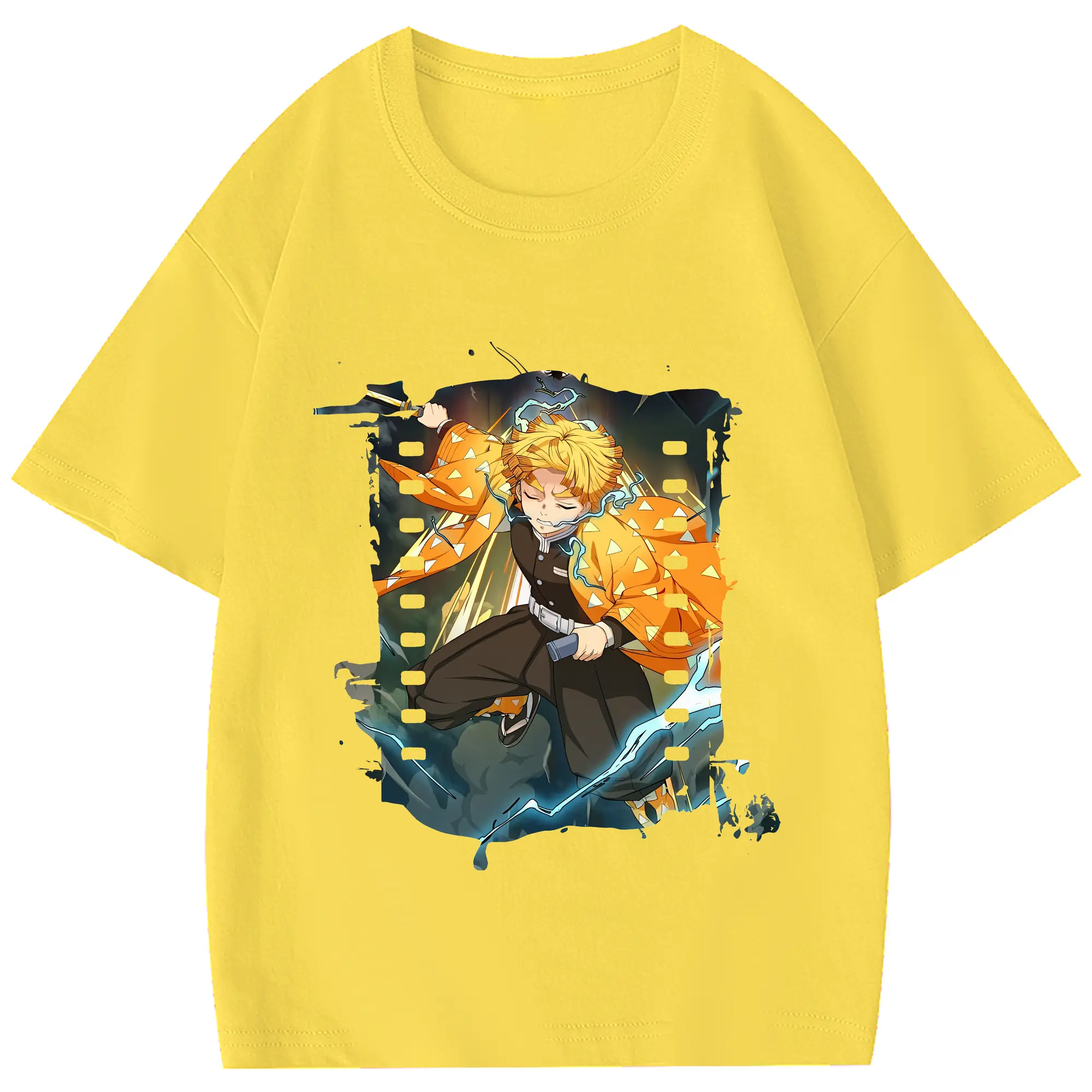 鬼滅の刃 グッズ,我妻 善逸 - 綿100% 半袖Tシャツ ・ フロントプリント ・ 快適 通気性 ・ 日常使い 散歩 スポーツ用
