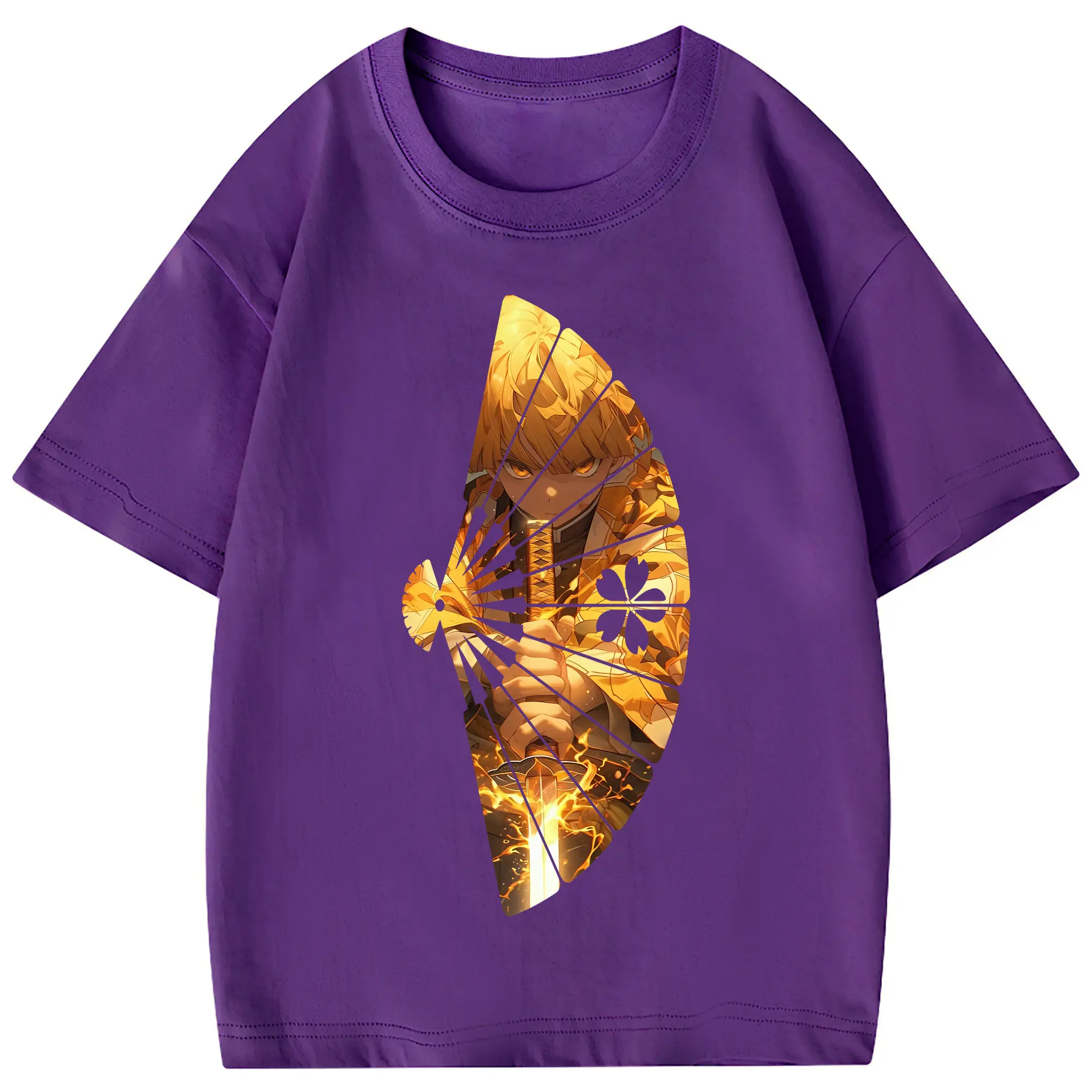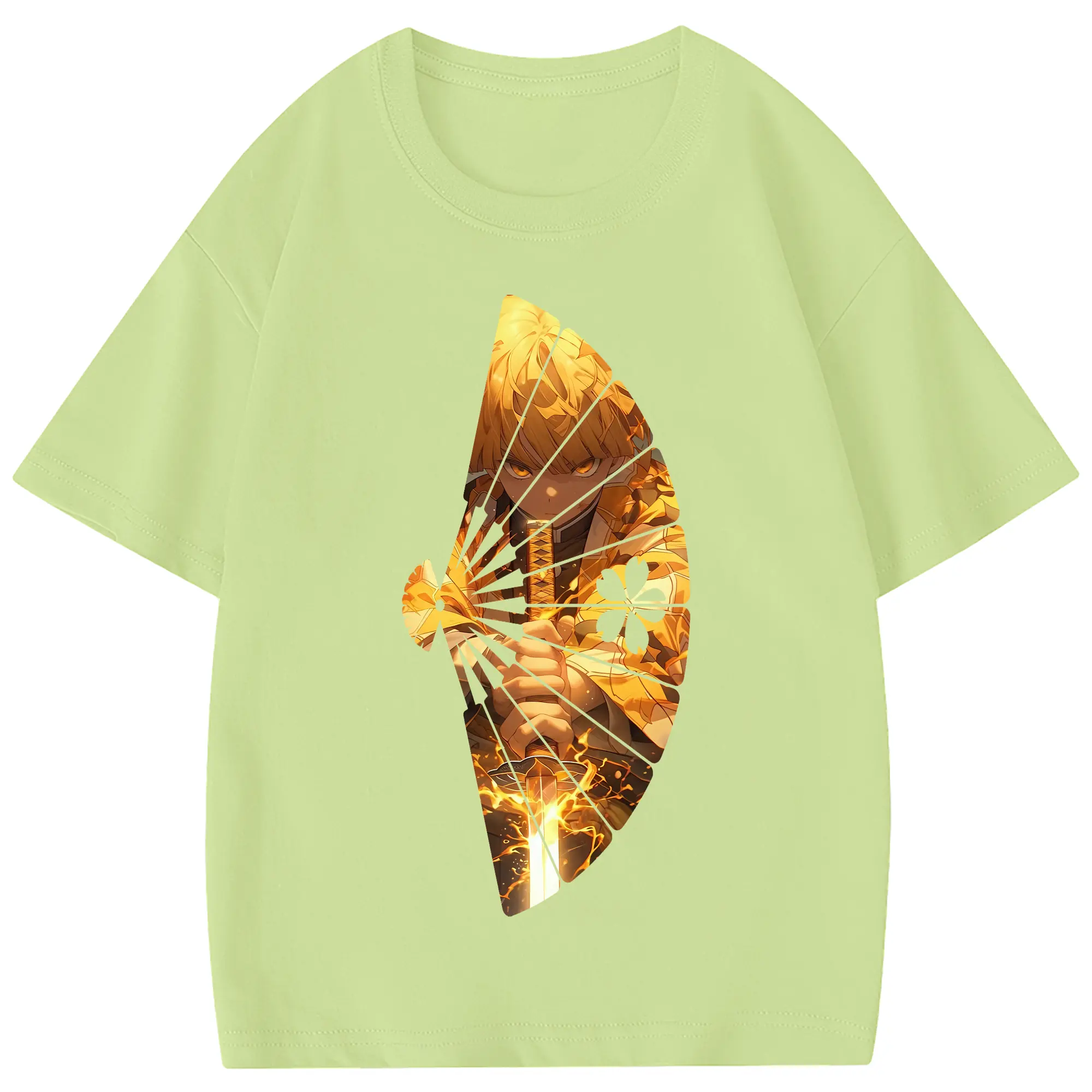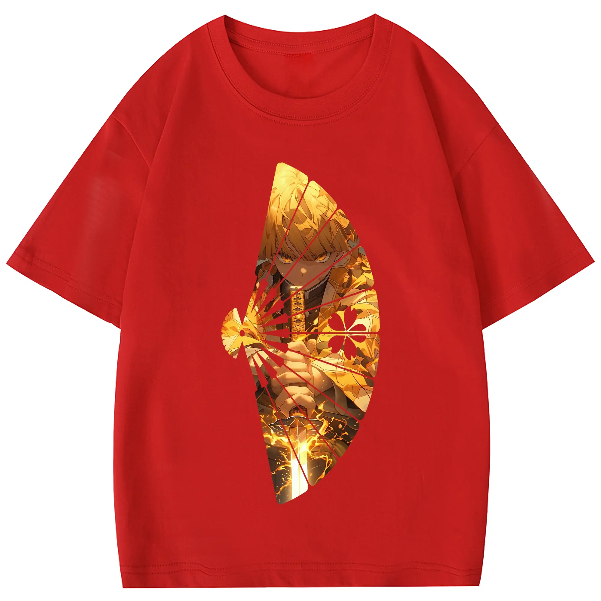 鬼滅の刃 グッズ,煉獄 杏寿郎 - 綿100% キッズTシャツ ・ フロントプリント ・ 快適 通気性 ・ スポーツ カジュアル 散歩用