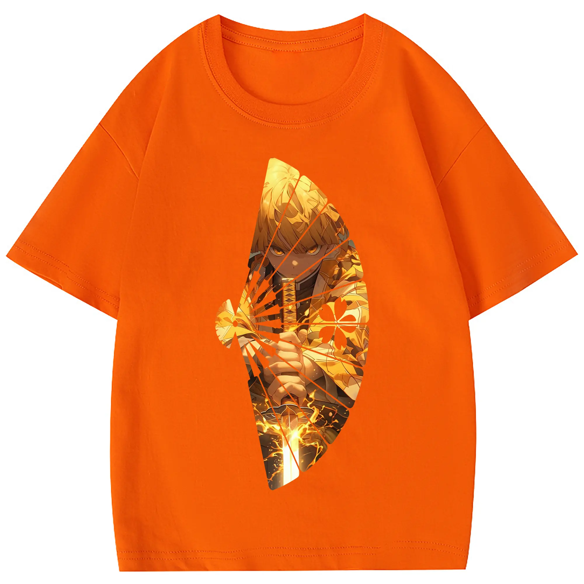 鬼滅の刃 グッズ,我妻 善逸 - 綿100% 半袖Tシャツ ・ フロントプリント ・ 快適 通気性 ・ 日常使い 散歩 スポーツ用