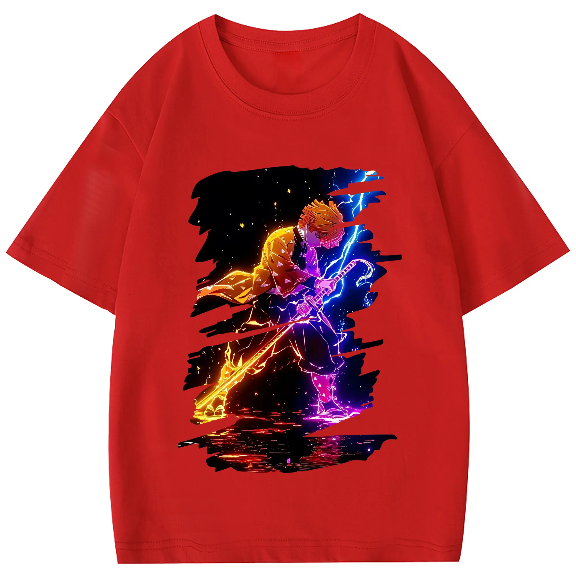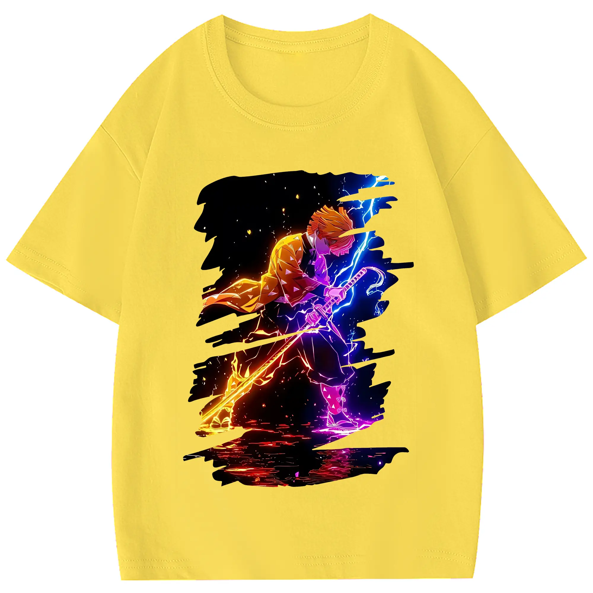 鬼滅の刃 グッズ,我妻 善逸 - 綿100% 半袖Tシャツ ・ フロントプリント ・ 快適 通気性 ・ 日常使い 散歩 スポーツ用
