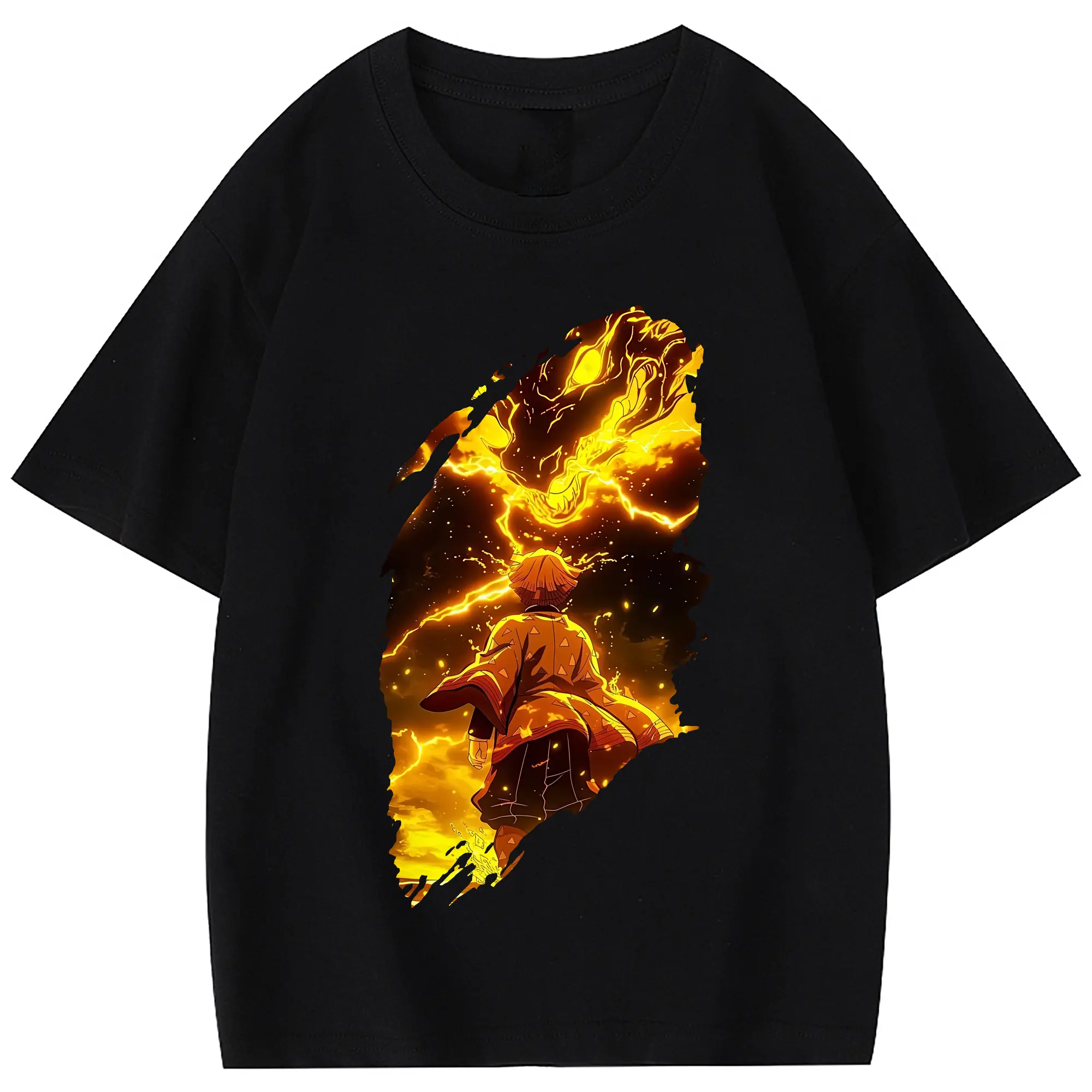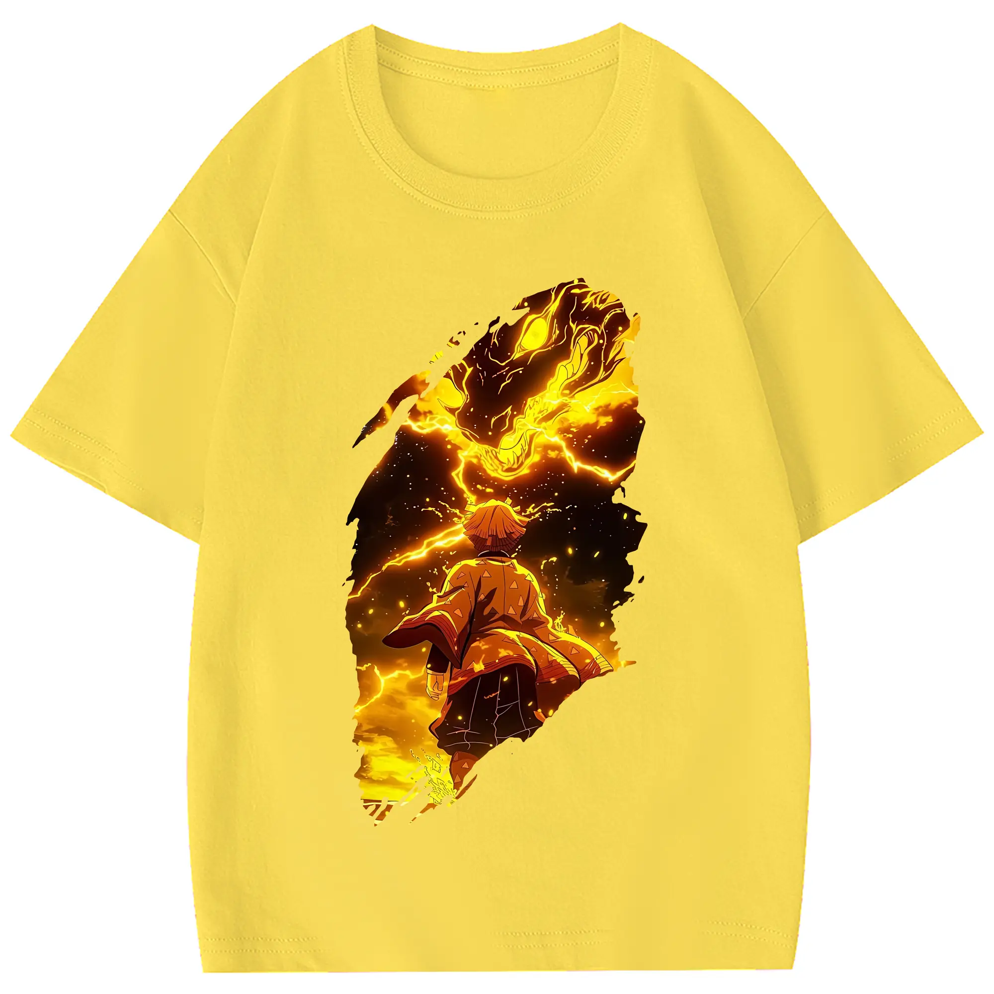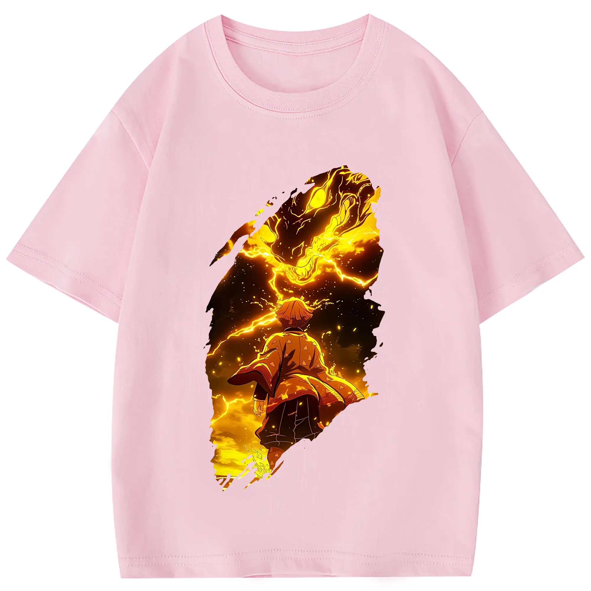 鬼滅の刃 グッズ,我妻 善逸 - 綿100% 半袖Tシャツ ・ フロントプリント ・ 快適 通気性 ・ 日常使い 散歩 スポーツ用