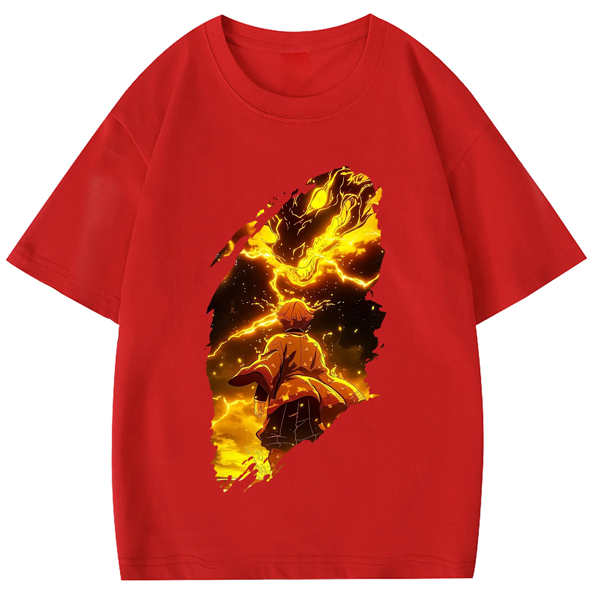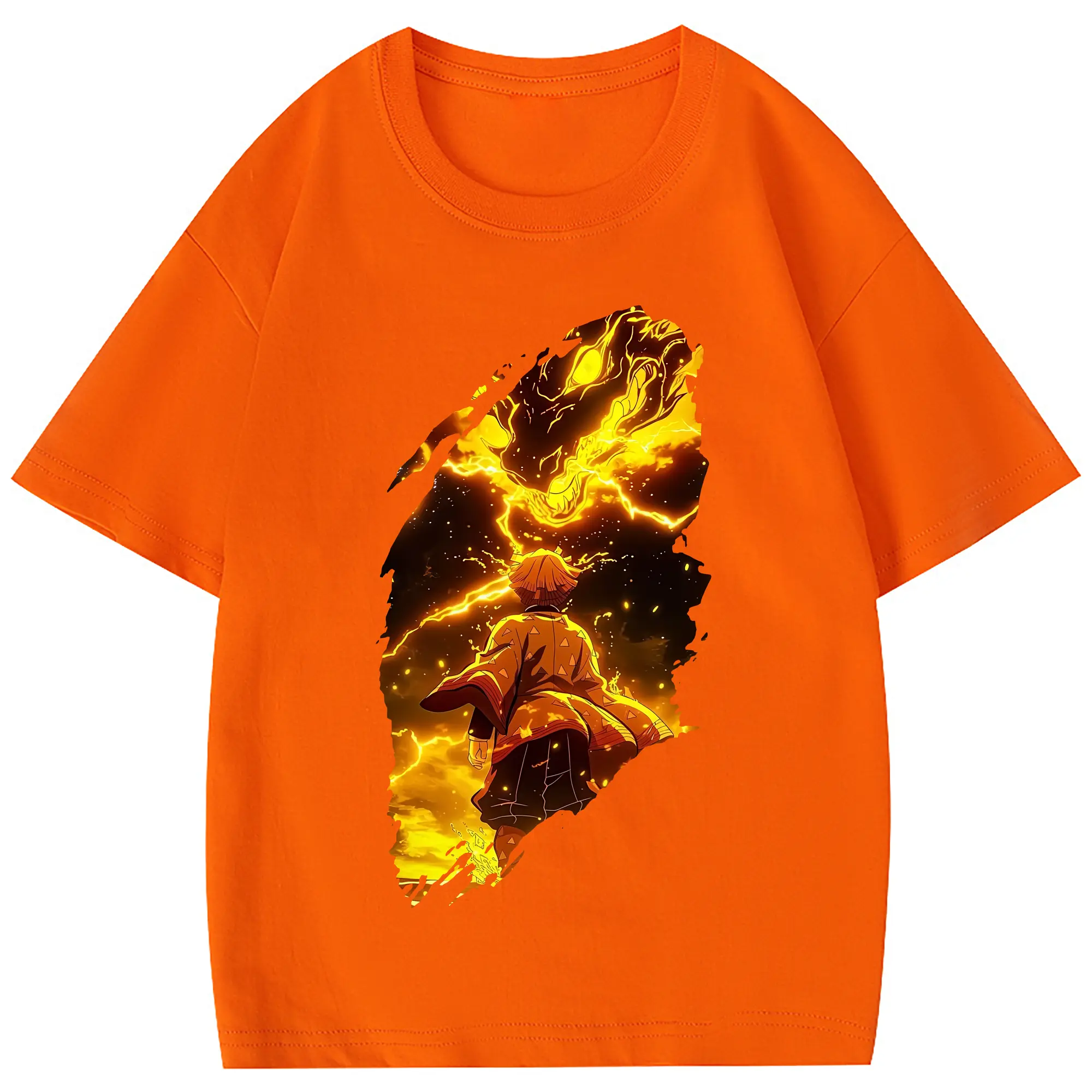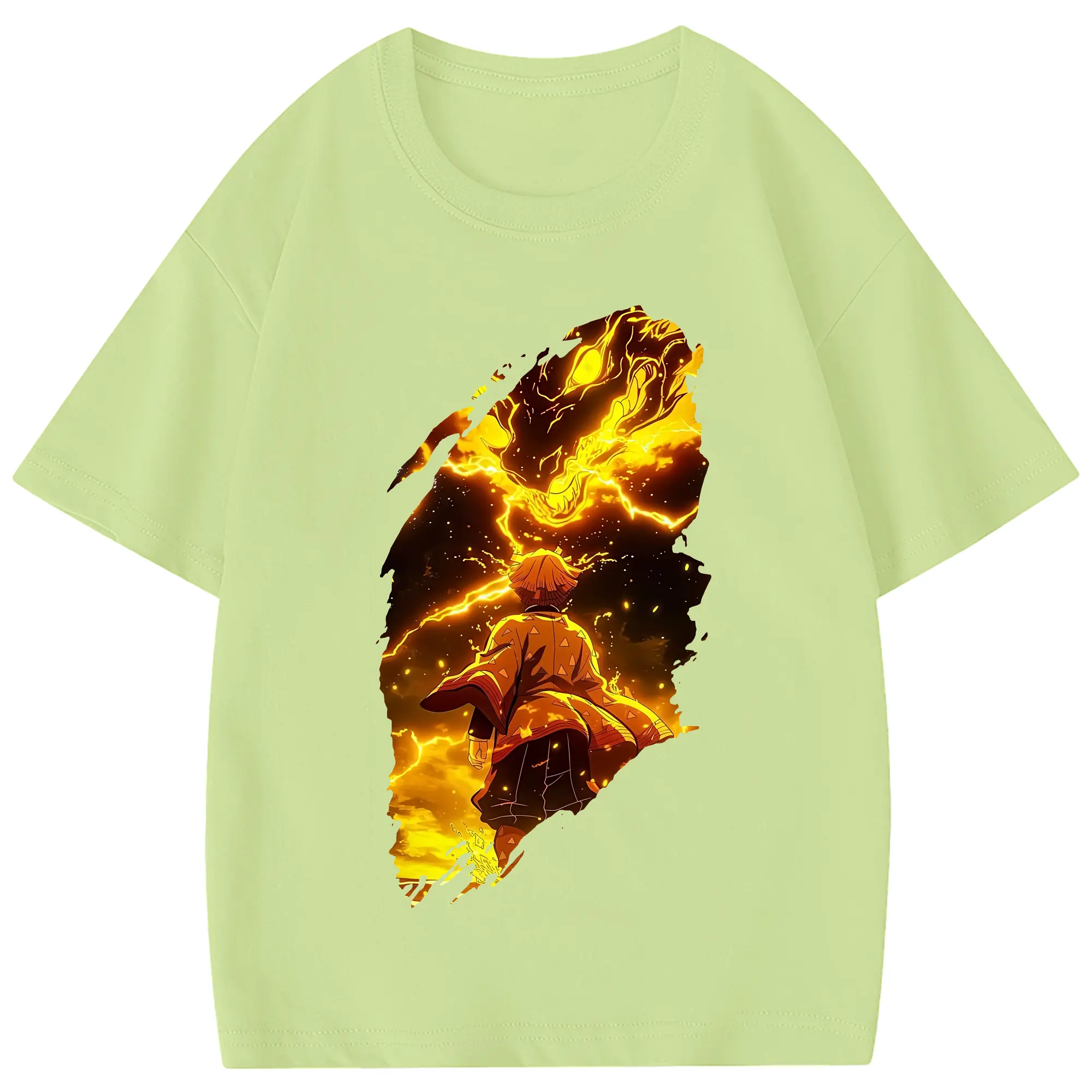 鬼滅の刃 グッズ,我妻 善逸 - 綿100% 半袖Tシャツ ・ フロントプリント ・ 快適 通気性 ・ 日常使い 散歩 スポーツ用