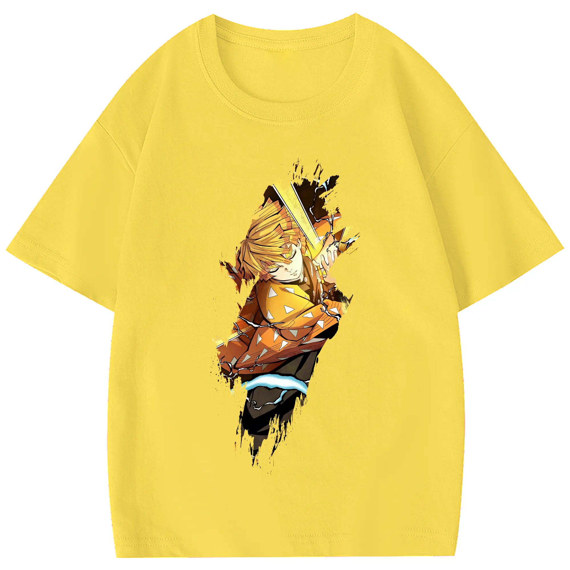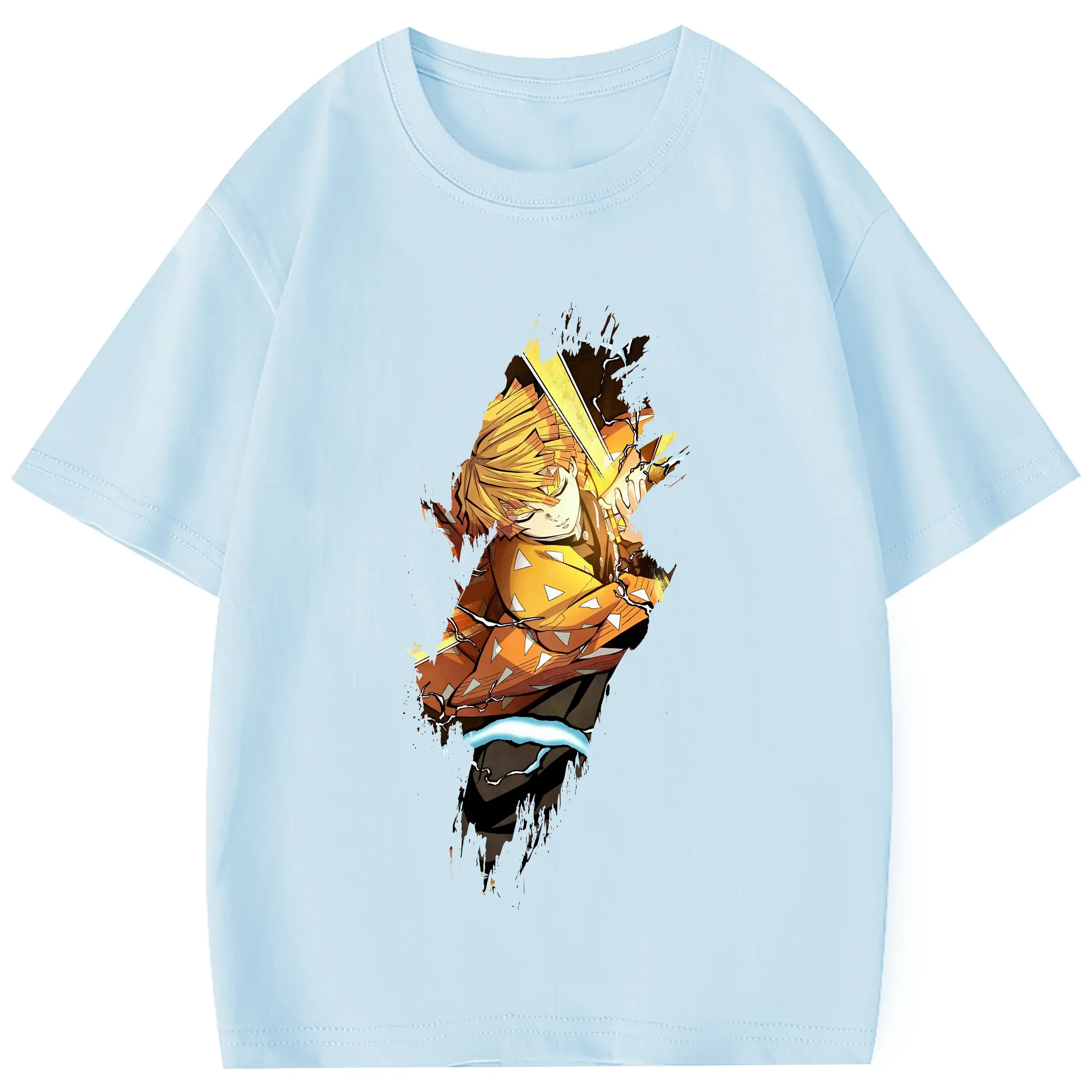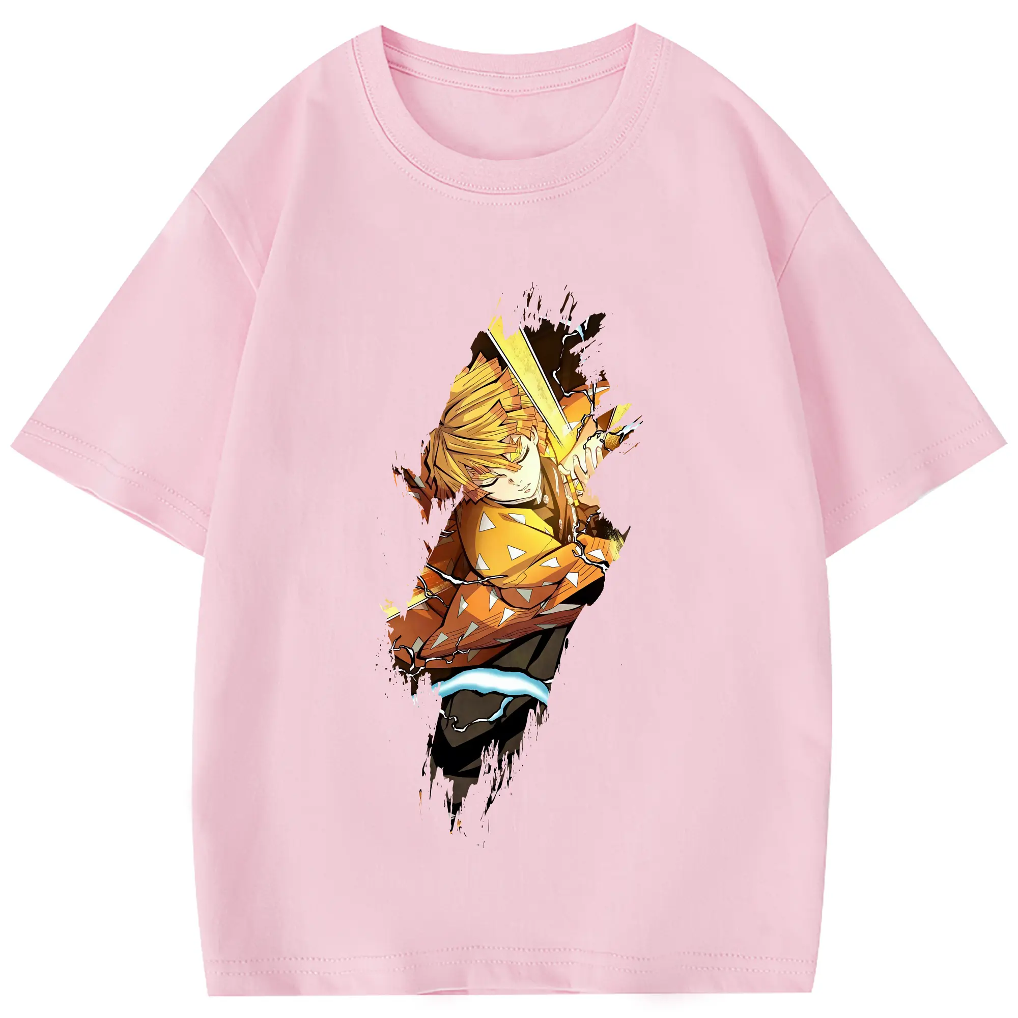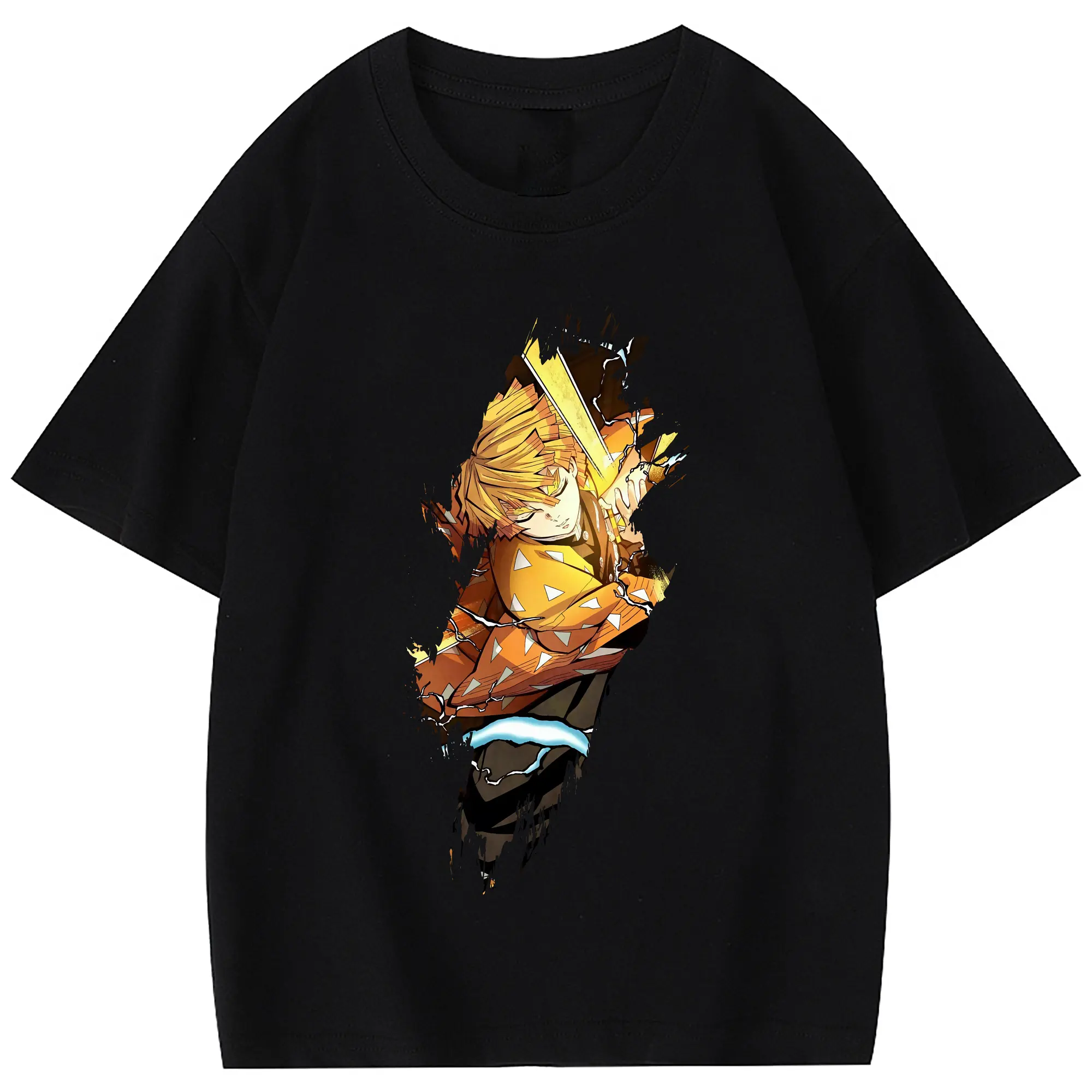 鬼滅の刃 グッズ,我妻 善逸 - 綿100% 半袖Tシャツ ・ フロントプリント ・ 快適 通気性 ・ 日常使い 散歩 スポーツ用