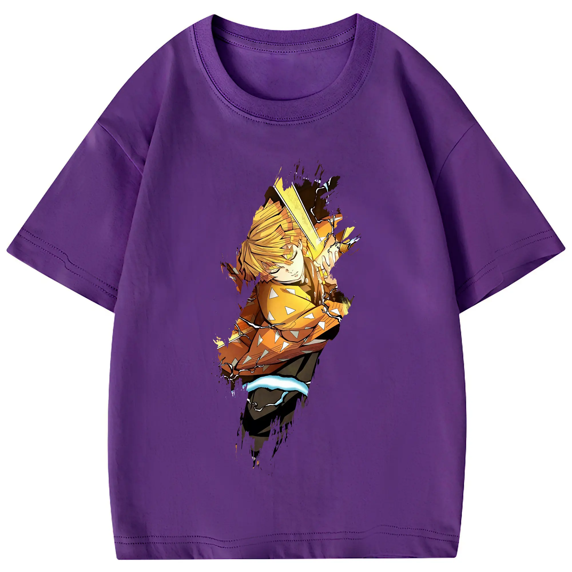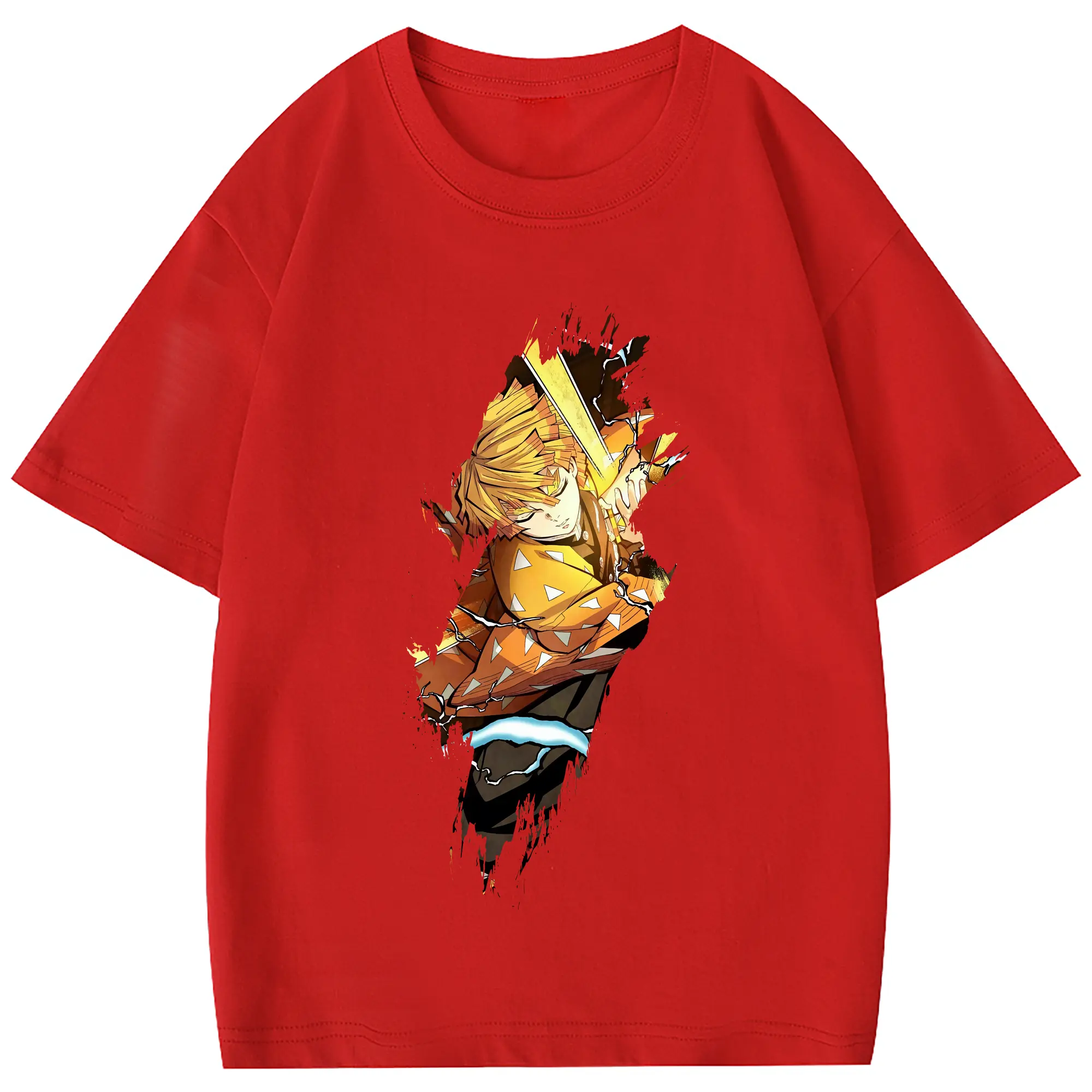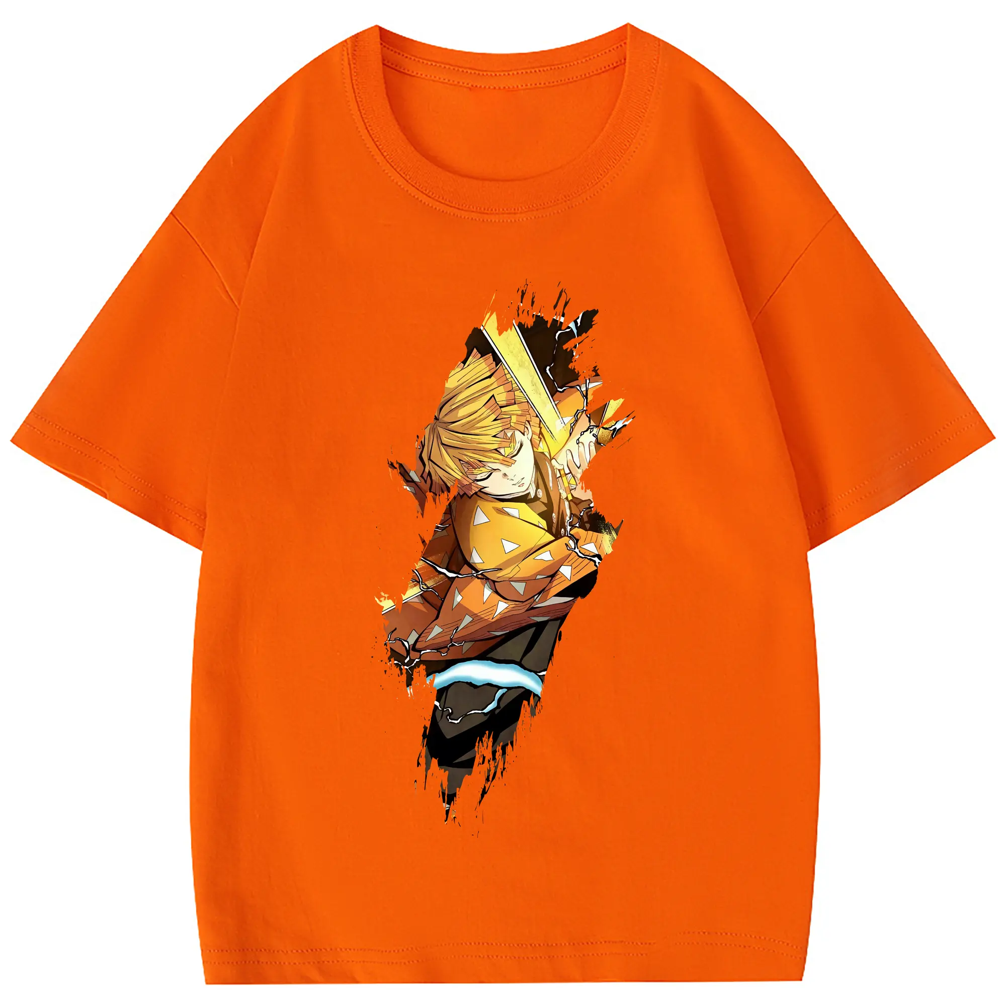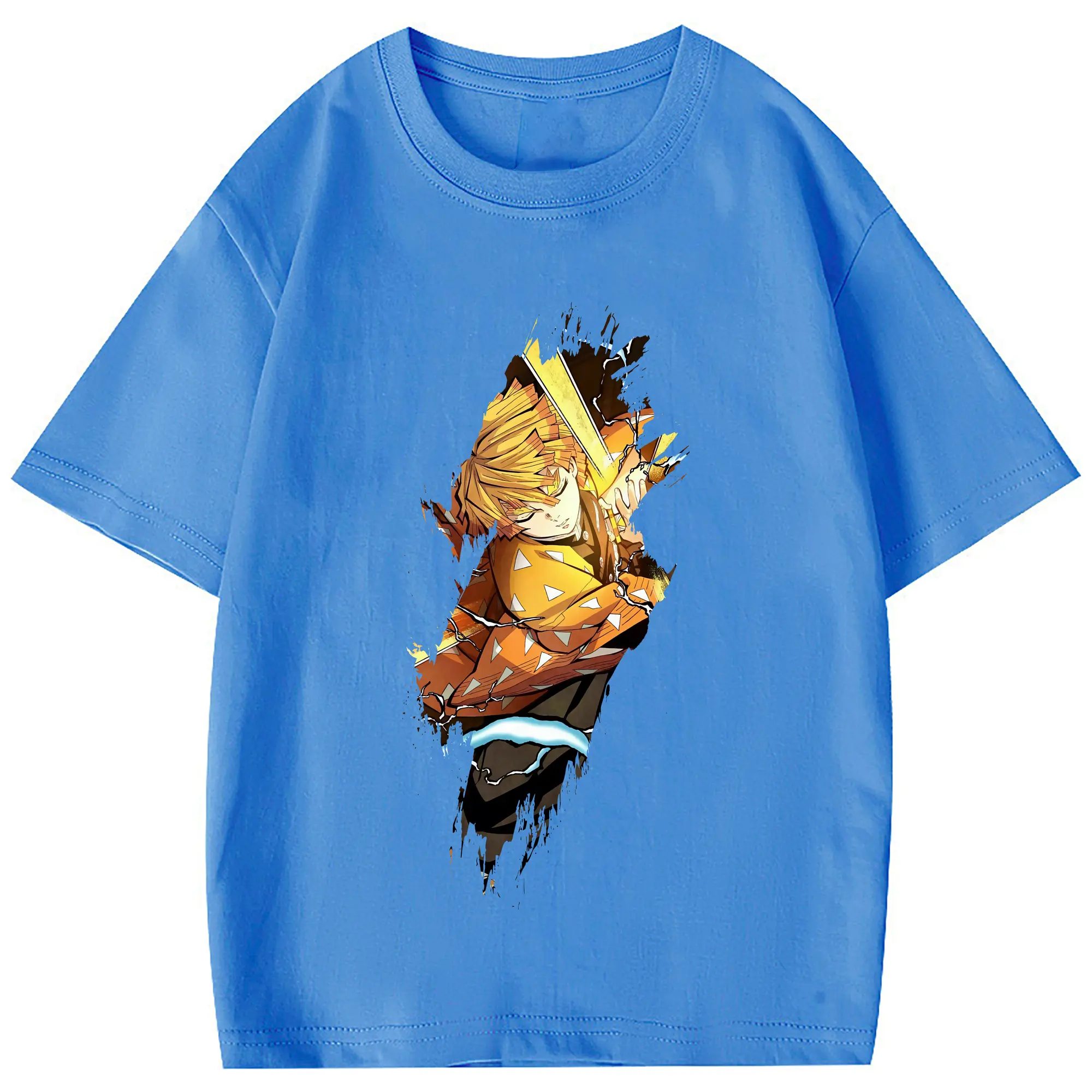 鬼滅の刃 グッズ,我妻 善逸 - 綿100% 半袖Tシャツ ・ フロントプリント ・ 快適 通気性 ・ 日常使い 散歩 スポーツ用