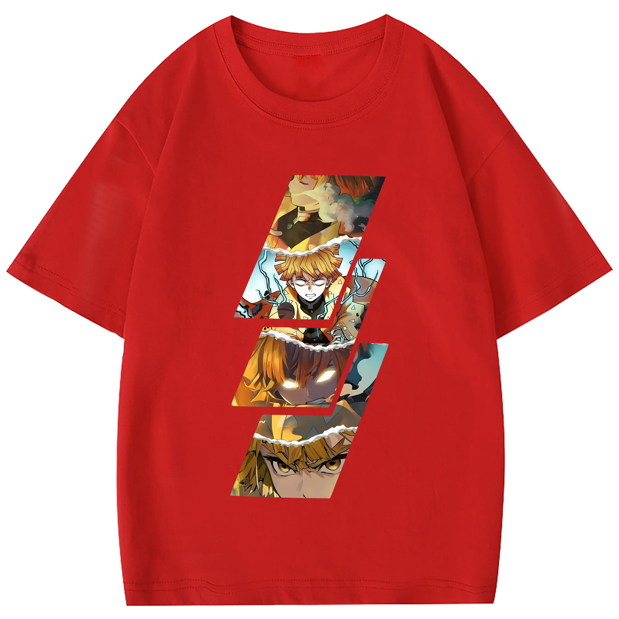 鬼滅の刃 グッズ,我妻 善逸 - 綿100% 半袖Tシャツ ・ フロントプリント ・ 快適 通気性 ・ 日常使い 散歩 スポーツ用